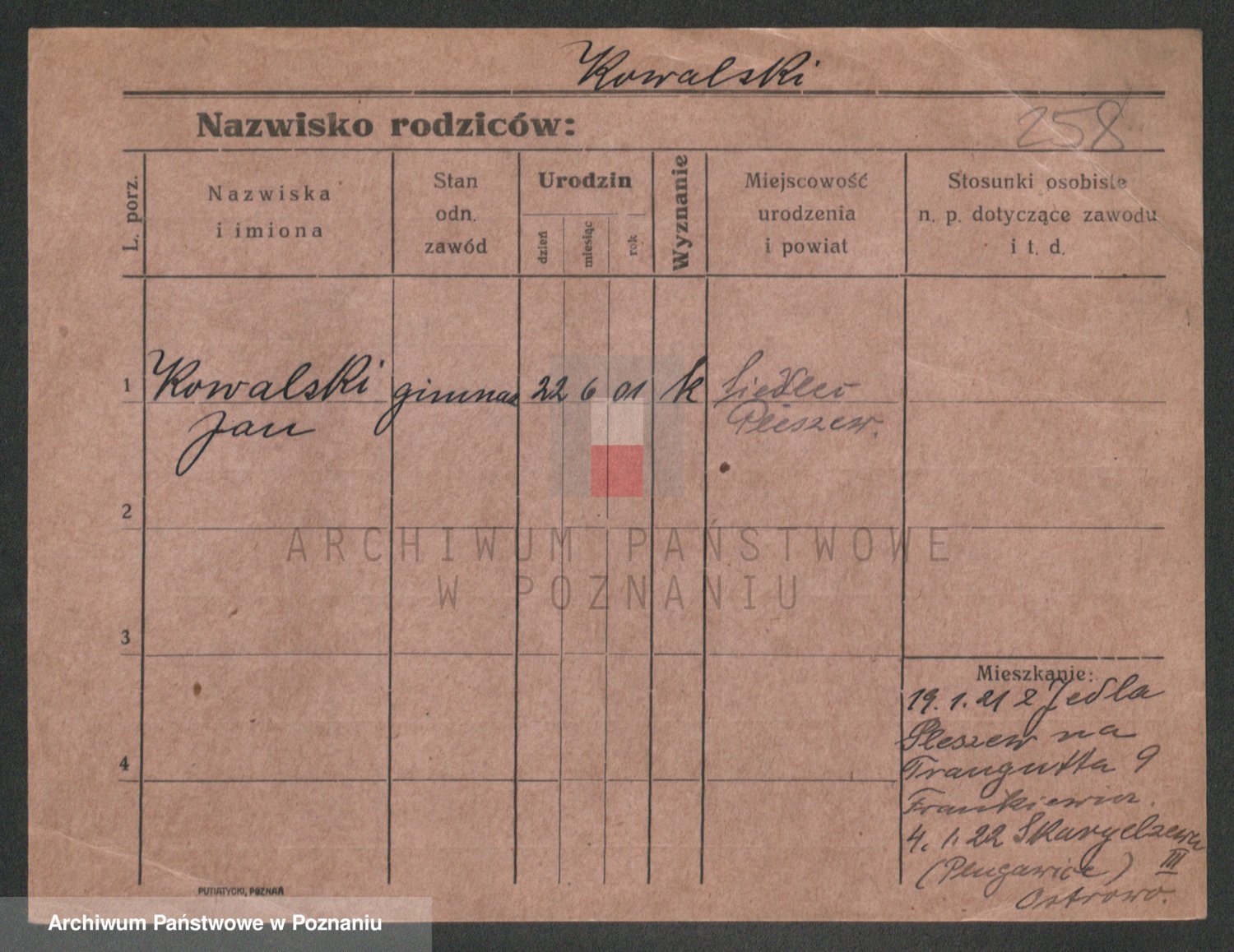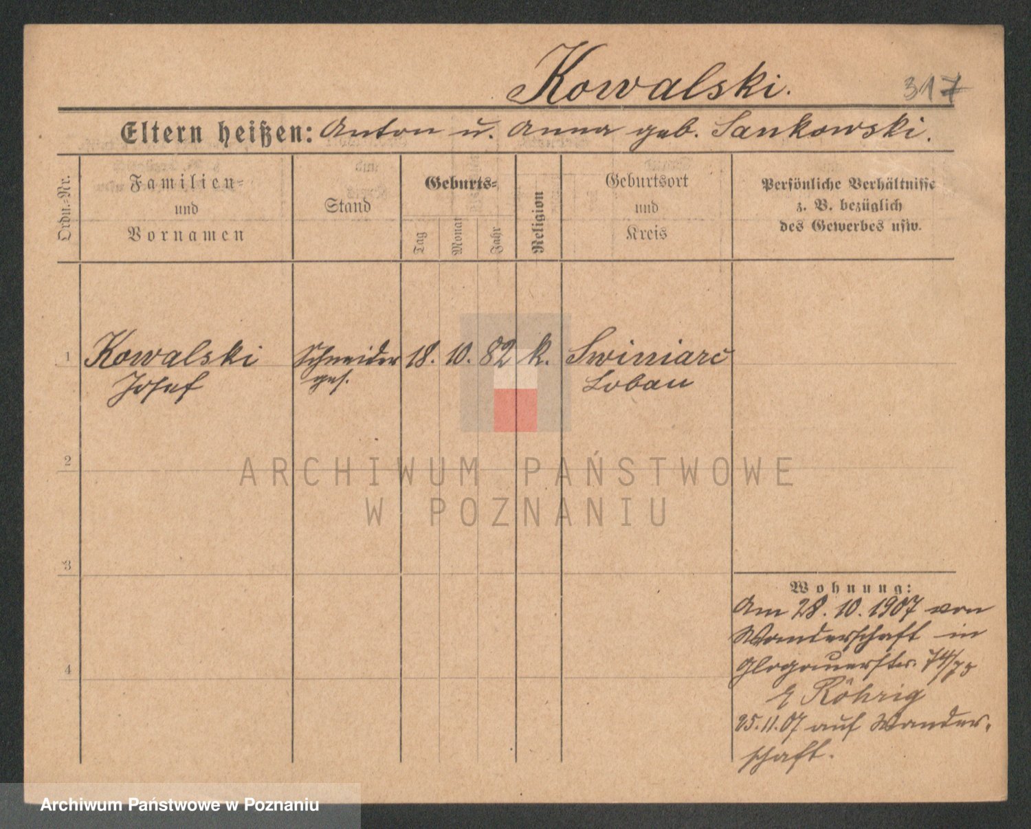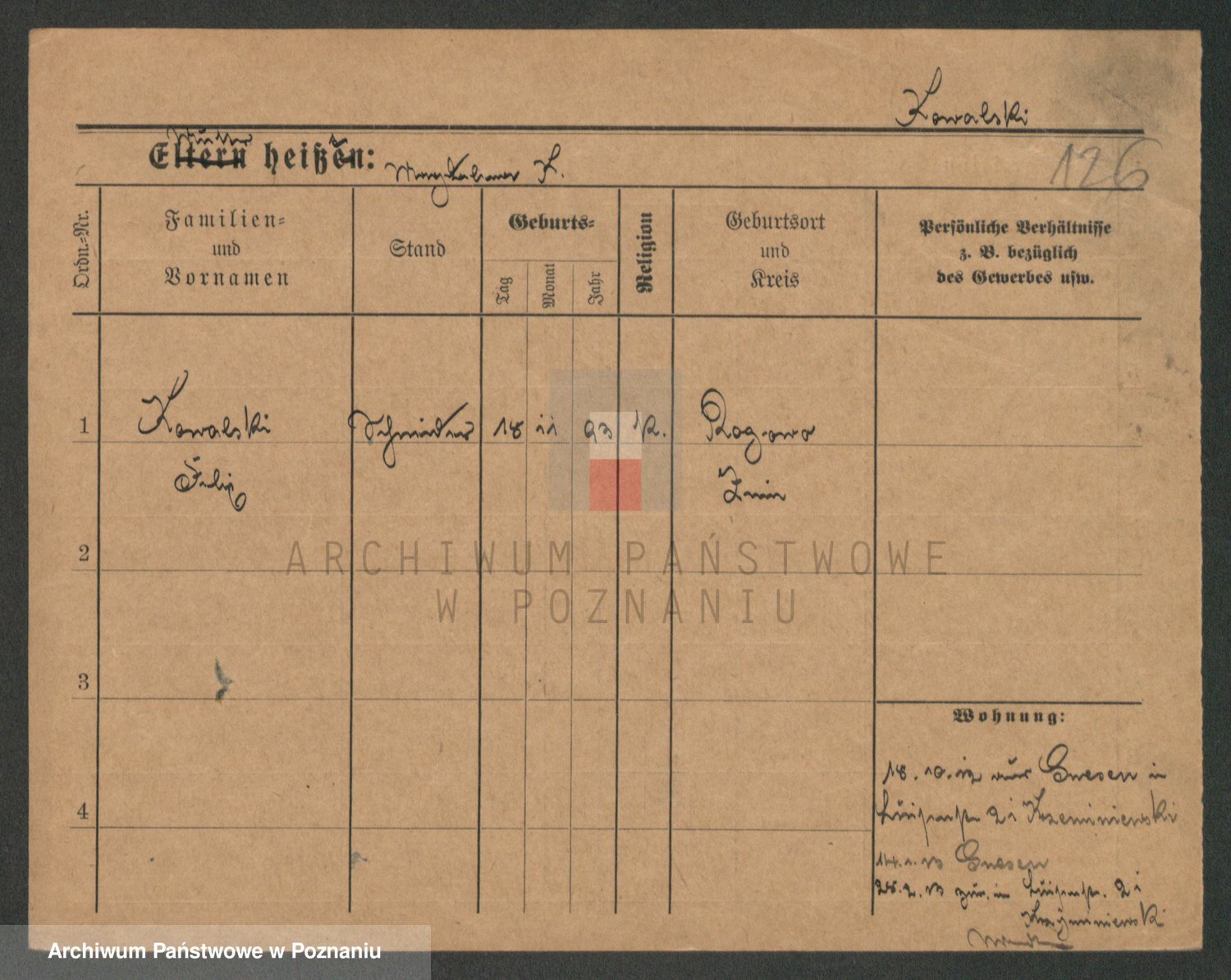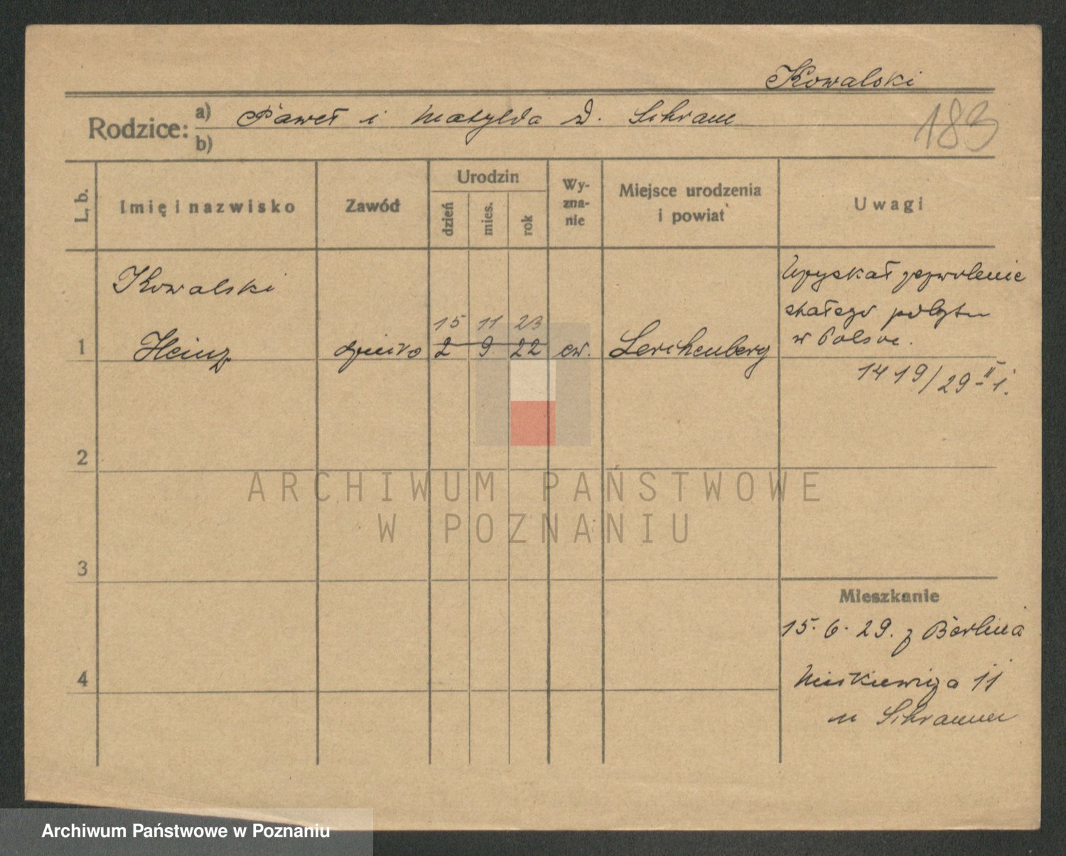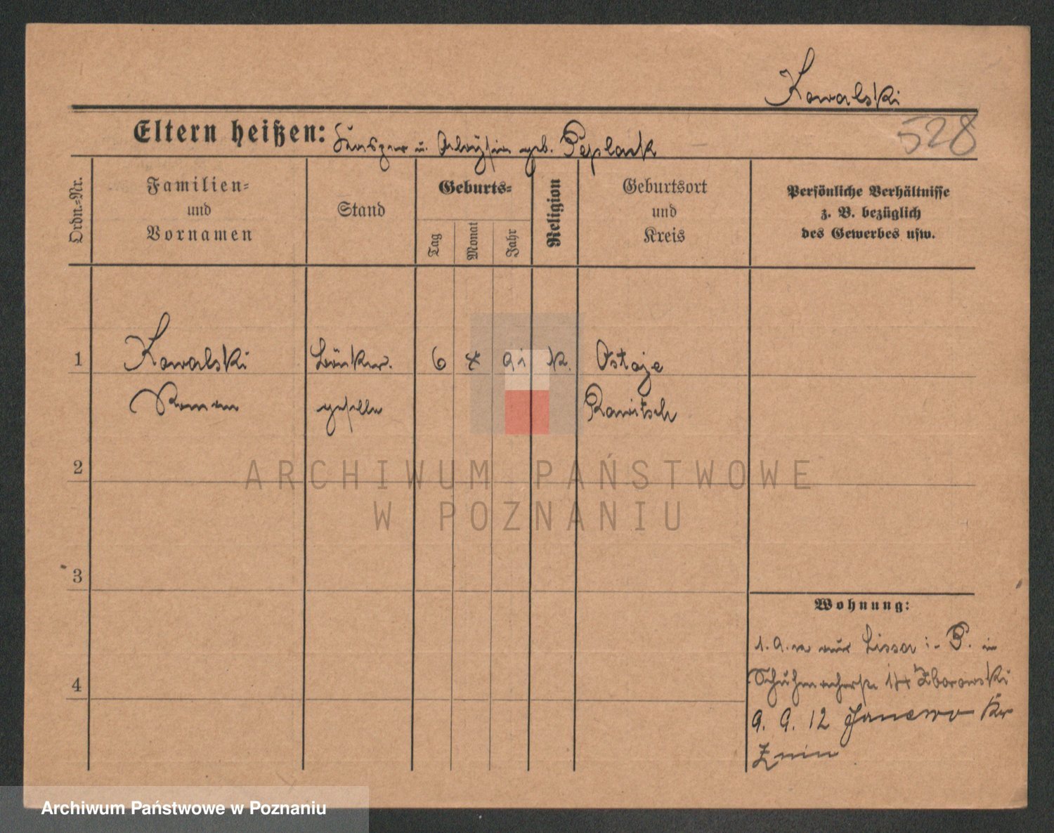 Podgląd karty osobowej dostępny jest po kliknięciu na nazwisko lub ikonkę karty. Można dokonywać powiększenia (ikony na górze) lub przechodzić między kolejnymi skanami (strzałki po bokach).