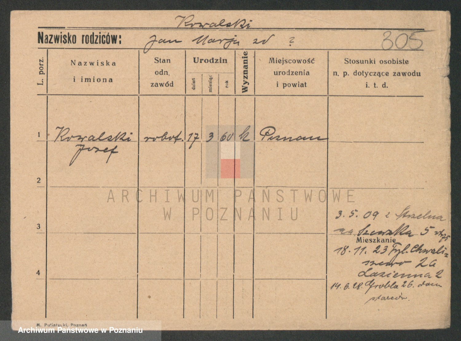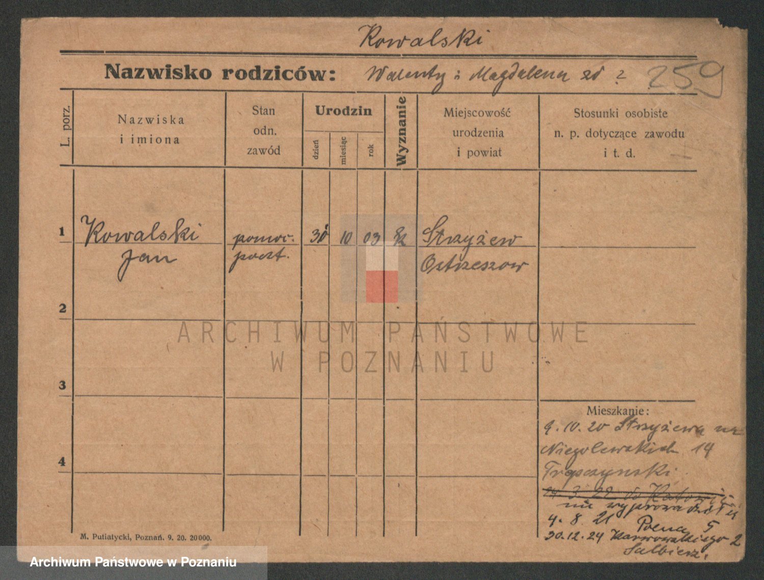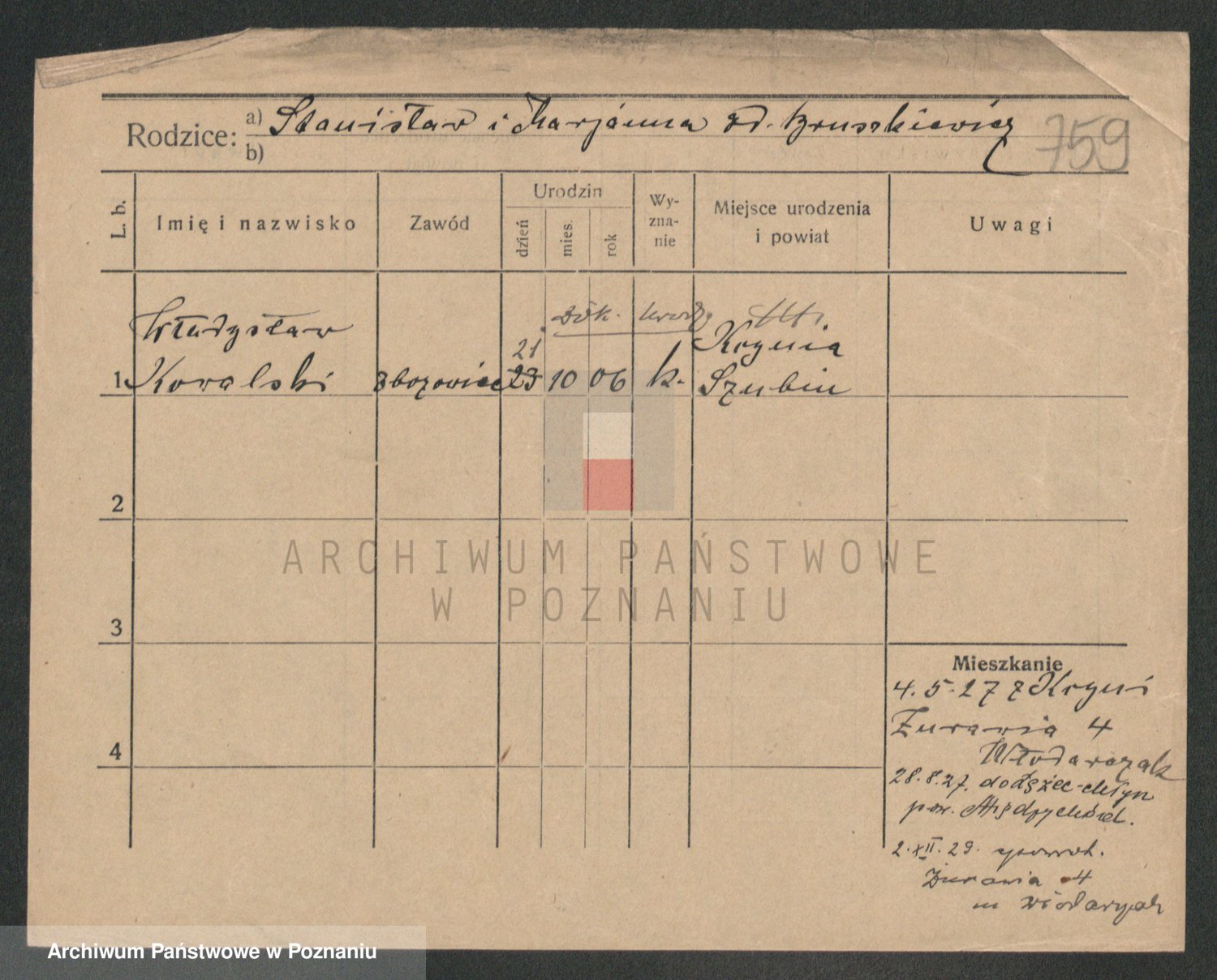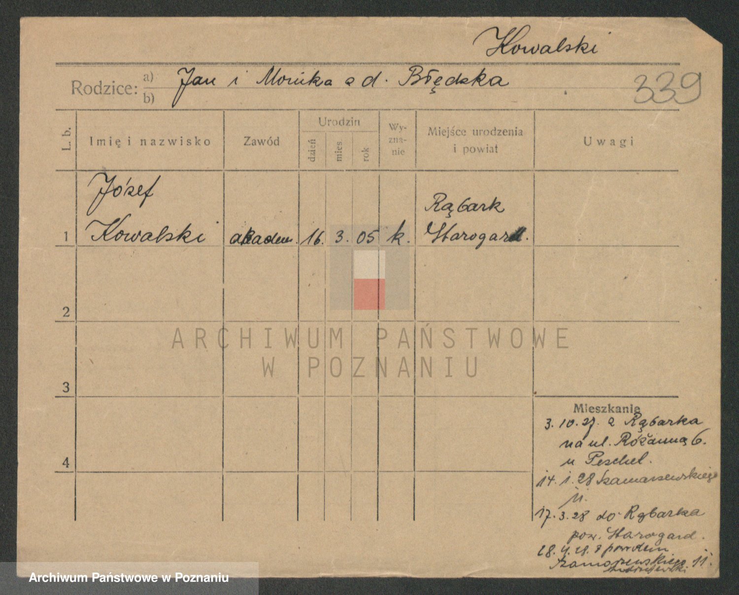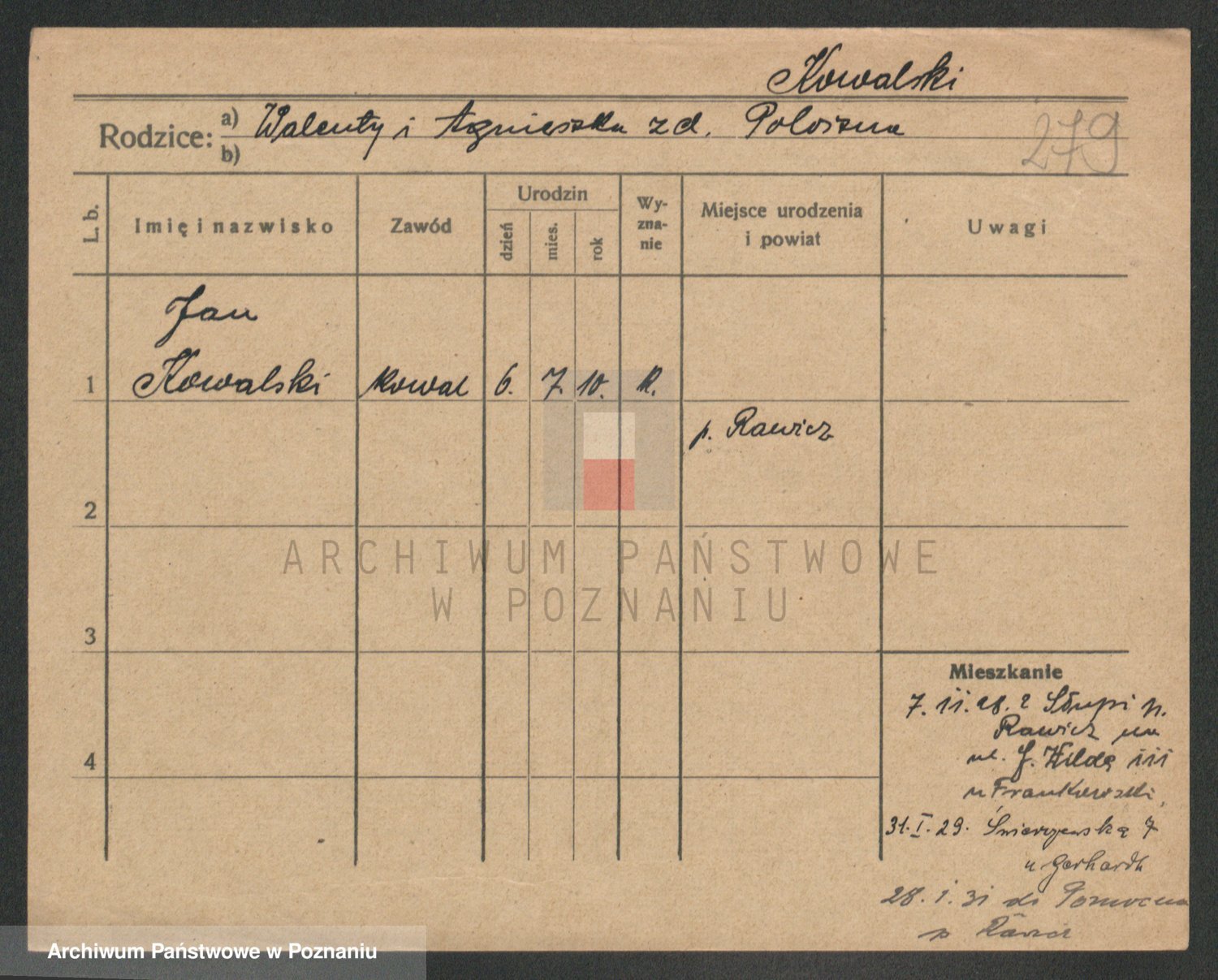 Podgląd karty osobowej dostępny jest po kliknięciu na nazwisko lub ikonkę karty. Można dokonywać powiększenia (ikony na górze) lub przechodzić między kolejnymi skanami (strzałki po bokach).