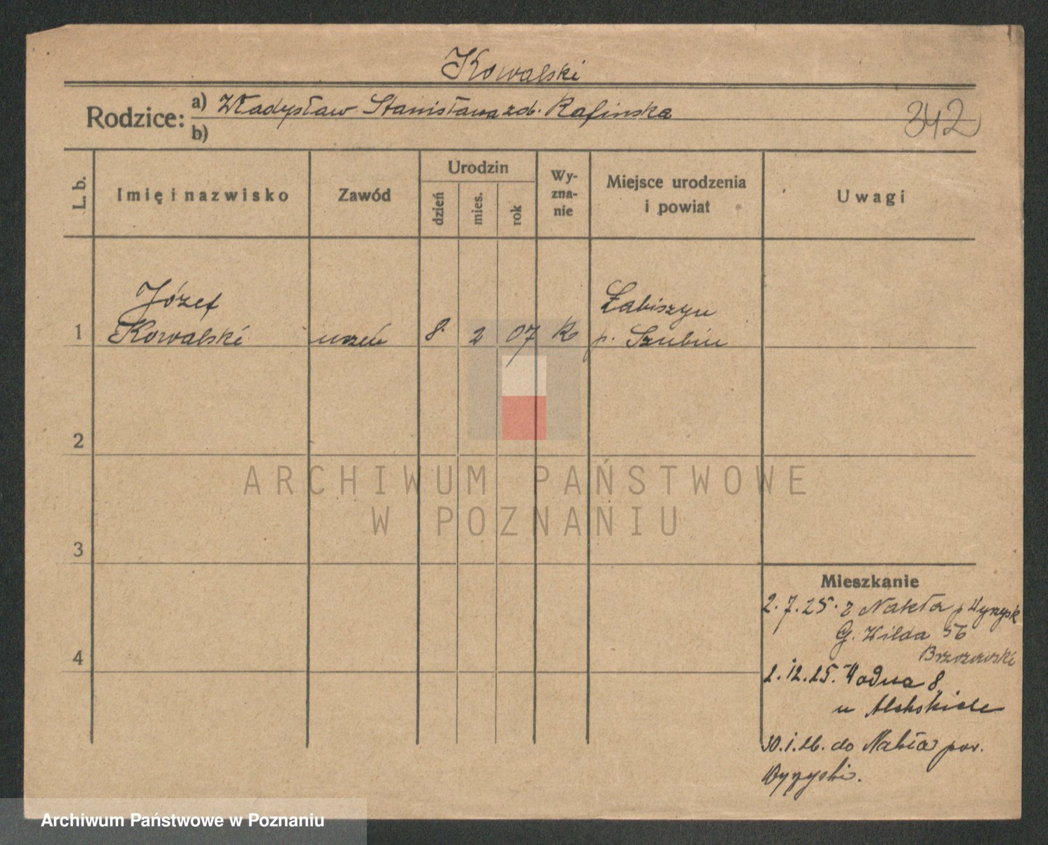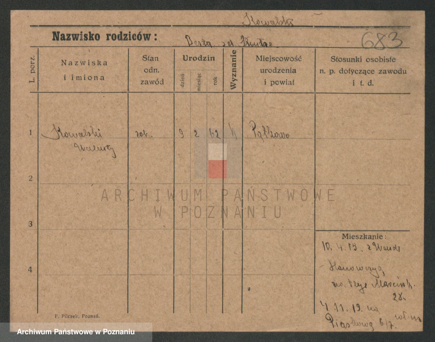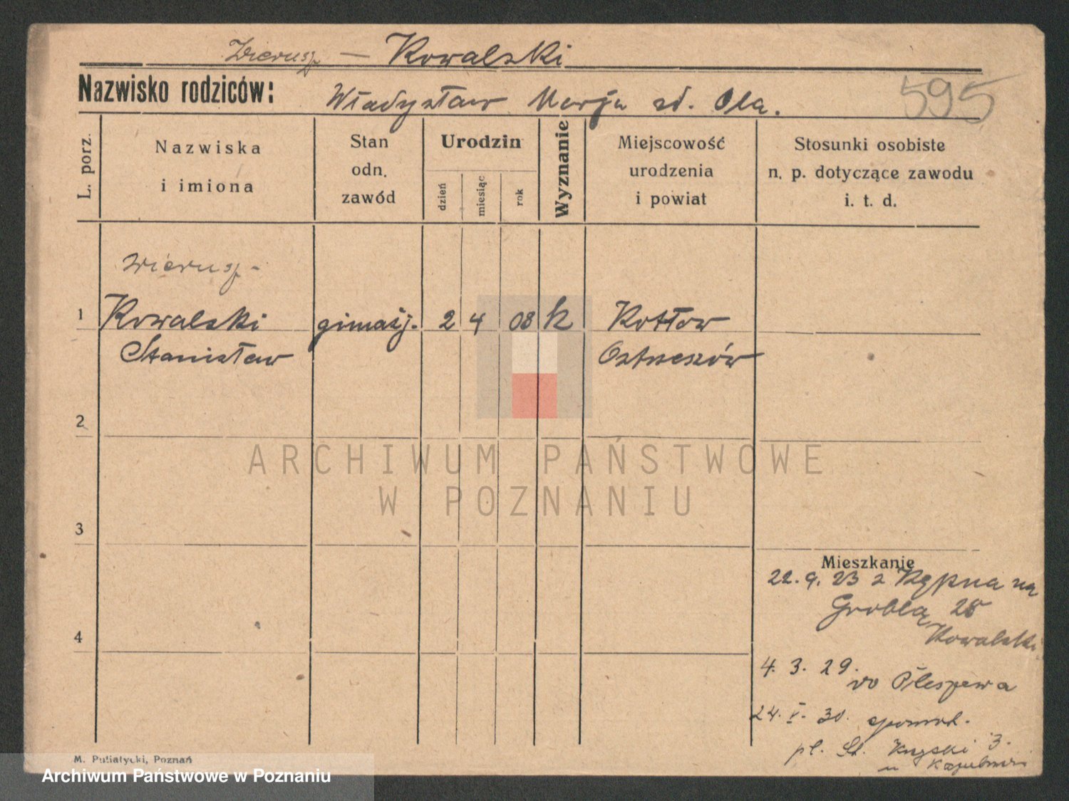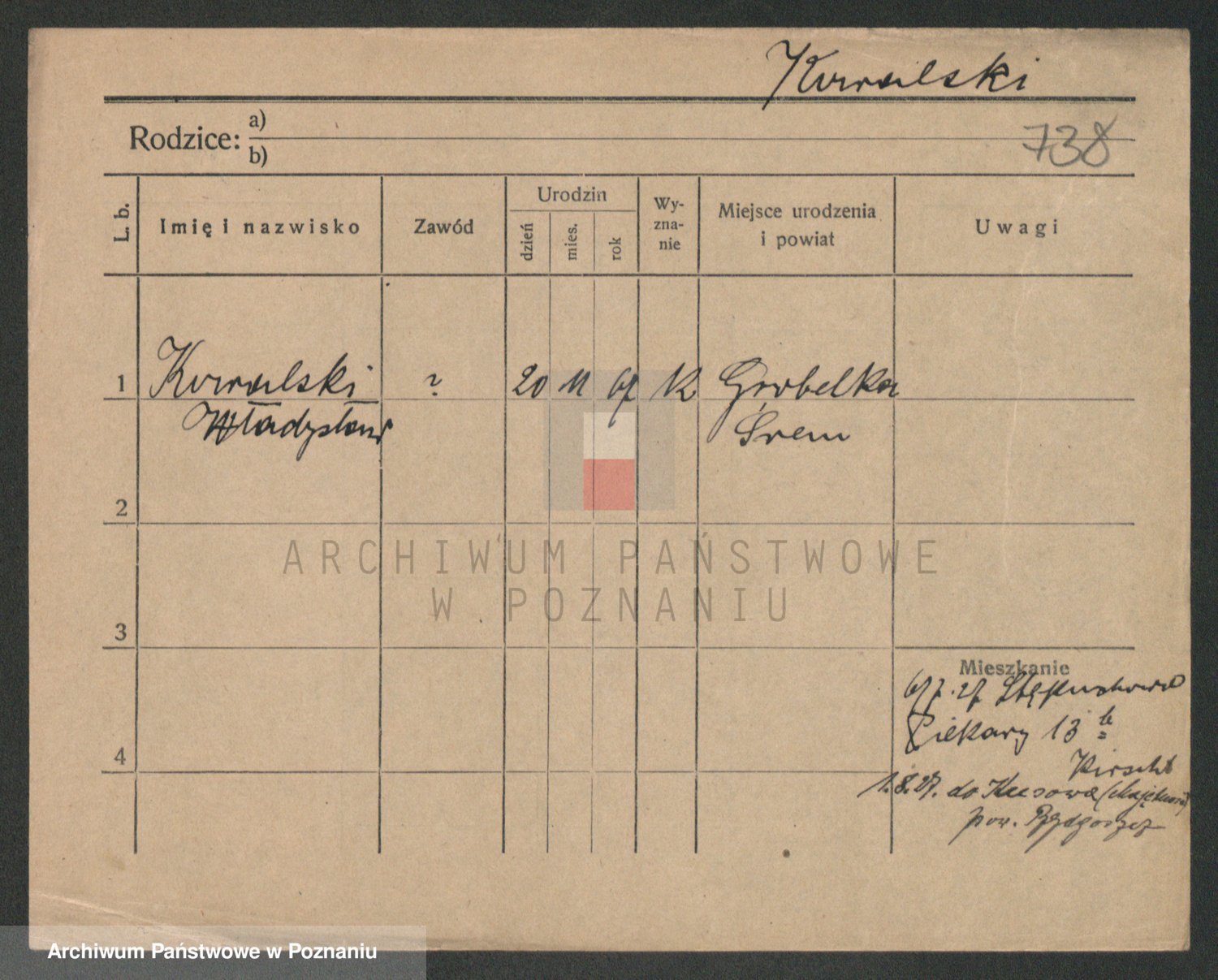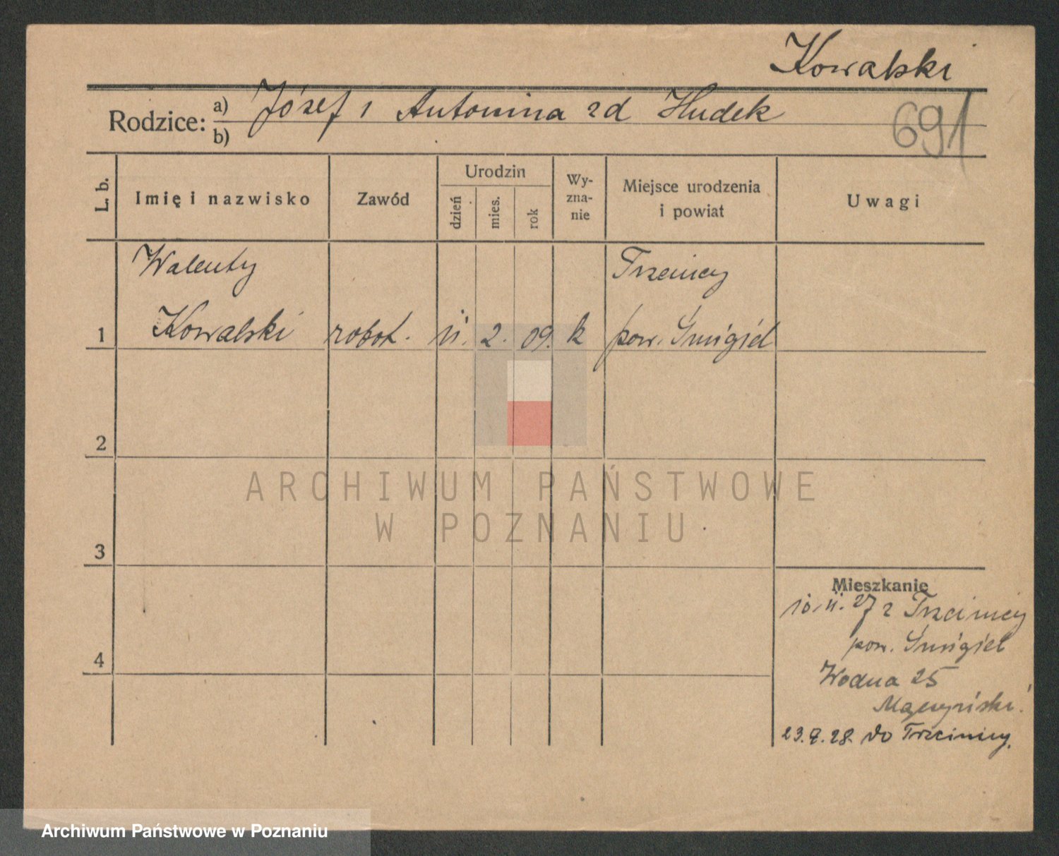 Podgląd karty osobowej dostępny jest po kliknięciu na nazwisko lub ikonkę karty. Można dokonywać powiększenia (ikony na górze) lub przechodzić między kolejnymi skanami (strzałki po bokach).