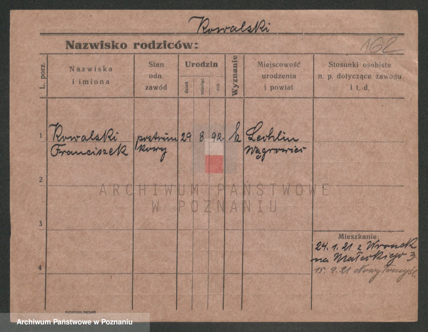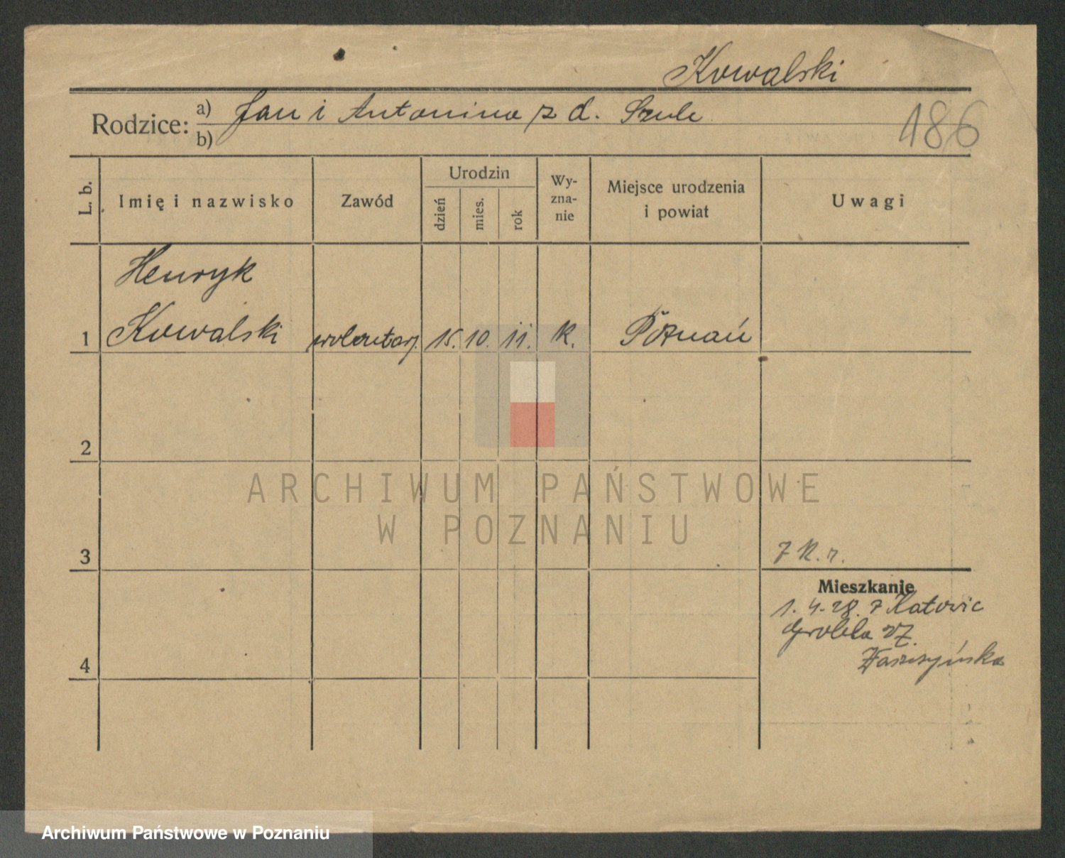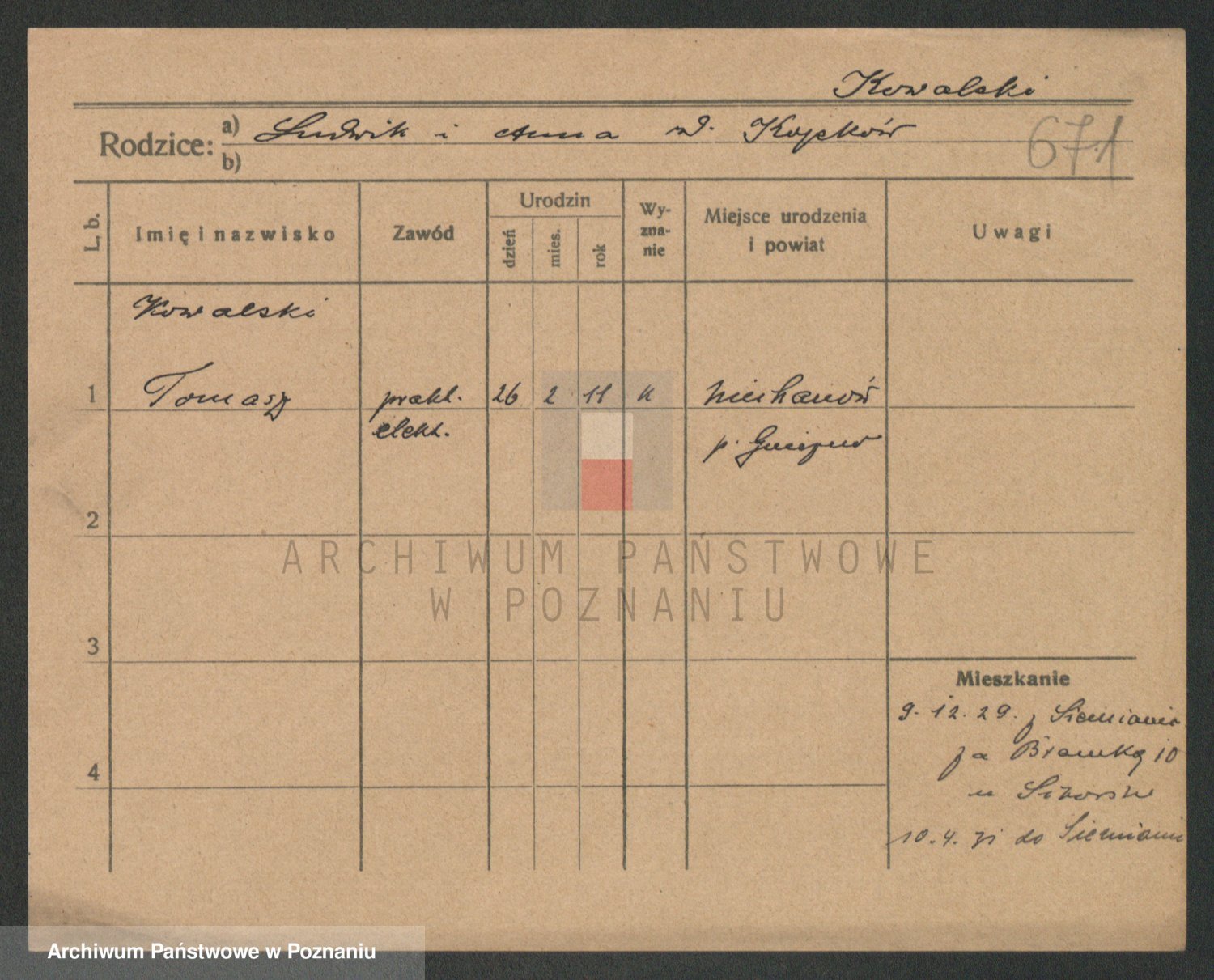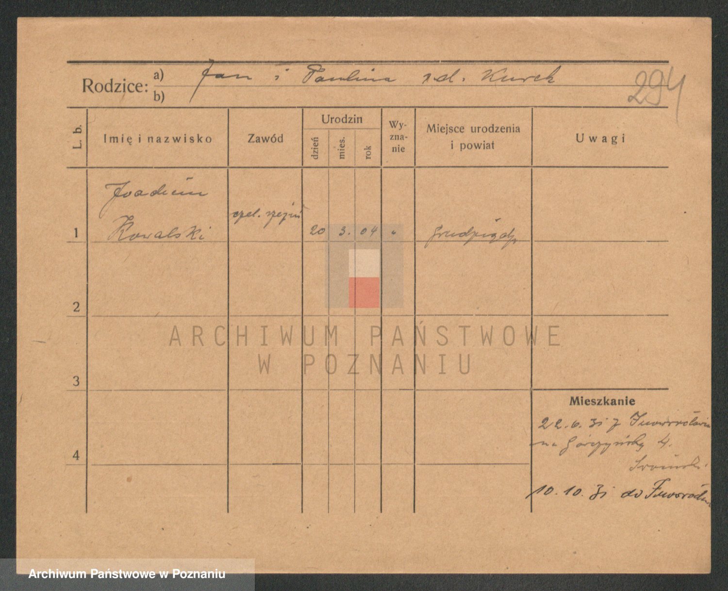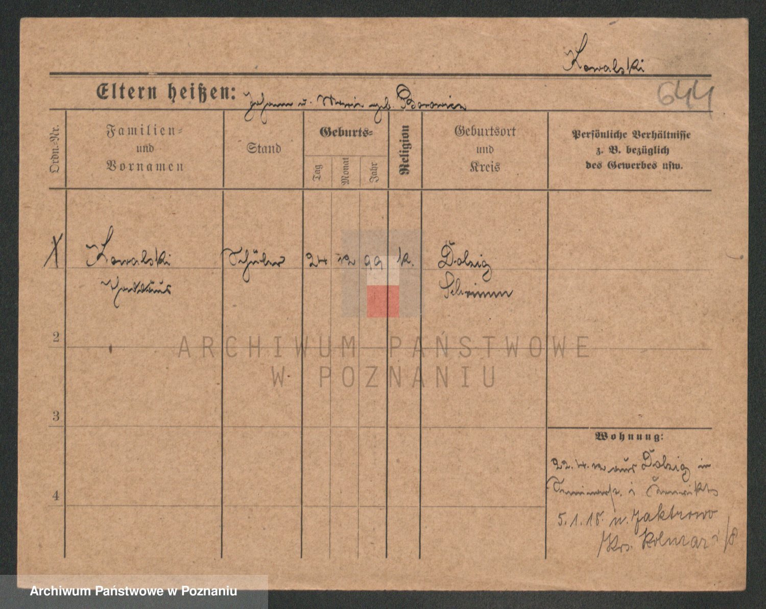 Podgląd karty osobowej dostępny jest po kliknięciu na nazwisko lub ikonkę karty. Można dokonywać powiększenia (ikony na górze) lub przechodzić między kolejnymi skanami (strzałki po bokach).