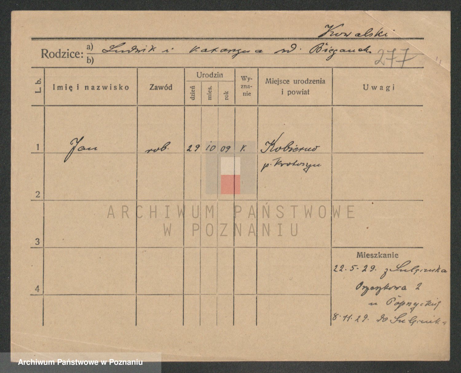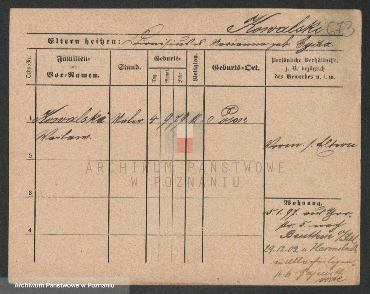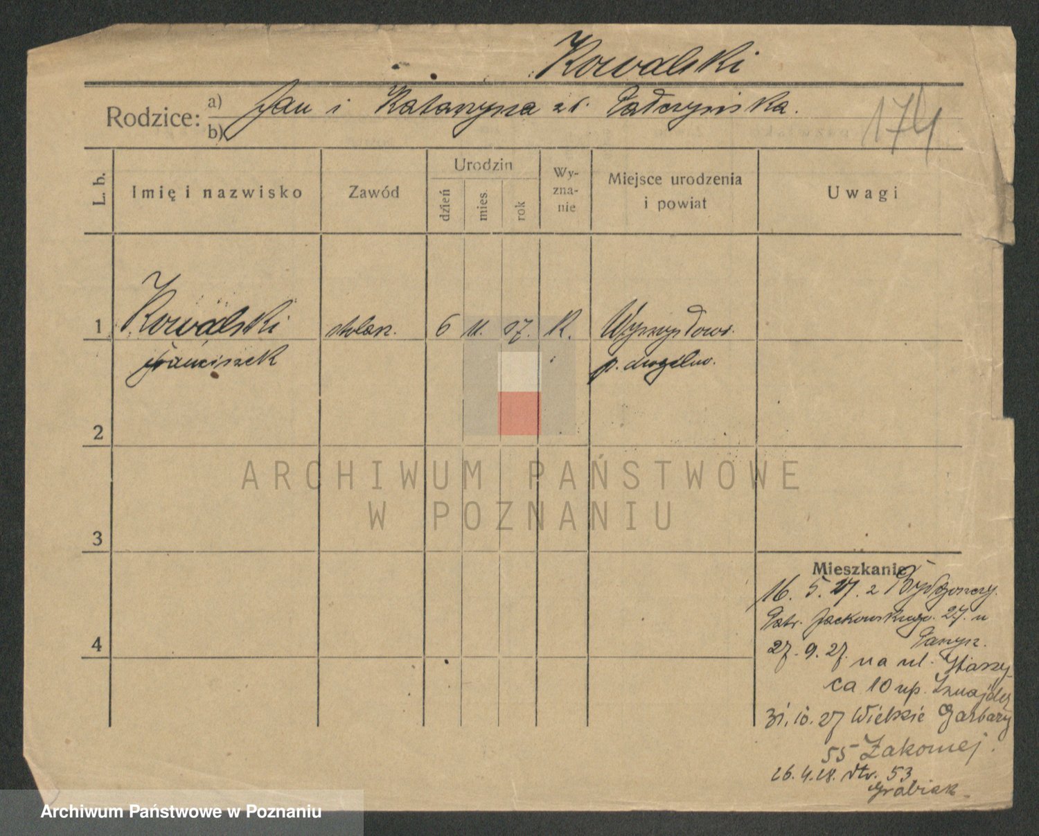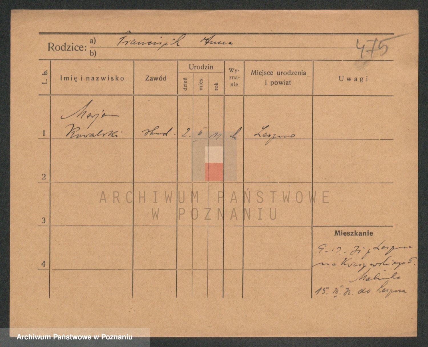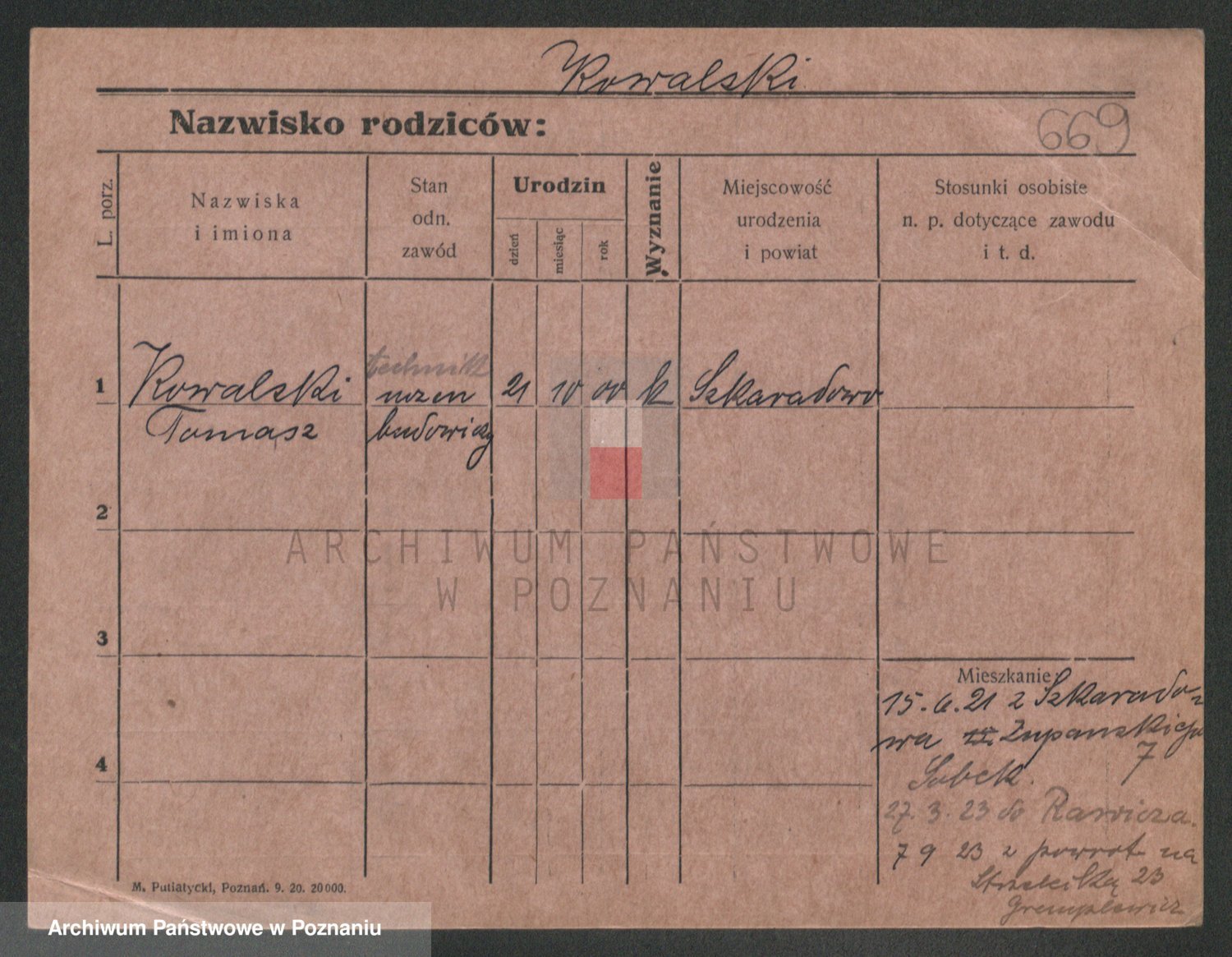 Podgląd karty osobowej dostępny jest po kliknięciu na nazwisko lub ikonkę karty. Można dokonywać powiększenia (ikony na górze) lub przechodzić między kolejnymi skanami (strzałki po bokach).