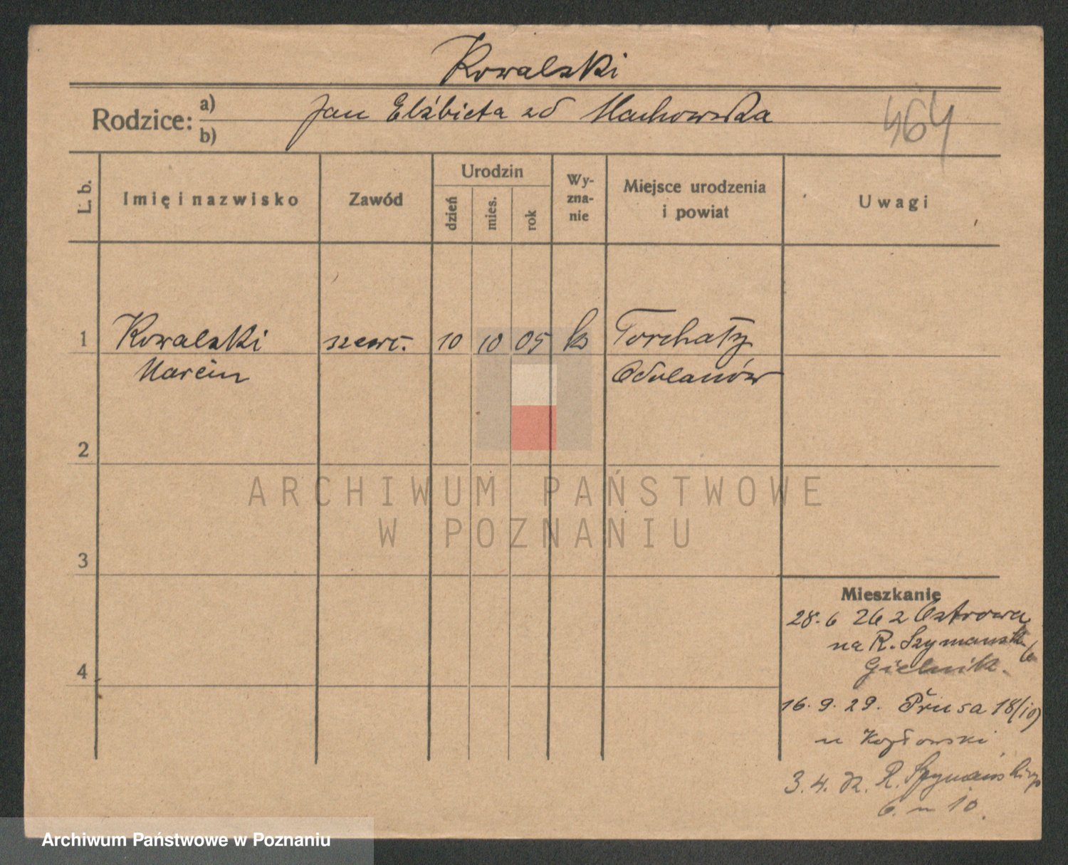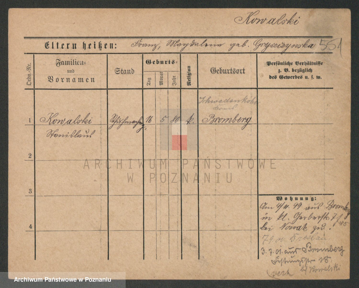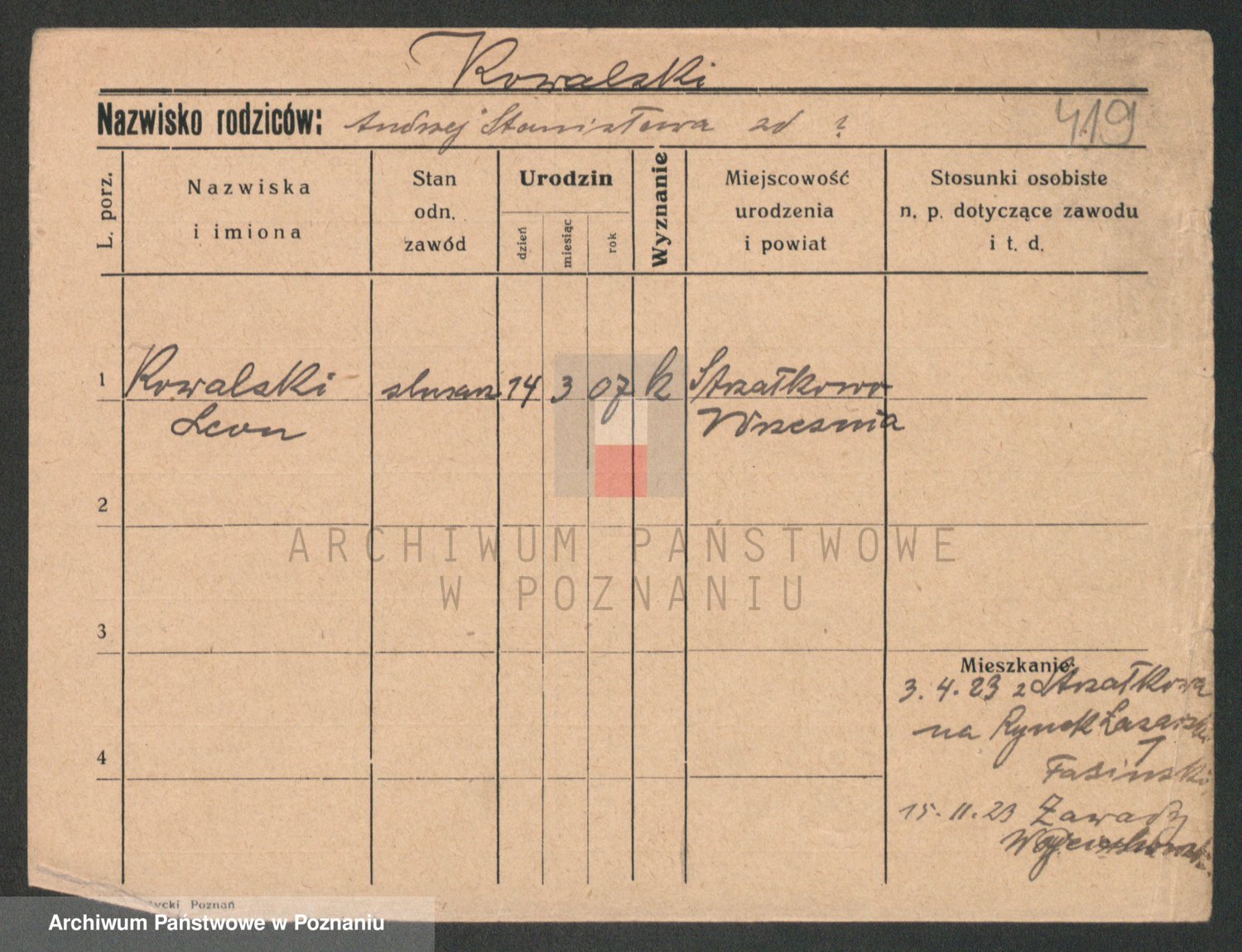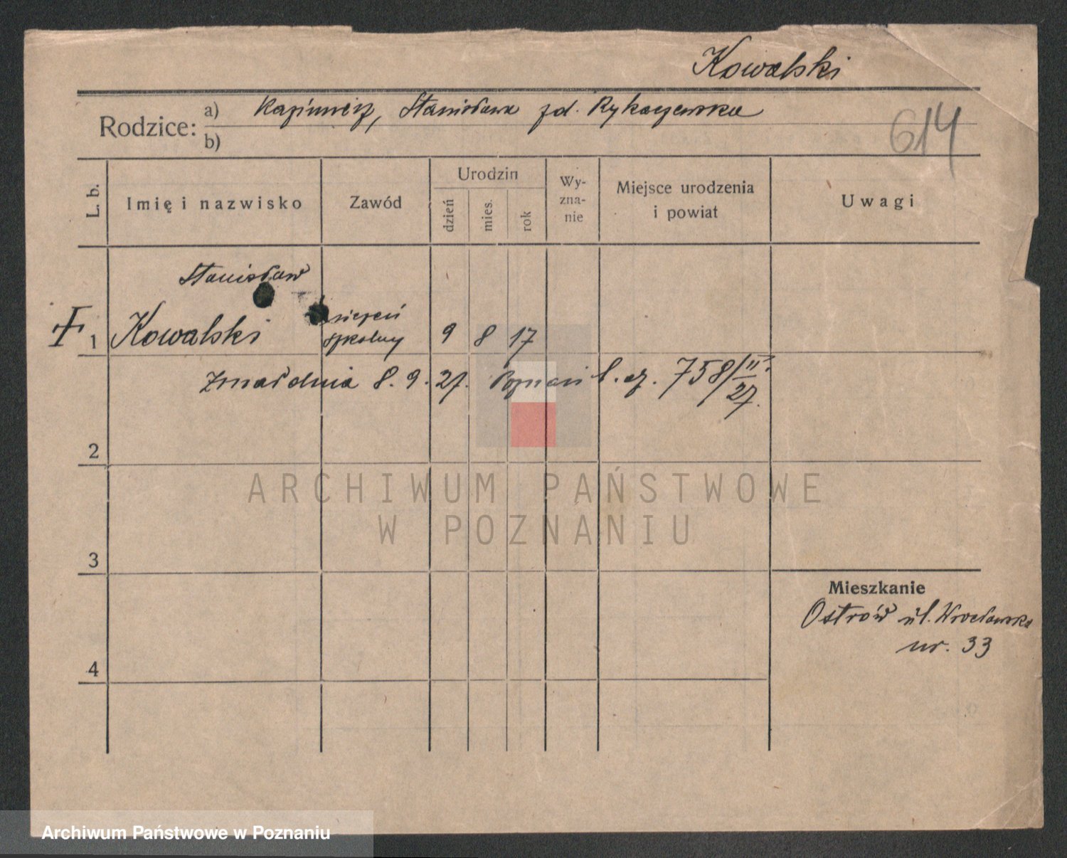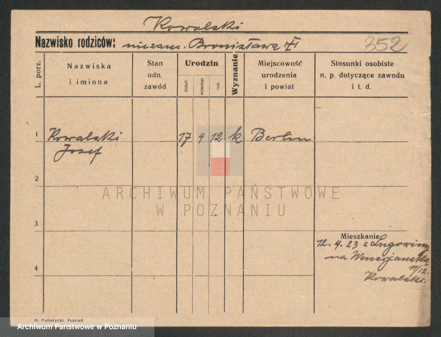 Podgląd karty osobowej dostępny jest po kliknięciu na nazwisko lub ikonkę karty. Można dokonywać powiększenia (ikony na górze) lub przechodzić między kolejnymi skanami (strzałki po bokach).