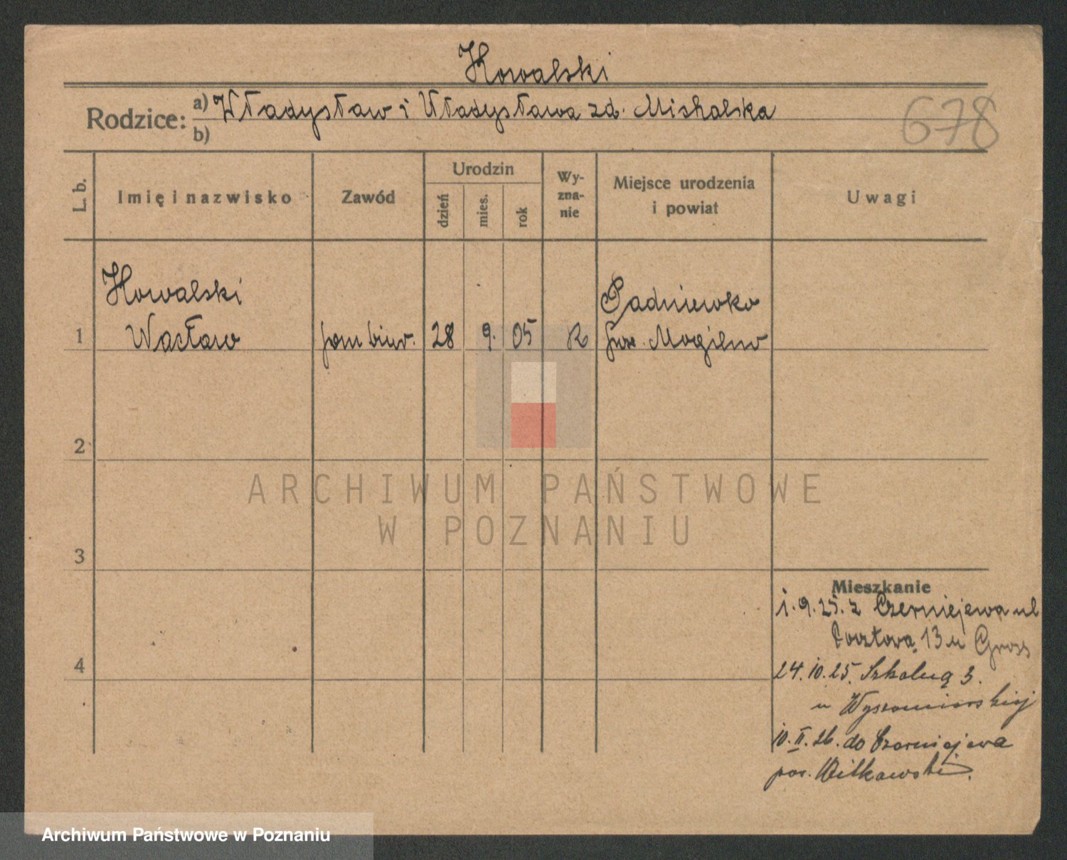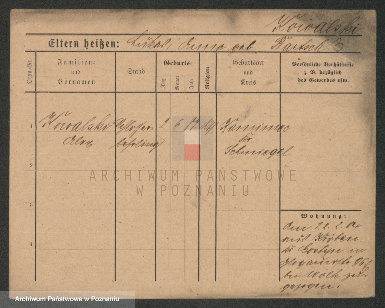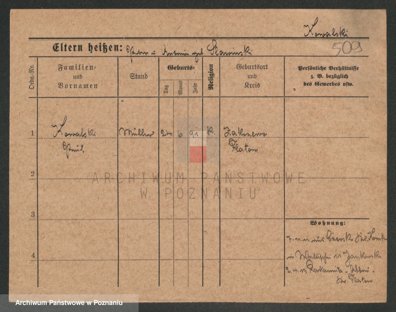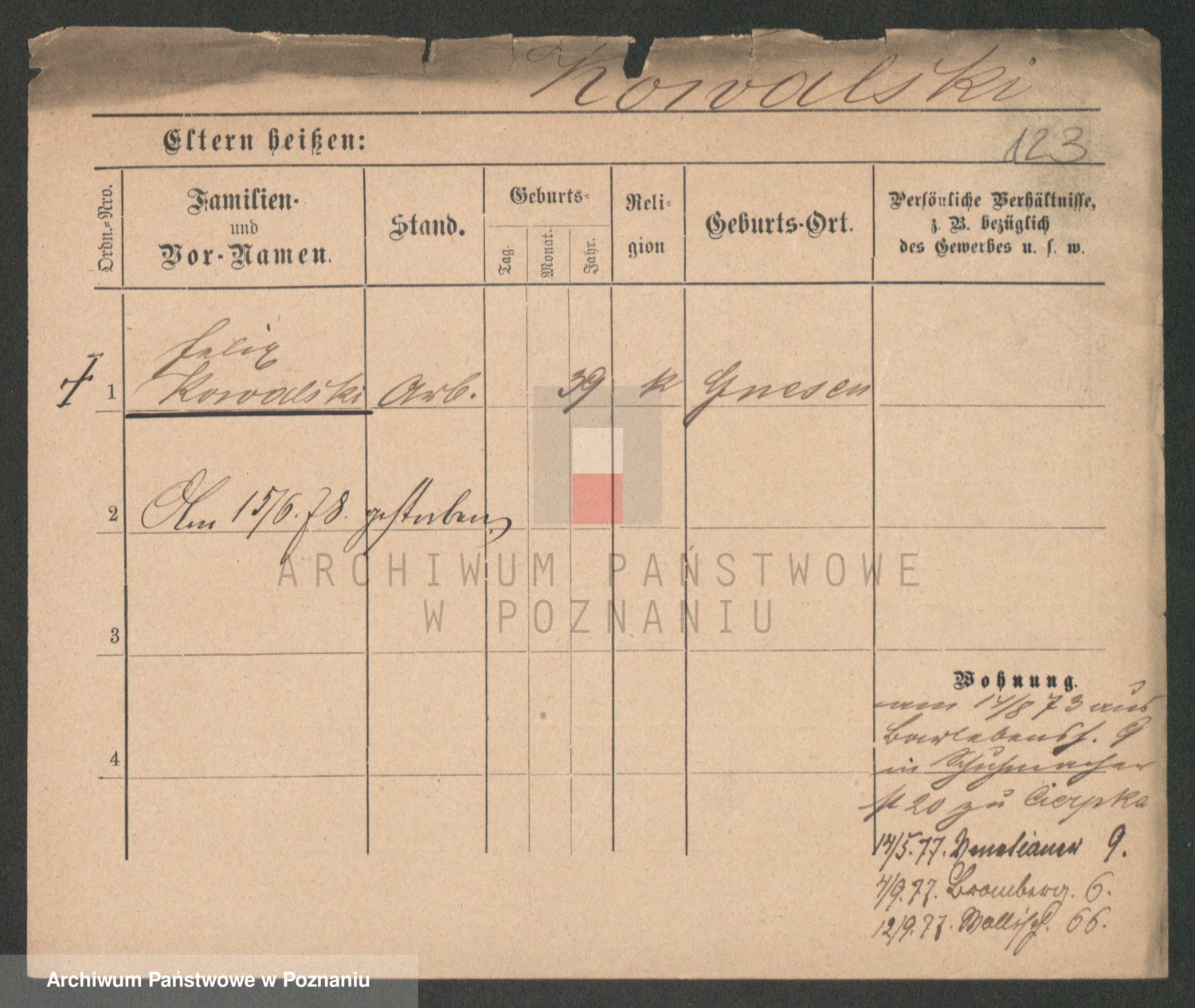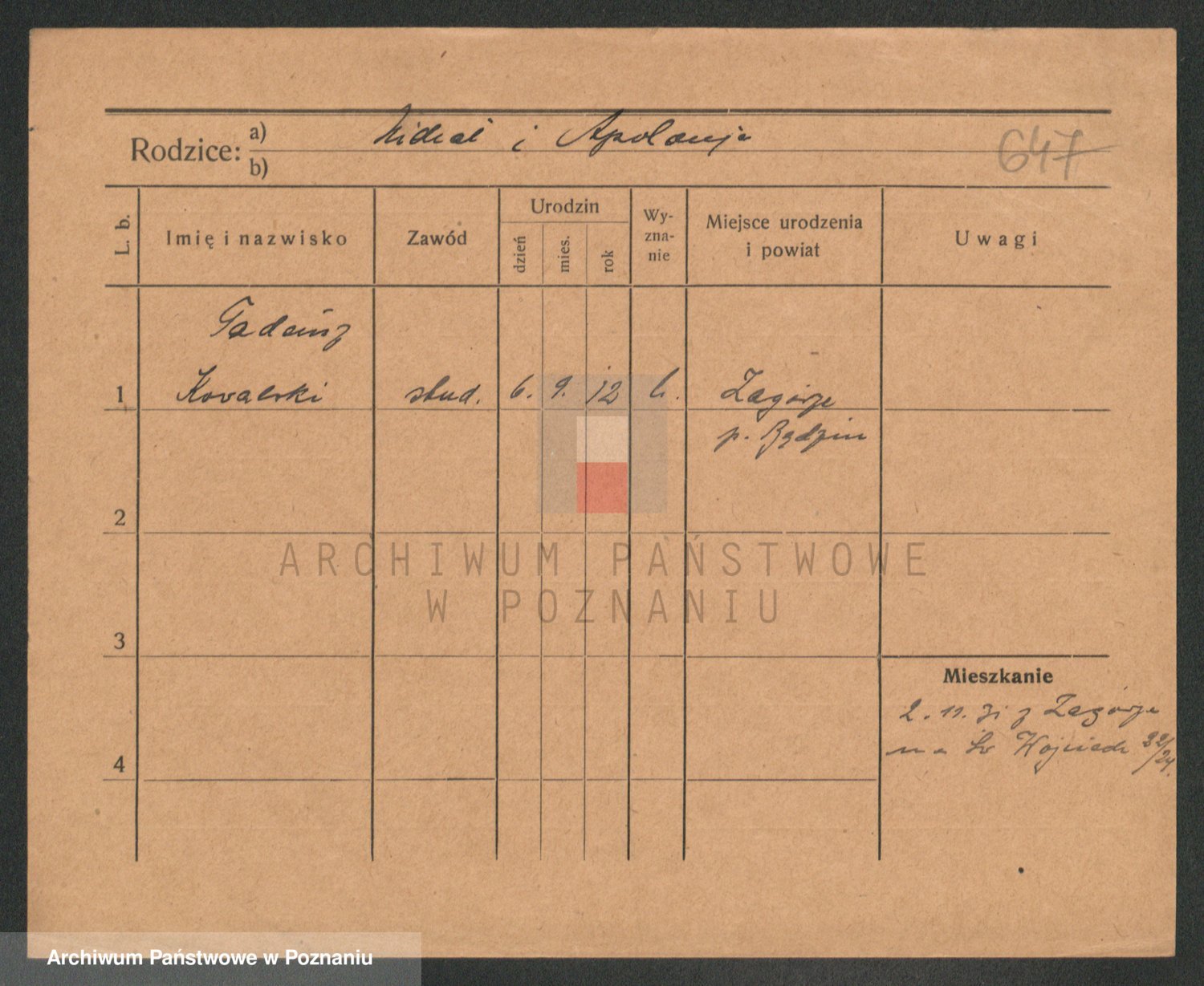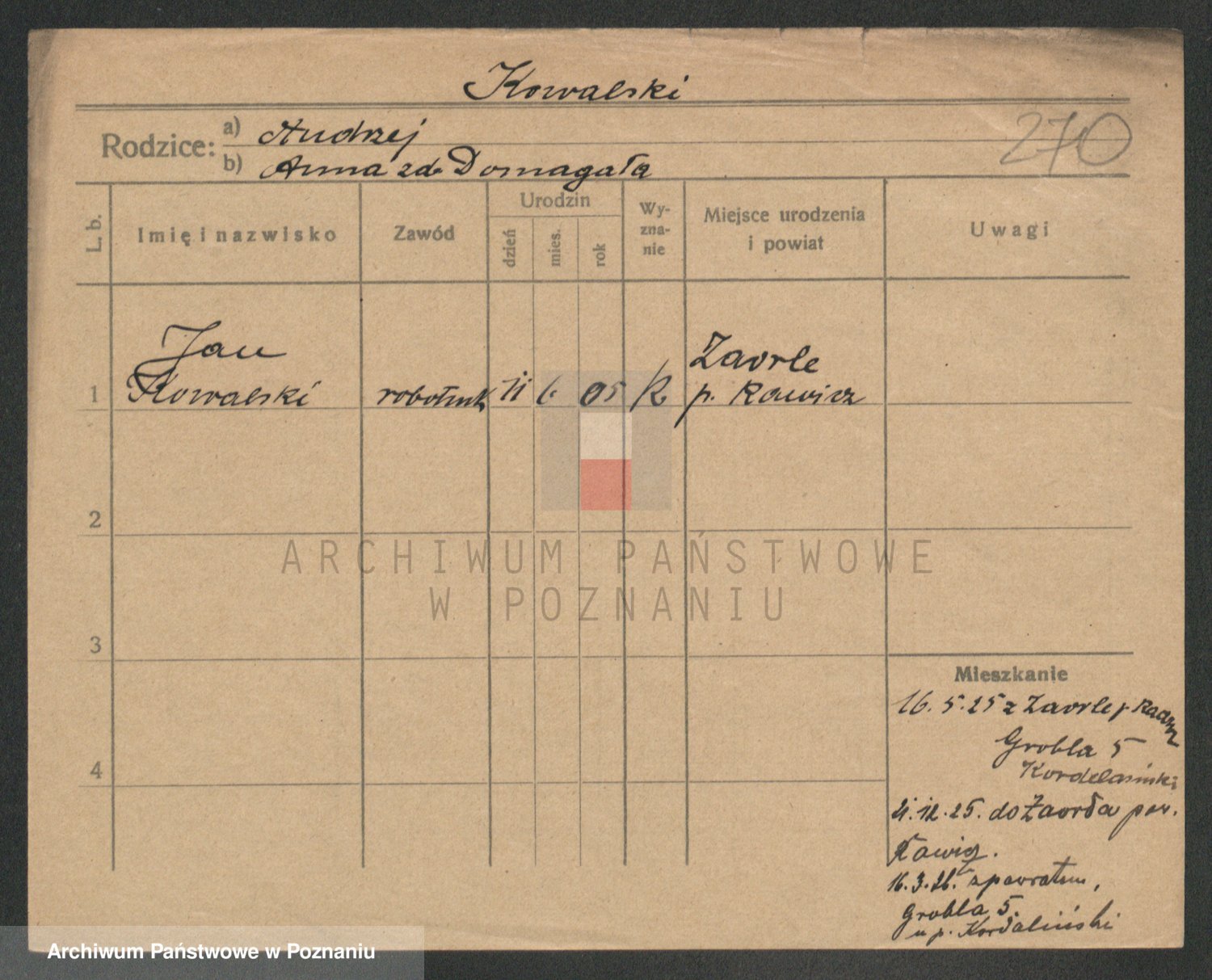 Podgląd karty osobowej dostępny jest po kliknięciu na nazwisko lub ikonkę karty. Można dokonywać powiększenia (ikony na górze) lub przechodzić między kolejnymi skanami (strzałki po bokach).