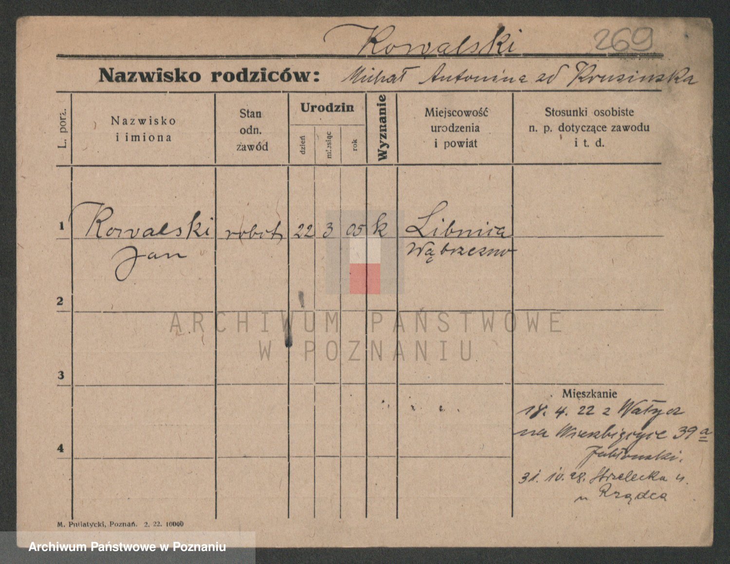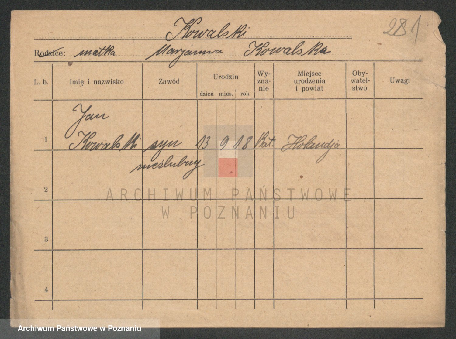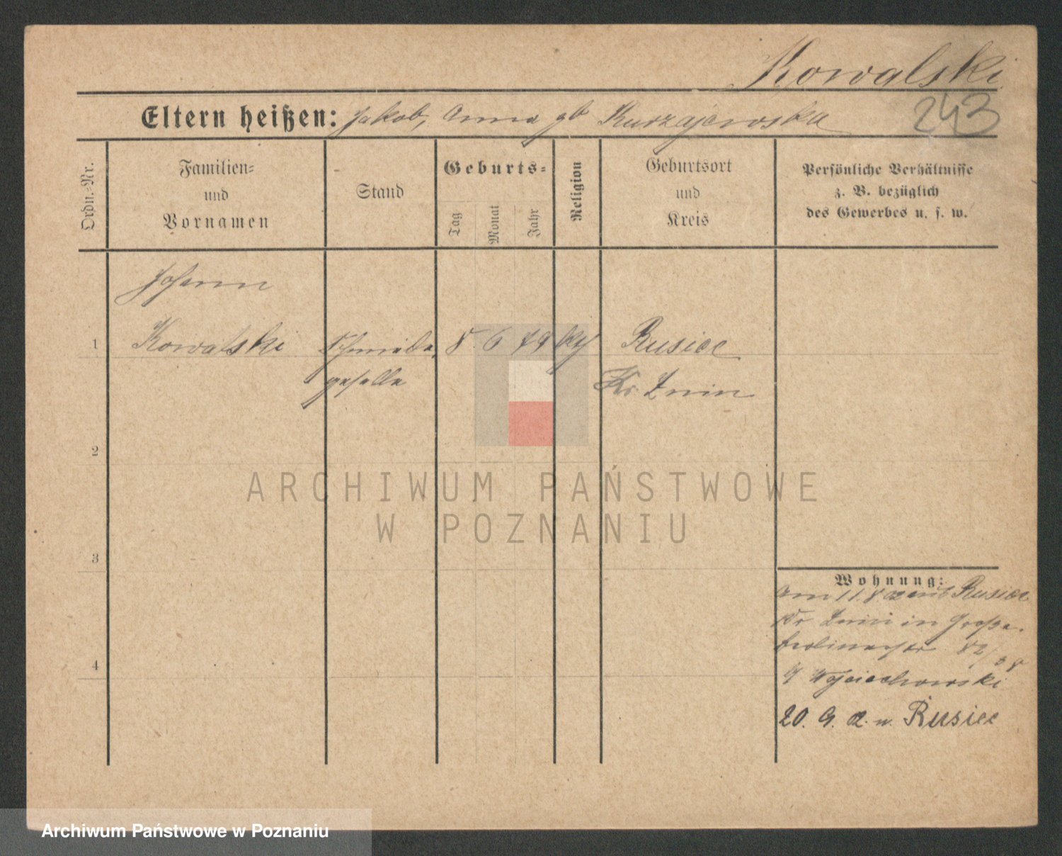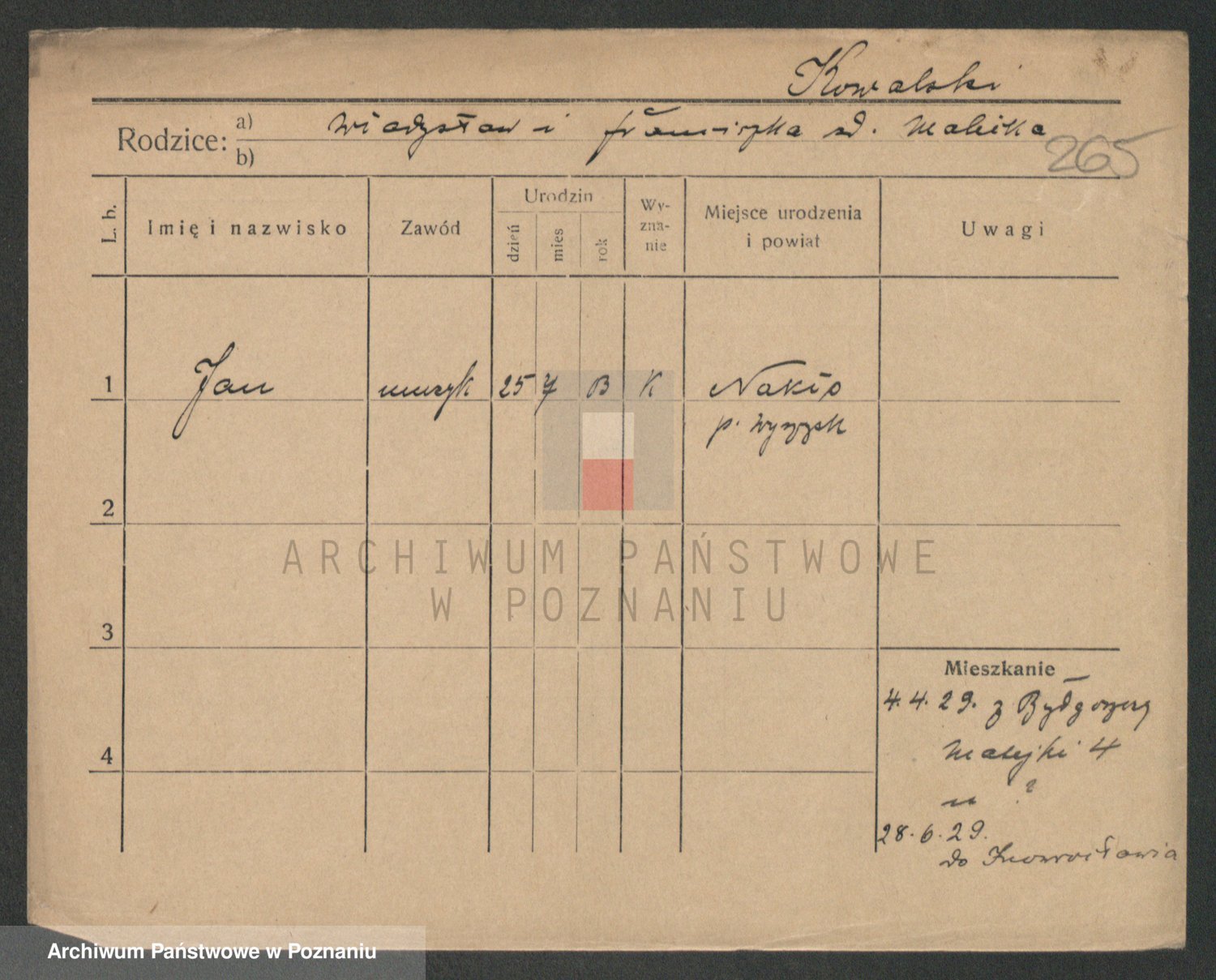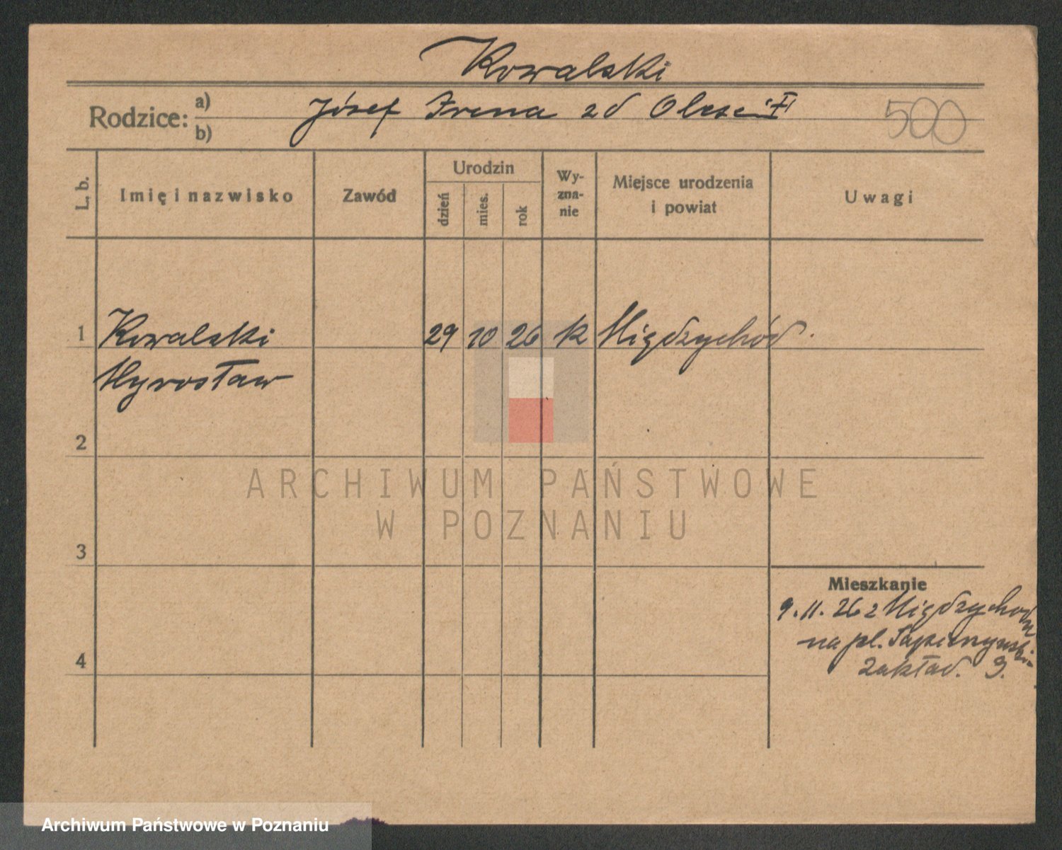 Podgląd karty osobowej dostępny jest po kliknięciu na nazwisko lub ikonkę karty. Można dokonywać powiększenia (ikony na górze) lub przechodzić między kolejnymi skanami (strzałki po bokach).