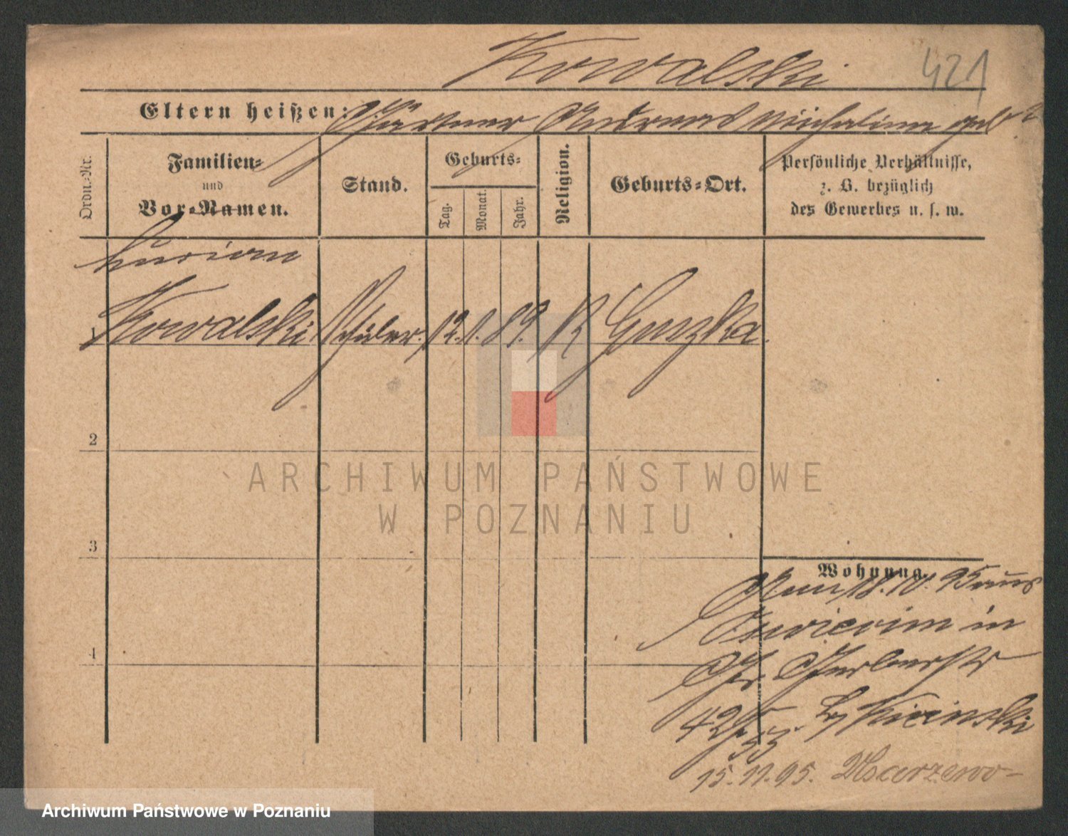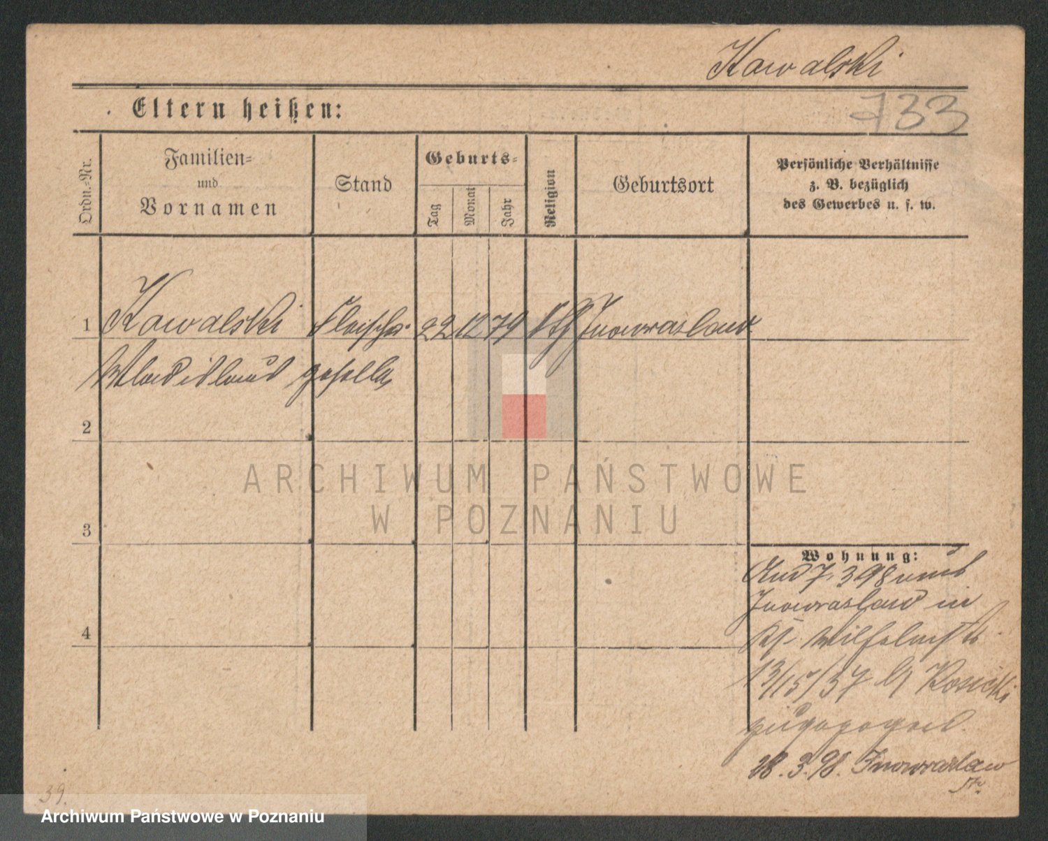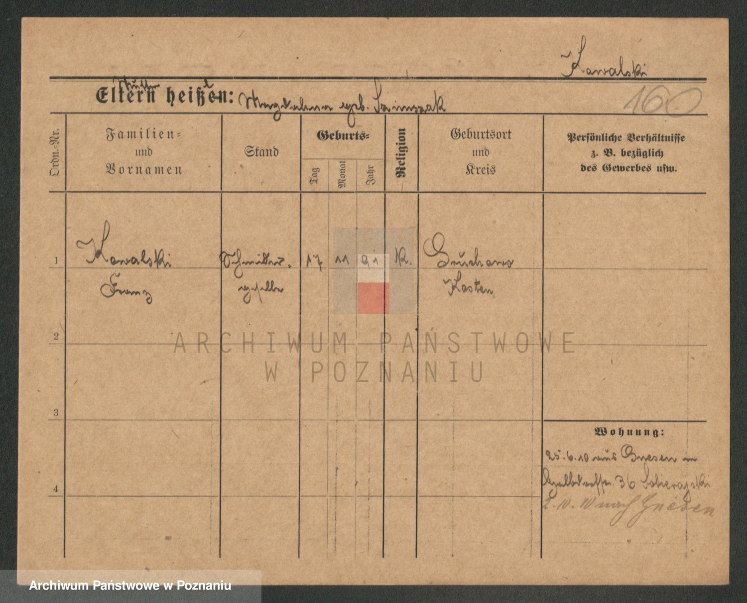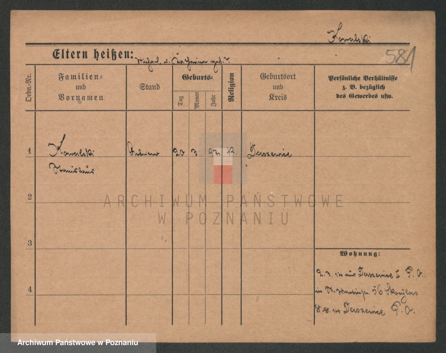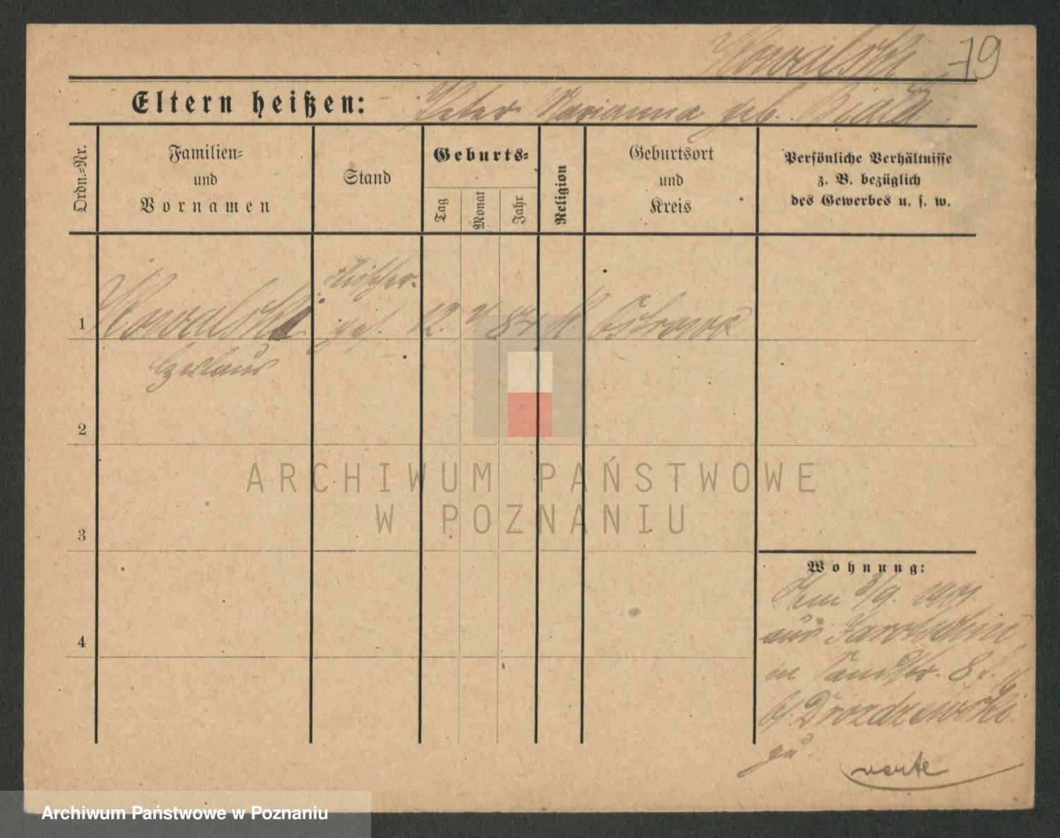 Podgląd karty osobowej dostępny jest po kliknięciu na nazwisko lub ikonkę karty. Można dokonywać powiększenia (ikony na górze) lub przechodzić między kolejnymi skanami (strzałki po bokach).