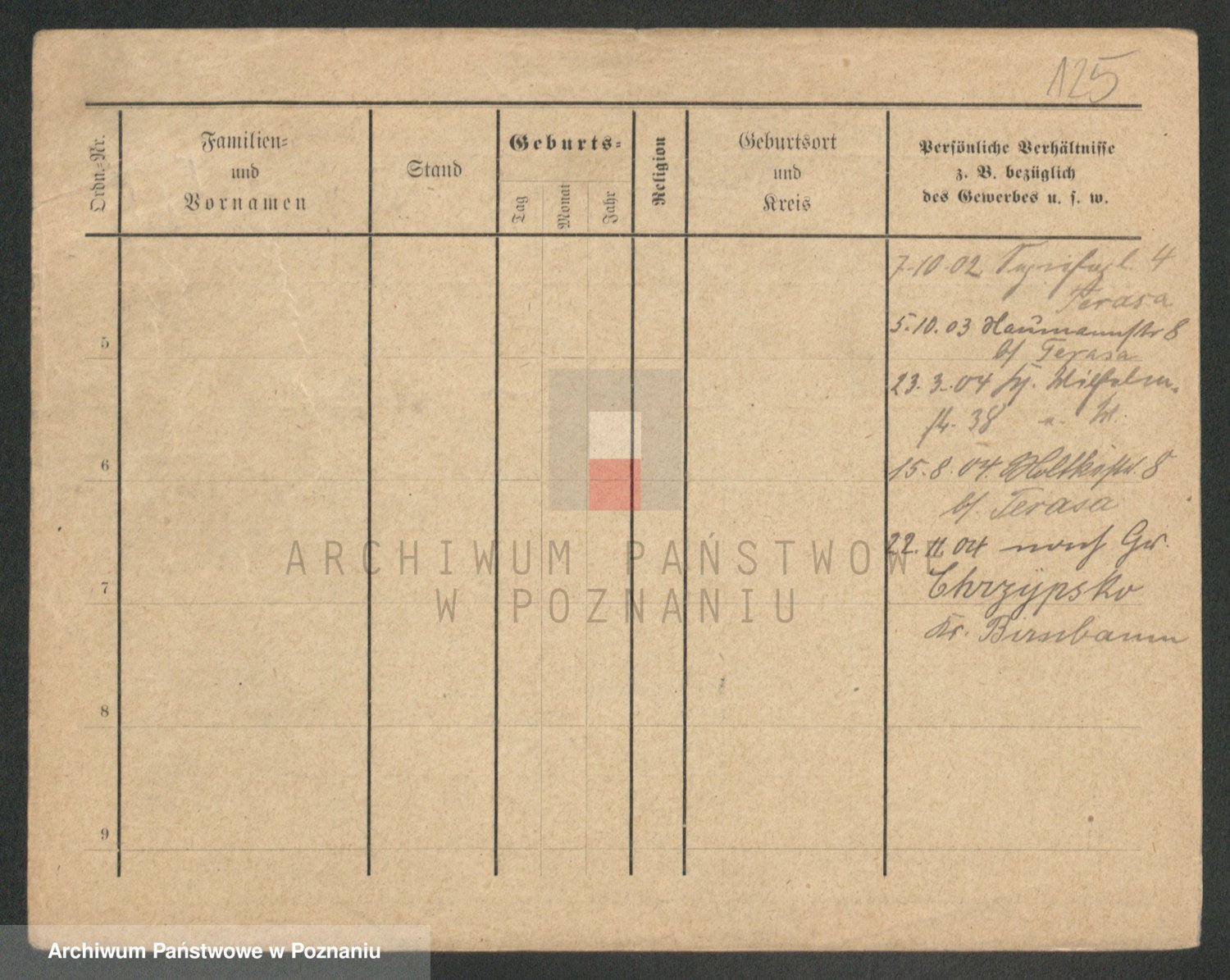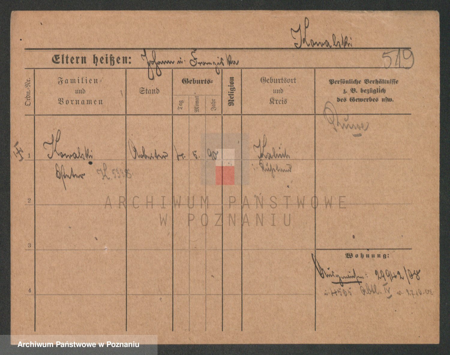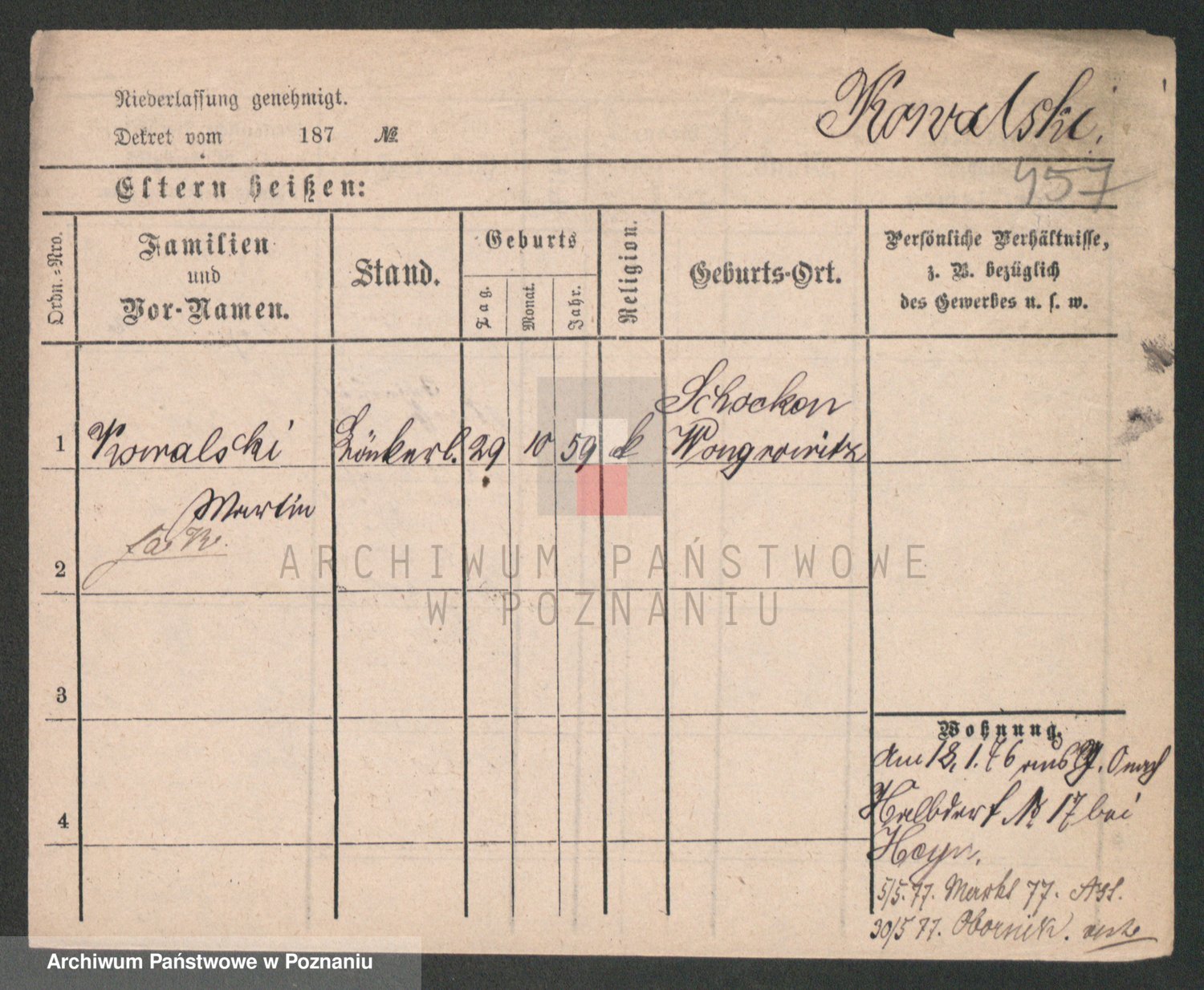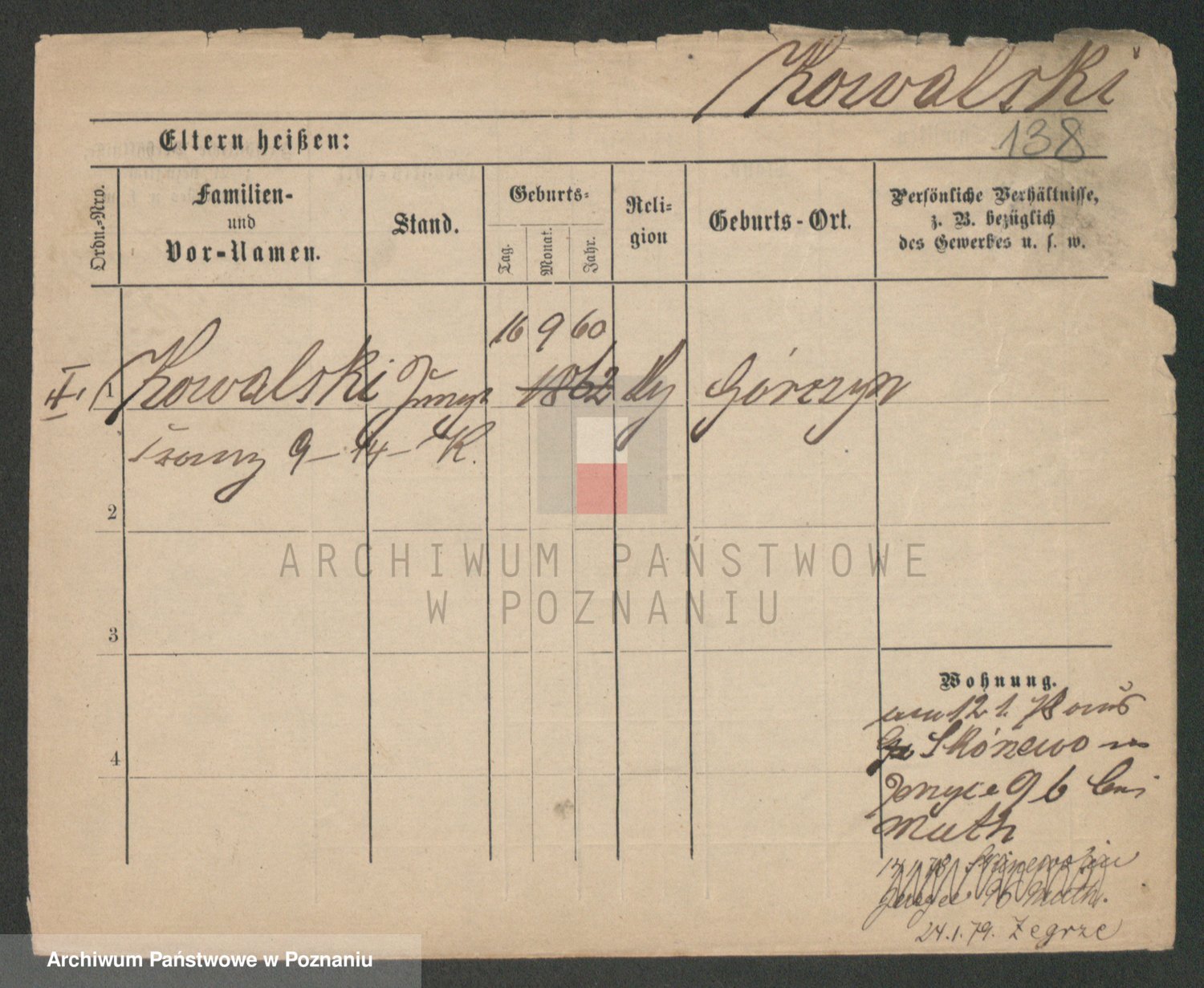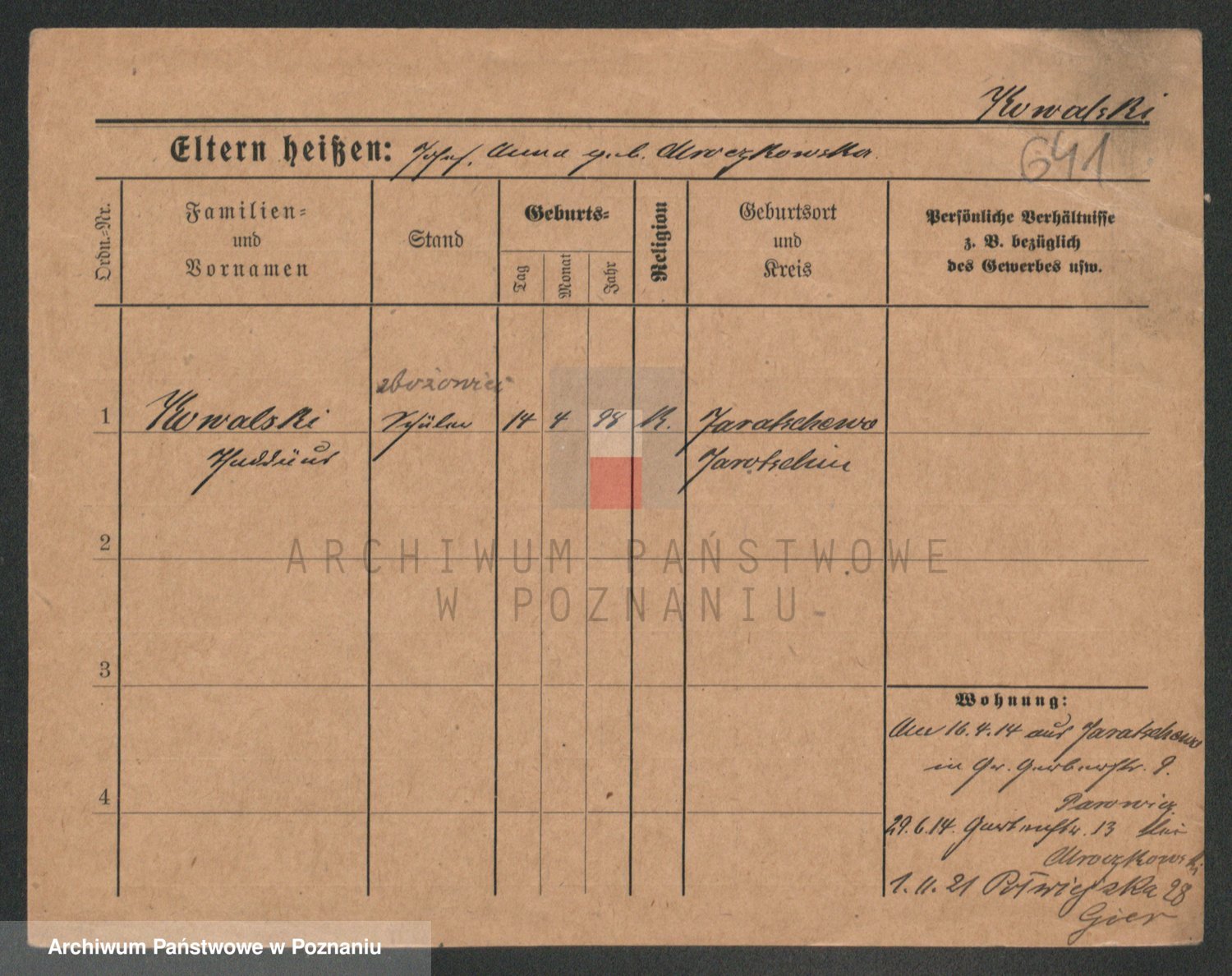 Podgląd karty osobowej dostępny jest po kliknięciu na nazwisko lub ikonkę karty. Można dokonywać powiększenia (ikony na górze) lub przechodzić między kolejnymi skanami (strzałki po bokach).