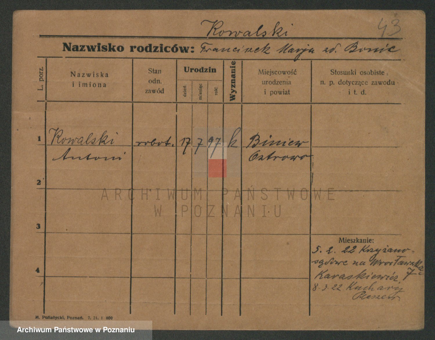 Kowalski, Apolinar Rochus