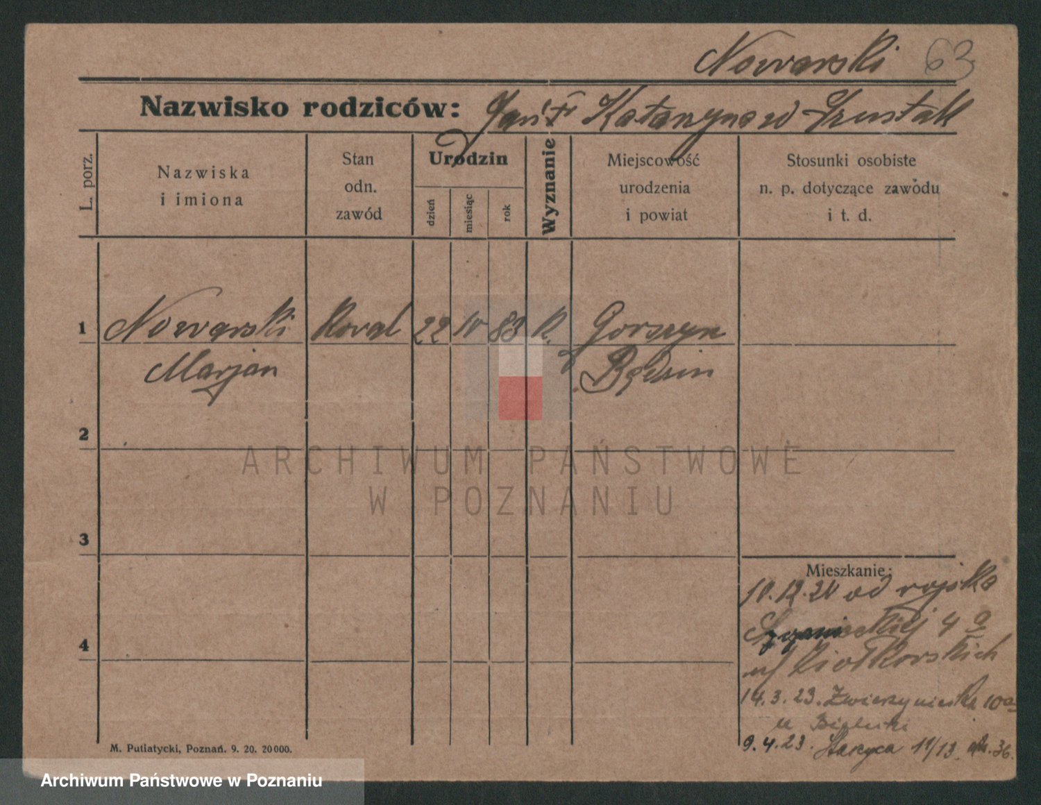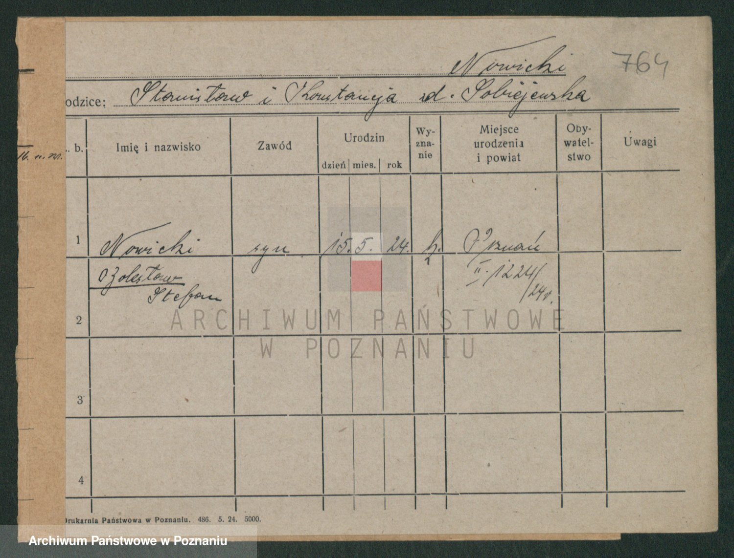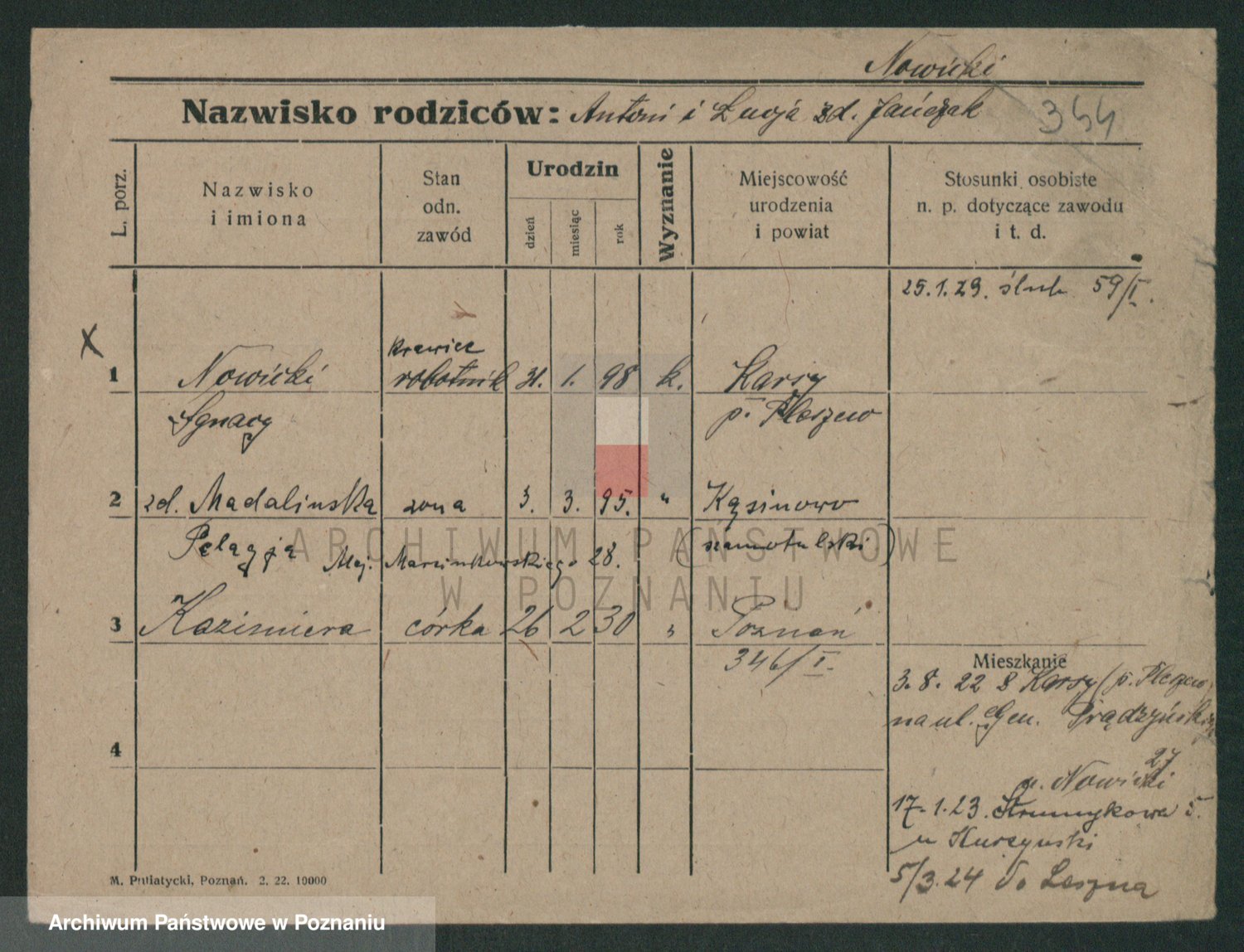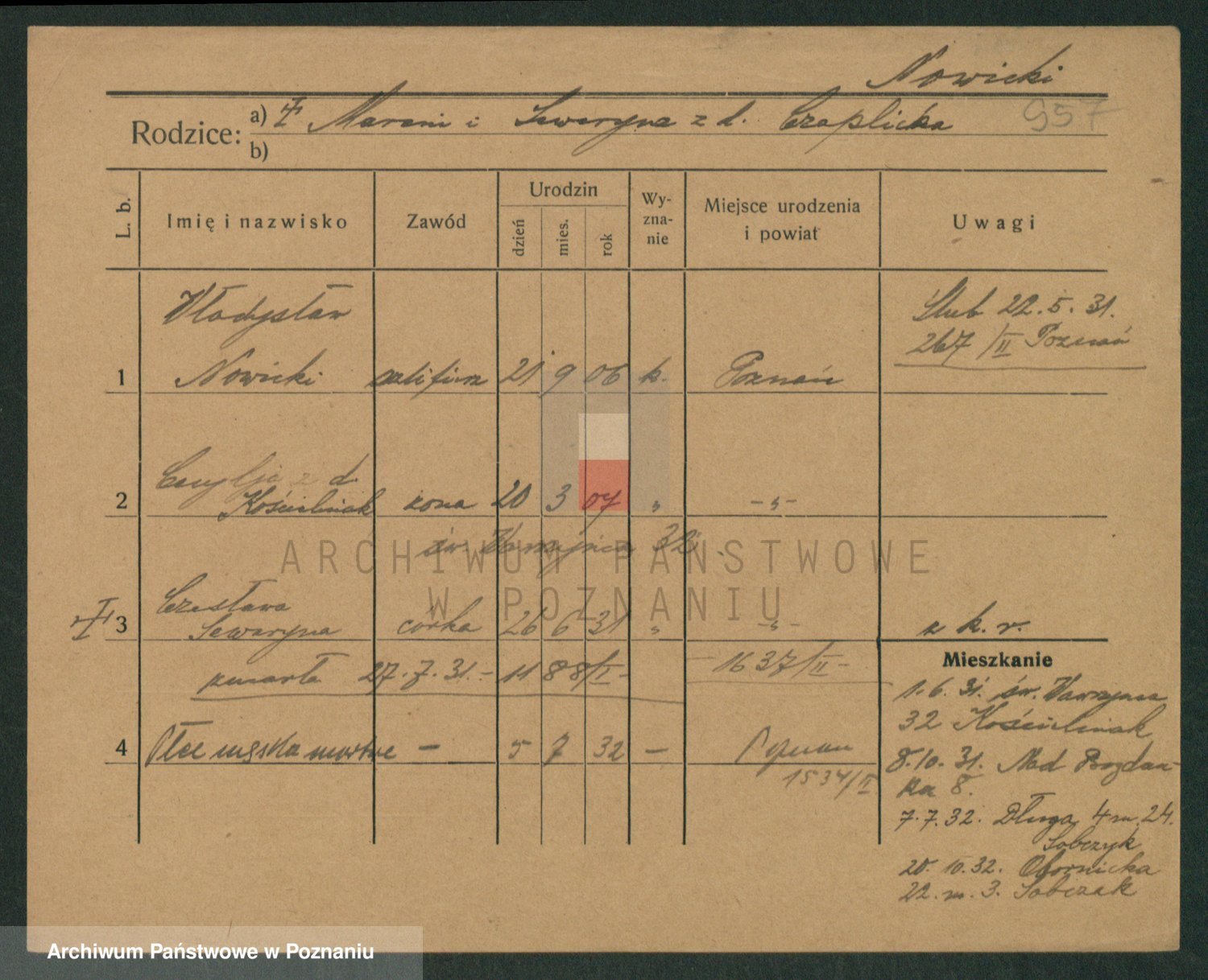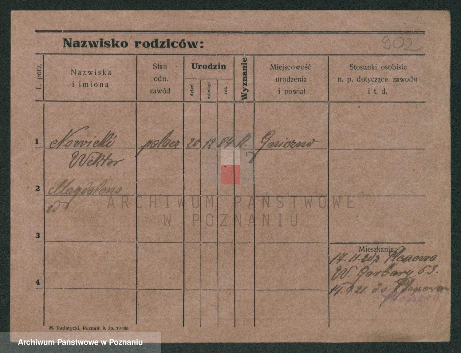 Podgląd karty osobowej dostępny jest po kliknięciu na nazwisko lub ikonkę karty. Można dokonywać powiększenia (ikony na górze) lub przechodzić między kolejnymi skanami (strzałki po bokach).