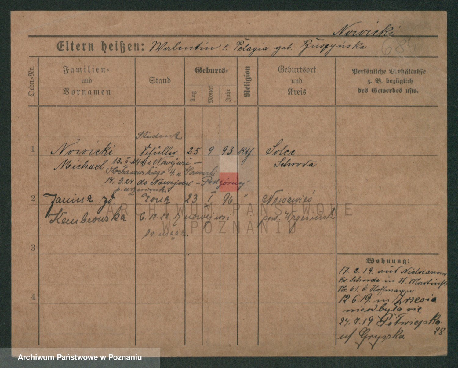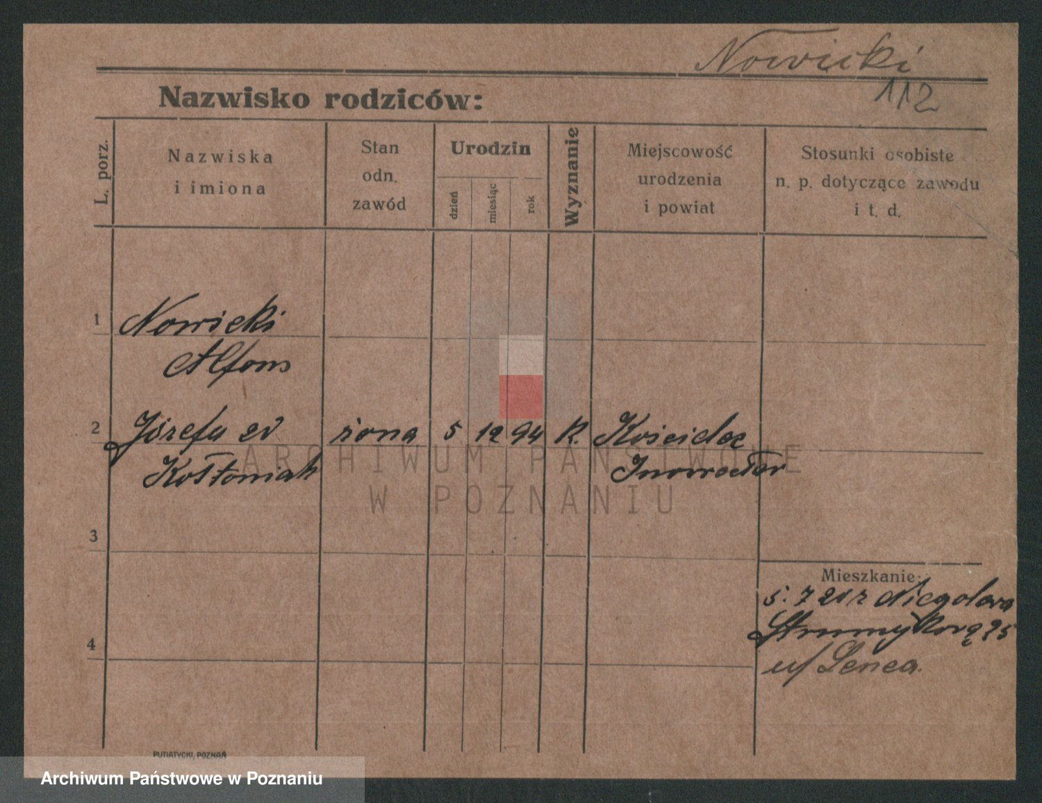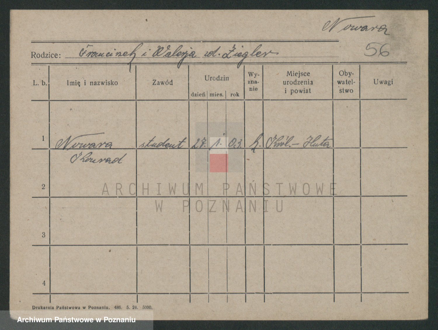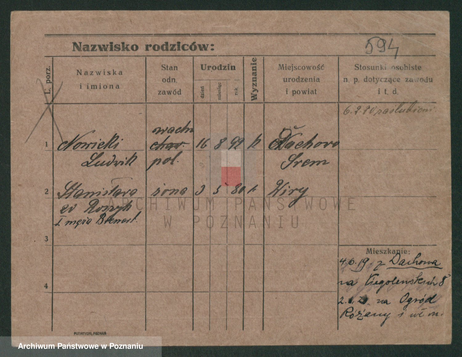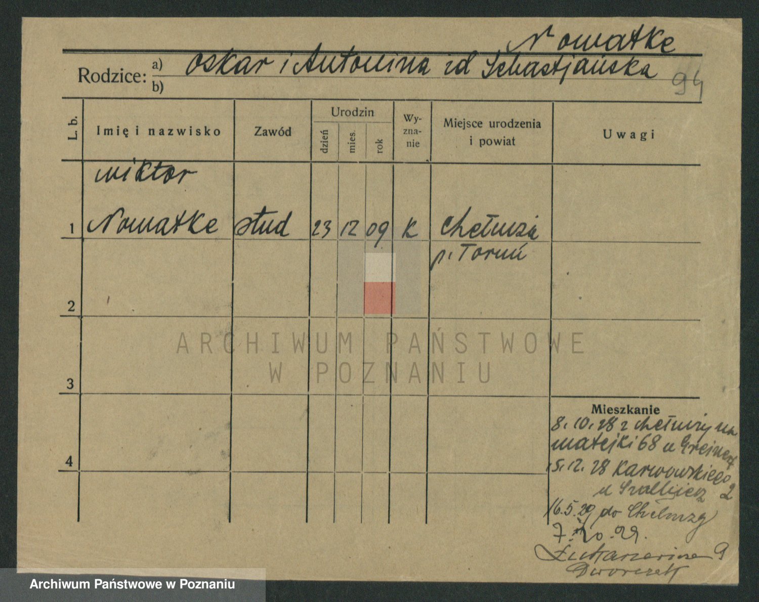Podgląd karty osobowej dostępny jest po kliknięciu na nazwisko lub ikonkę karty. Można dokonywać powiększenia (ikony na górze) lub przechodzić między kolejnymi skanami (strzałki po bokach).
