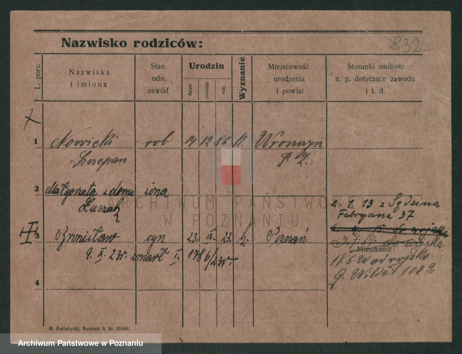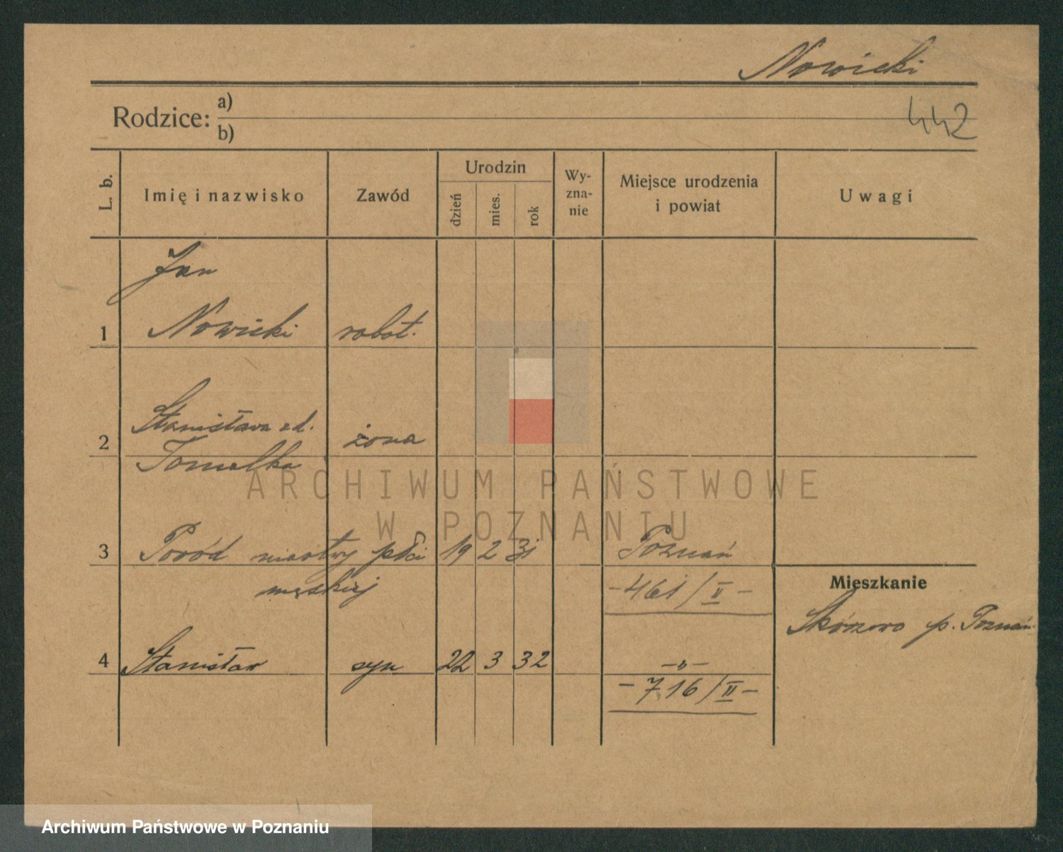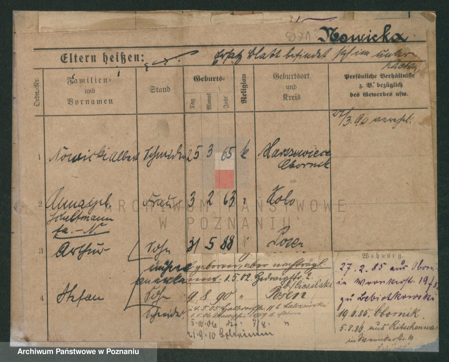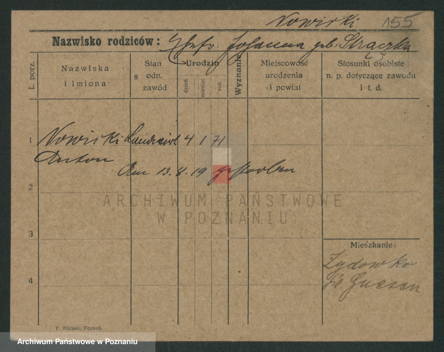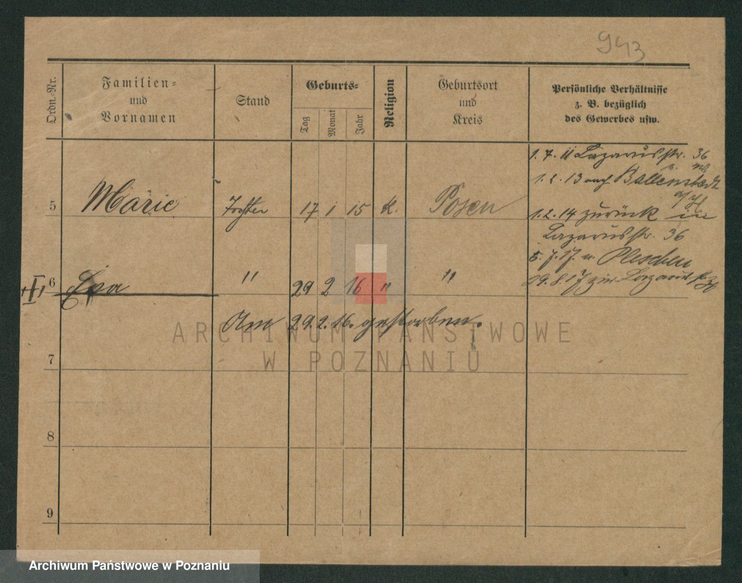 Podgląd karty osobowej dostępny jest po kliknięciu na nazwisko lub ikonkę karty. Można dokonywać powiększenia (ikony na górze) lub przechodzić między kolejnymi skanami (strzałki po bokach).