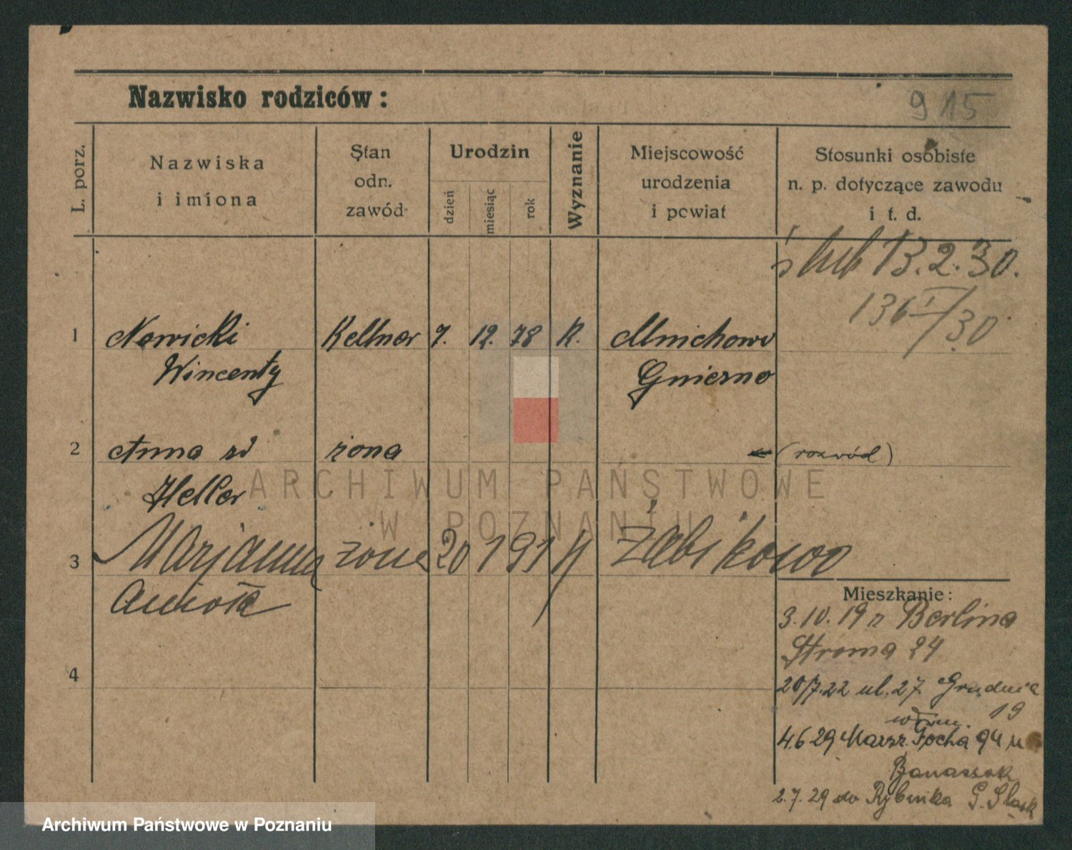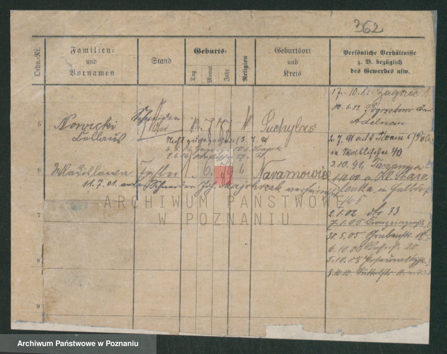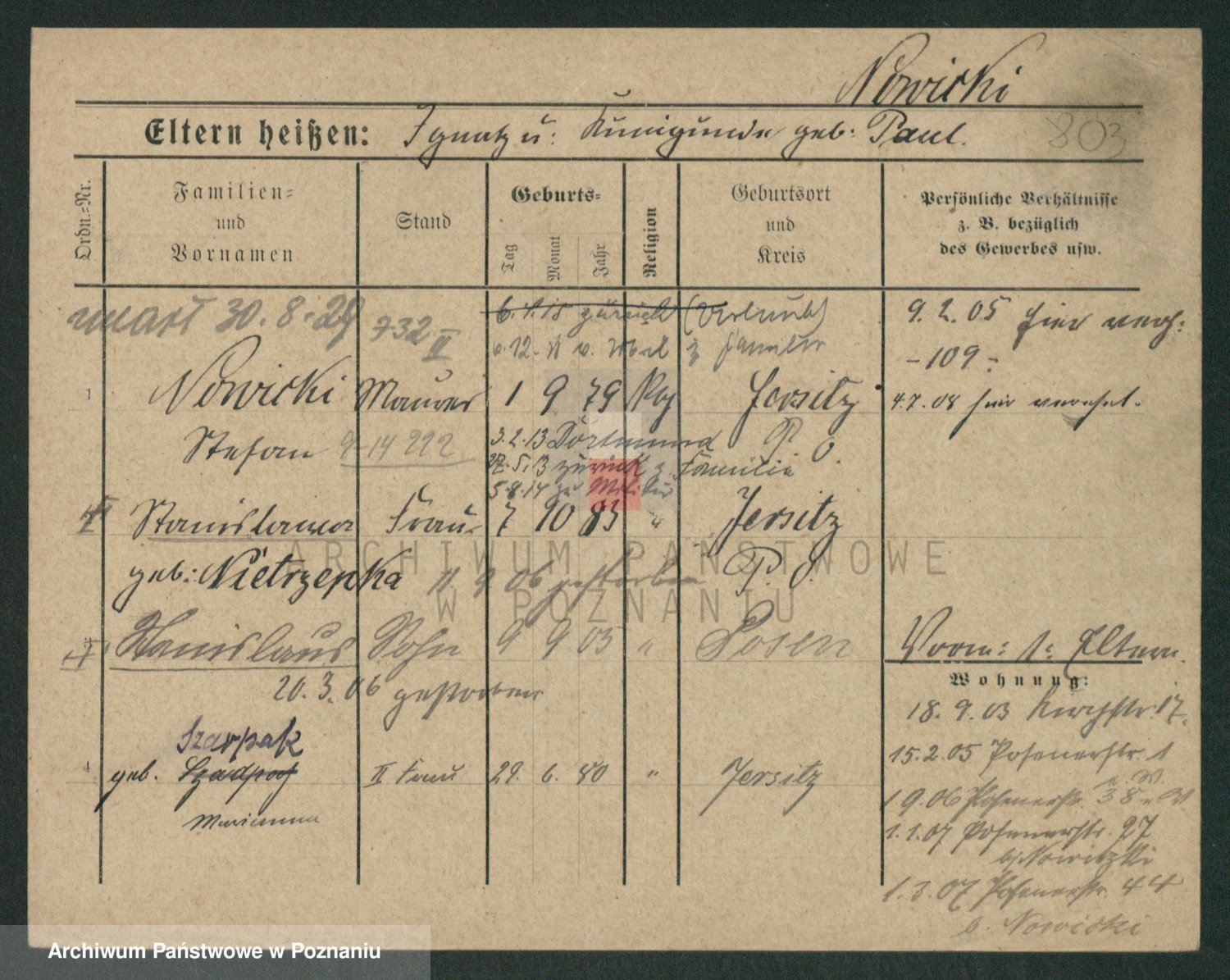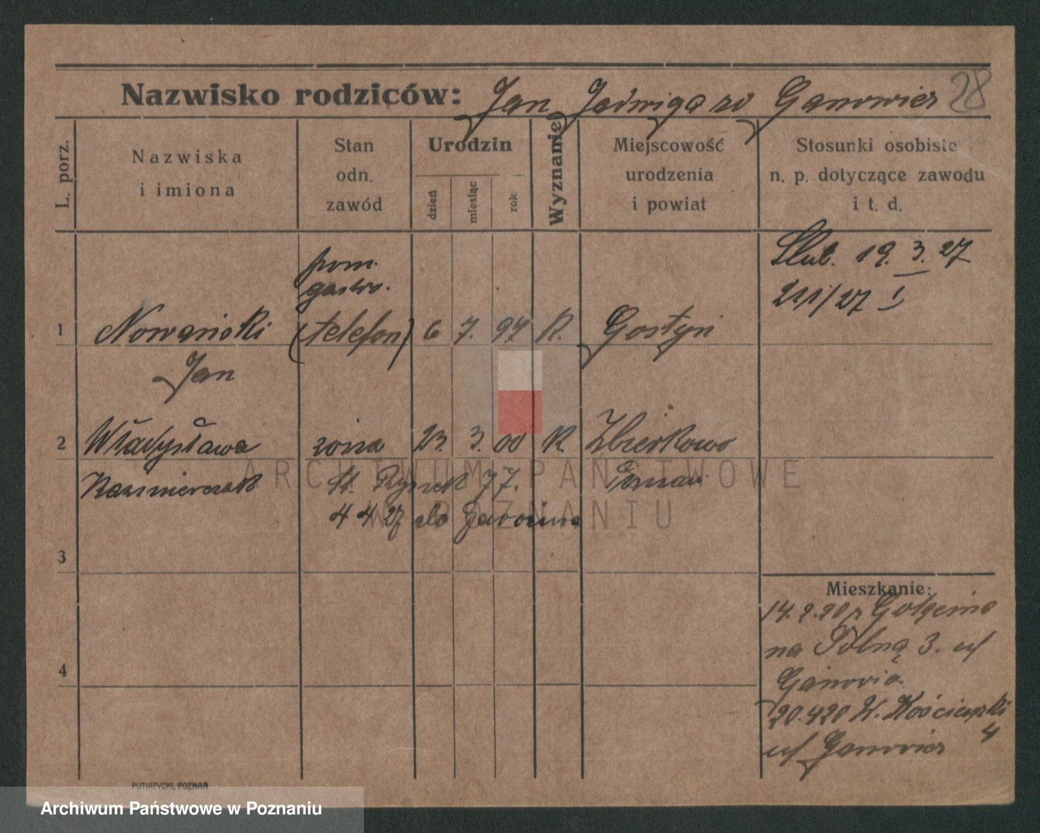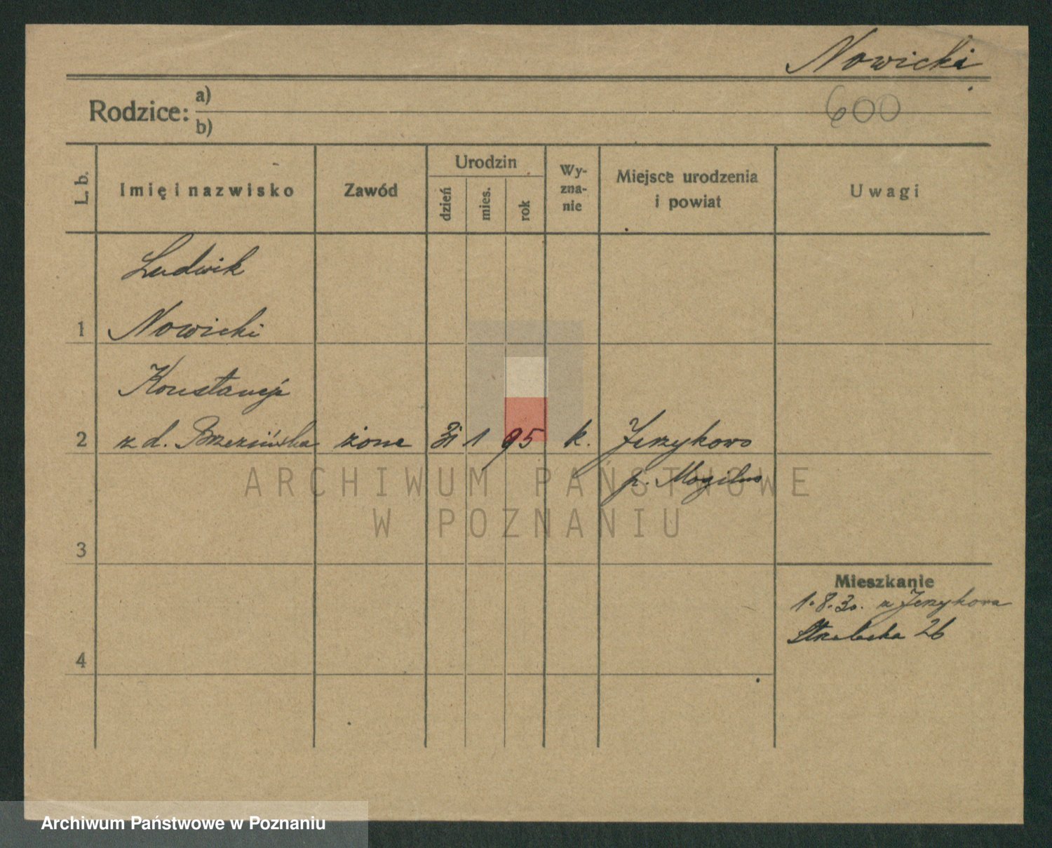 Podgląd karty osobowej dostępny jest po kliknięciu na nazwisko lub ikonkę karty. Można dokonywać powiększenia (ikony na górze) lub przechodzić między kolejnymi skanami (strzałki po bokach).
