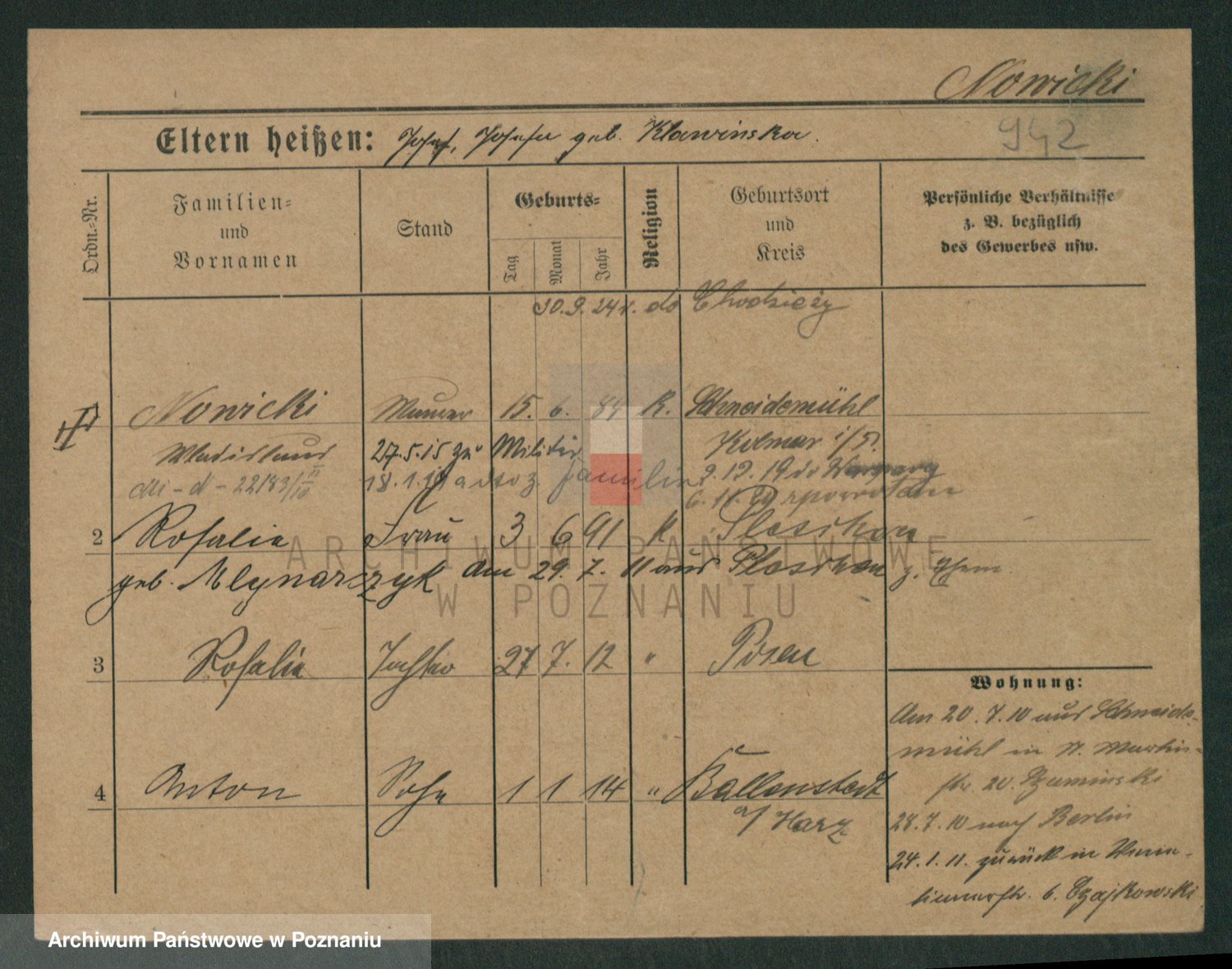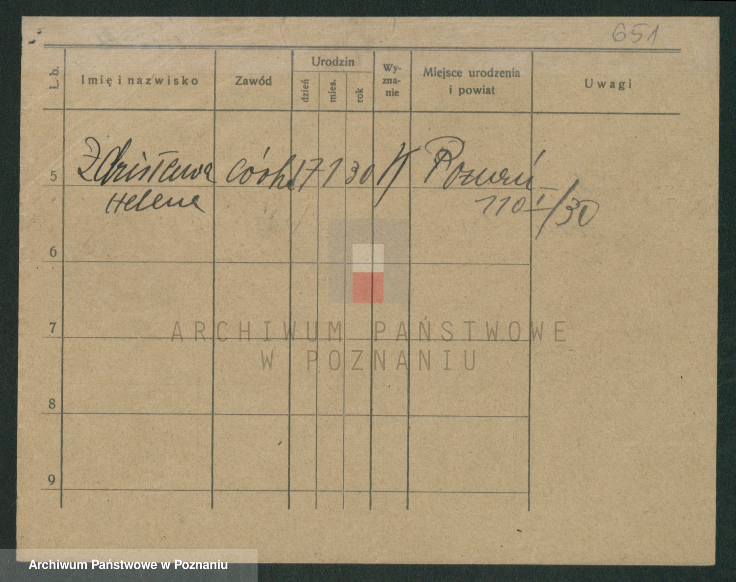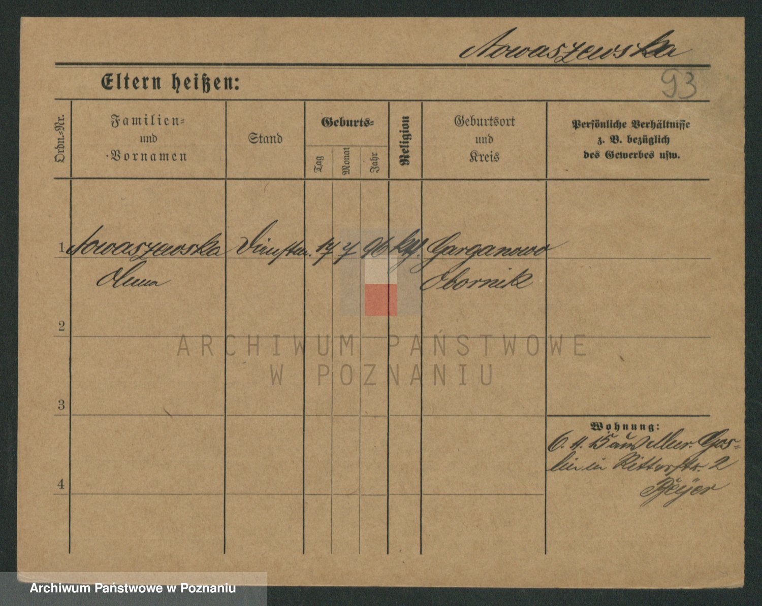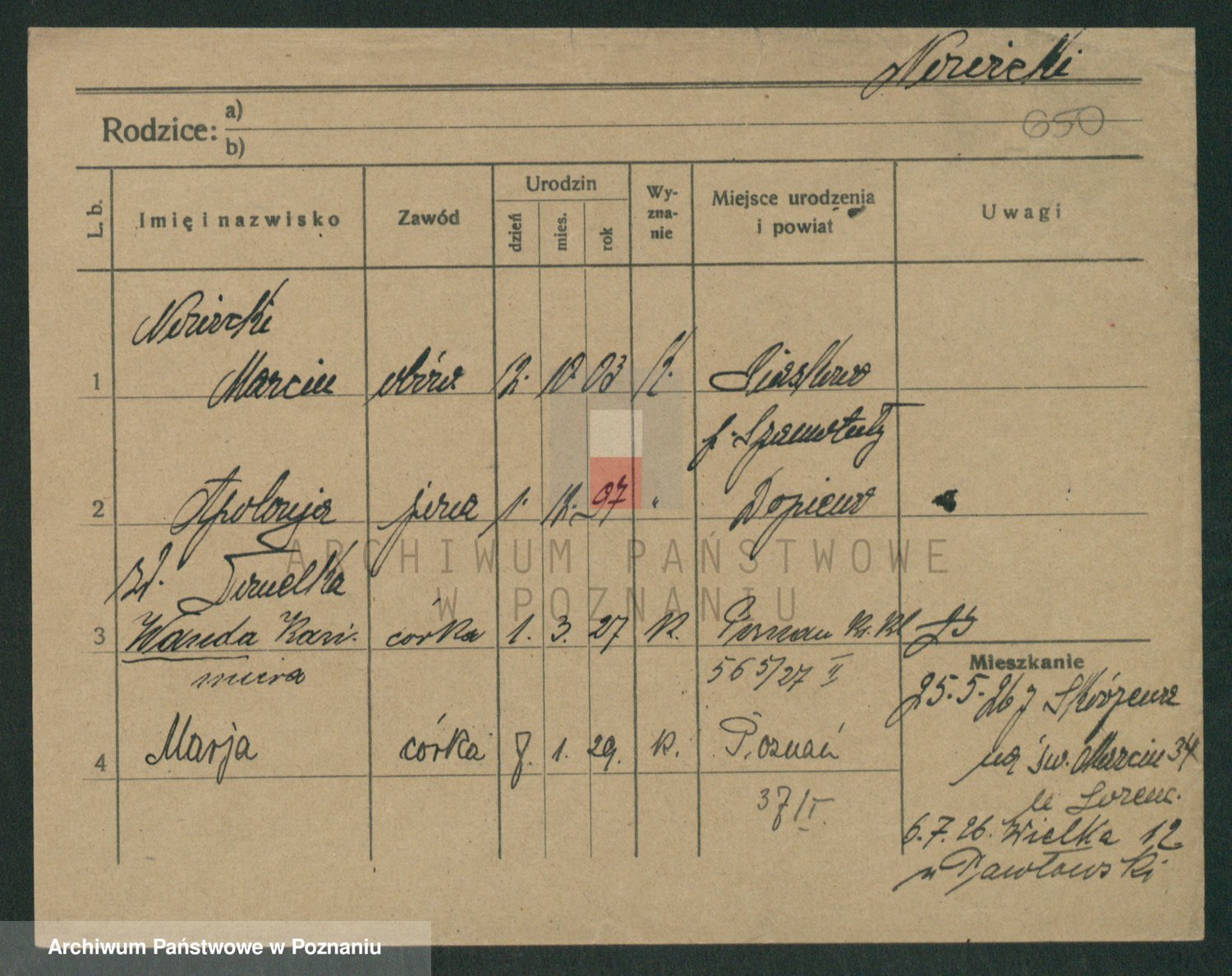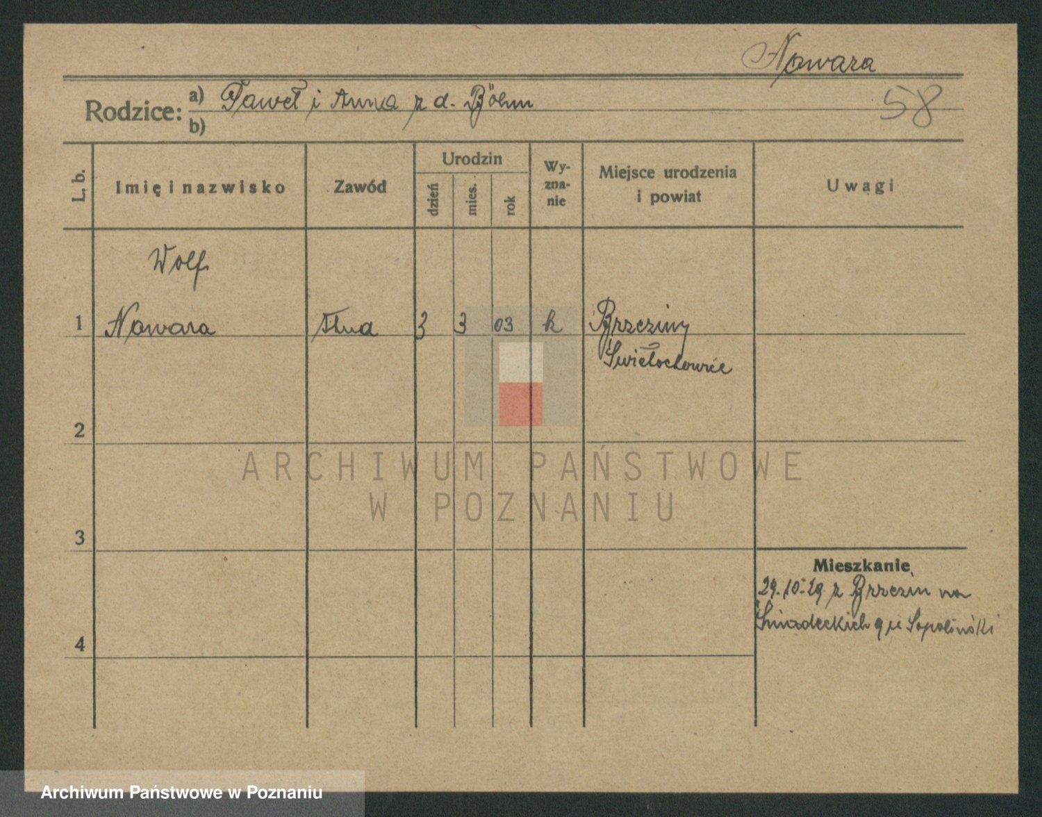 Podgląd karty osobowej dostępny jest po kliknięciu na nazwisko lub ikonkę karty. Można dokonywać powiększenia (ikony na górze) lub przechodzić między kolejnymi skanami (strzałki po bokach).