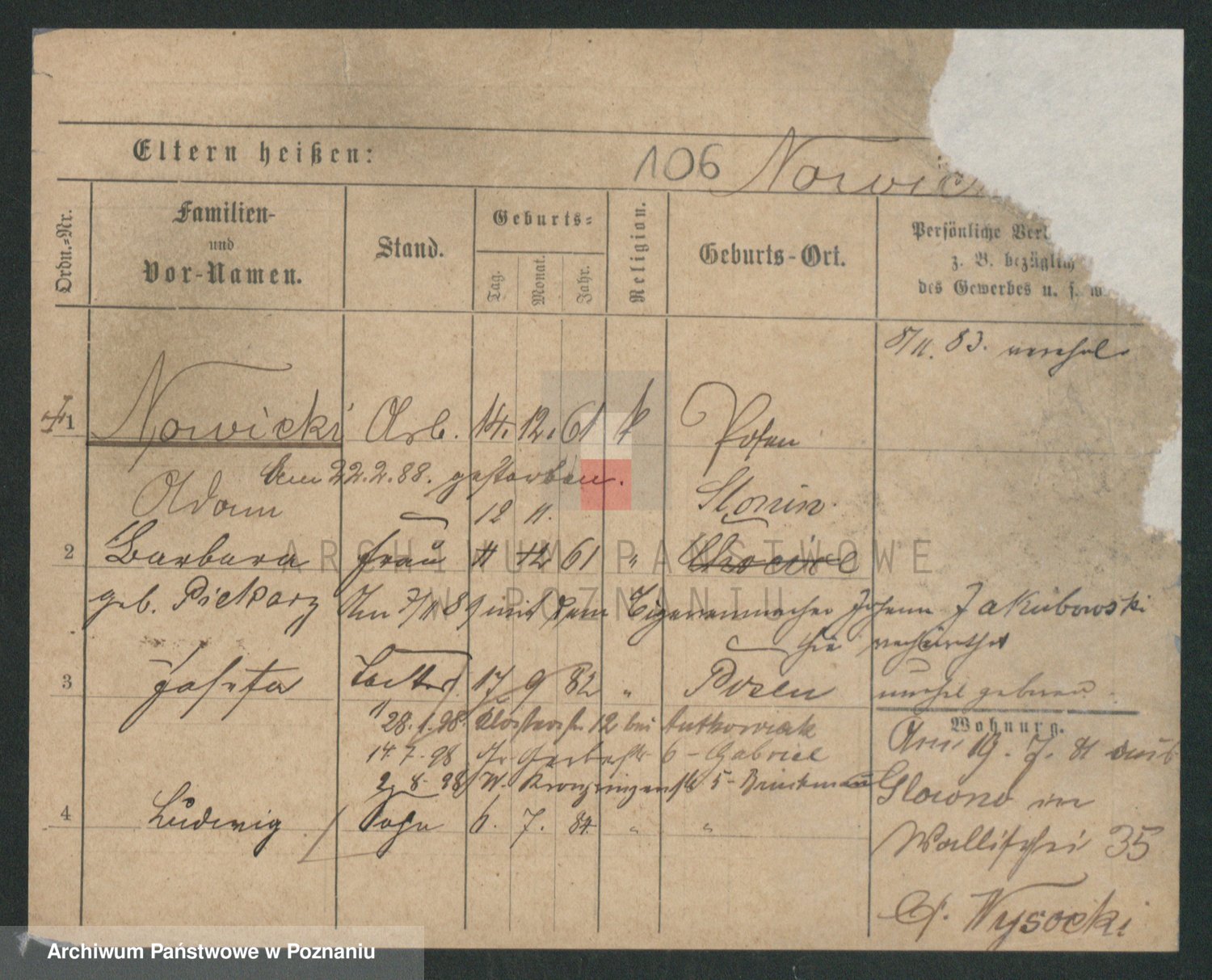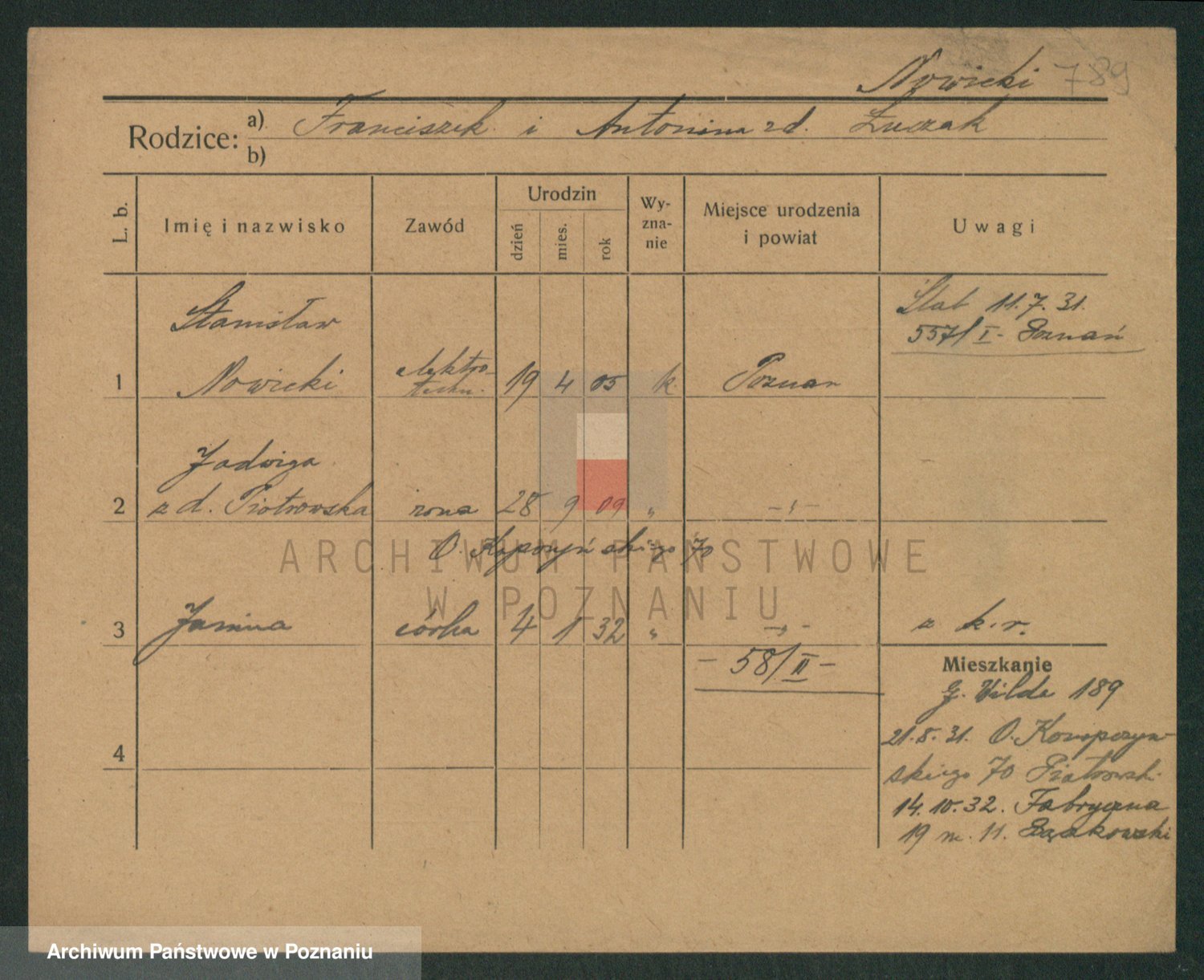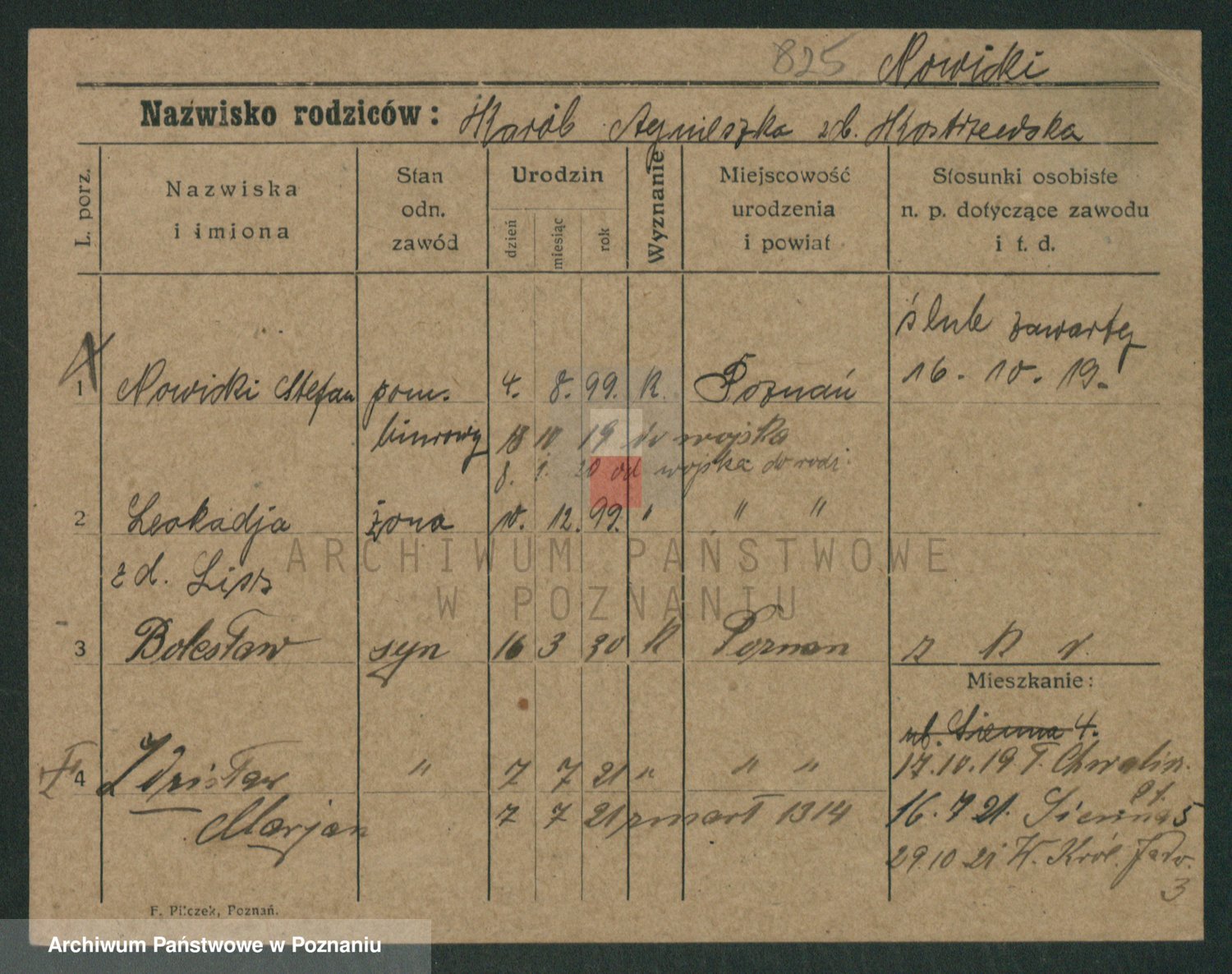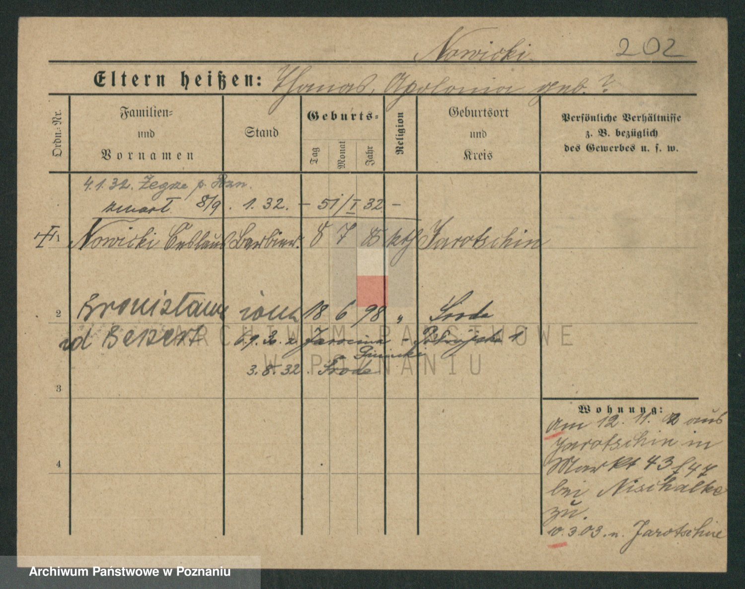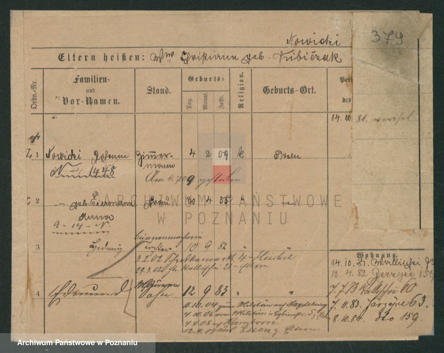 Podgląd karty osobowej dostępny jest po kliknięciu na nazwisko lub ikonkę karty. Można dokonywać powiększenia (ikony na górze) lub przechodzić między kolejnymi skanami (strzałki po bokach).