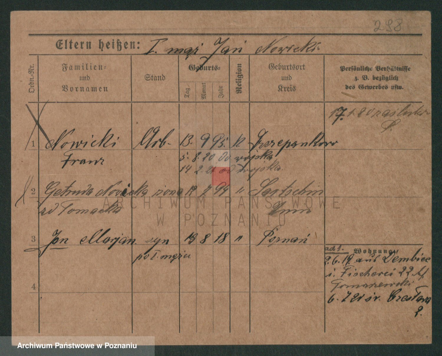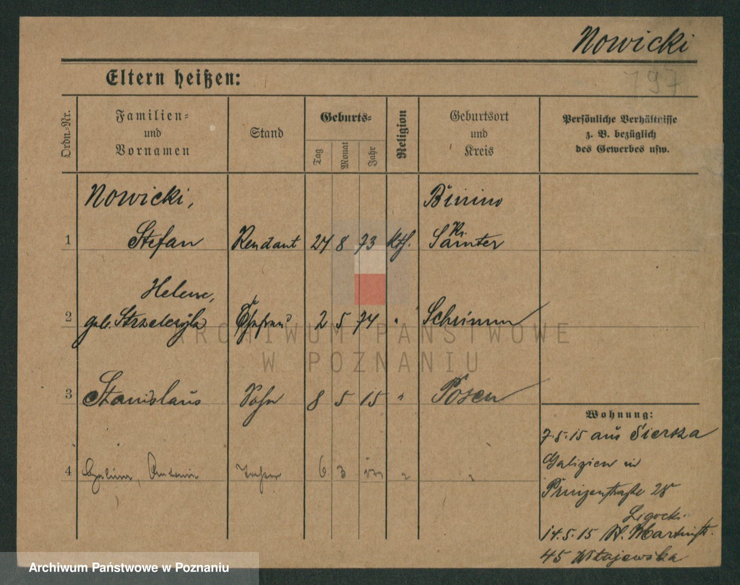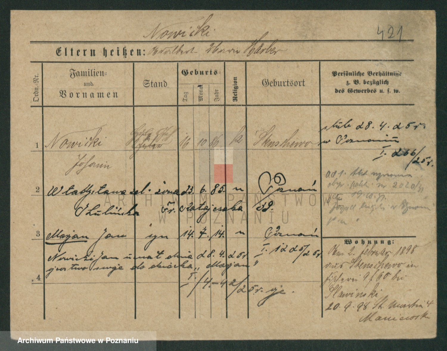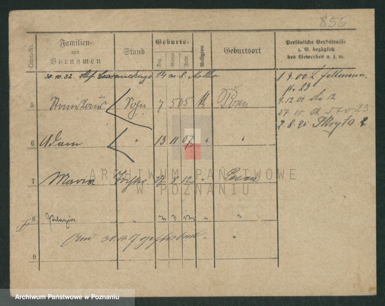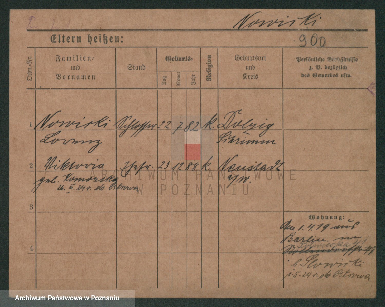Podgląd karty osobowej dostępny jest po kliknięciu na nazwisko lub ikonkę karty. Można dokonywać powiększenia (ikony na górze) lub przechodzić między kolejnymi skanami (strzałki po bokach).