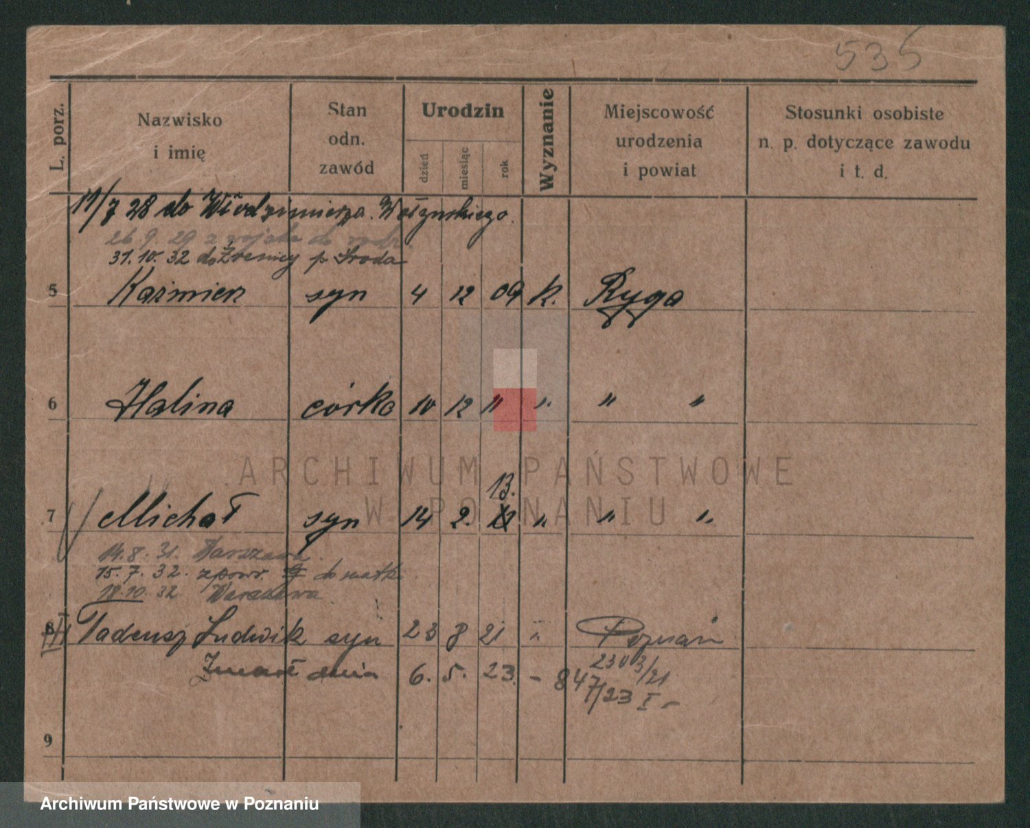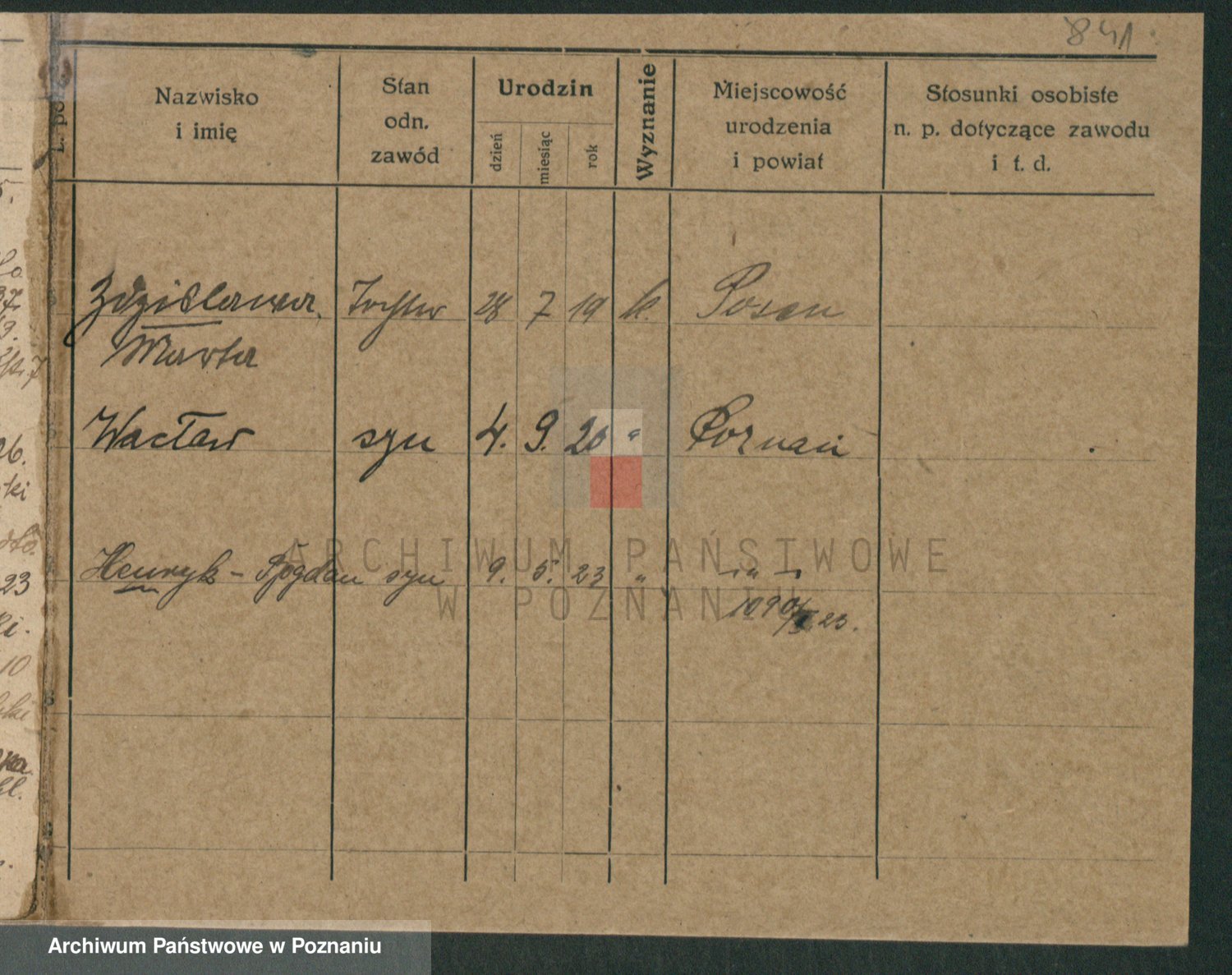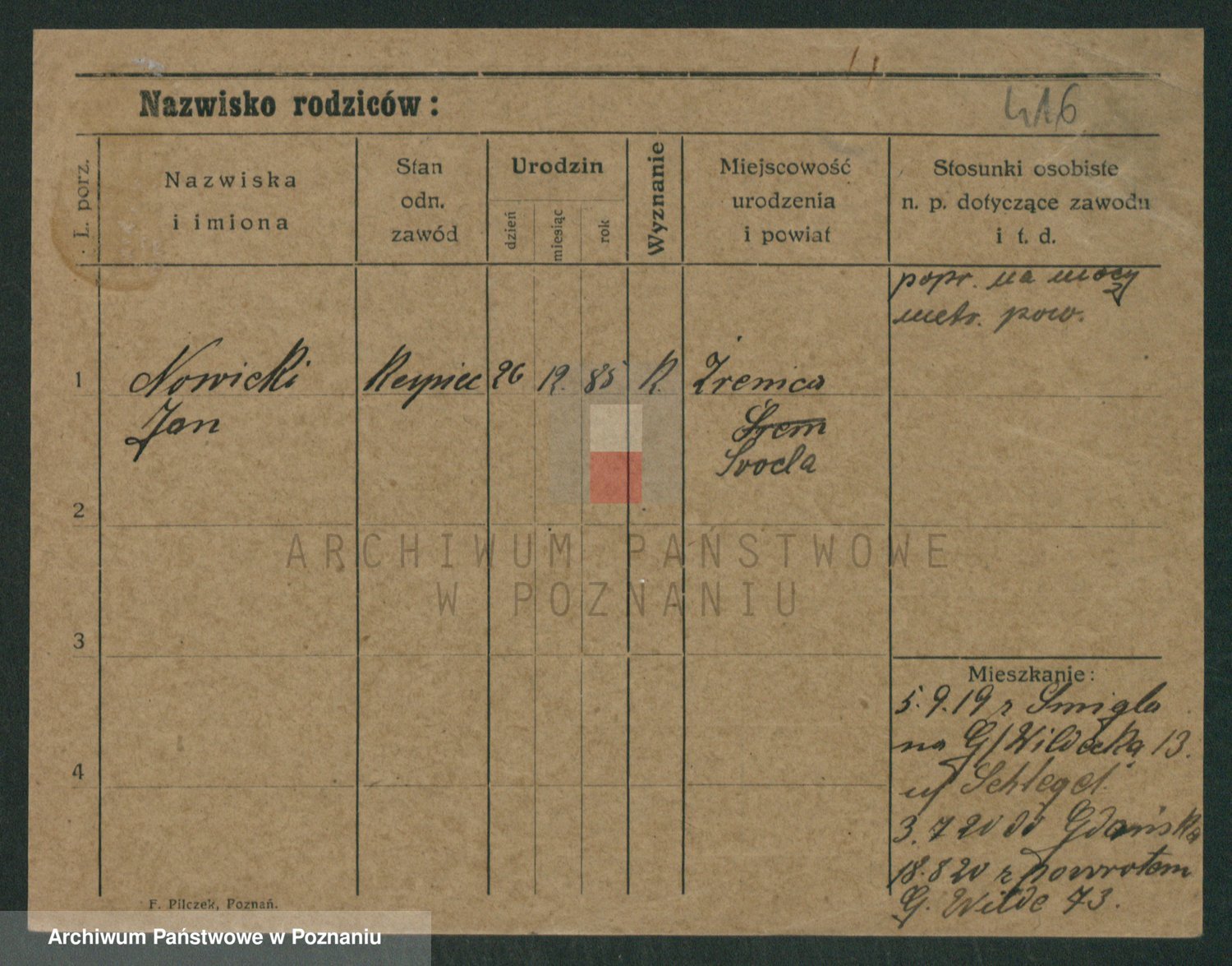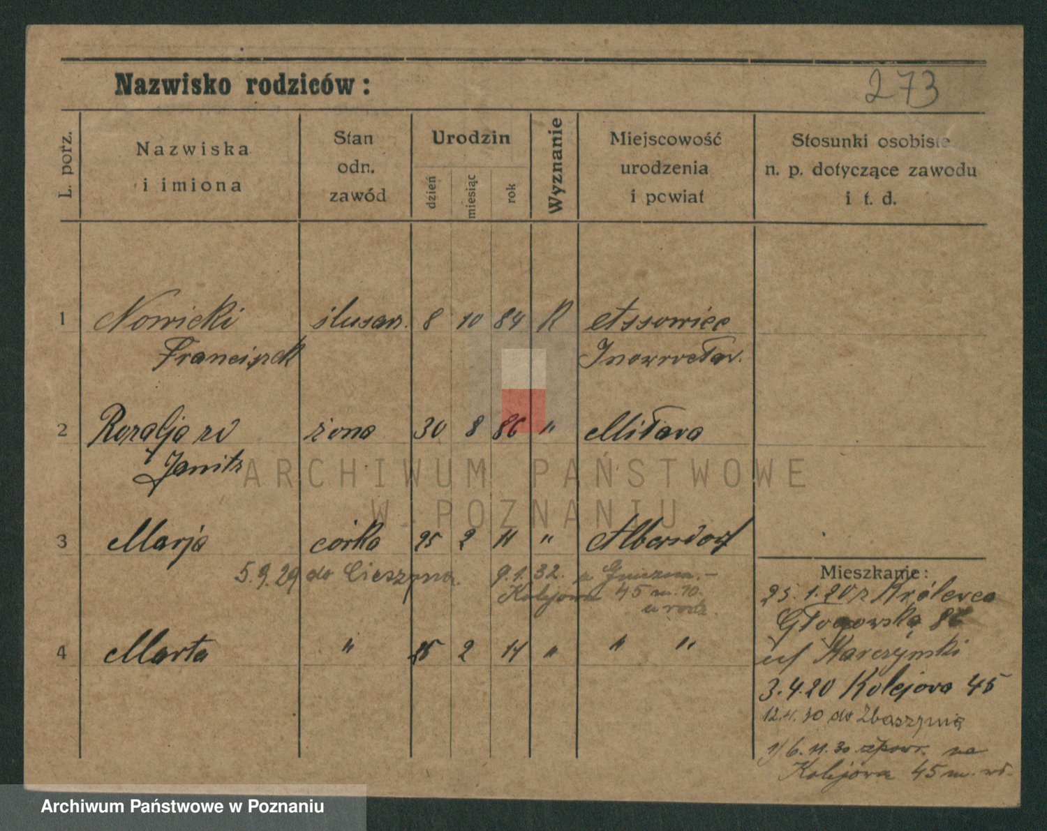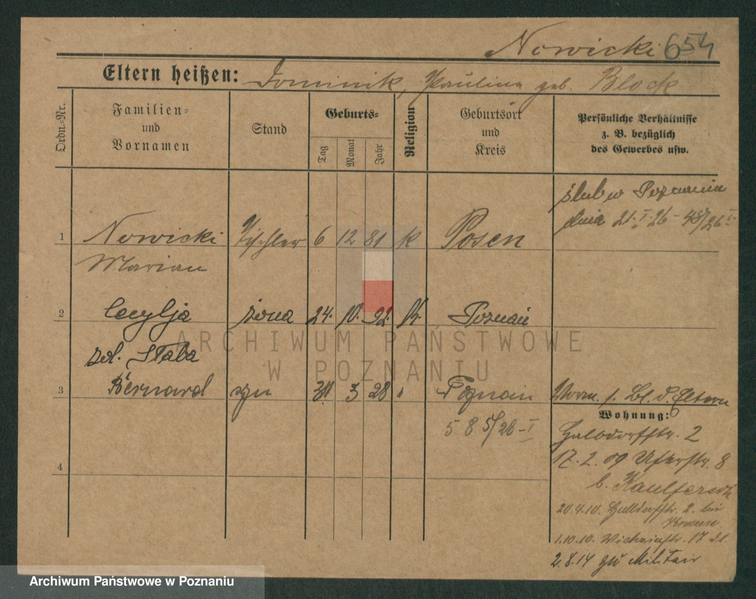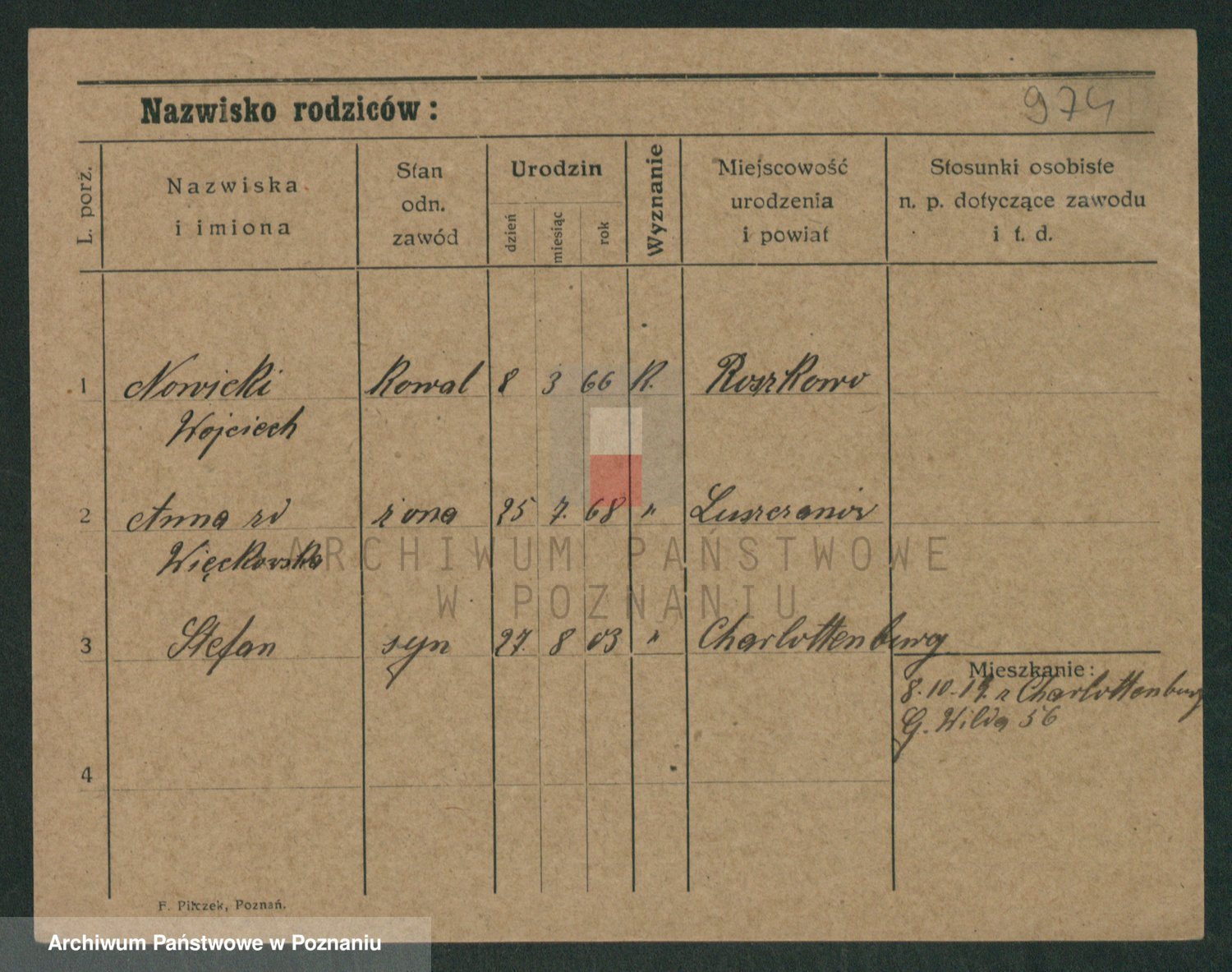 Podgląd karty osobowej dostępny jest po kliknięciu na nazwisko lub ikonkę karty. Można dokonywać powiększenia (ikony na górze) lub przechodzić między kolejnymi skanami (strzałki po bokach).