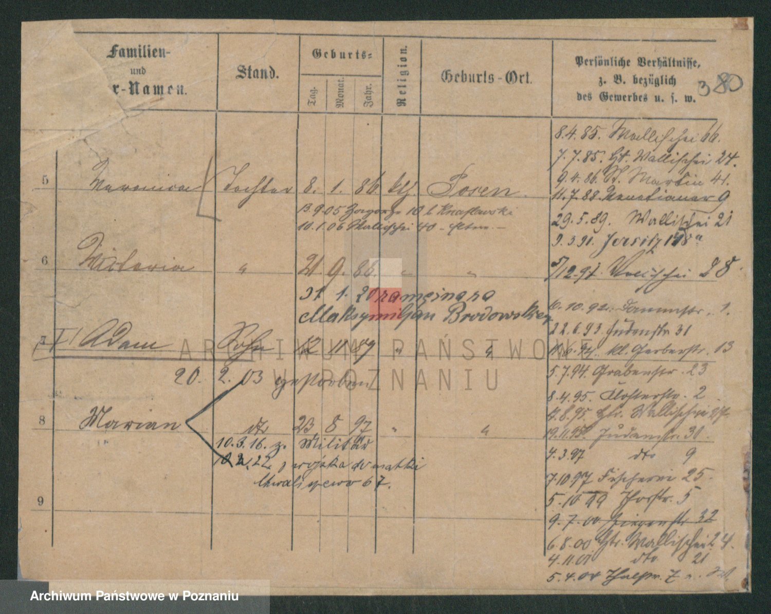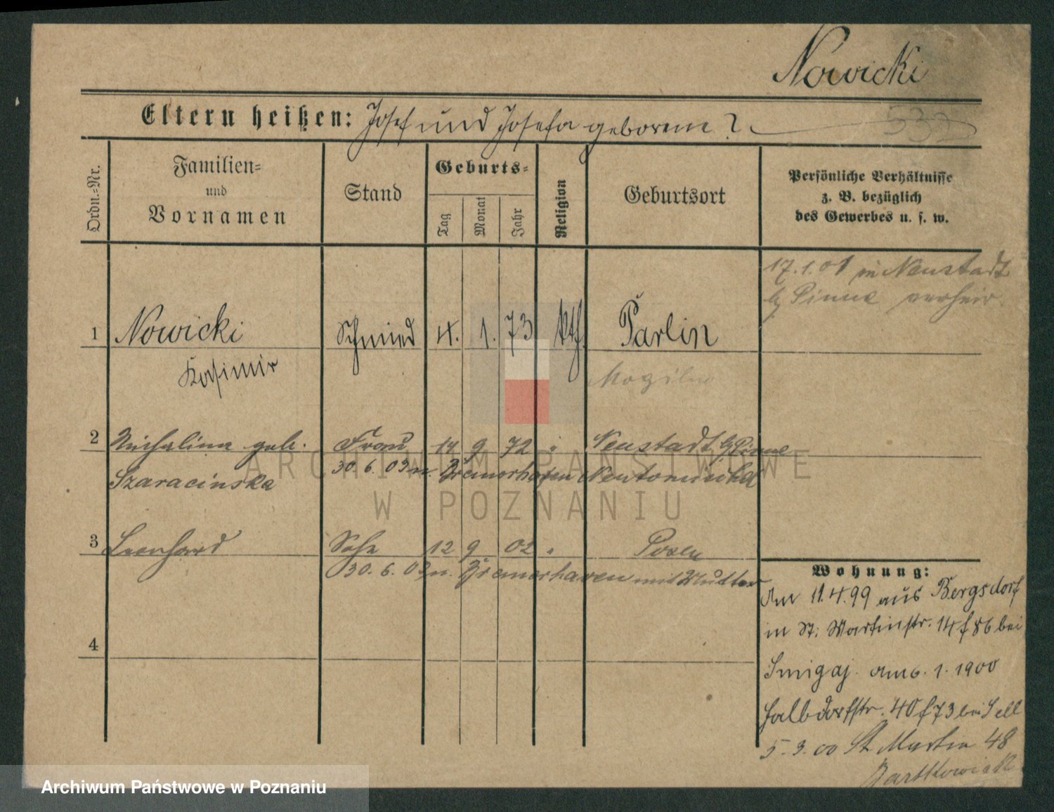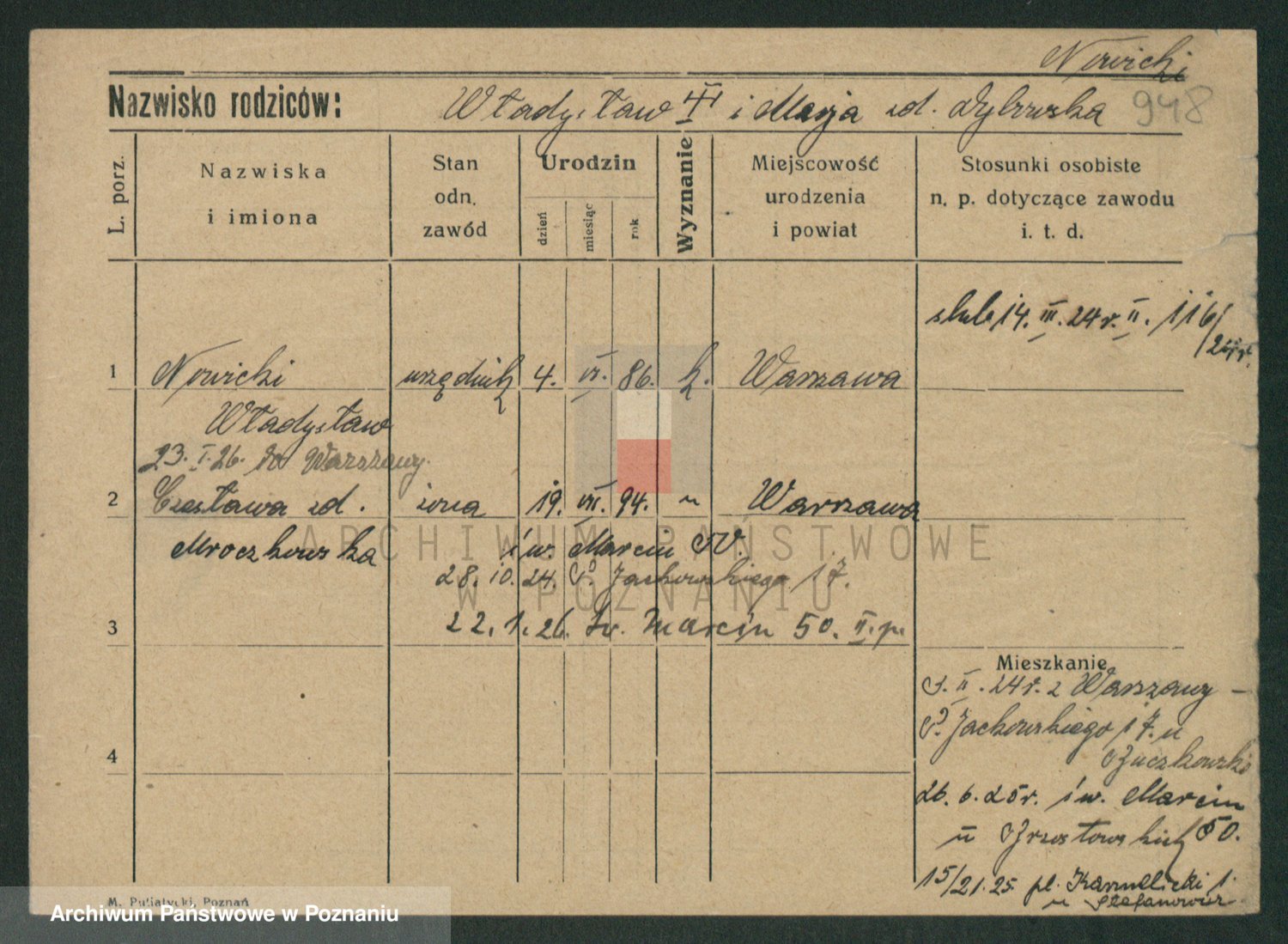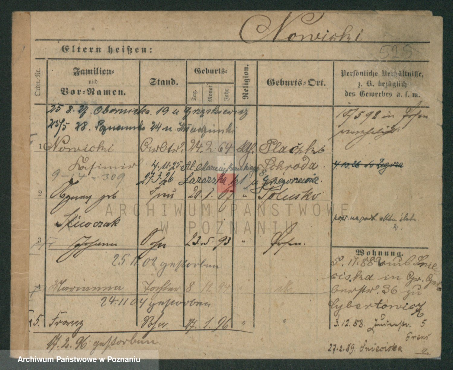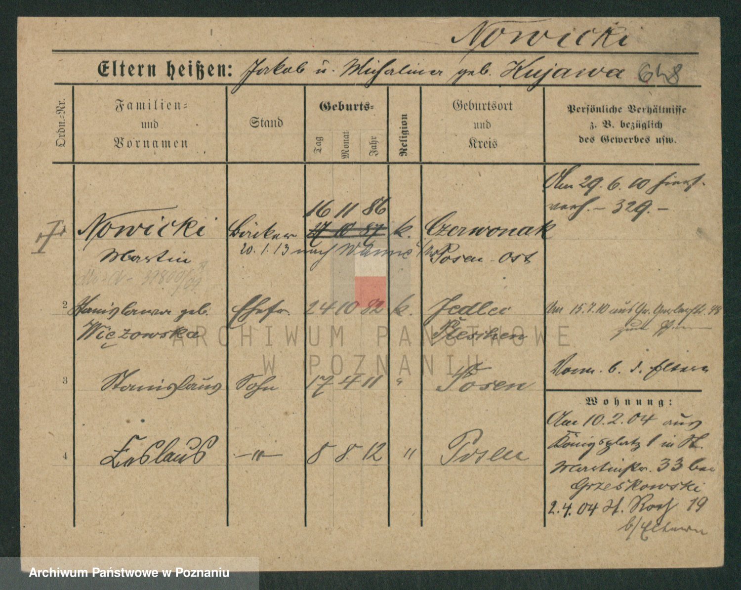 Podgląd karty osobowej dostępny jest po kliknięciu na nazwisko lub ikonkę karty. Można dokonywać powiększenia (ikony na górze) lub przechodzić między kolejnymi skanami (strzałki po bokach).
