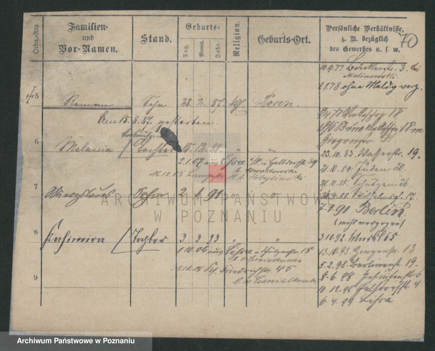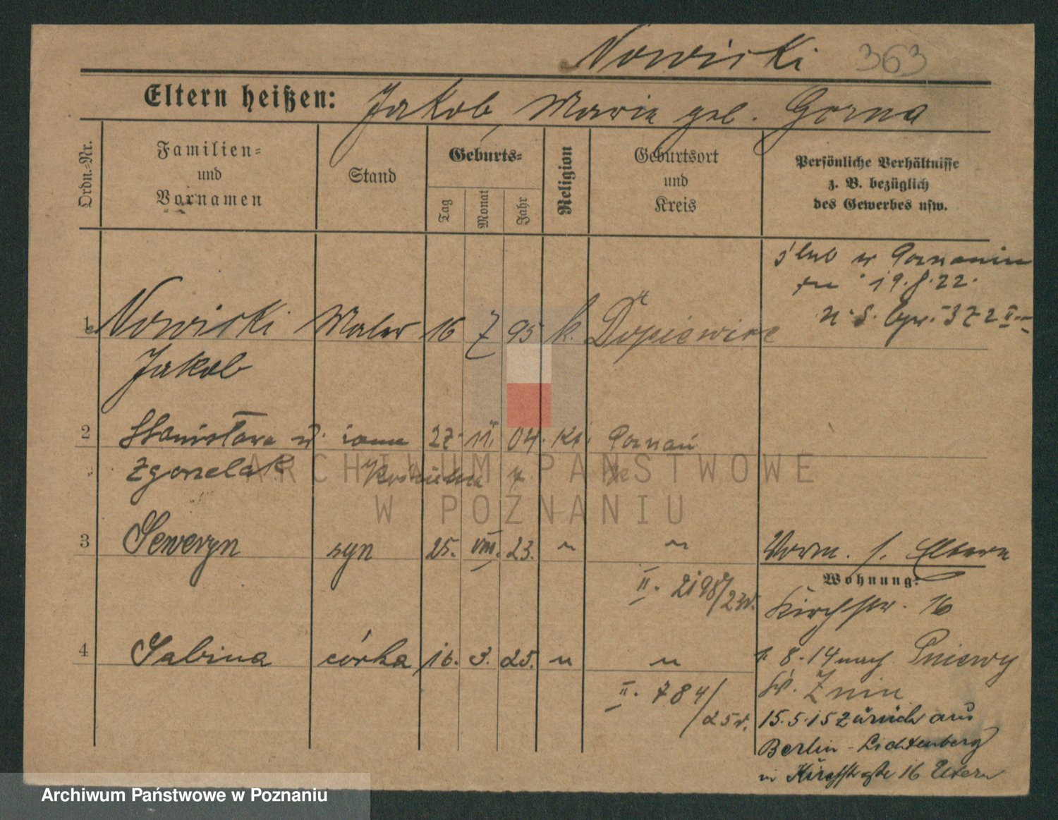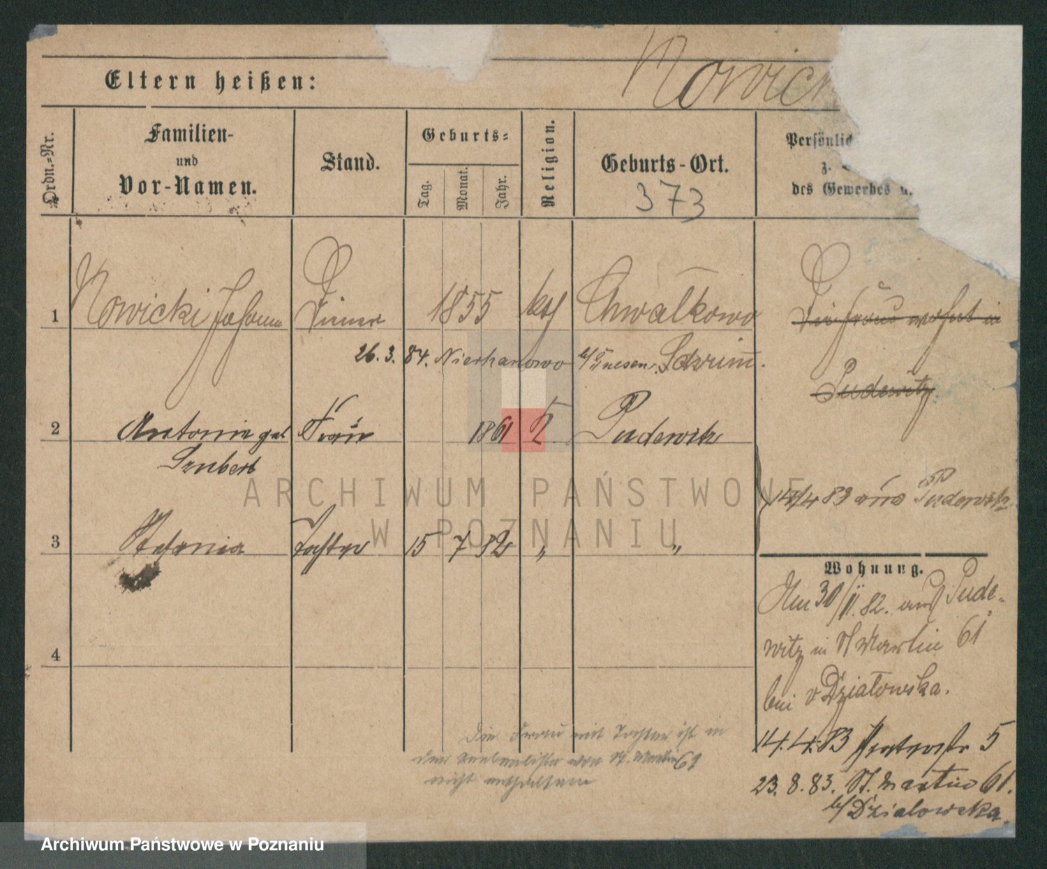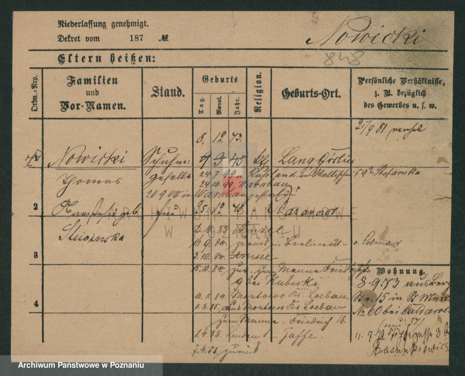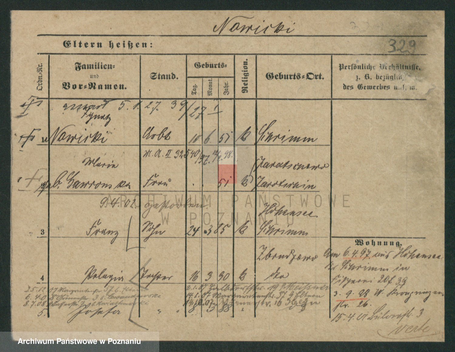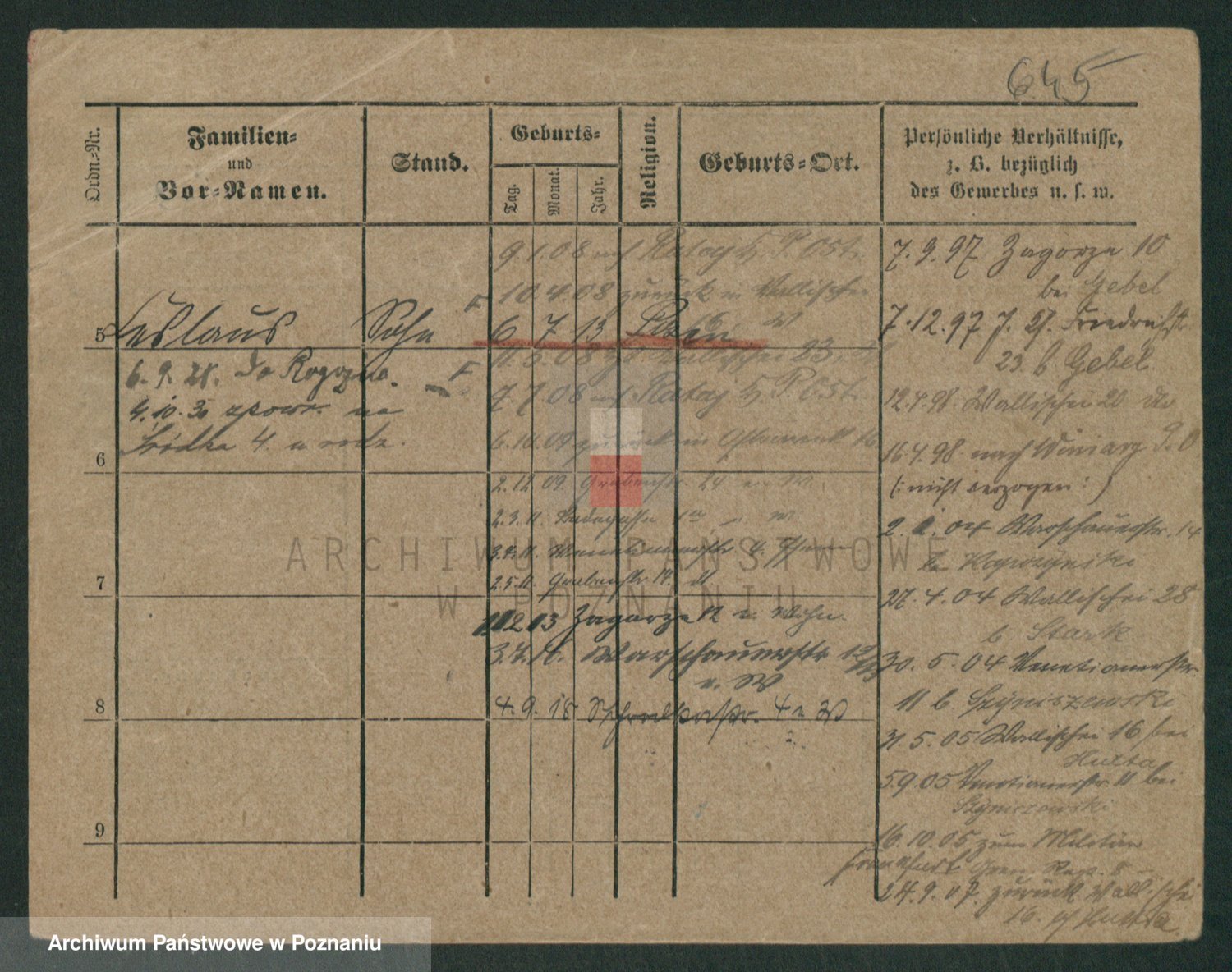 Podgląd karty osobowej dostępny jest po kliknięciu na nazwisko lub ikonkę karty. Można dokonywać powiększenia (ikony na górze) lub przechodzić między kolejnymi skanami (strzałki po bokach).