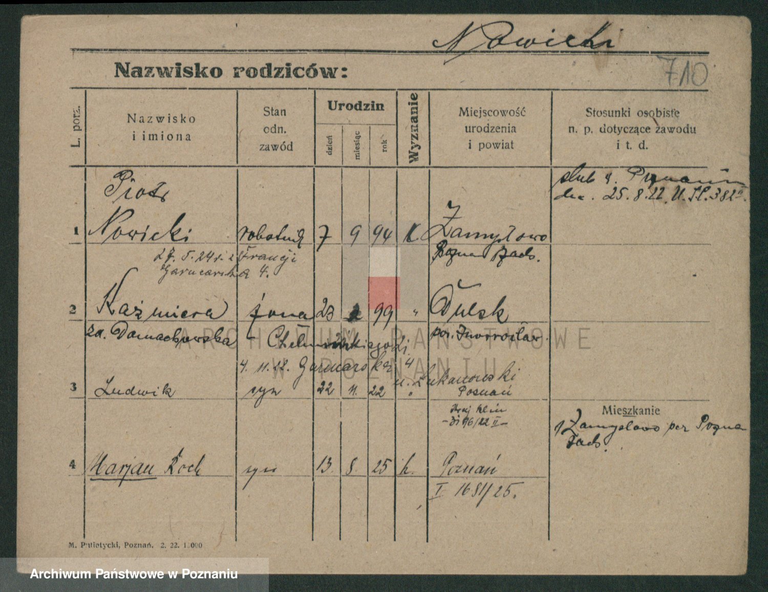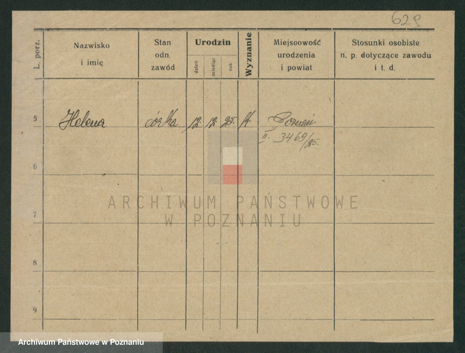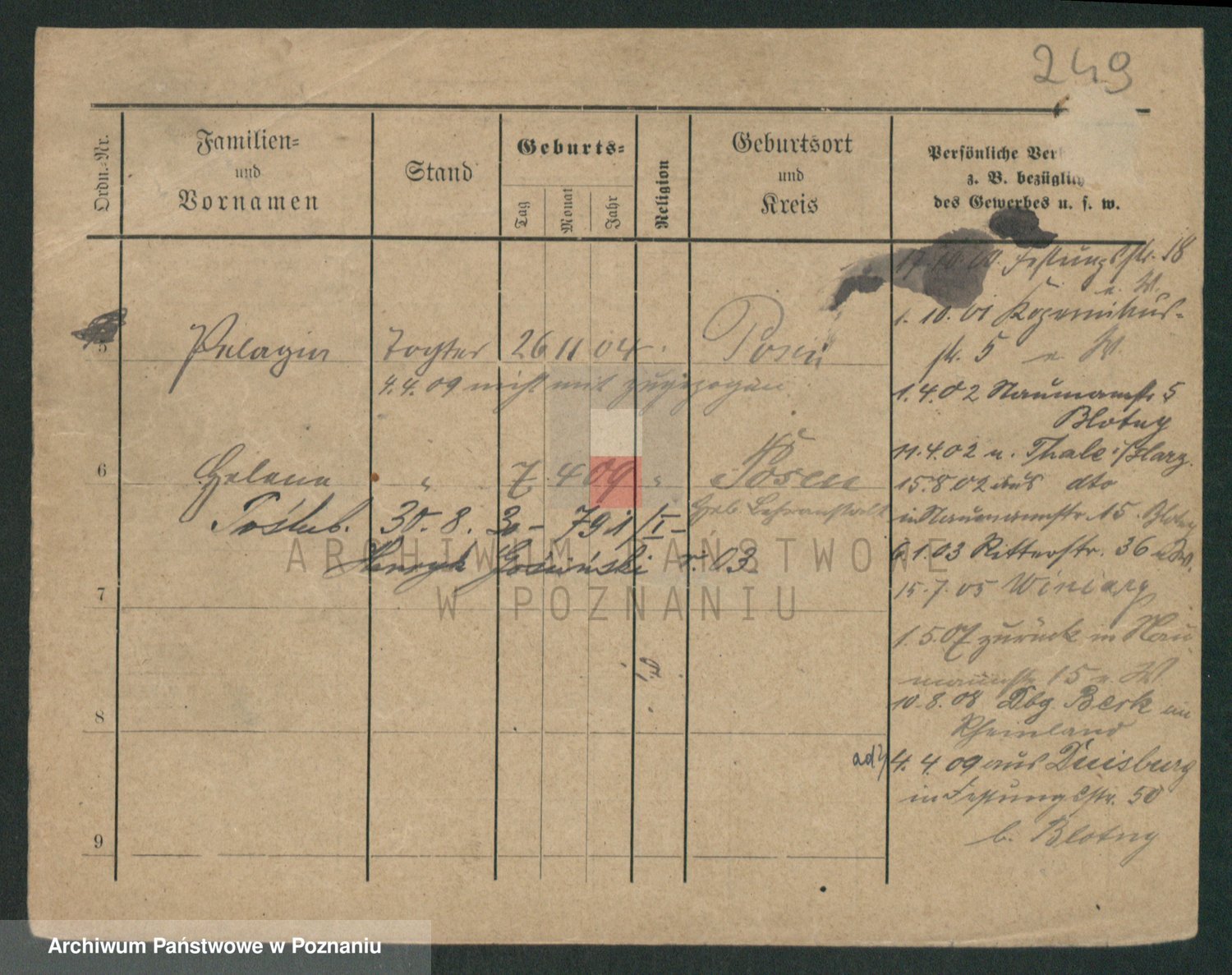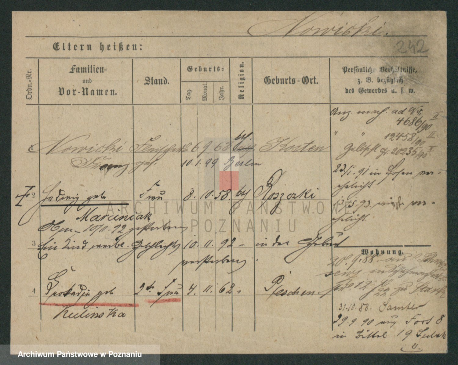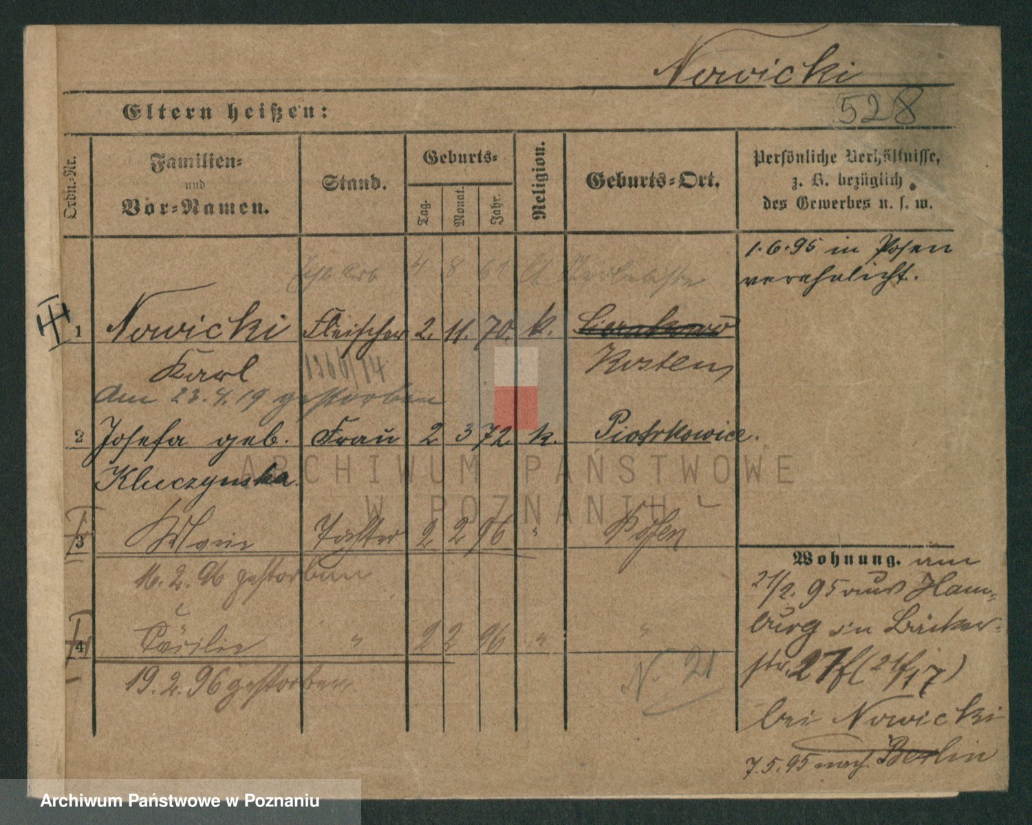 Podgląd karty osobowej dostępny jest po kliknięciu na nazwisko lub ikonkę karty. Można dokonywać powiększenia (ikony na górze) lub przechodzić między kolejnymi skanami (strzałki po bokach).