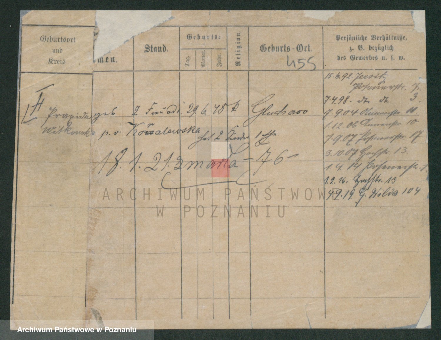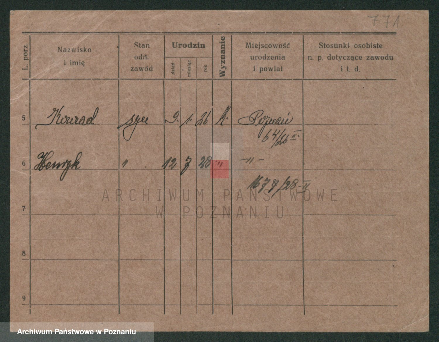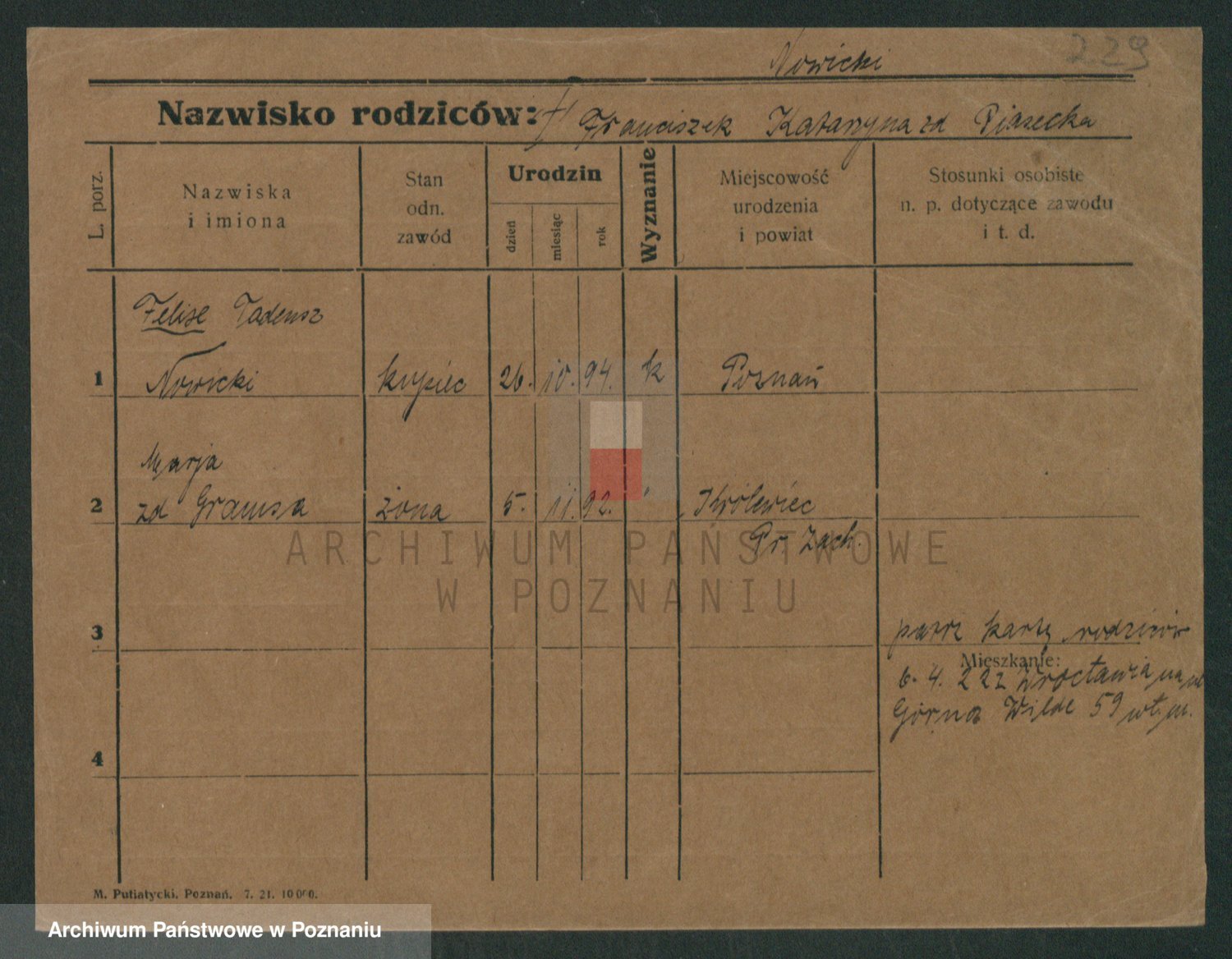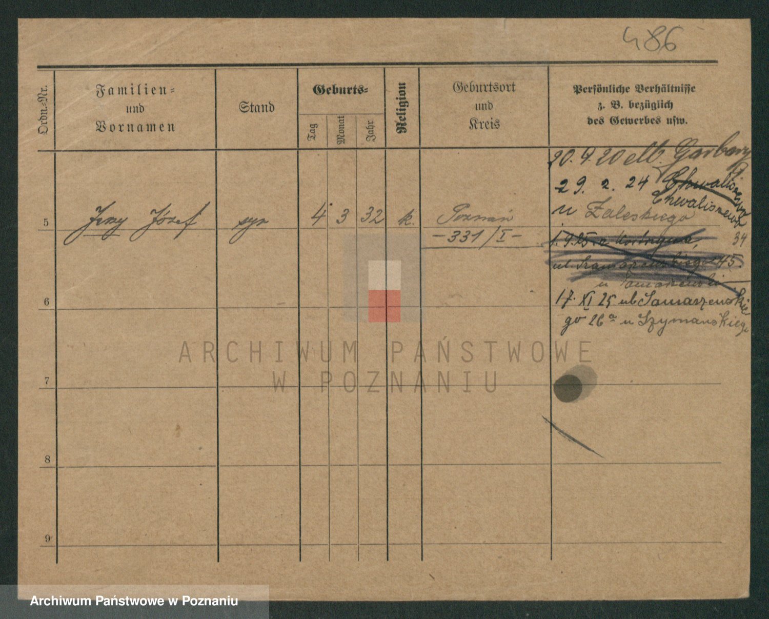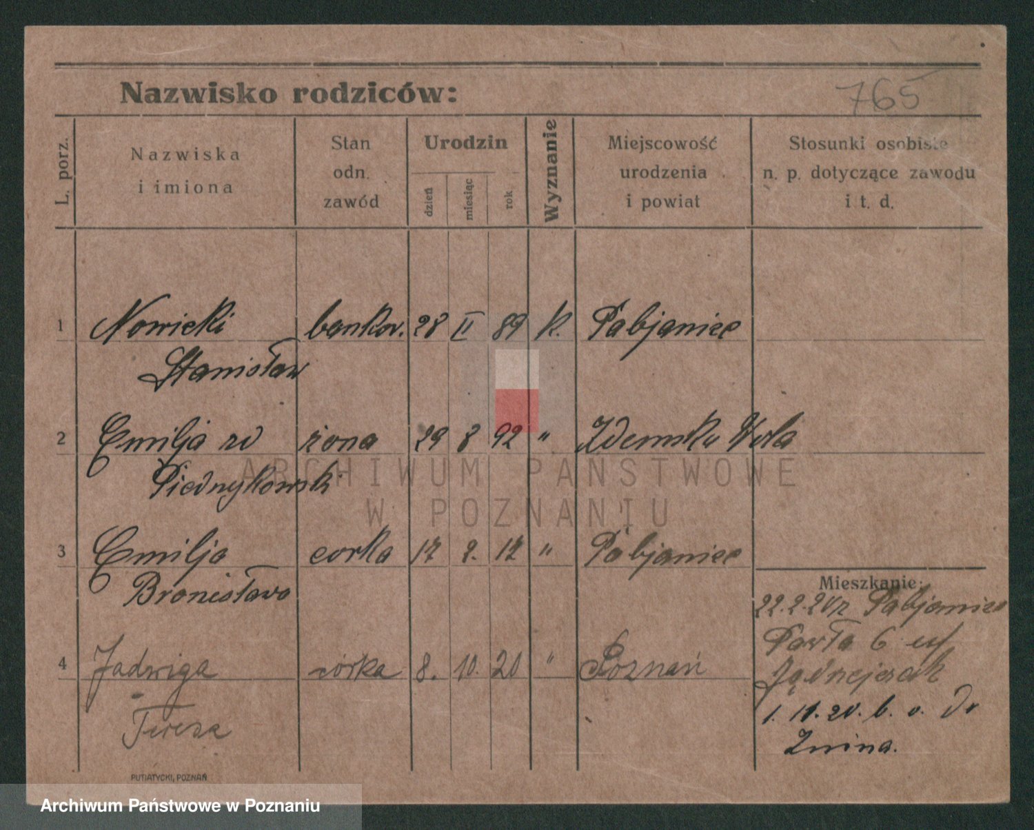 Podgląd karty osobowej dostępny jest po kliknięciu na nazwisko lub ikonkę karty. Można dokonywać powiększenia (ikony na górze) lub przechodzić między kolejnymi skanami (strzałki po bokach).