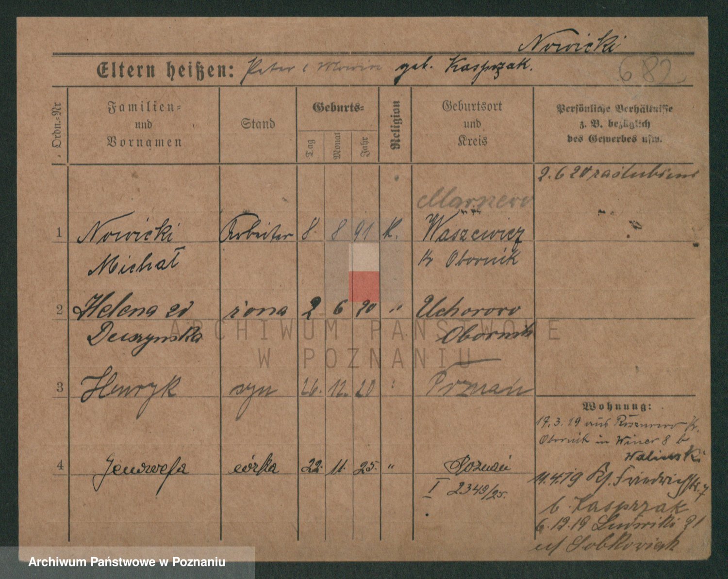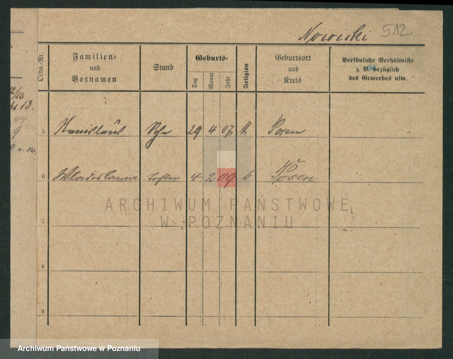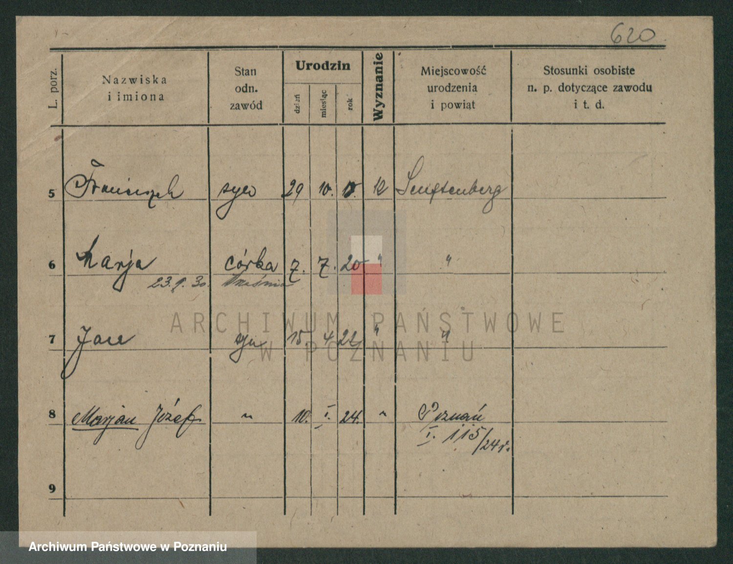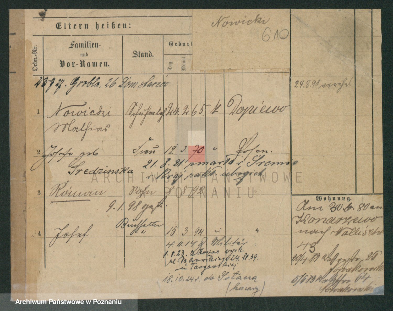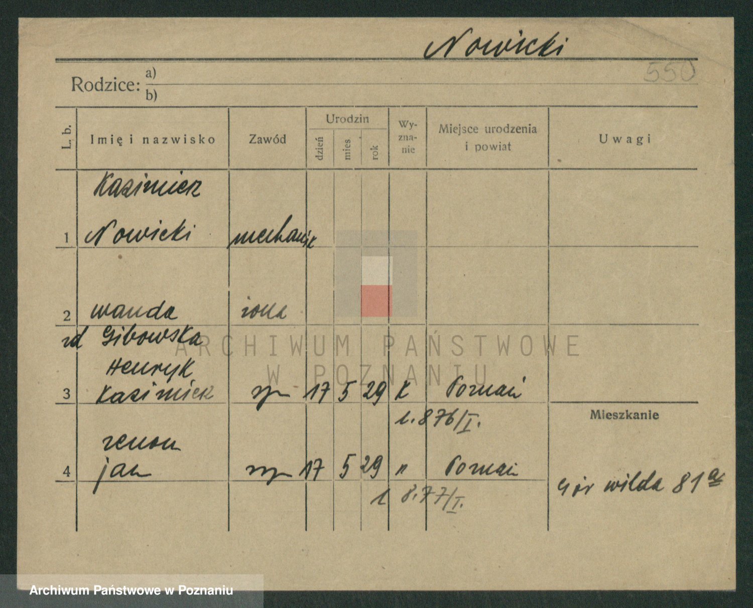 Podgląd karty osobowej dostępny jest po kliknięciu na nazwisko lub ikonkę karty. Można dokonywać powiększenia (ikony na górze) lub przechodzić między kolejnymi skanami (strzałki po bokach).