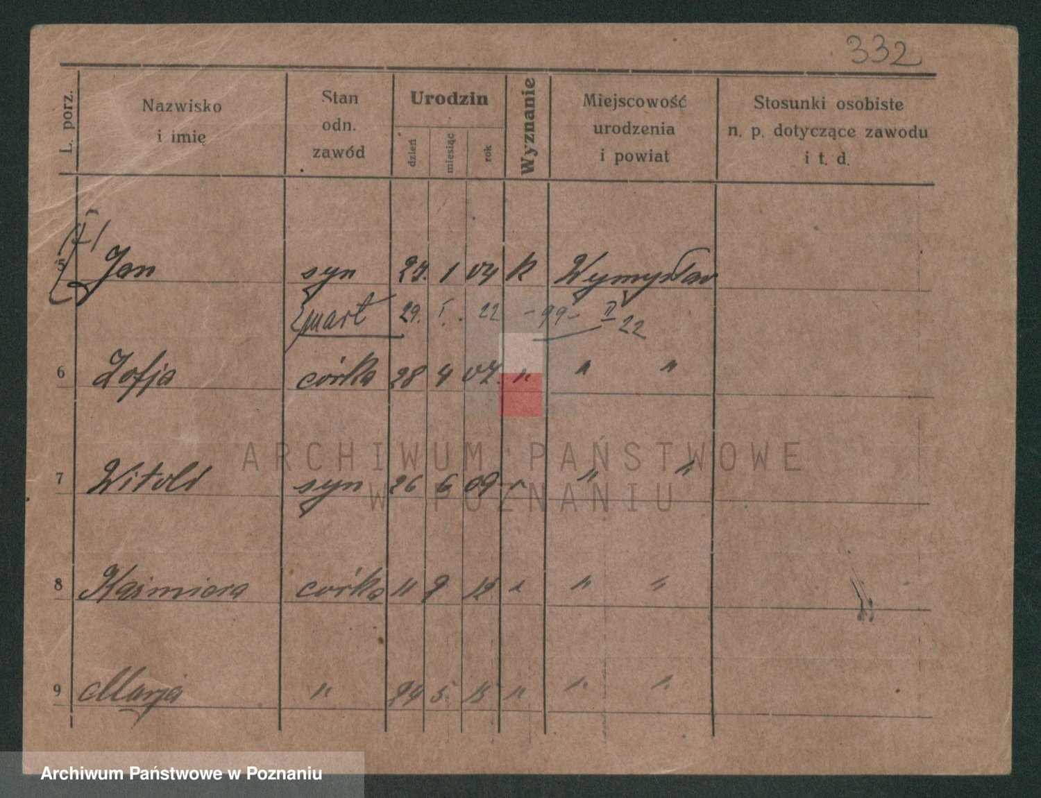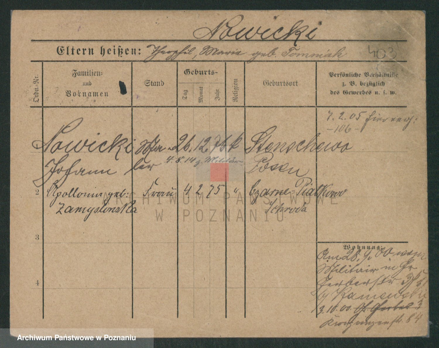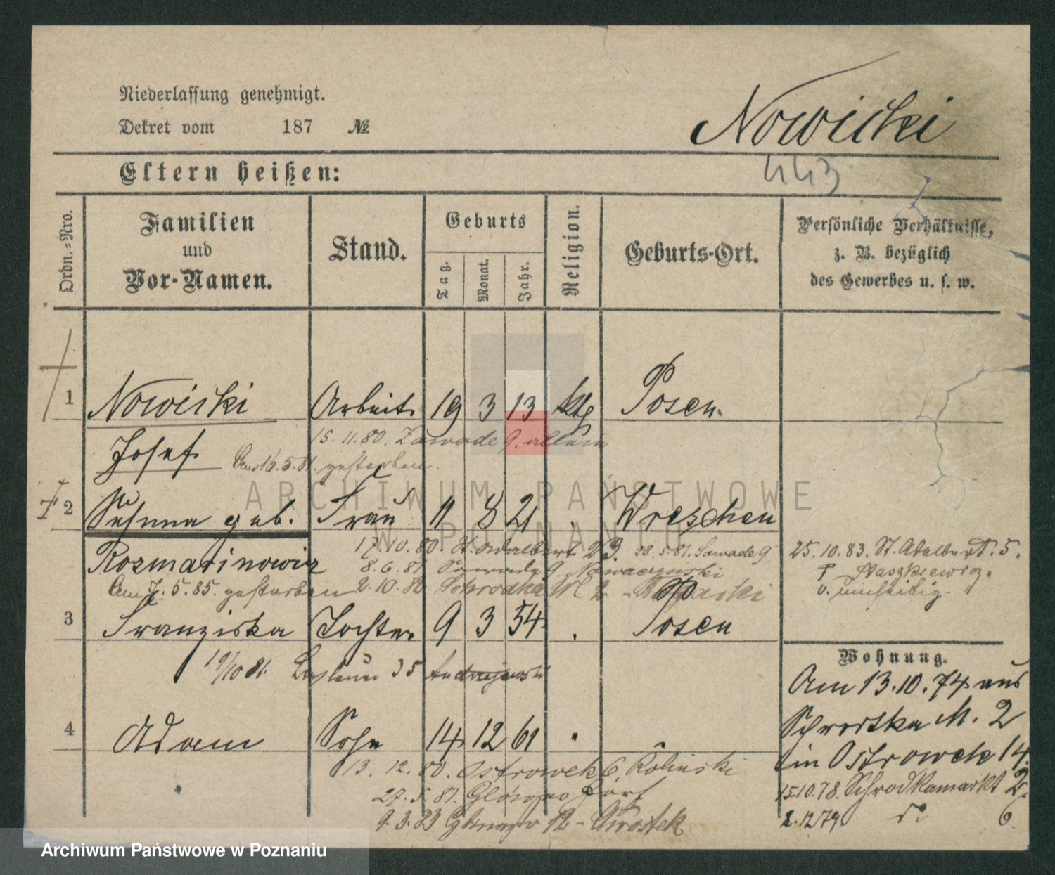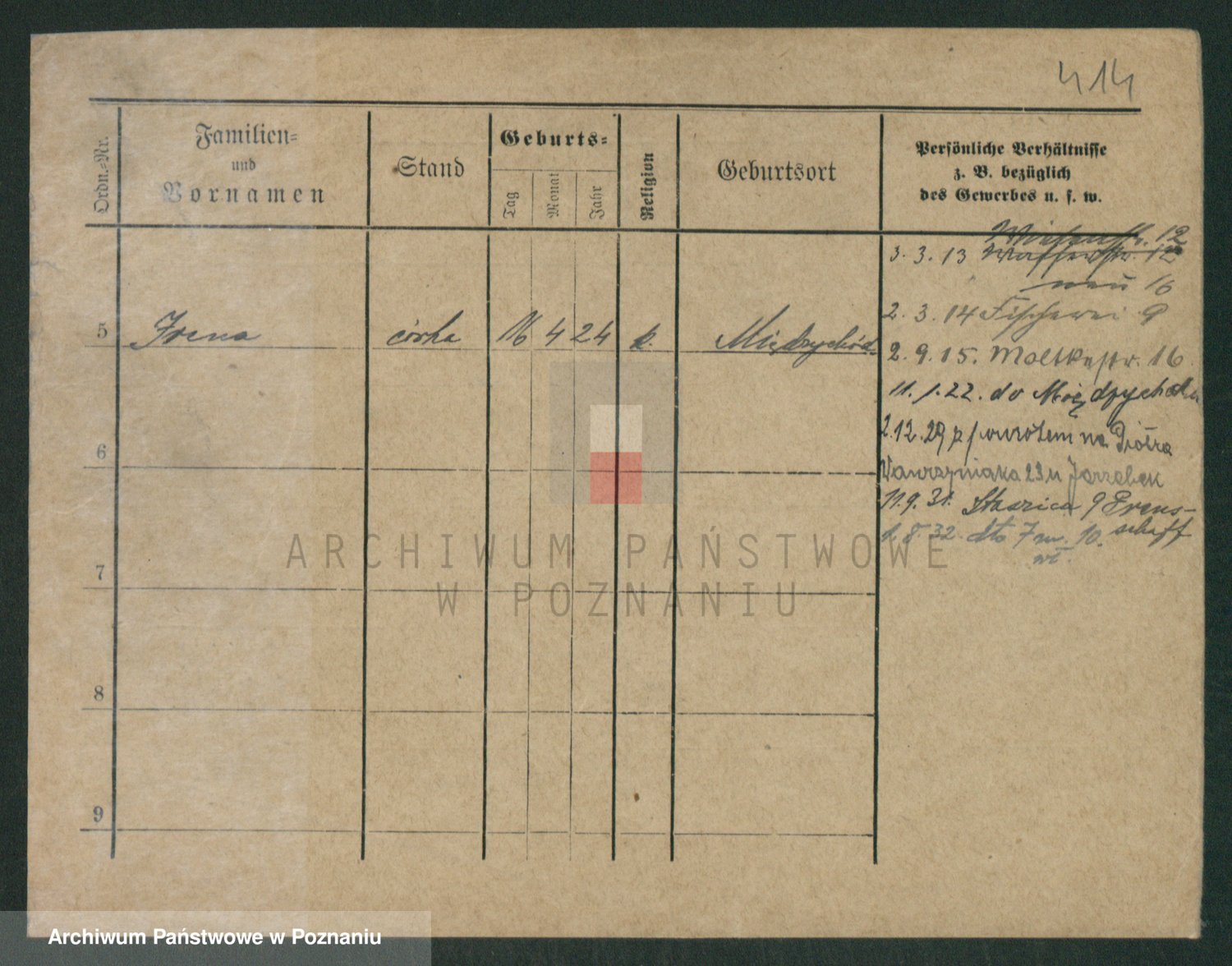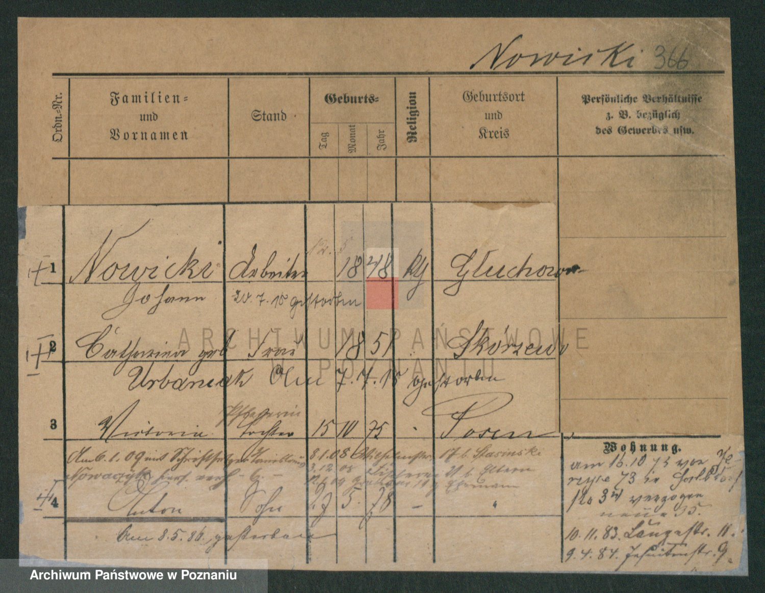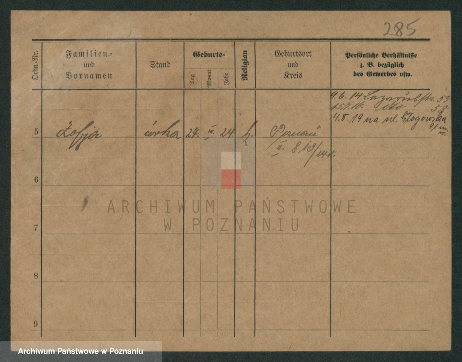 Podgląd karty osobowej dostępny jest po kliknięciu na nazwisko lub ikonkę karty. Można dokonywać powiększenia (ikony na górze) lub przechodzić między kolejnymi skanami (strzałki po bokach).