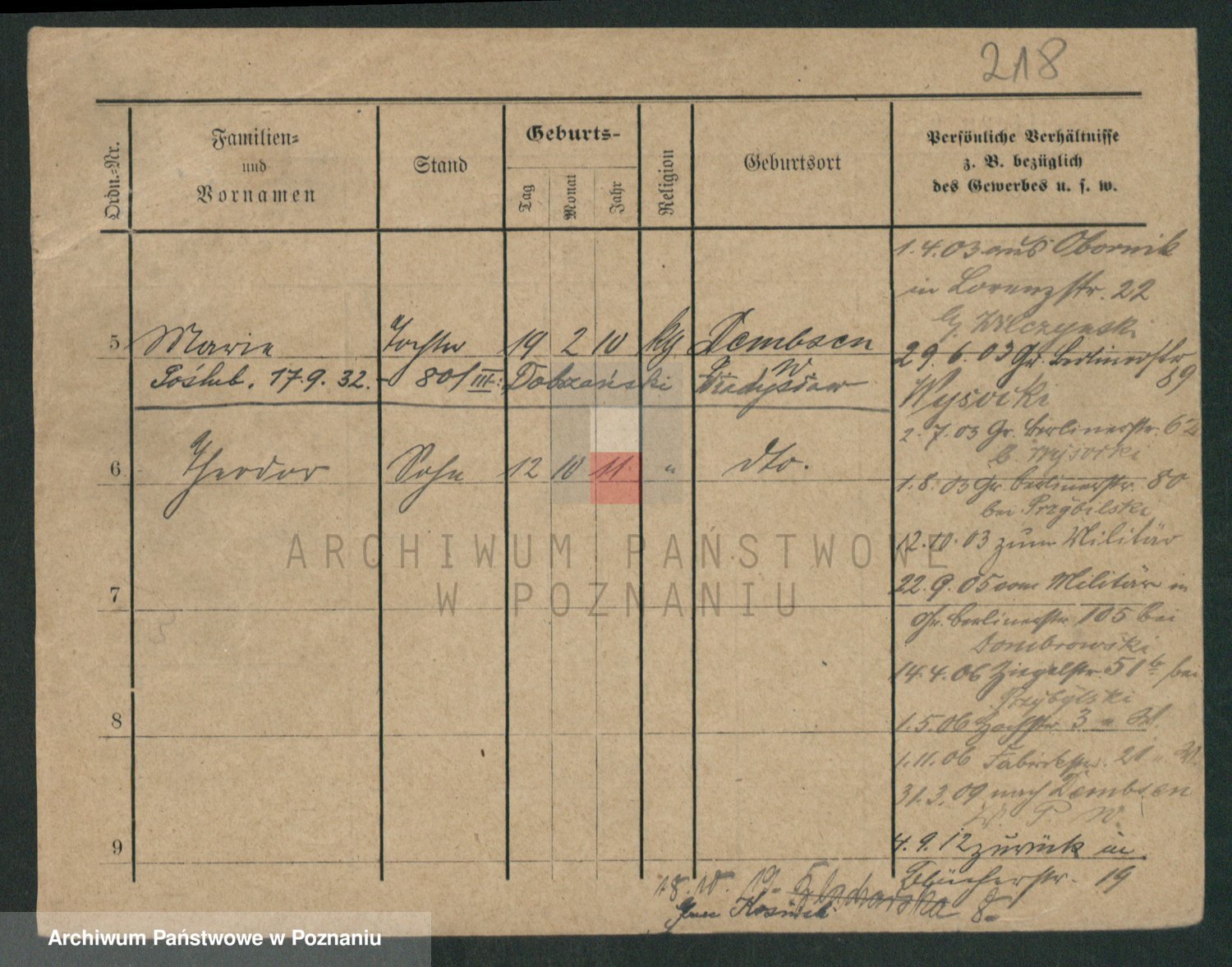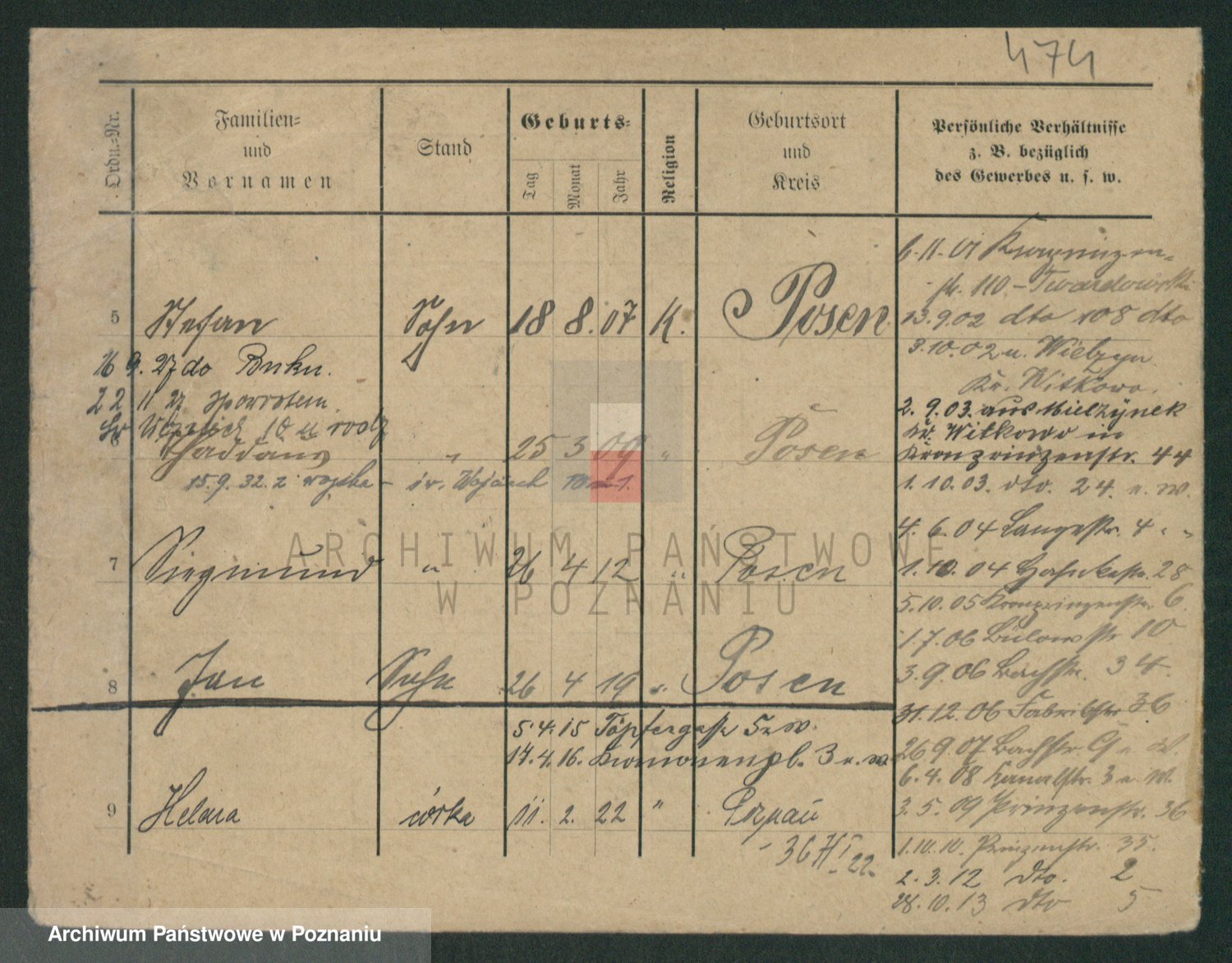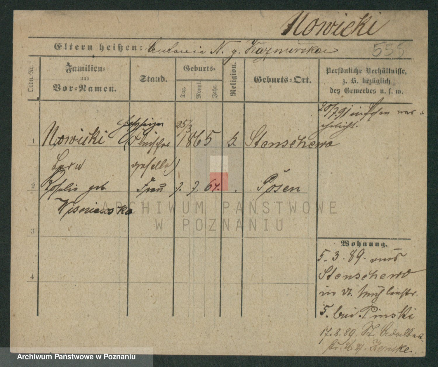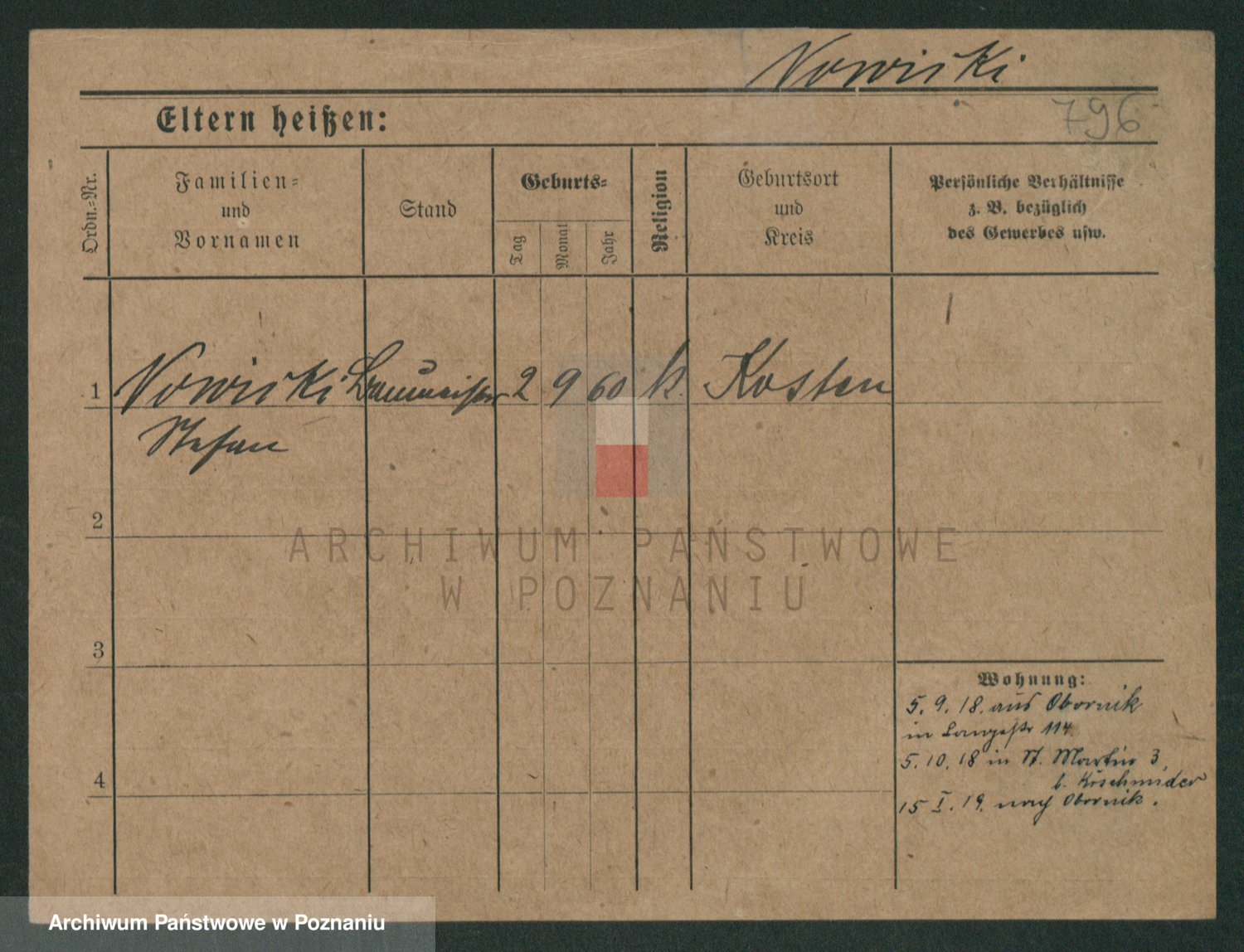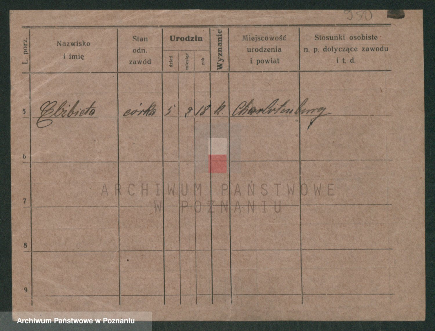 Podgląd karty osobowej dostępny jest po kliknięciu na nazwisko lub ikonkę karty. Można dokonywać powiększenia (ikony na górze) lub przechodzić między kolejnymi skanami (strzałki po bokach).