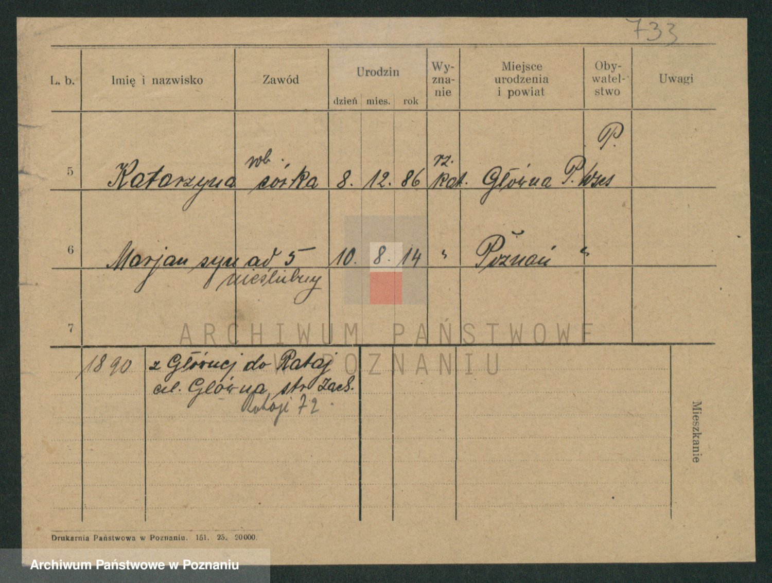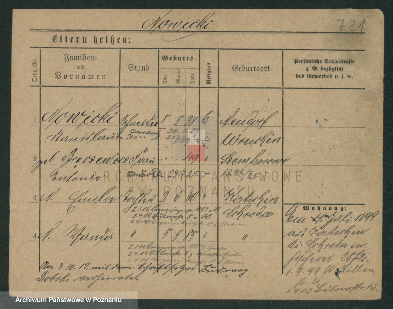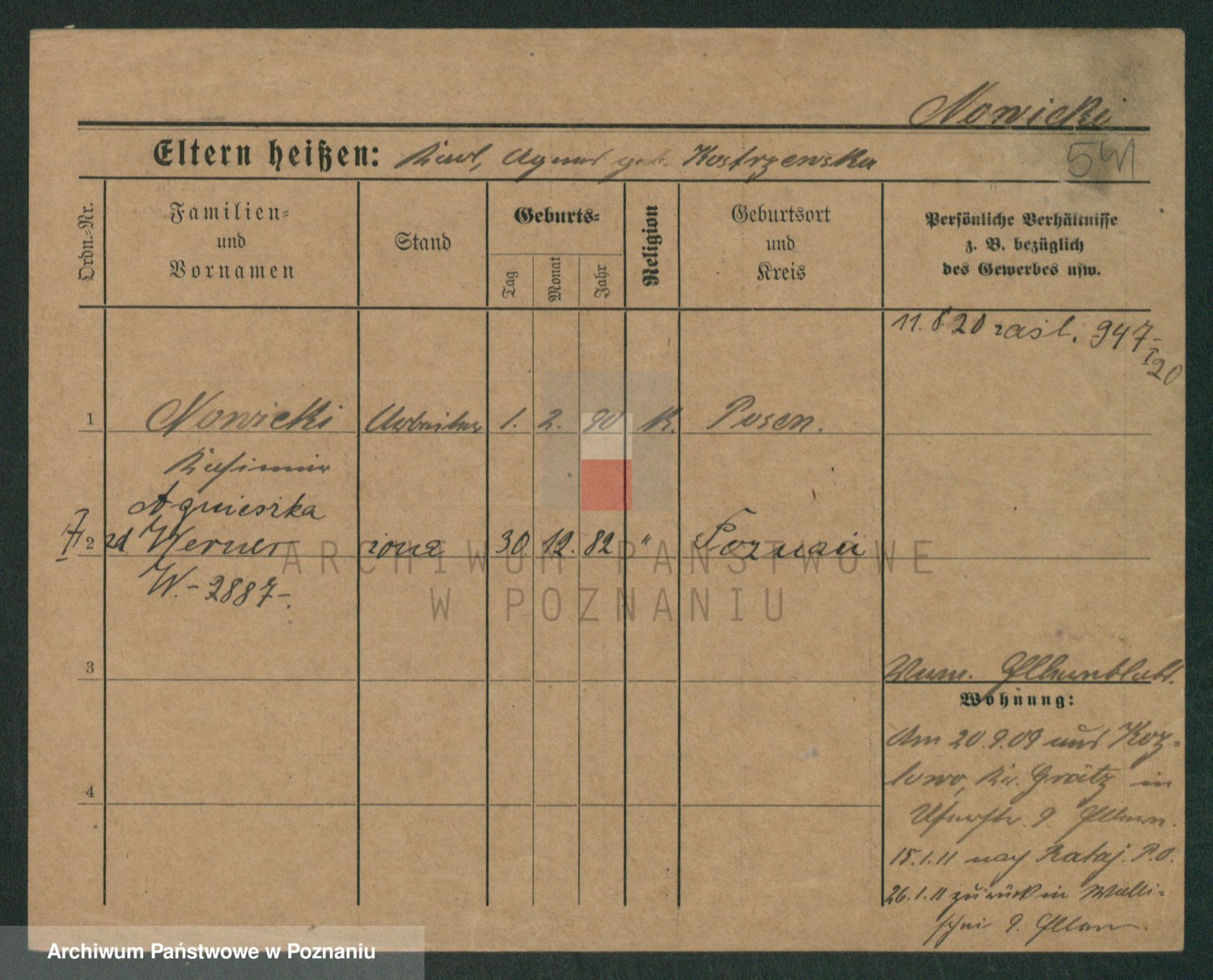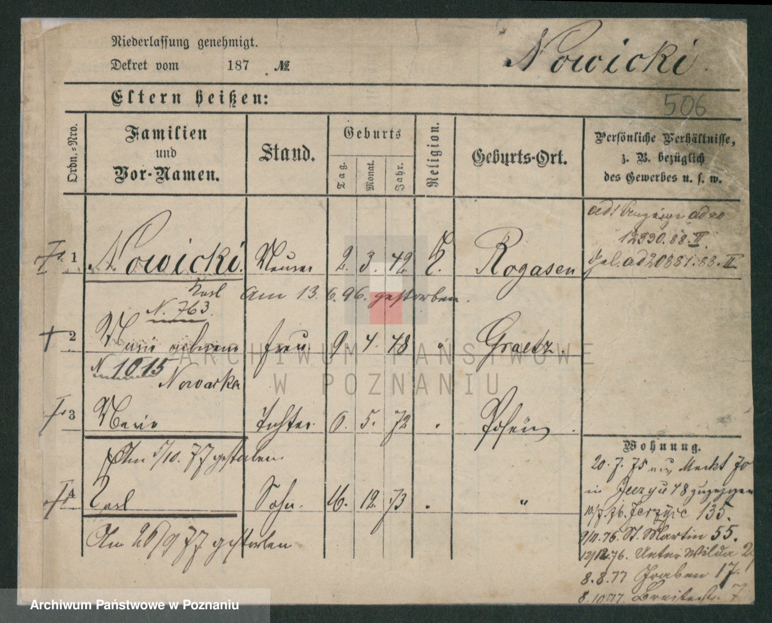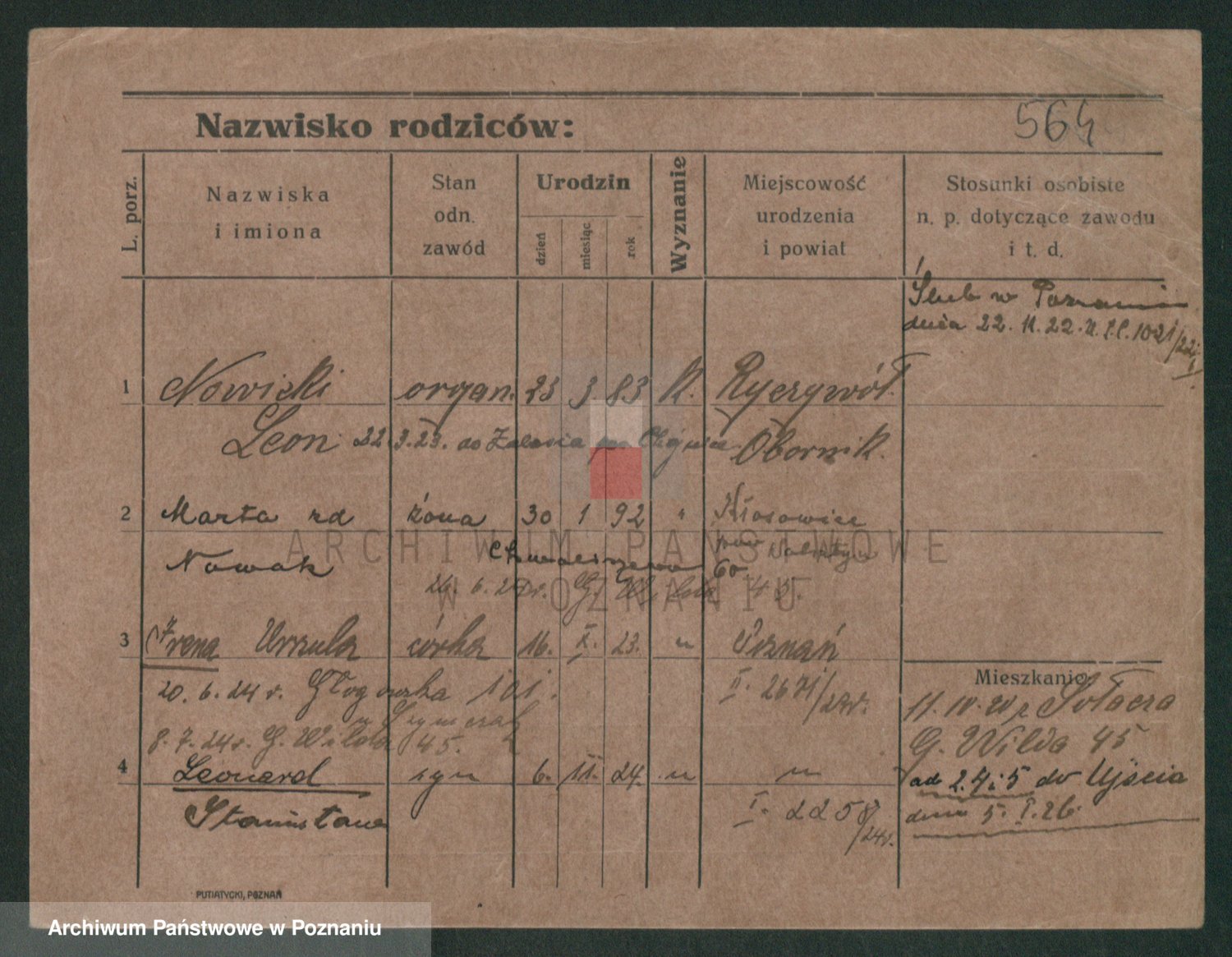 Podgląd karty osobowej dostępny jest po kliknięciu na nazwisko lub ikonkę karty. Można dokonywać powiększenia (ikony na górze) lub przechodzić między kolejnymi skanami (strzałki po bokach).