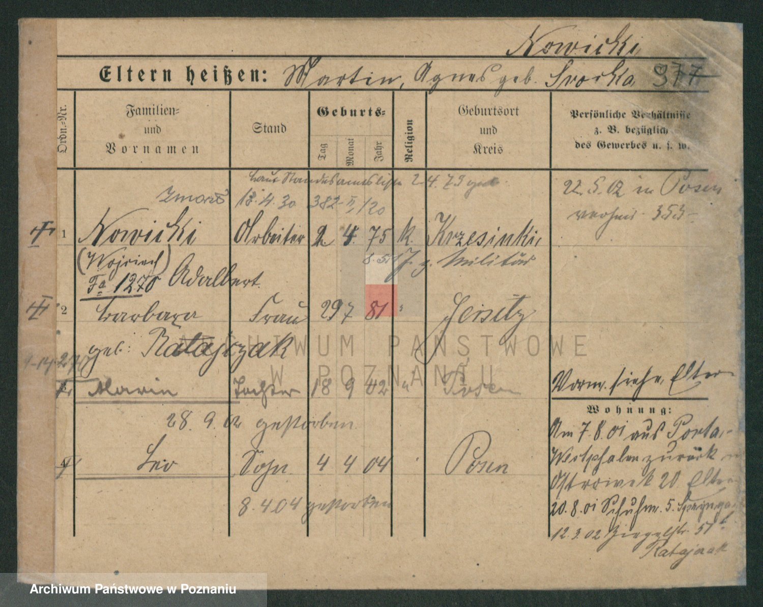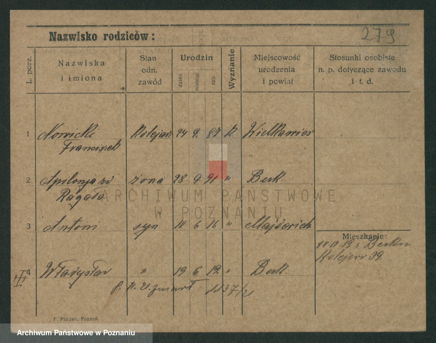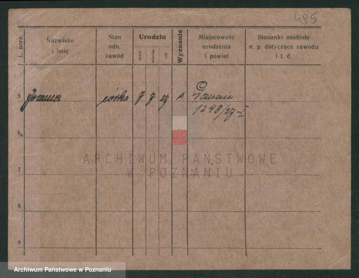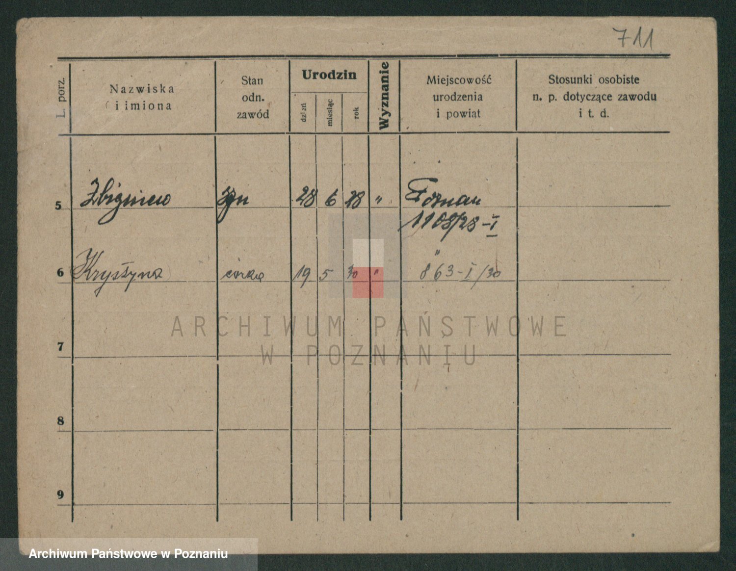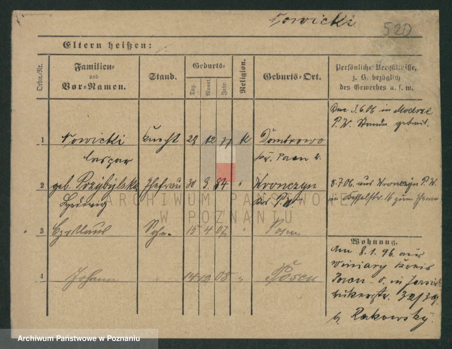 Podgląd karty osobowej dostępny jest po kliknięciu na nazwisko lub ikonkę karty. Można dokonywać powiększenia (ikony na górze) lub przechodzić między kolejnymi skanami (strzałki po bokach).