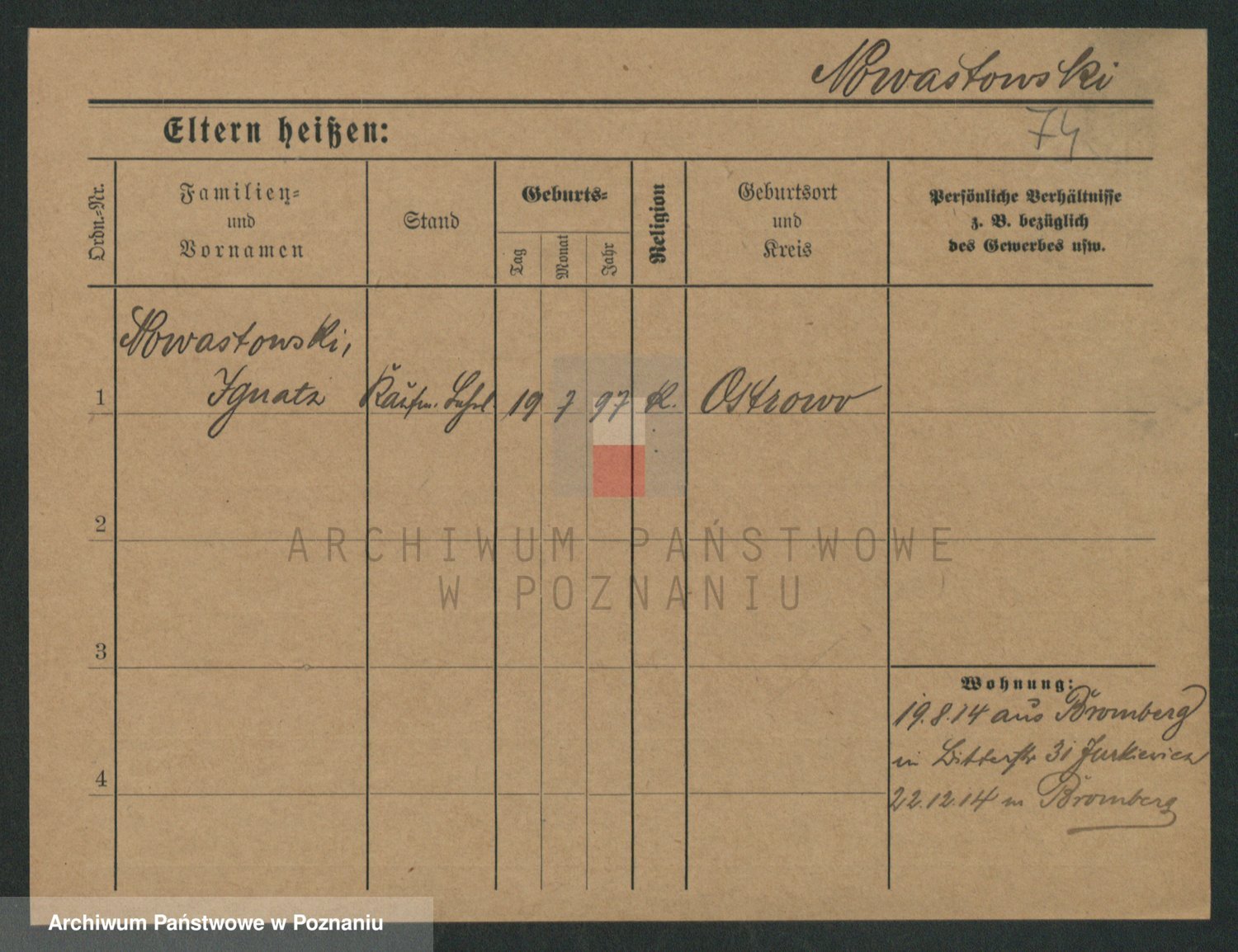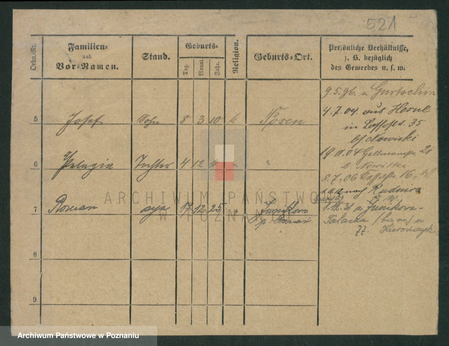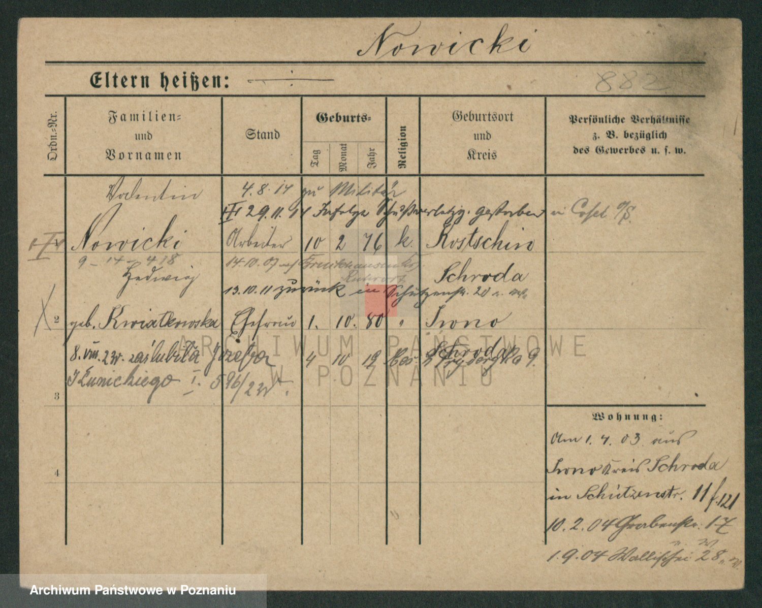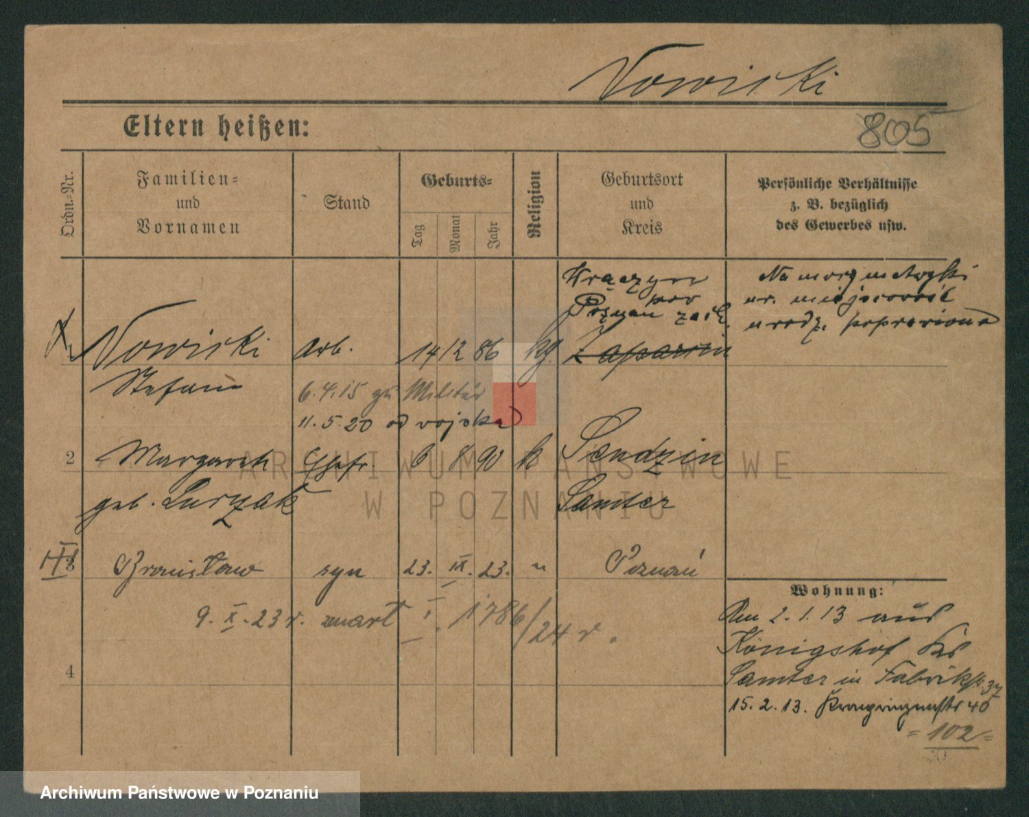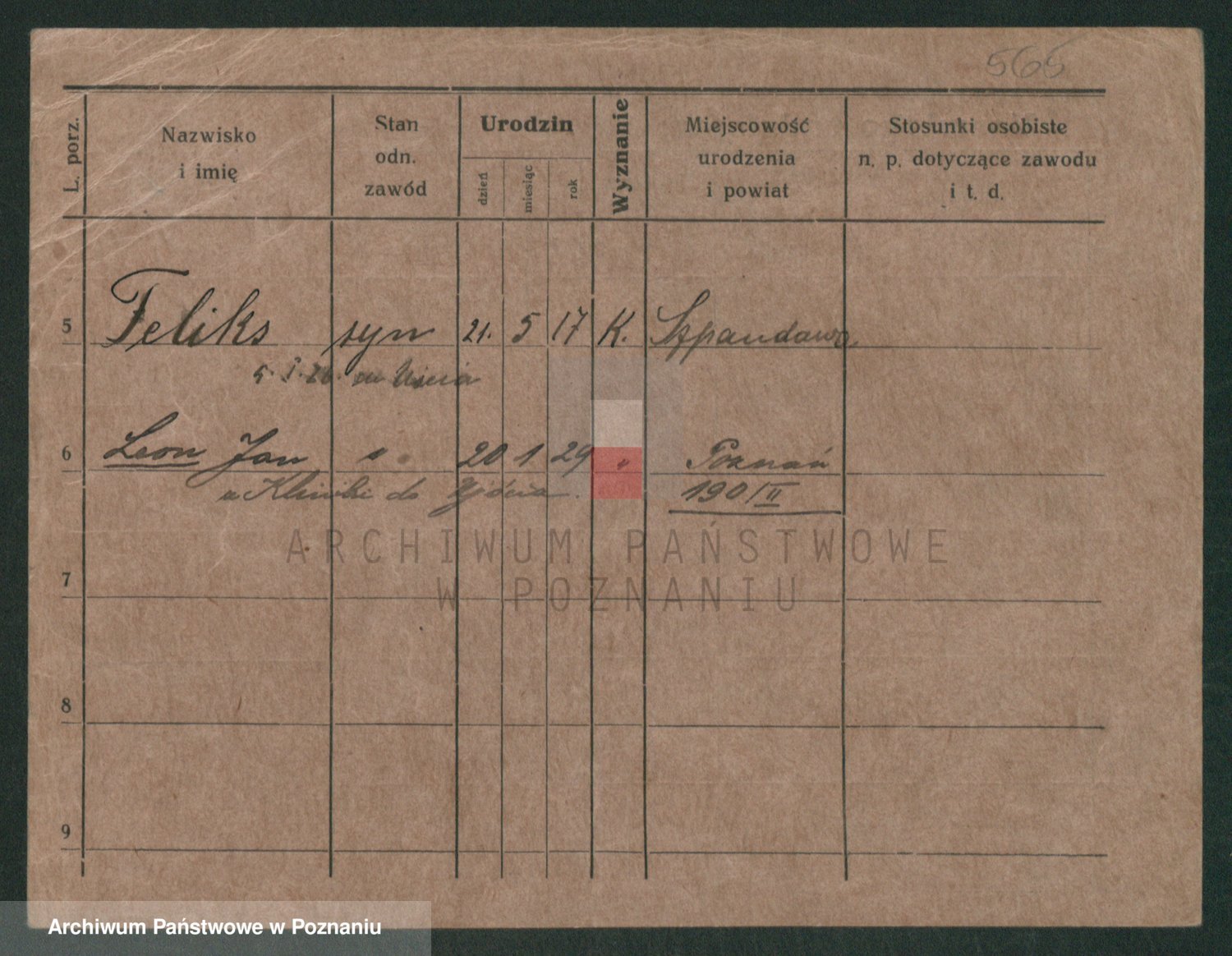 Podgląd karty osobowej dostępny jest po kliknięciu na nazwisko lub ikonkę karty. Można dokonywać powiększenia (ikony na górze) lub przechodzić między kolejnymi skanami (strzałki po bokach).