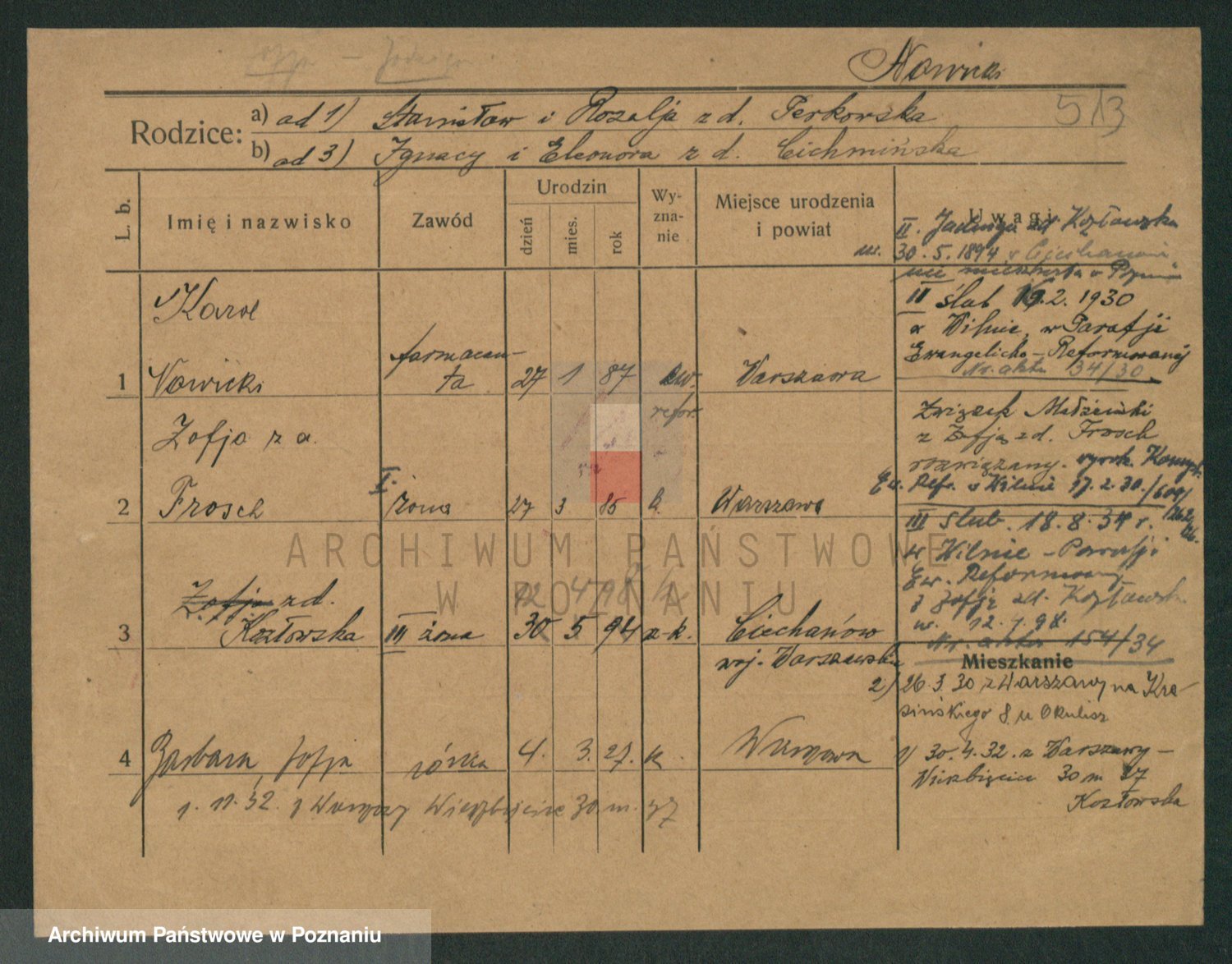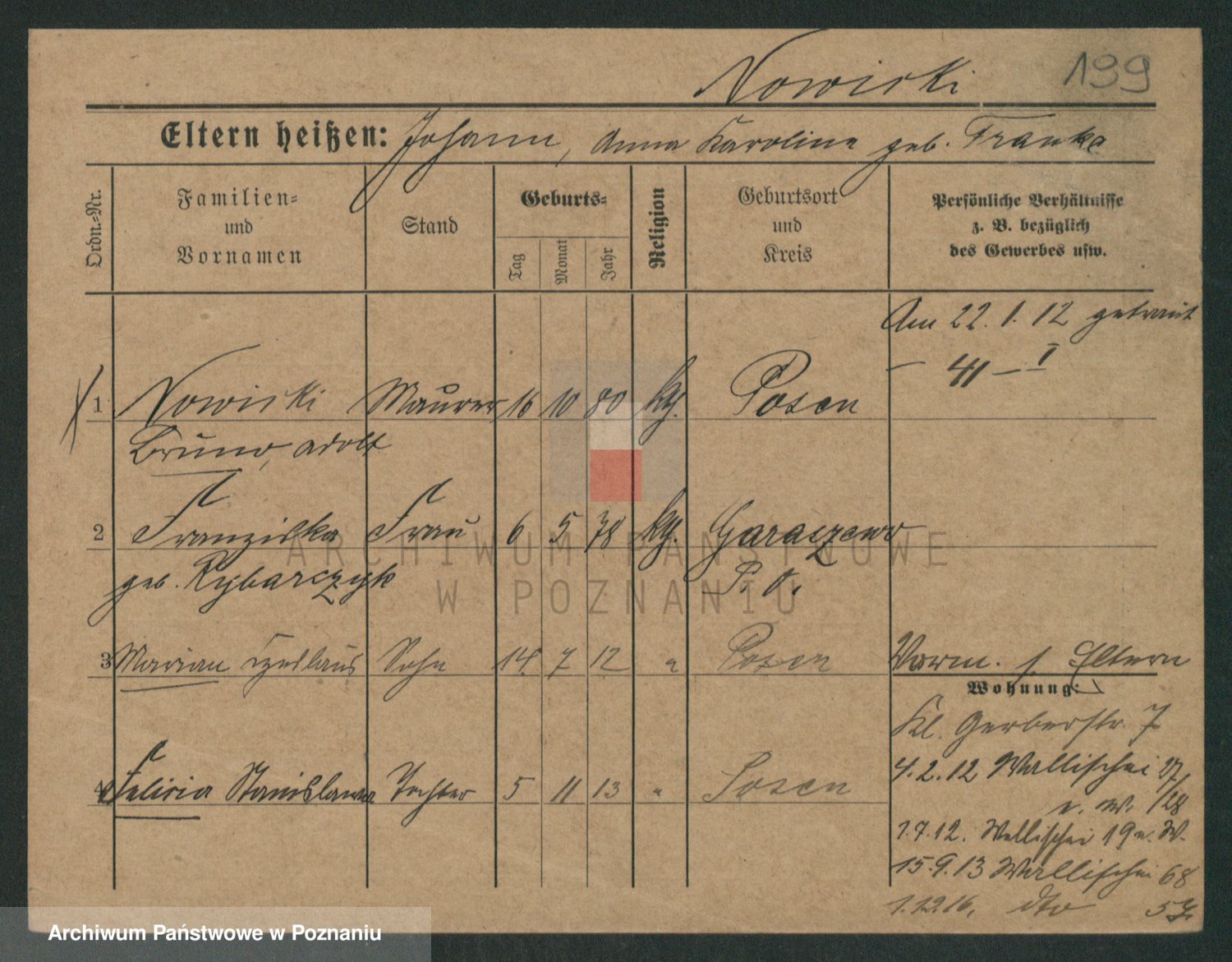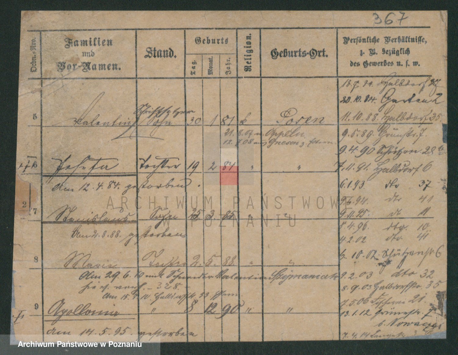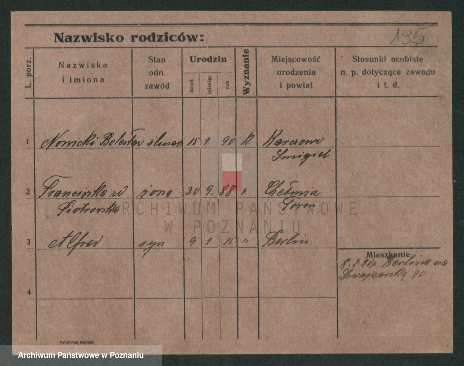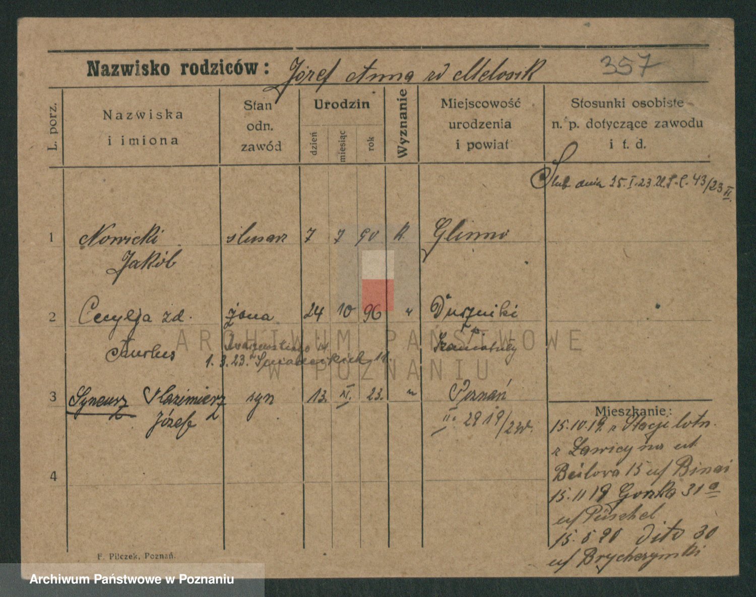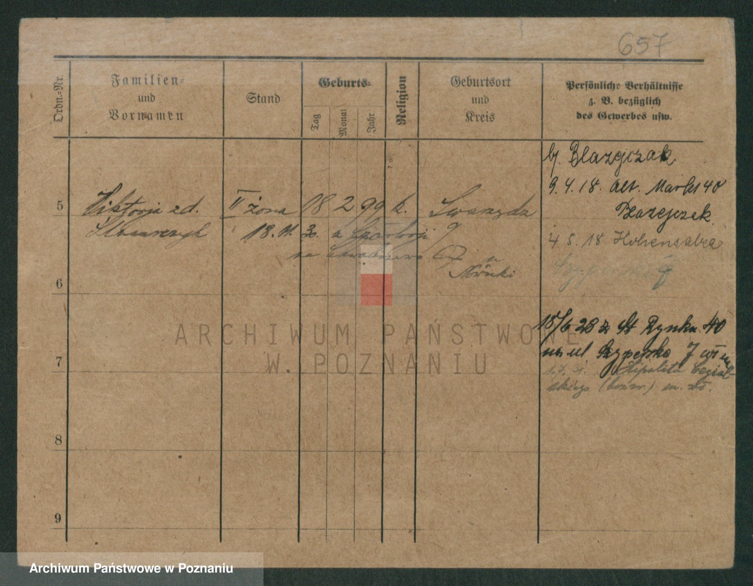 Podgląd karty osobowej dostępny jest po kliknięciu na nazwisko lub ikonkę karty. Można dokonywać powiększenia (ikony na górze) lub przechodzić między kolejnymi skanami (strzałki po bokach).