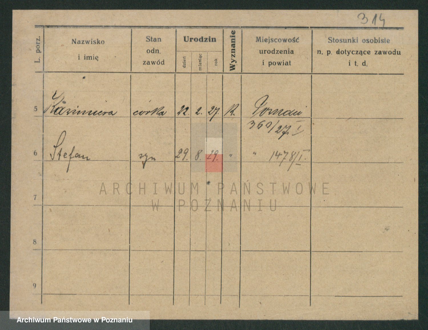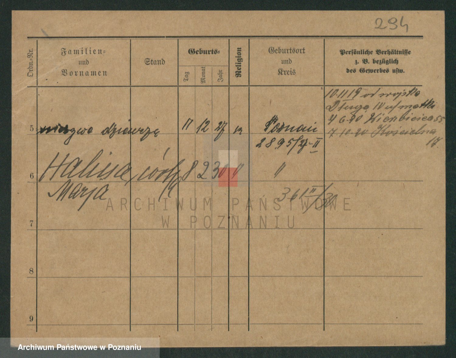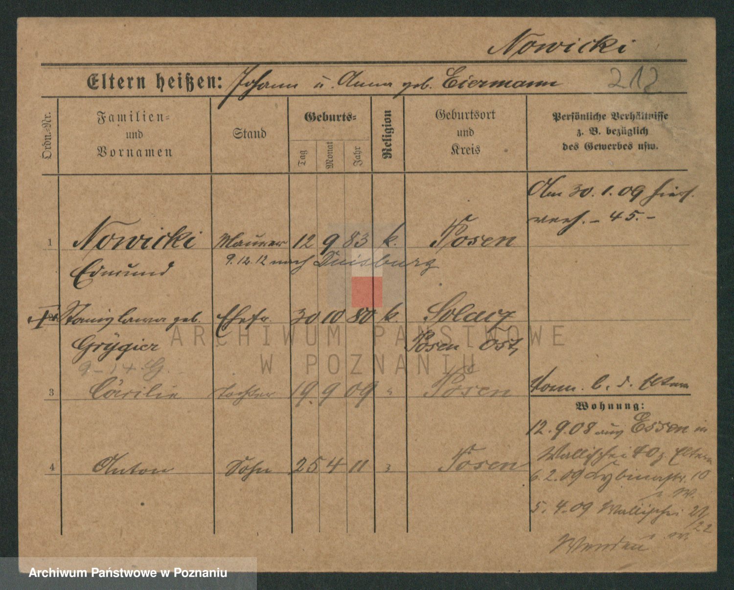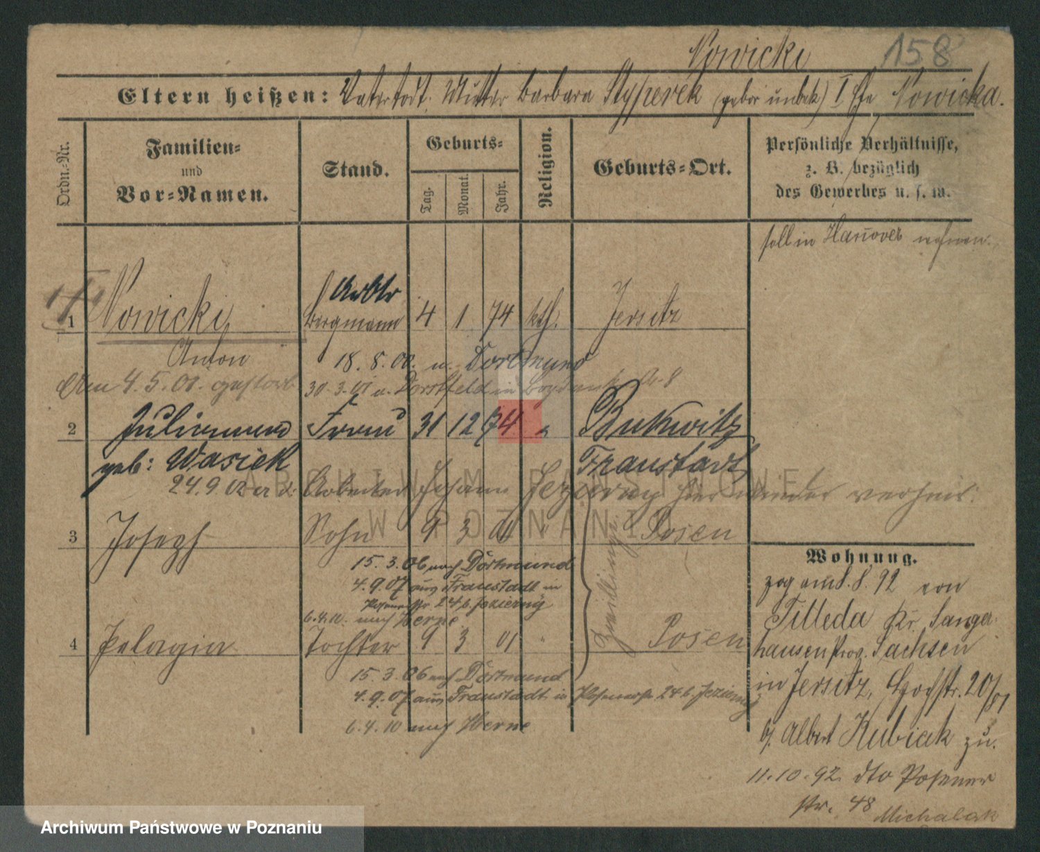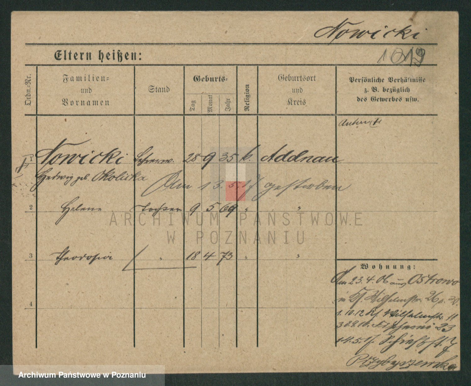 Podgląd karty osobowej dostępny jest po kliknięciu na nazwisko lub ikonkę karty. Można dokonywać powiększenia (ikony na górze) lub przechodzić między kolejnymi skanami (strzałki po bokach).
