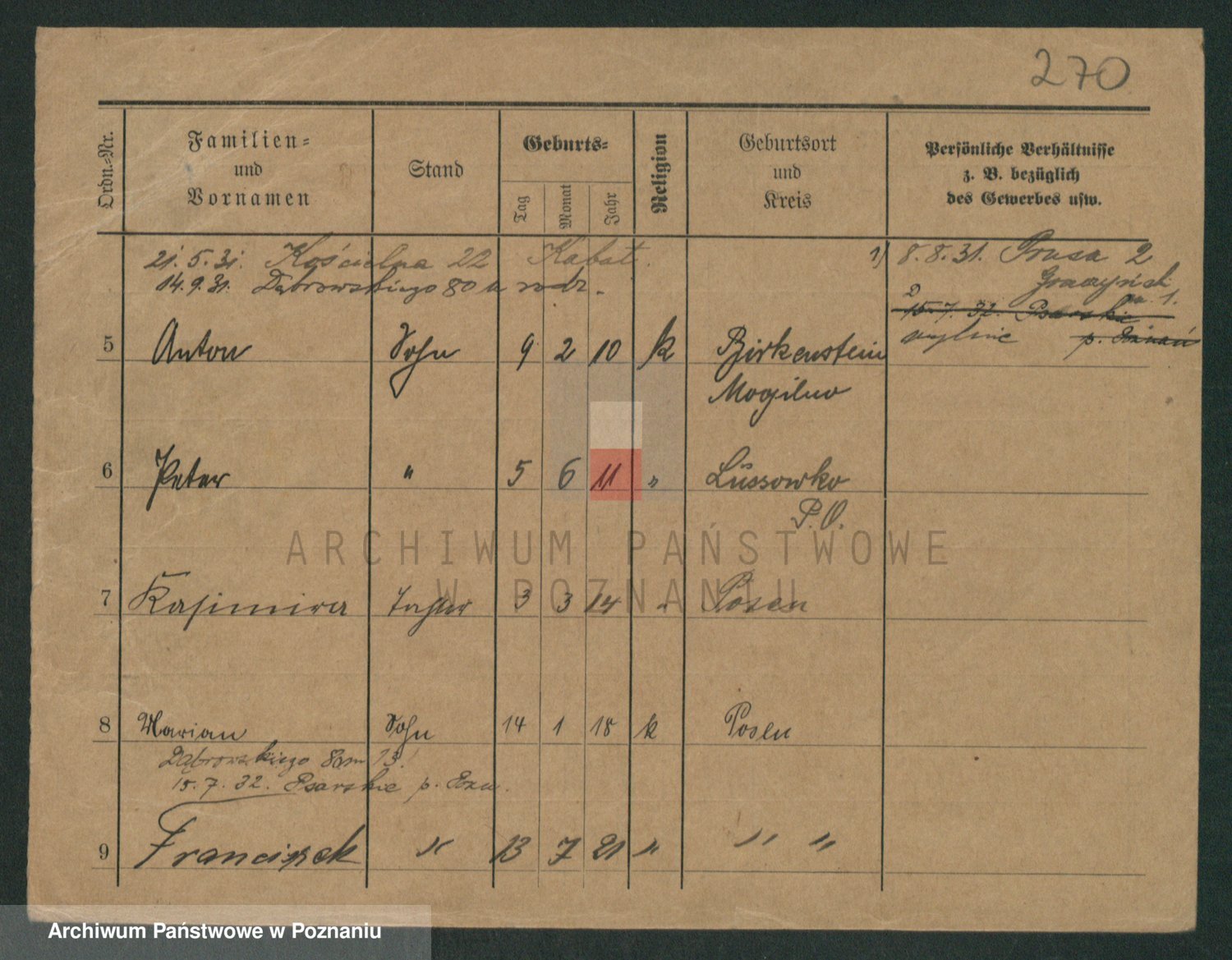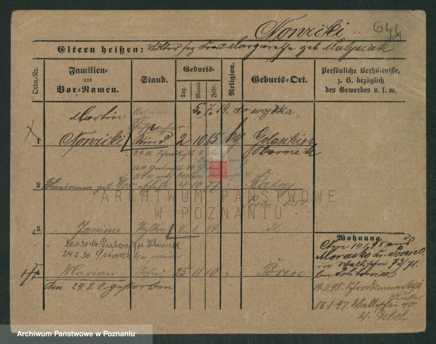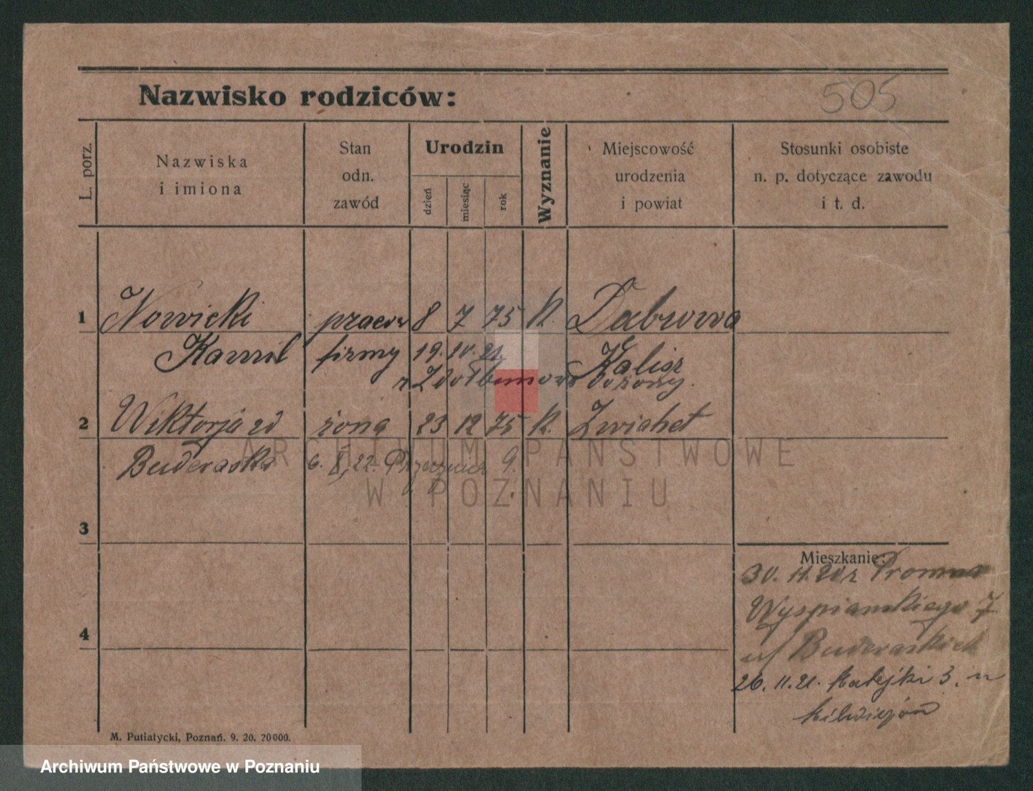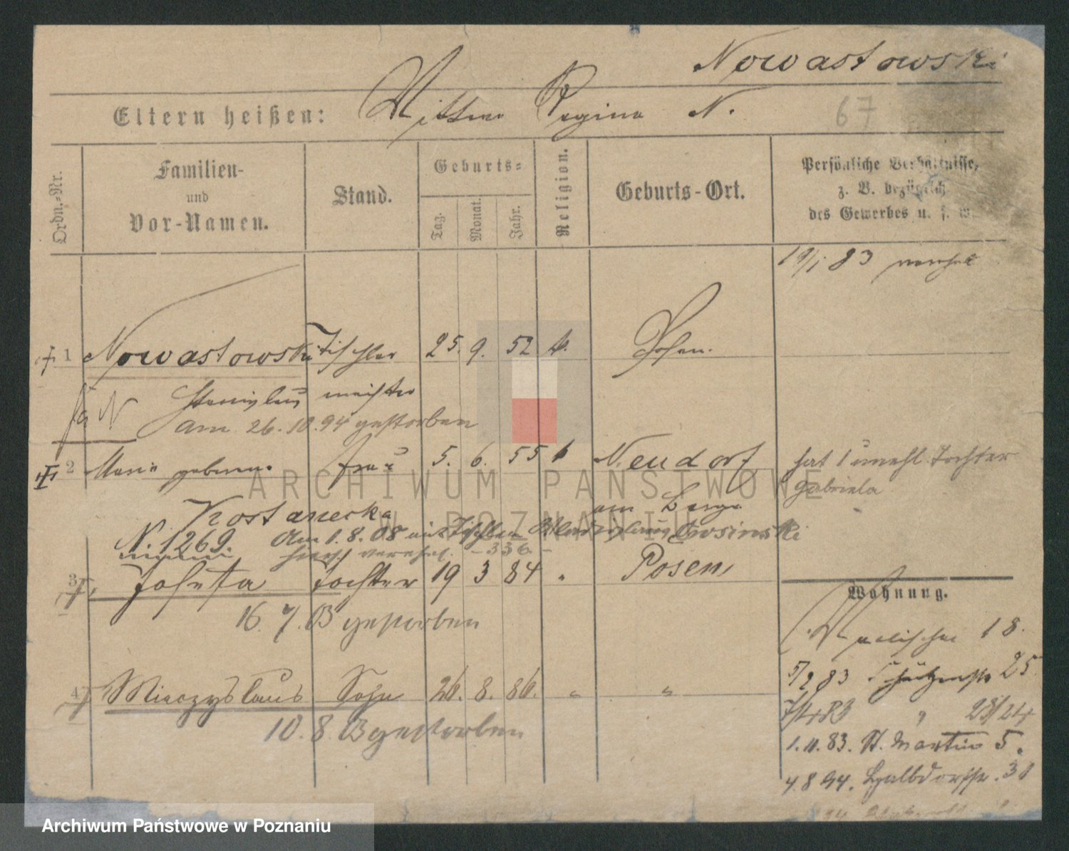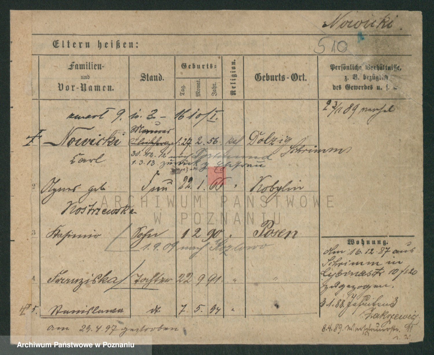 Podgląd karty osobowej dostępny jest po kliknięciu na nazwisko lub ikonkę karty. Można dokonywać powiększenia (ikony na górze) lub przechodzić między kolejnymi skanami (strzałki po bokach).