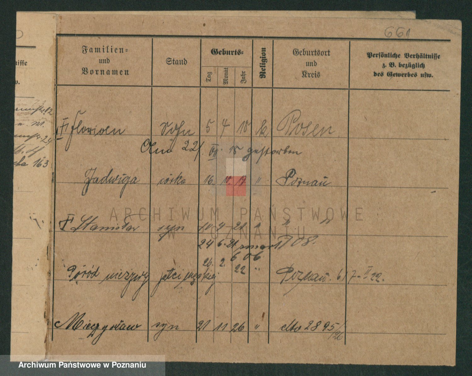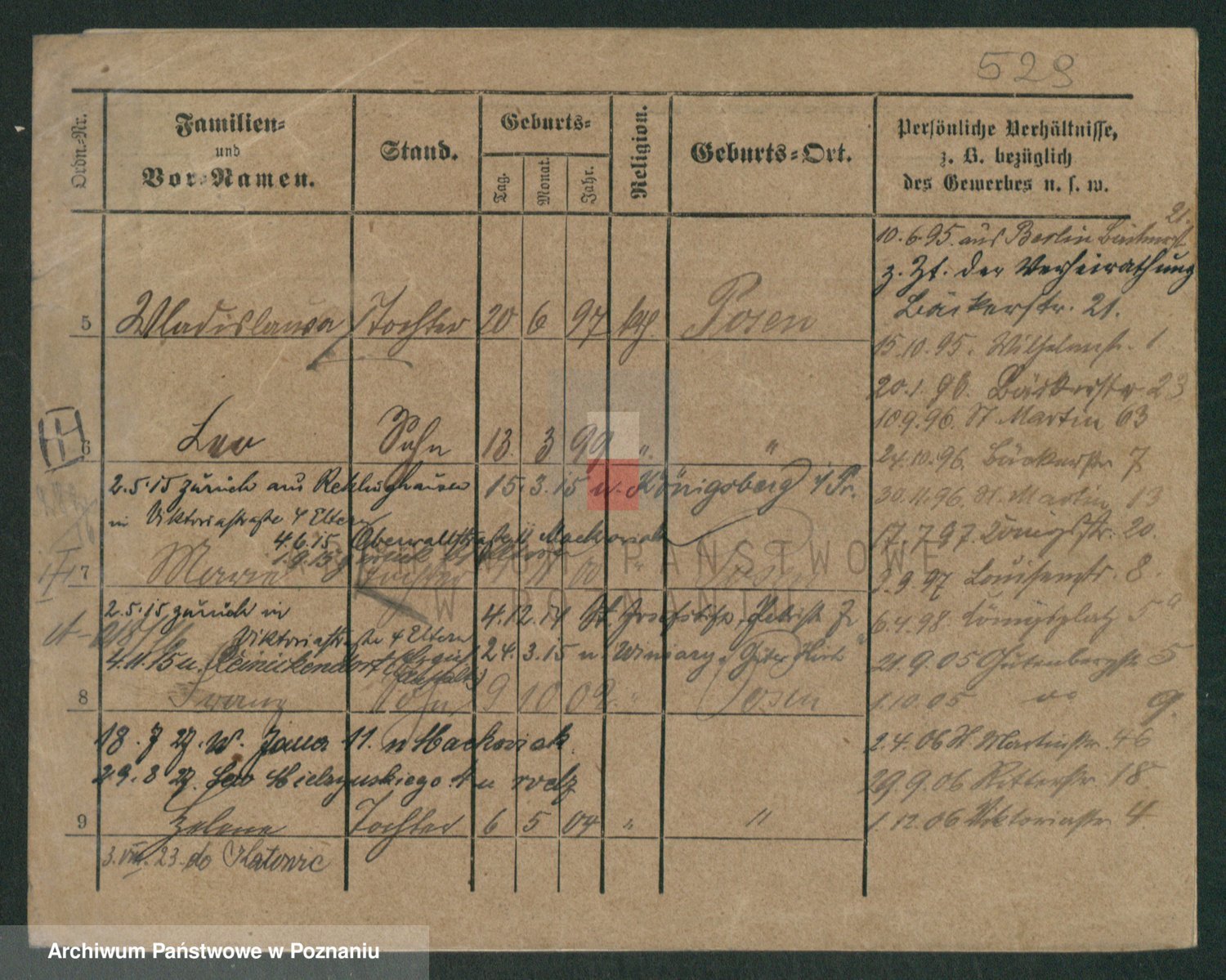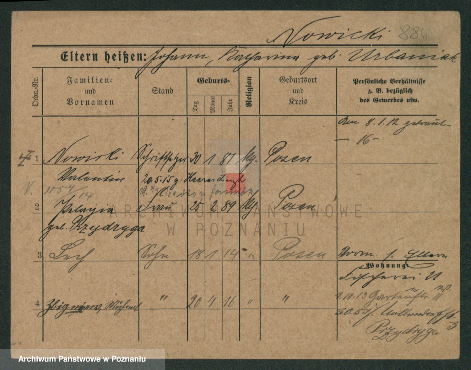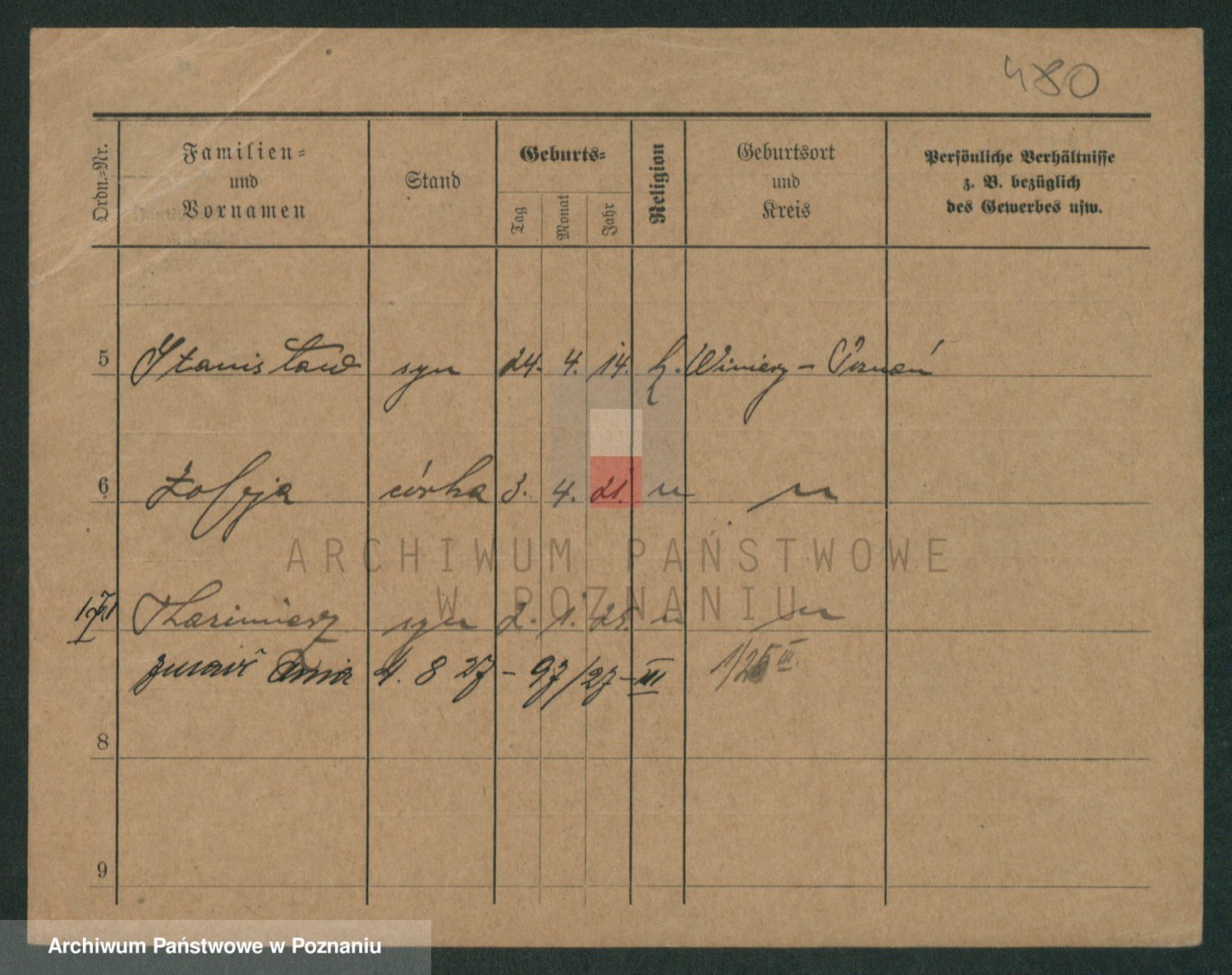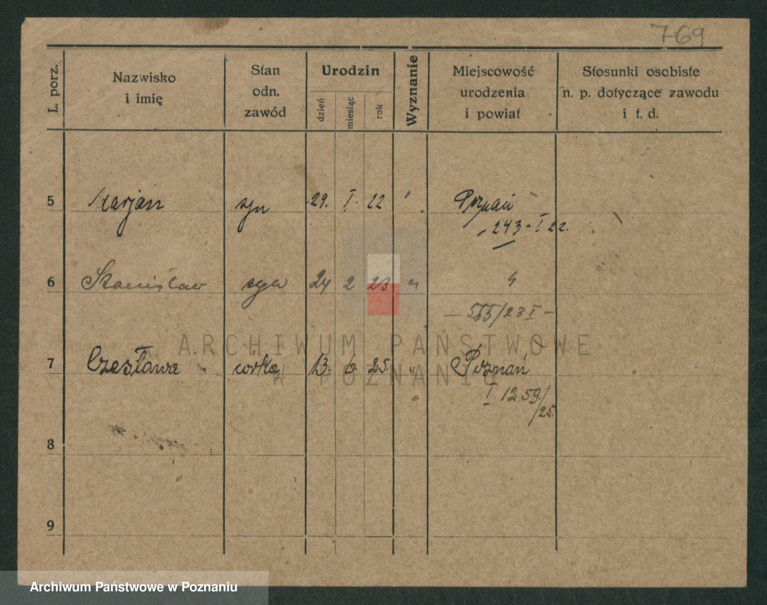 Podgląd karty osobowej dostępny jest po kliknięciu na nazwisko lub ikonkę karty. Można dokonywać powiększenia (ikony na górze) lub przechodzić między kolejnymi skanami (strzałki po bokach).