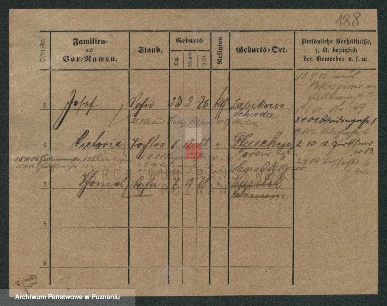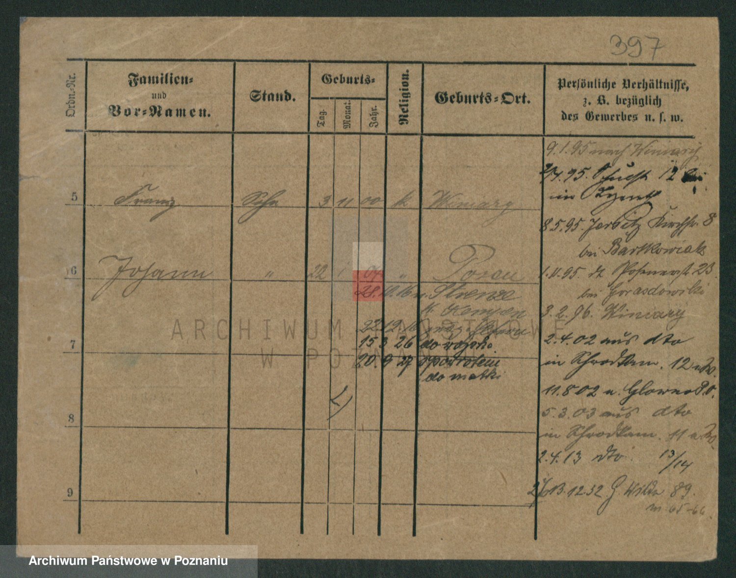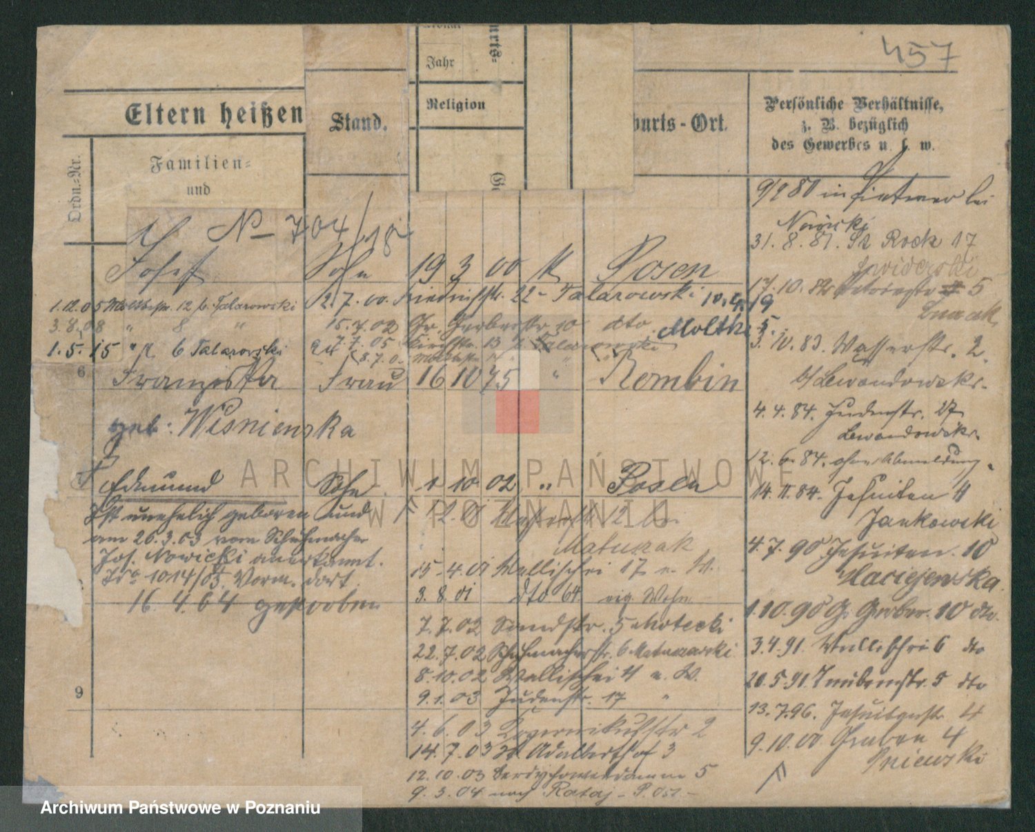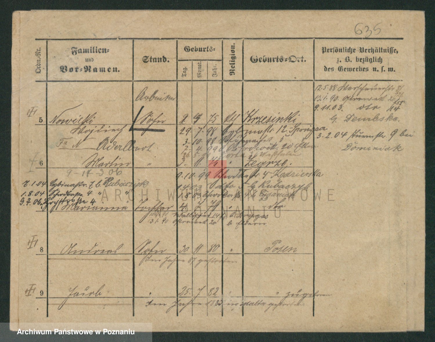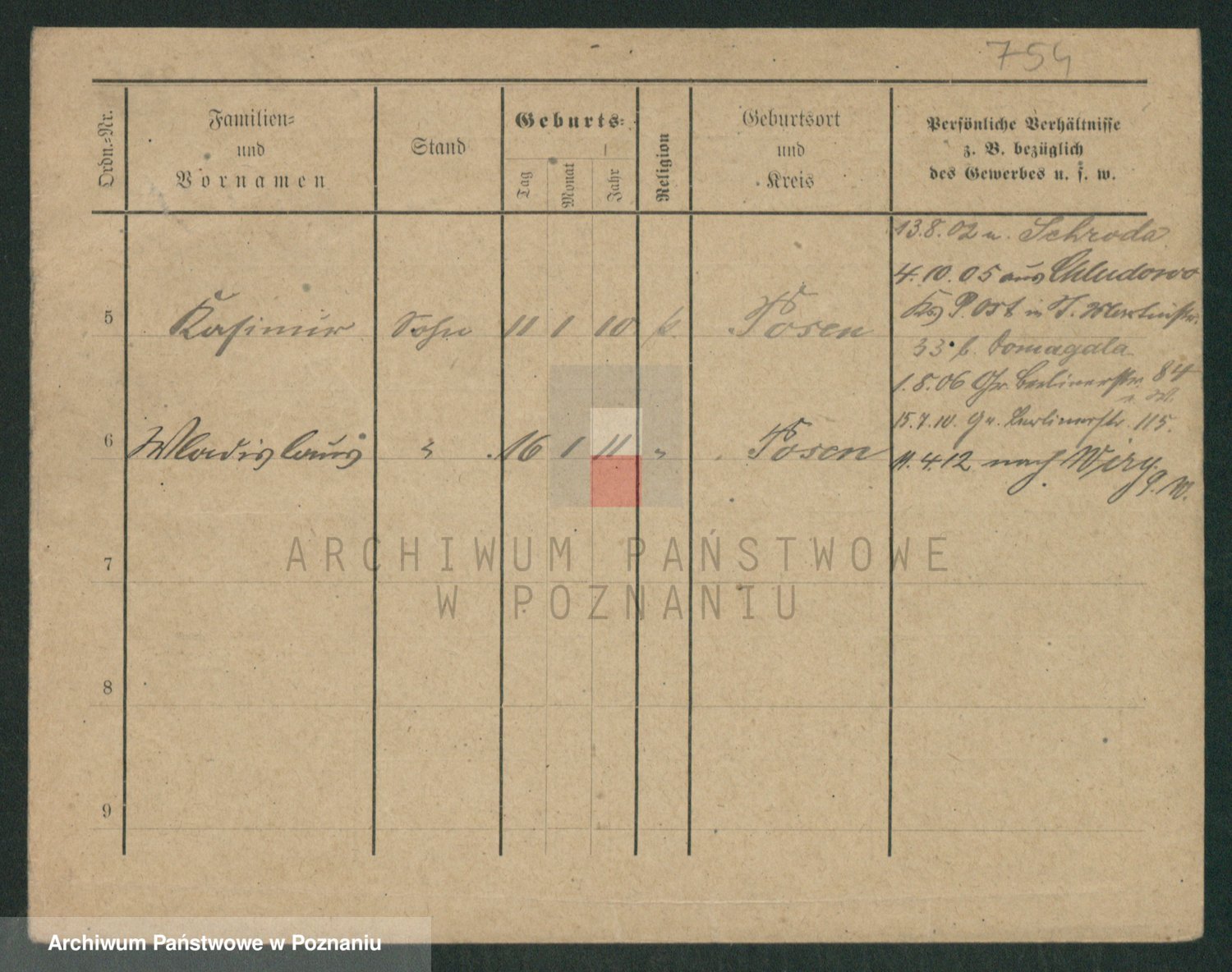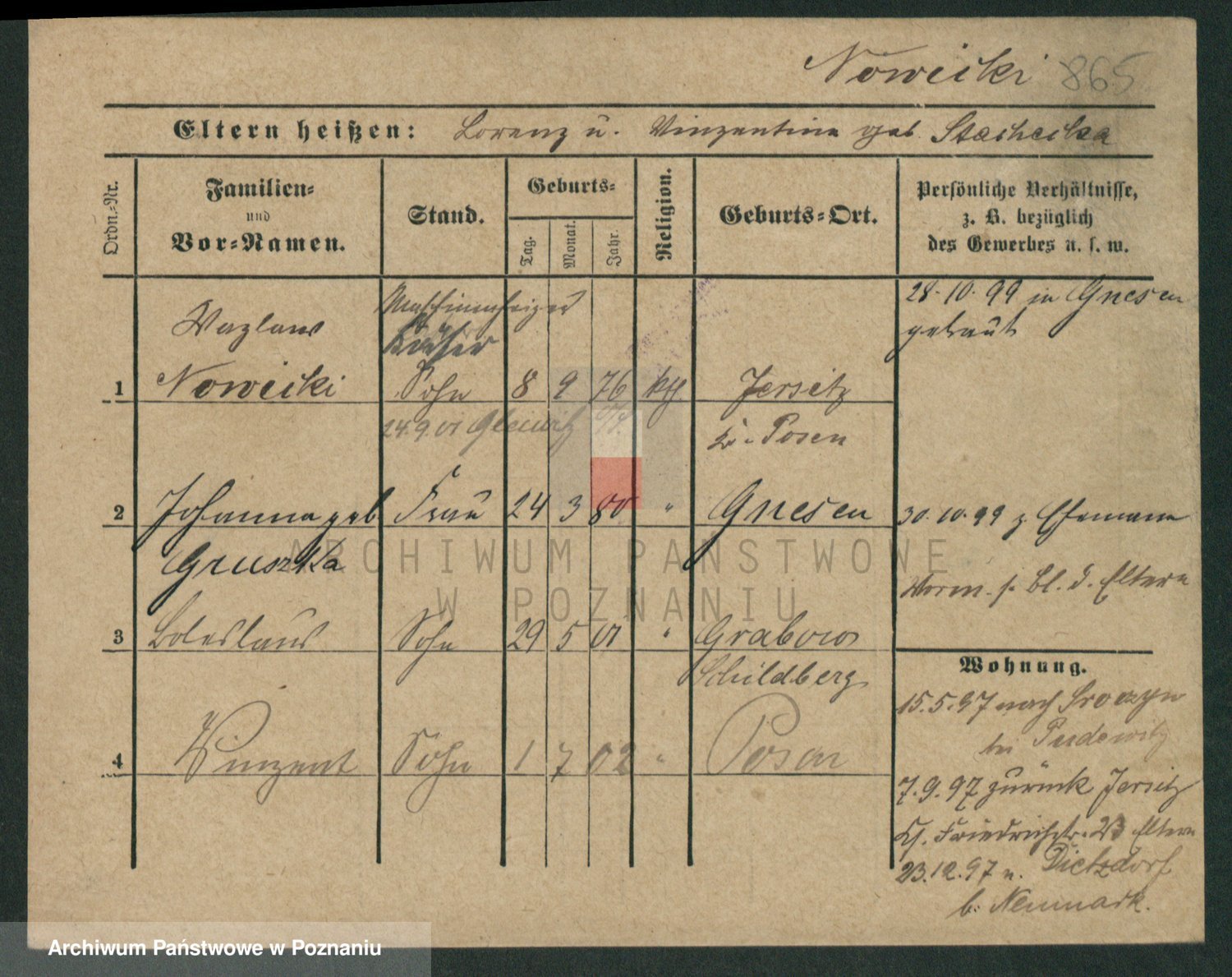 Podgląd karty osobowej dostępny jest po kliknięciu na nazwisko lub ikonkę karty. Można dokonywać powiększenia (ikony na górze) lub przechodzić między kolejnymi skanami (strzałki po bokach).