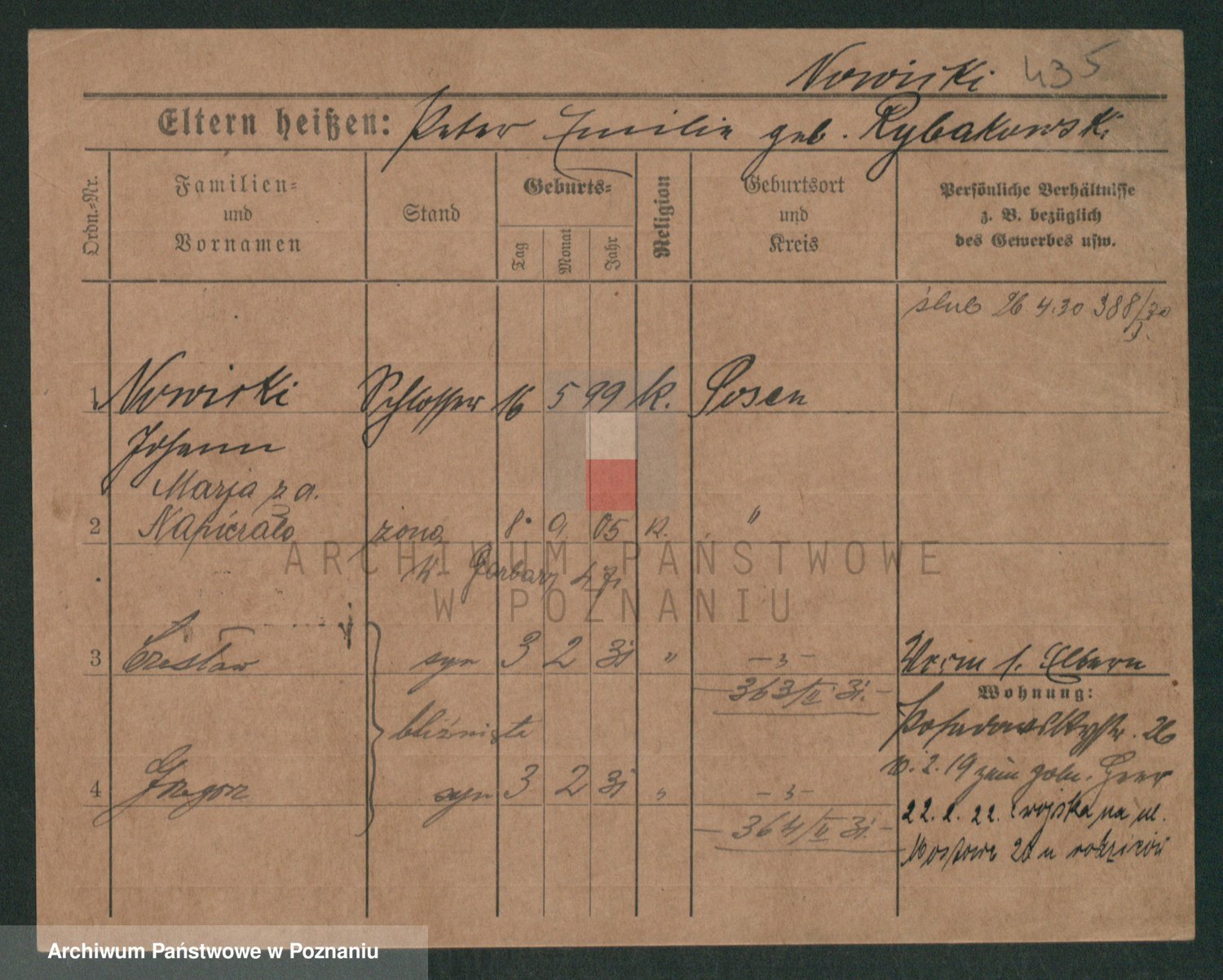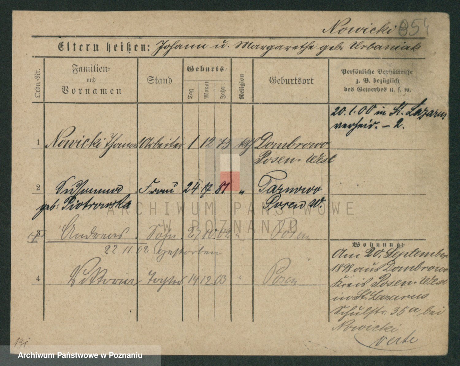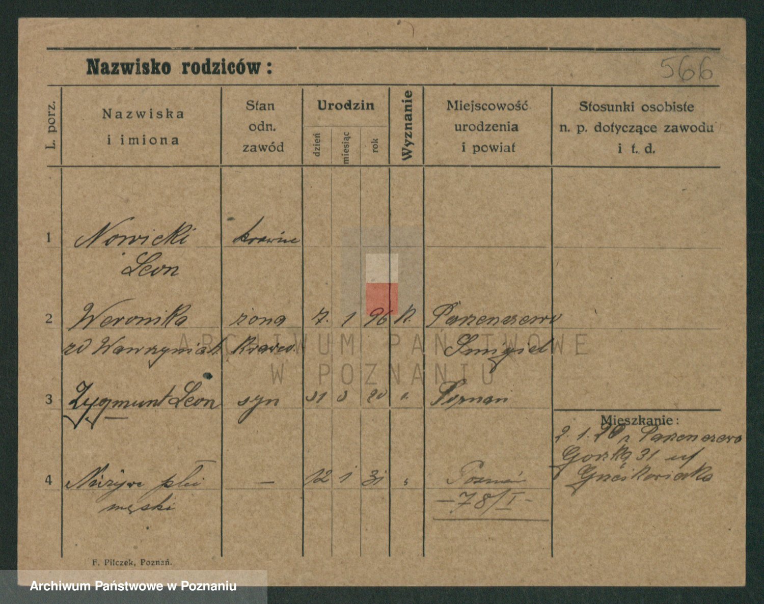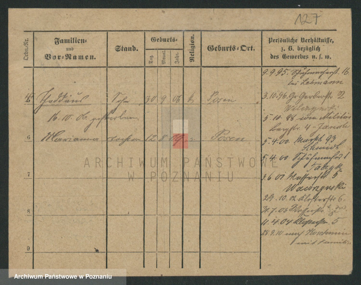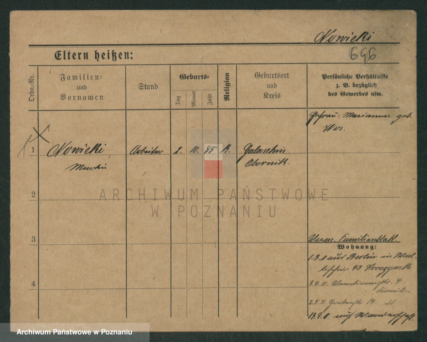 Podgląd karty osobowej dostępny jest po kliknięciu na nazwisko lub ikonkę karty. Można dokonywać powiększenia (ikony na górze) lub przechodzić między kolejnymi skanami (strzałki po bokach).