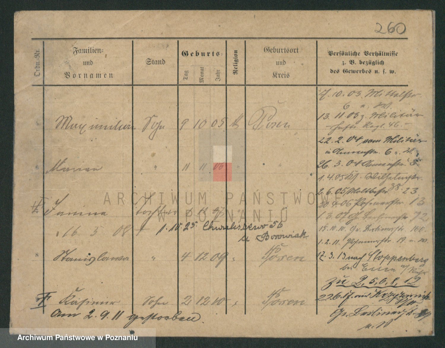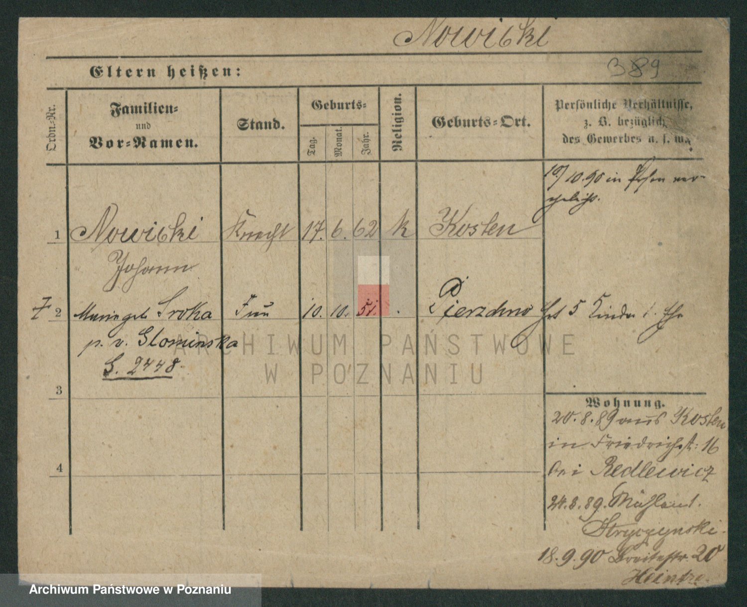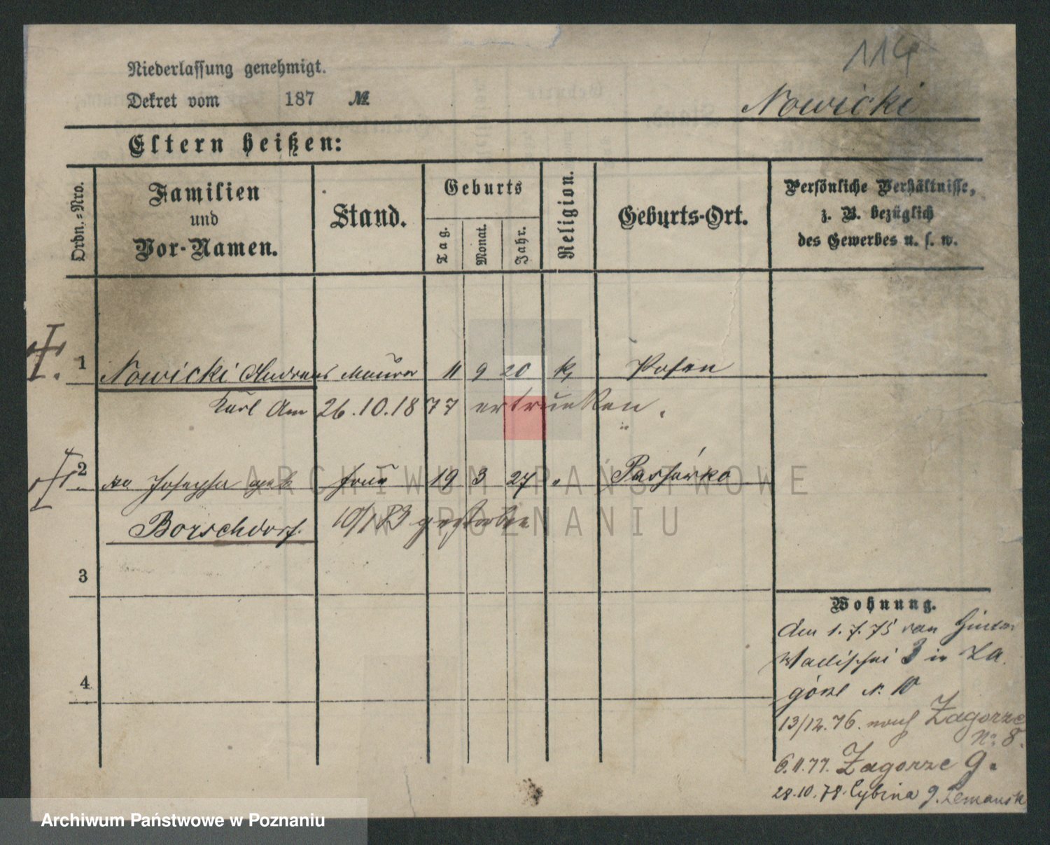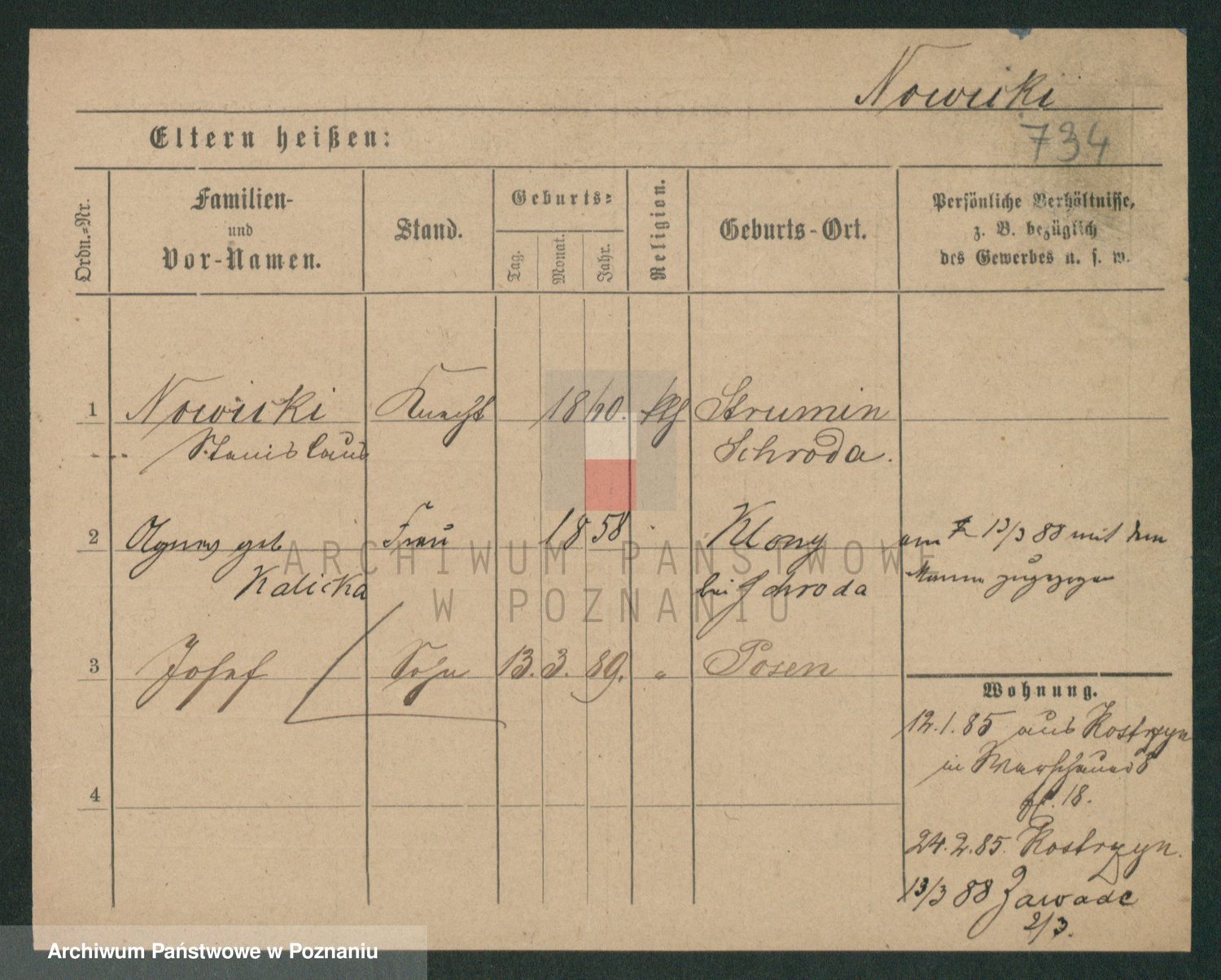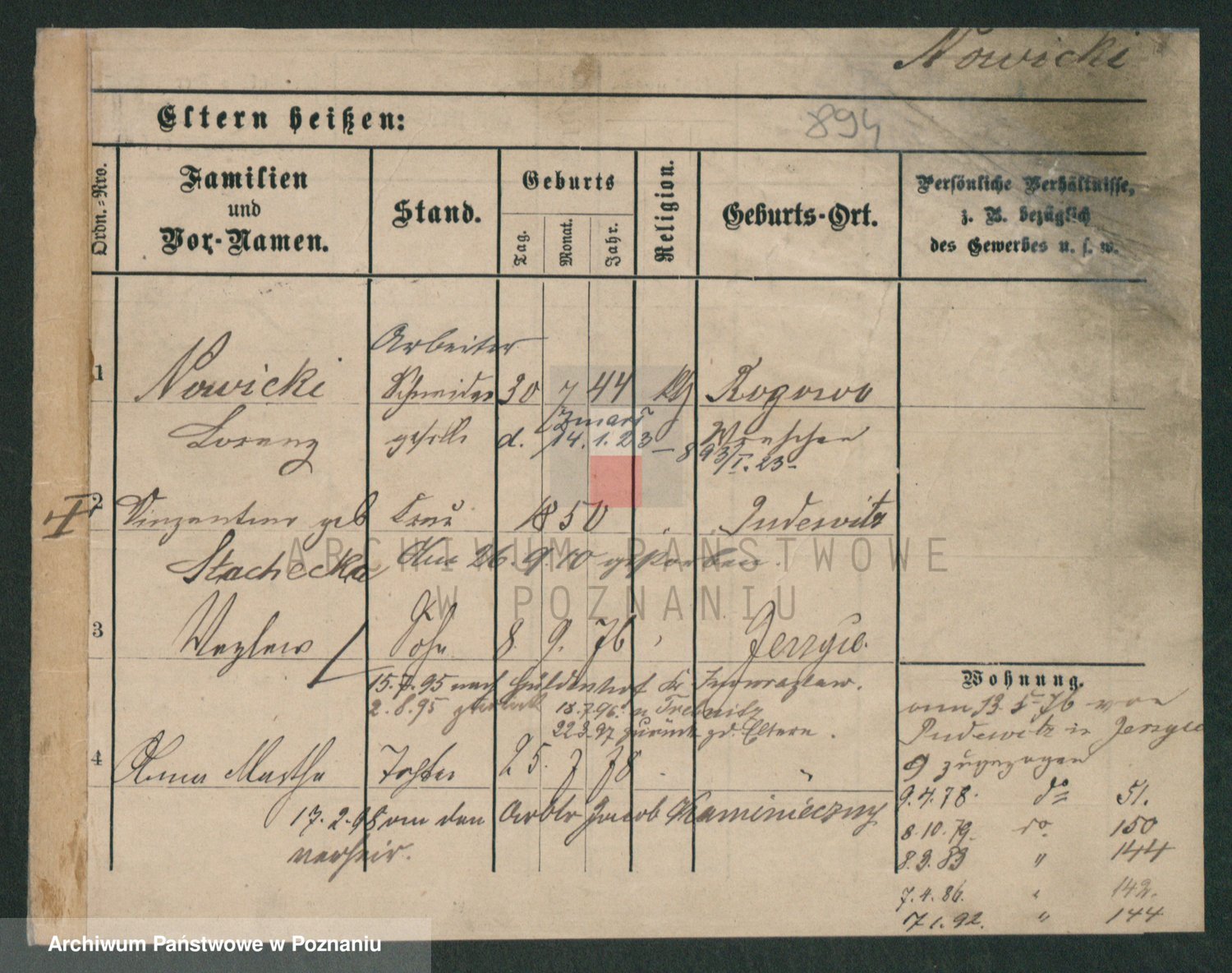 Podgląd karty osobowej dostępny jest po kliknięciu na nazwisko lub ikonkę karty. Można dokonywać powiększenia (ikony na górze) lub przechodzić między kolejnymi skanami (strzałki po bokach).