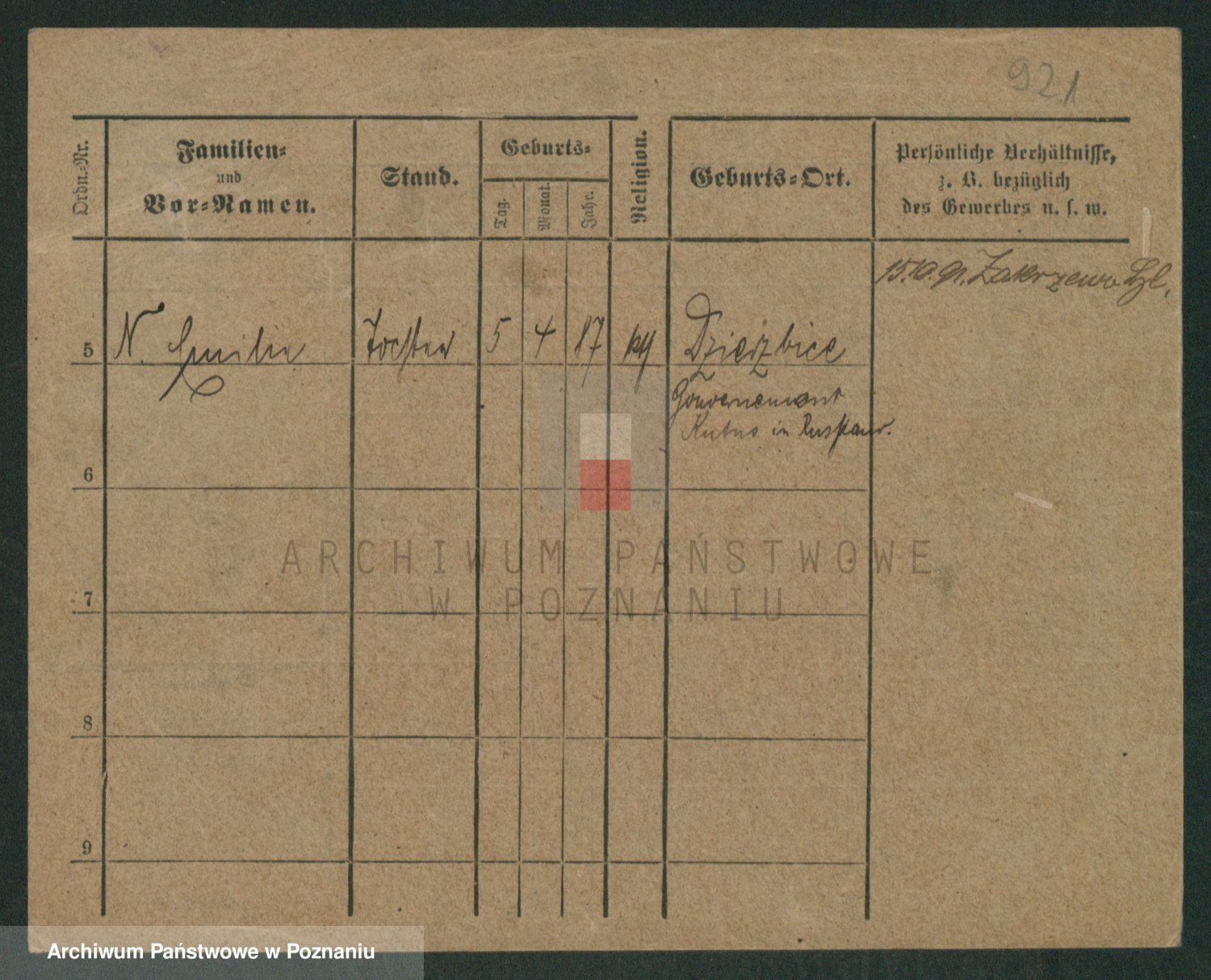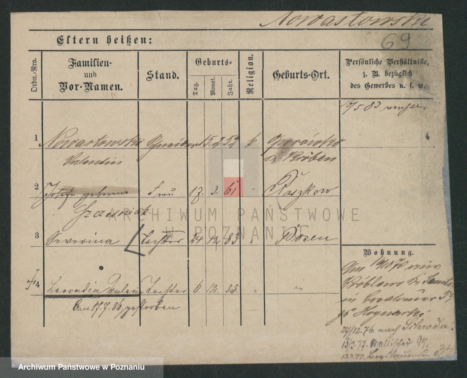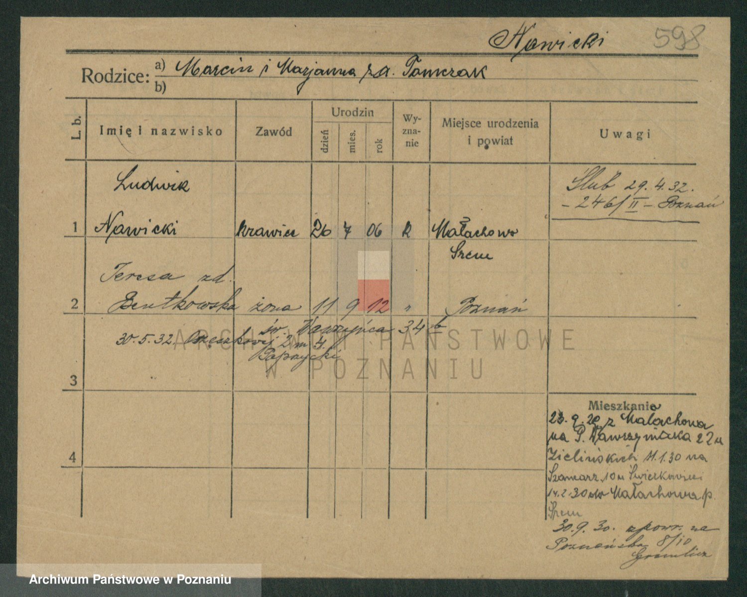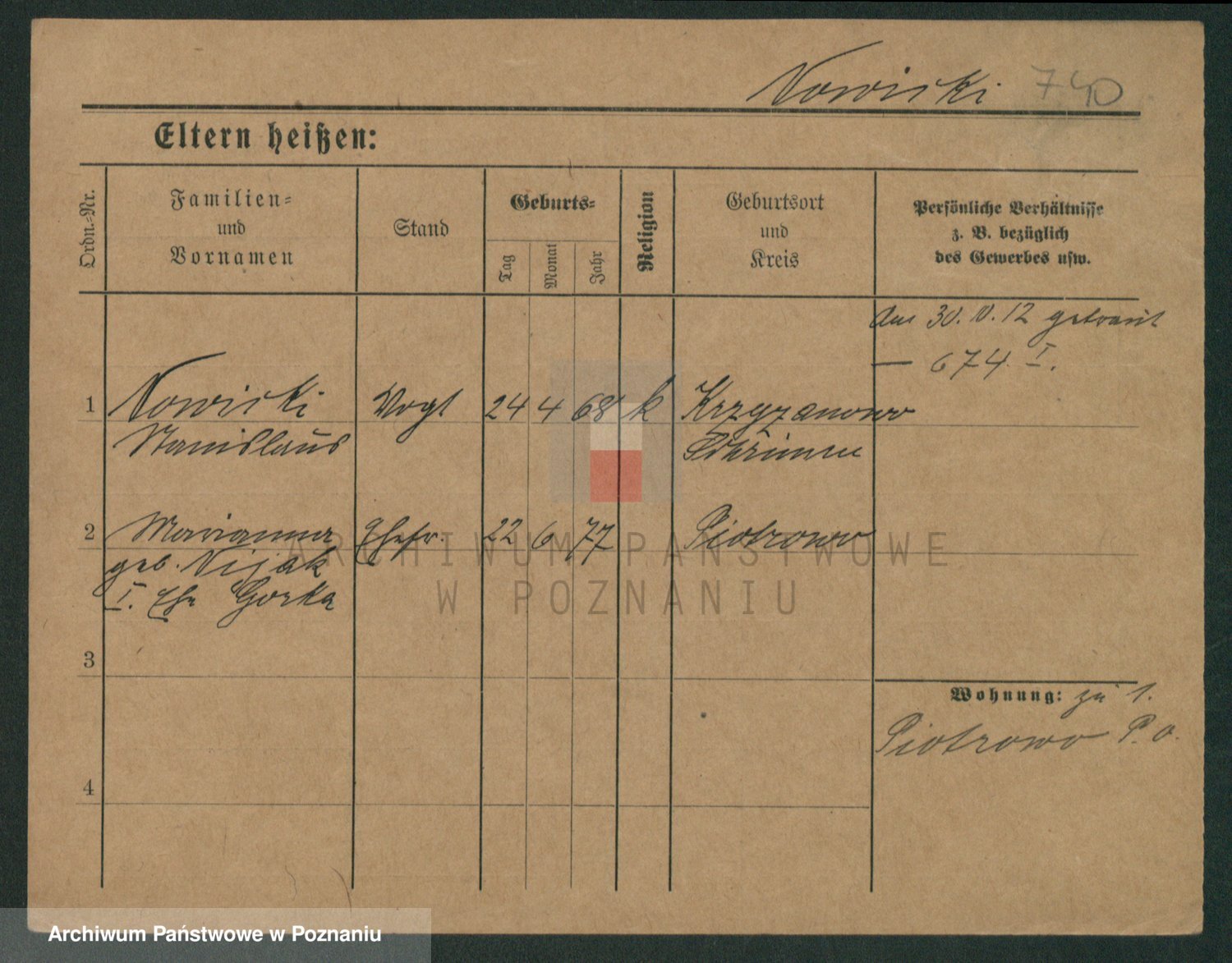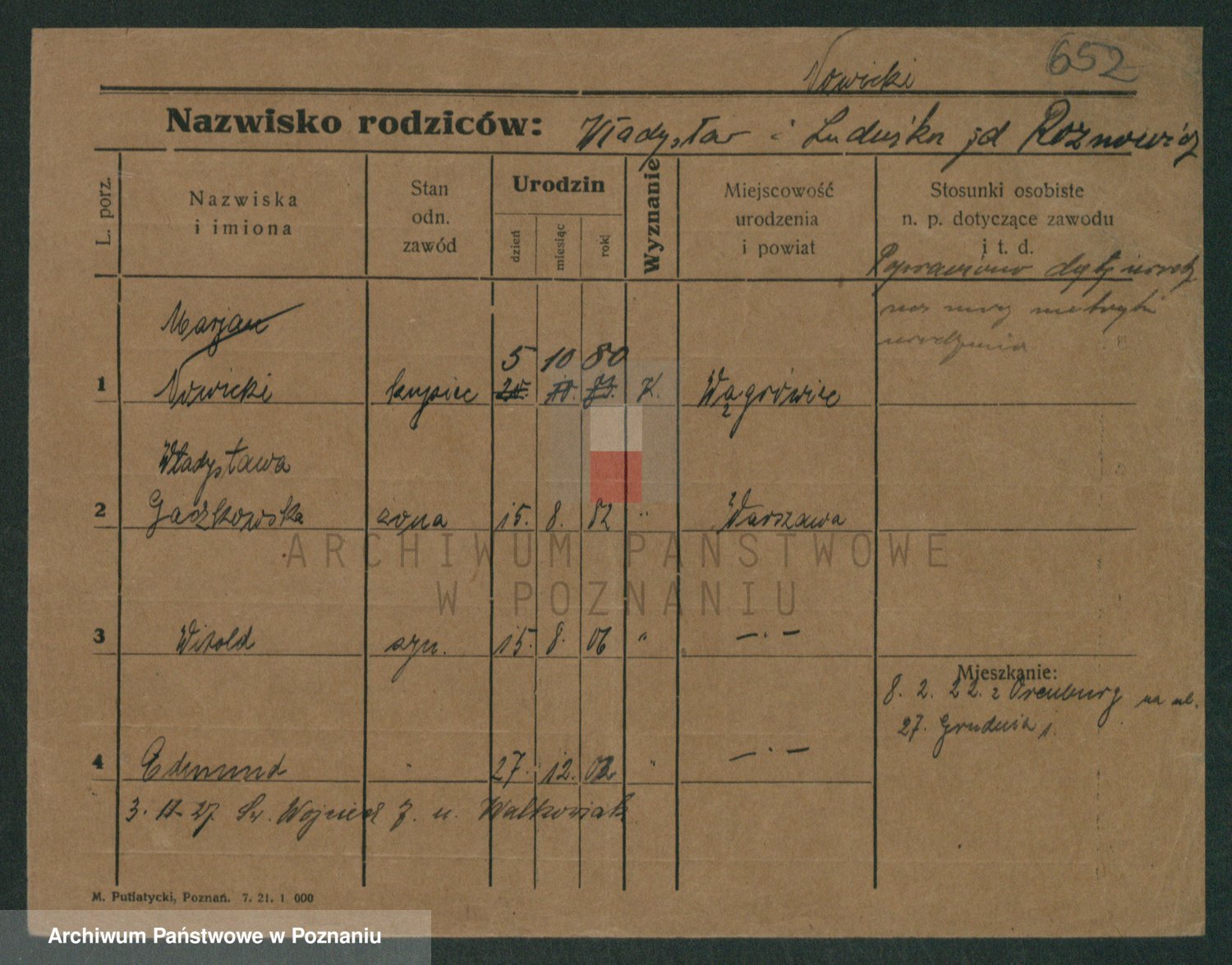 Podgląd karty osobowej dostępny jest po kliknięciu na nazwisko lub ikonkę karty. Można dokonywać powiększenia (ikony na górze) lub przechodzić między kolejnymi skanami (strzałki po bokach).