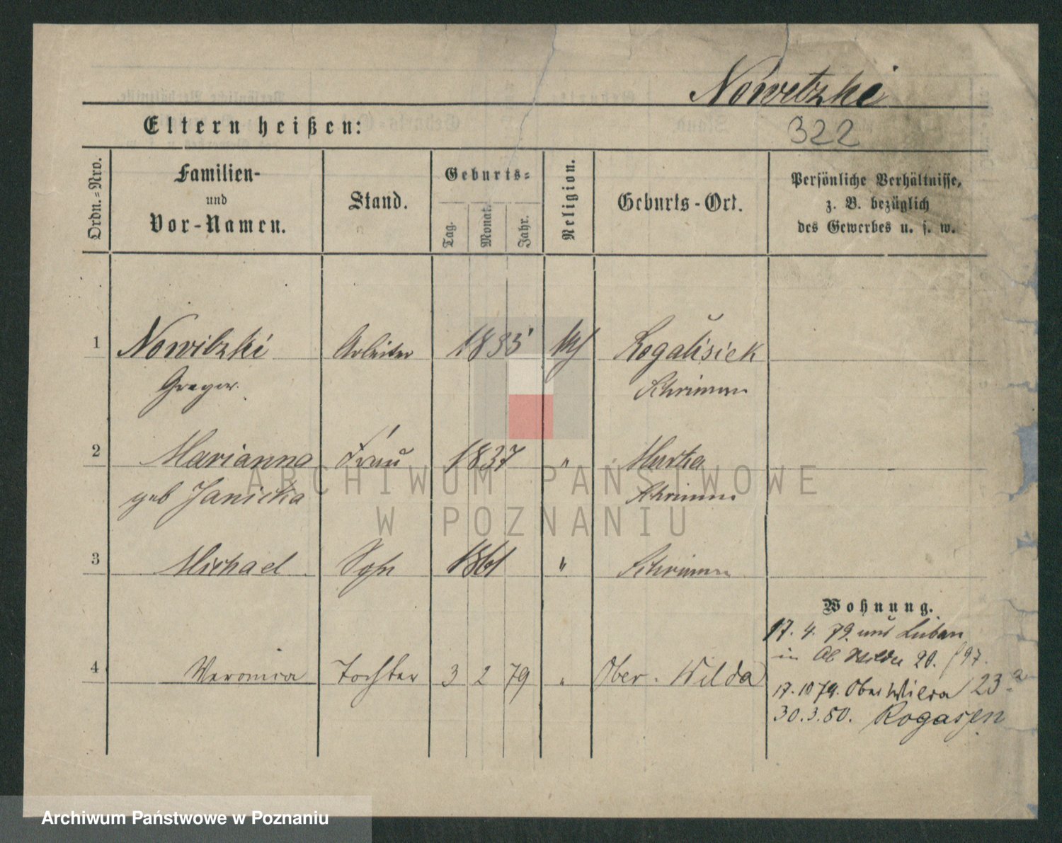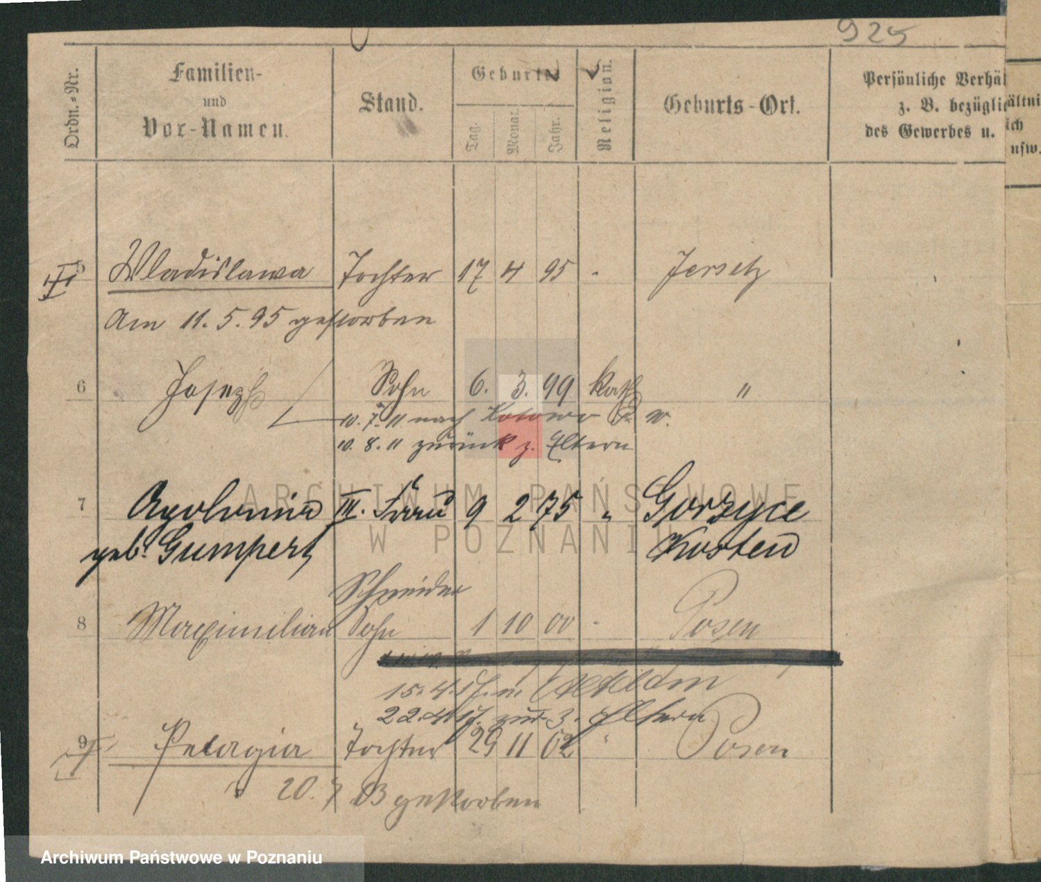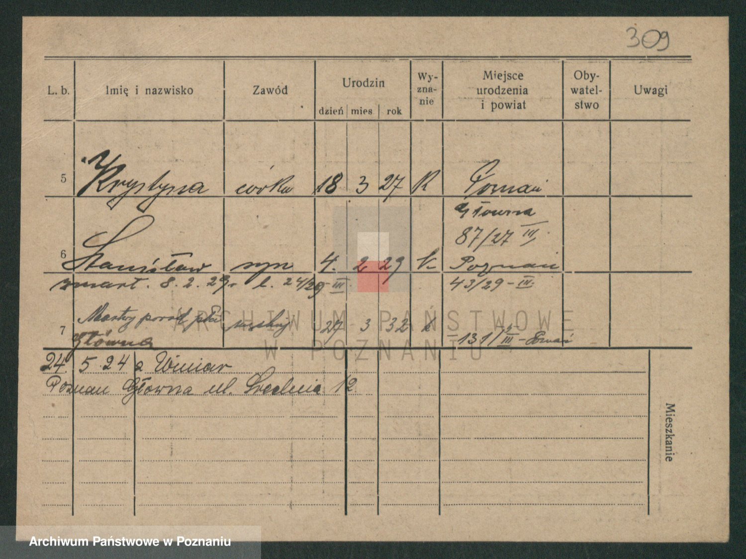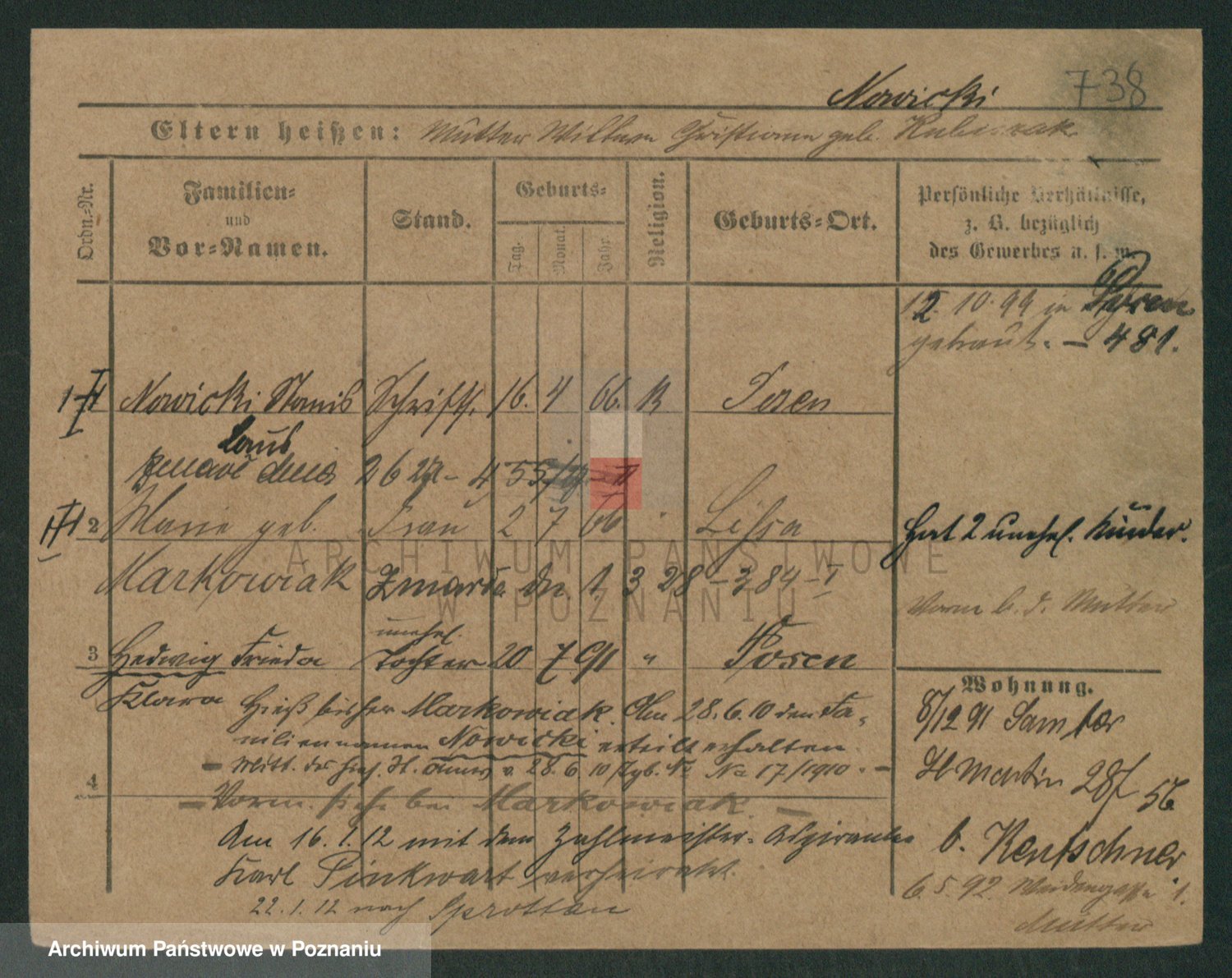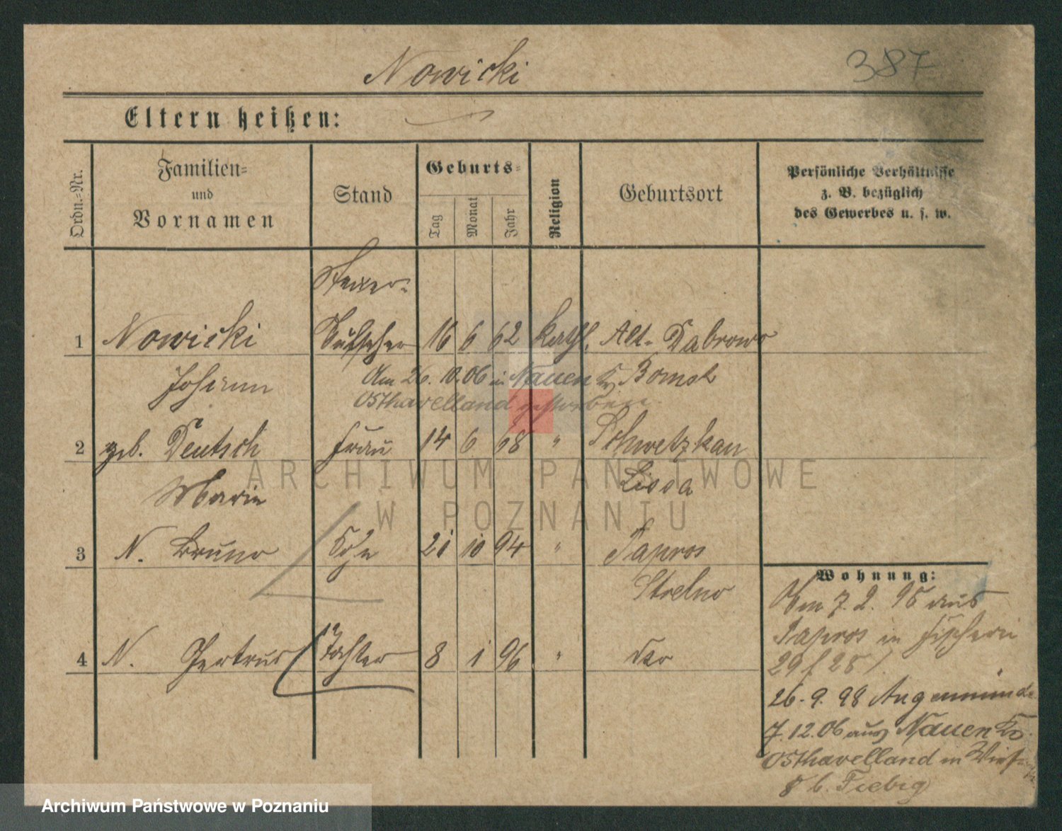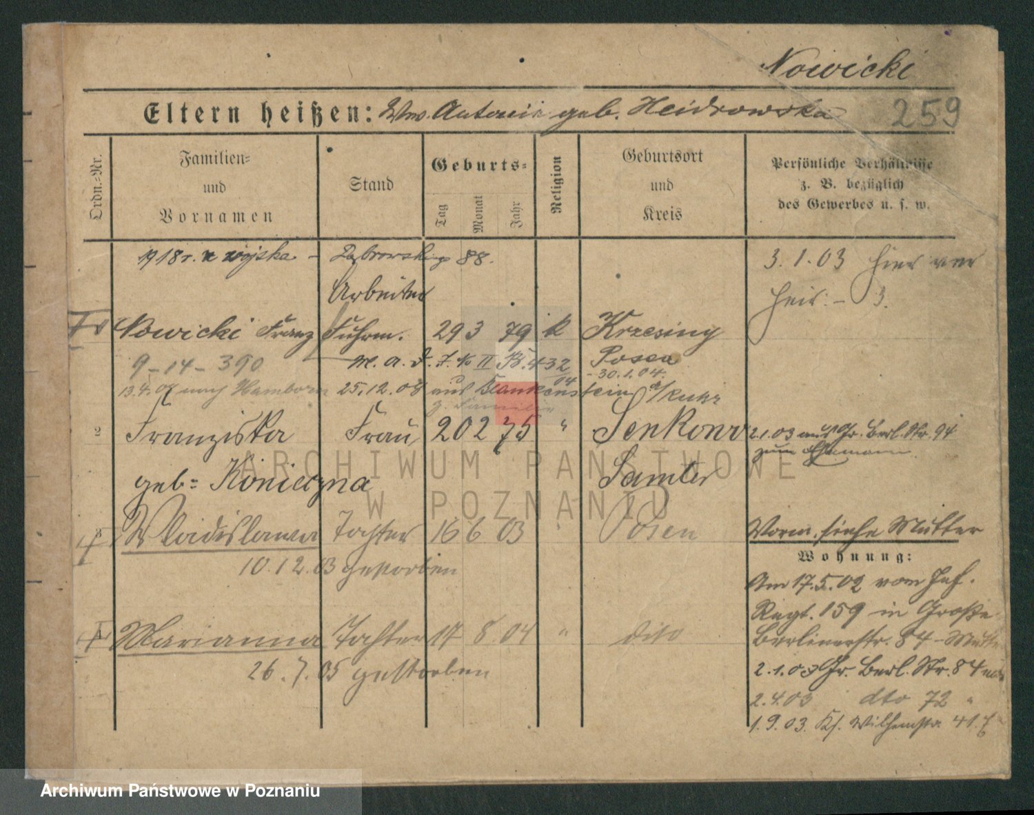 Podgląd karty osobowej dostępny jest po kliknięciu na nazwisko lub ikonkę karty. Można dokonywać powiększenia (ikony na górze) lub przechodzić między kolejnymi skanami (strzałki po bokach).
