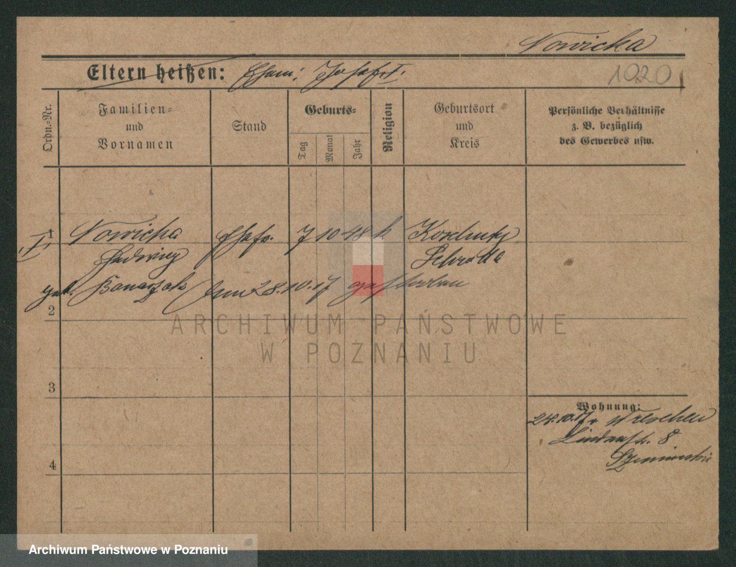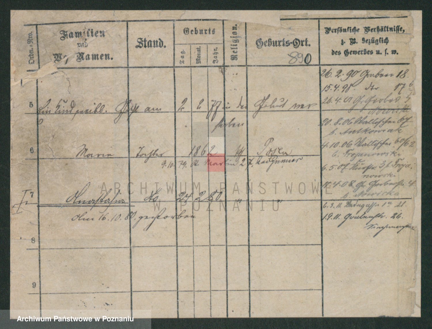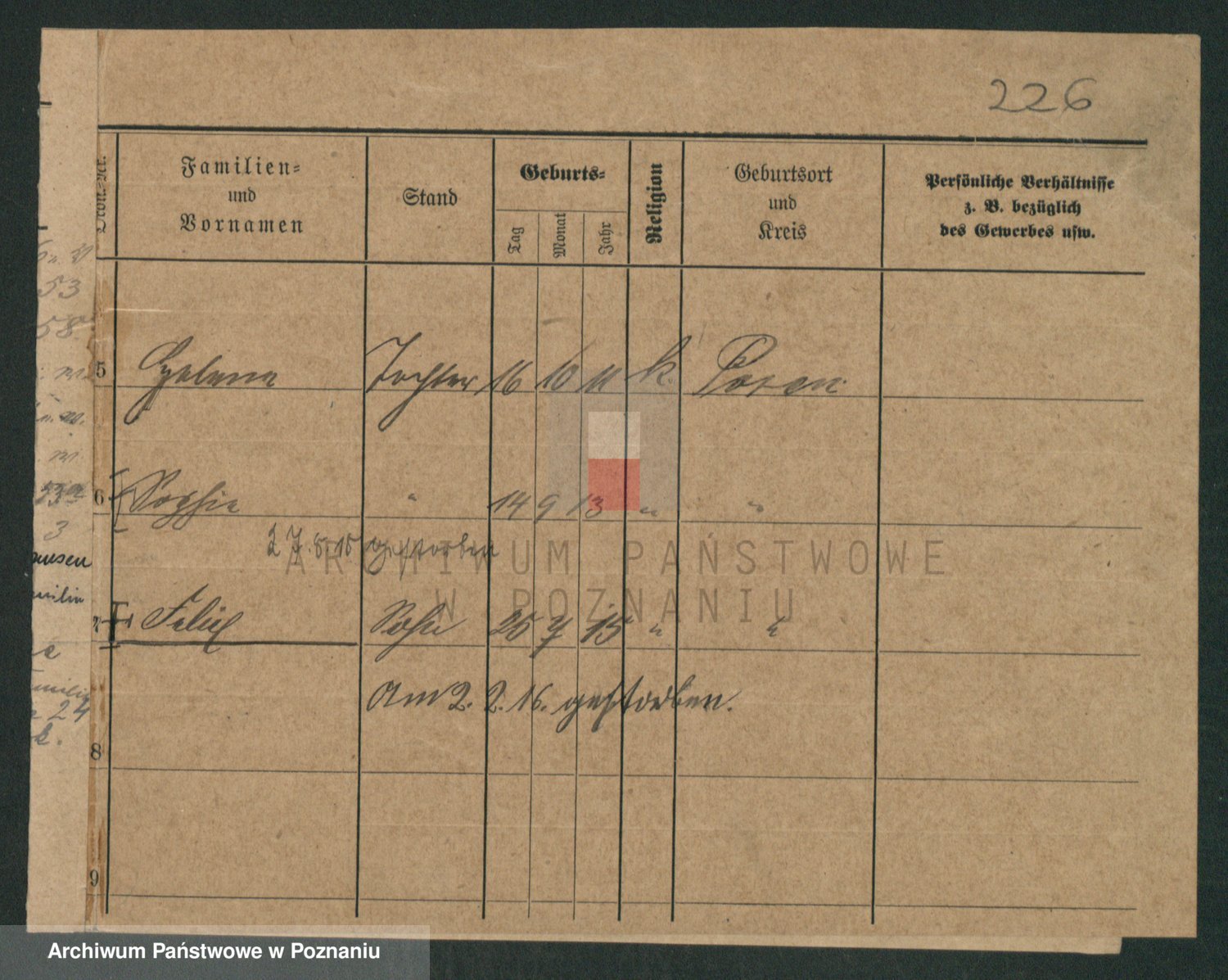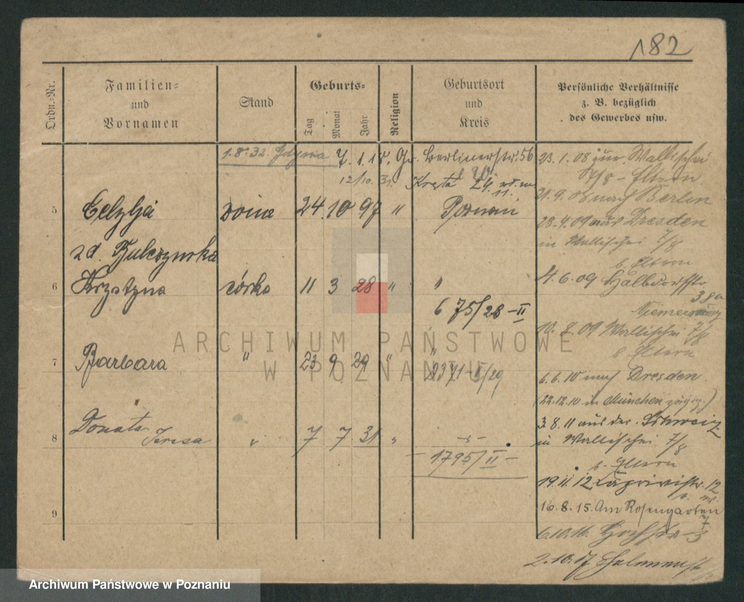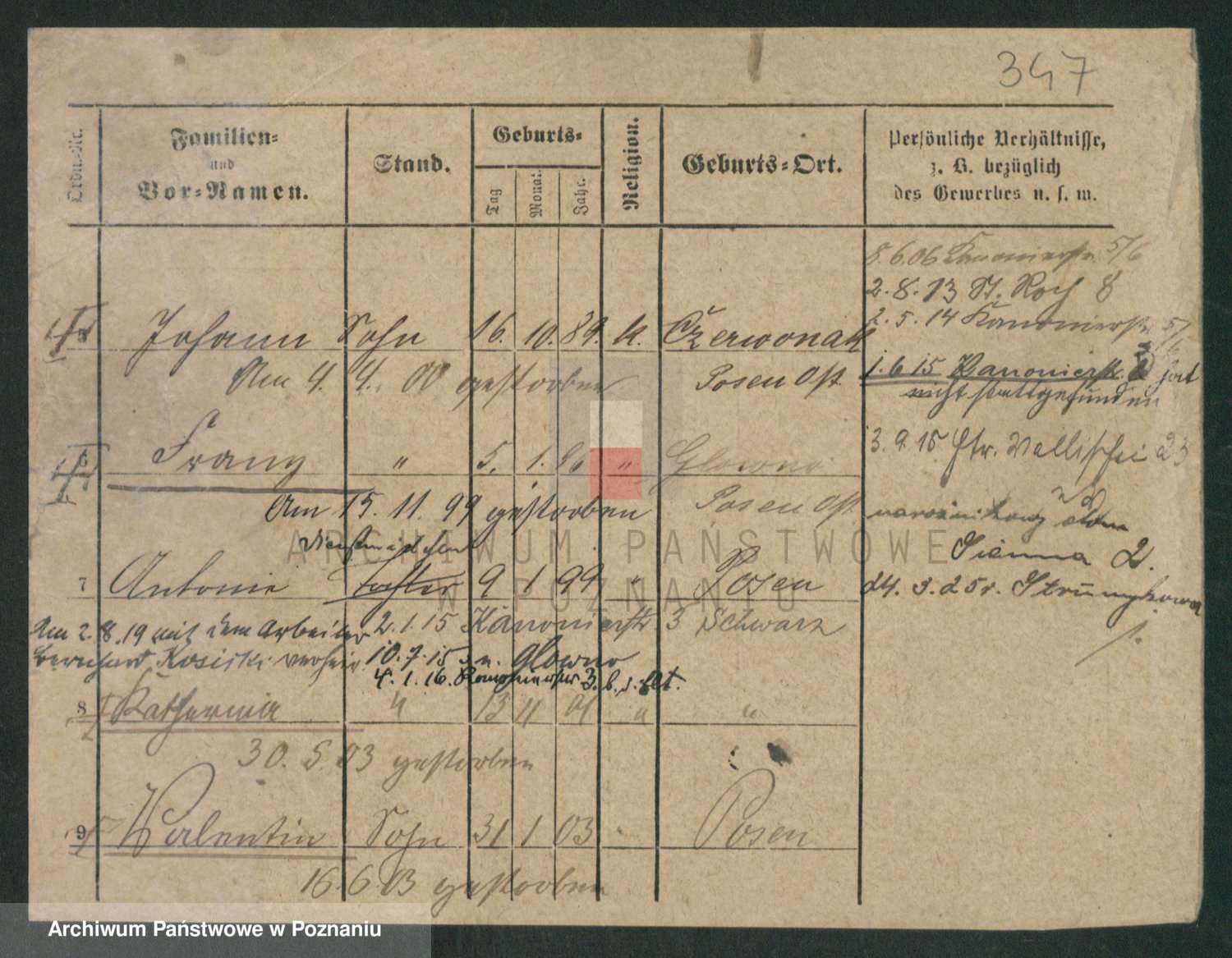 Podgląd karty osobowej dostępny jest po kliknięciu na nazwisko lub ikonkę karty. Można dokonywać powiększenia (ikony na górze) lub przechodzić między kolejnymi skanami (strzałki po bokach).