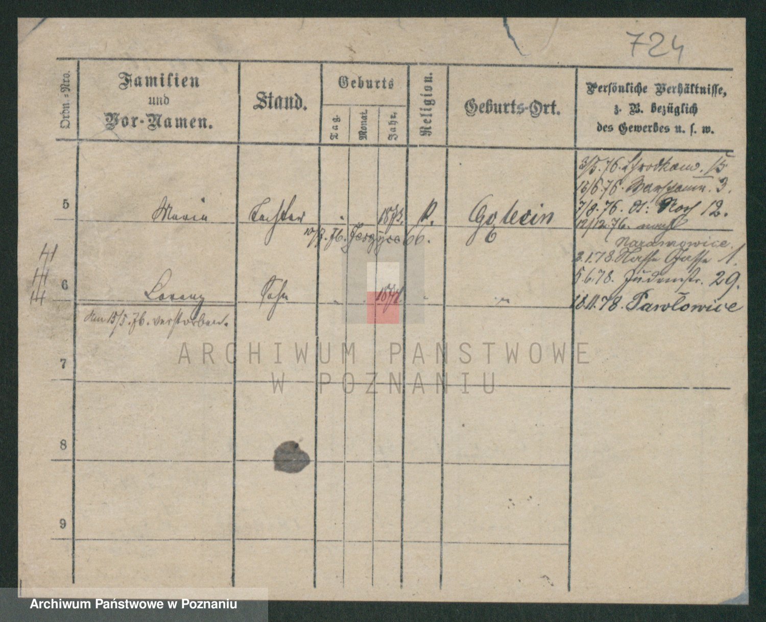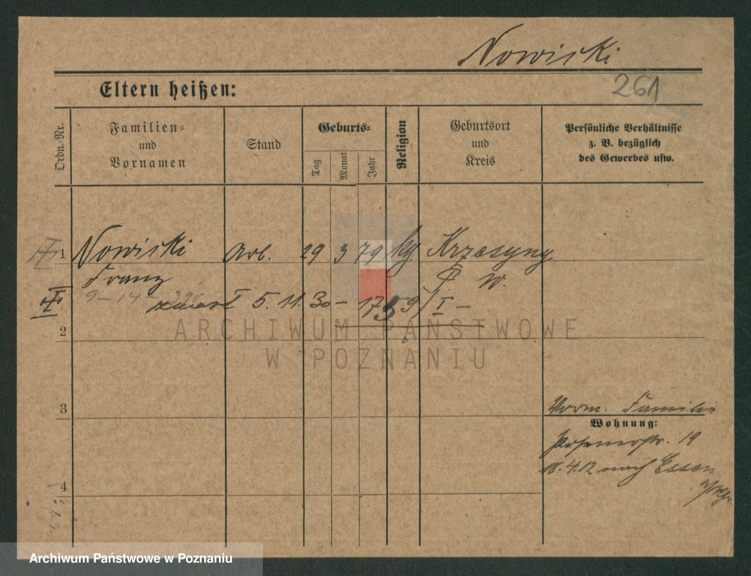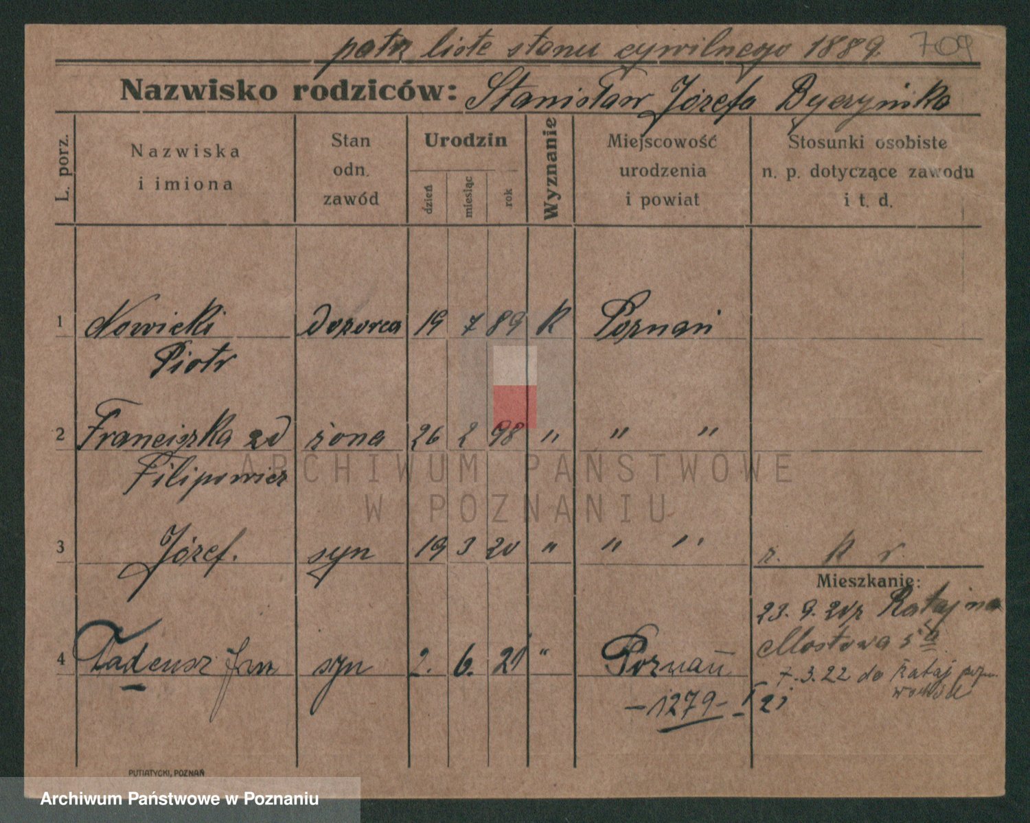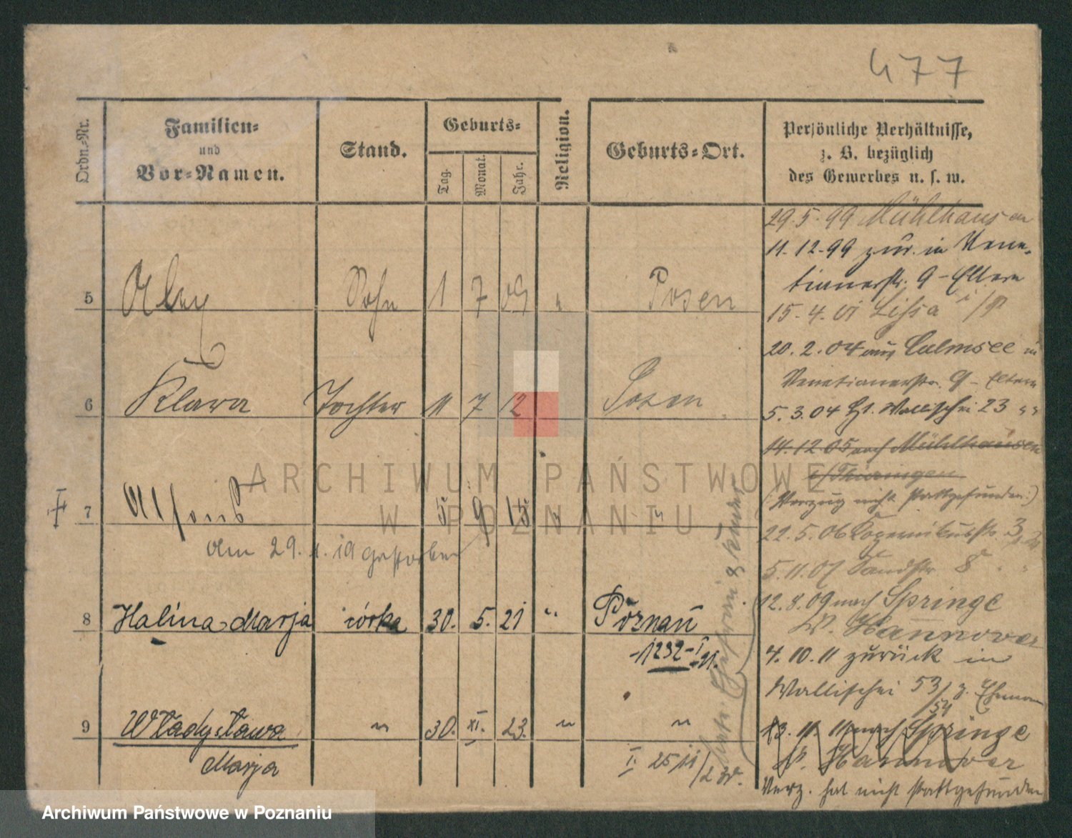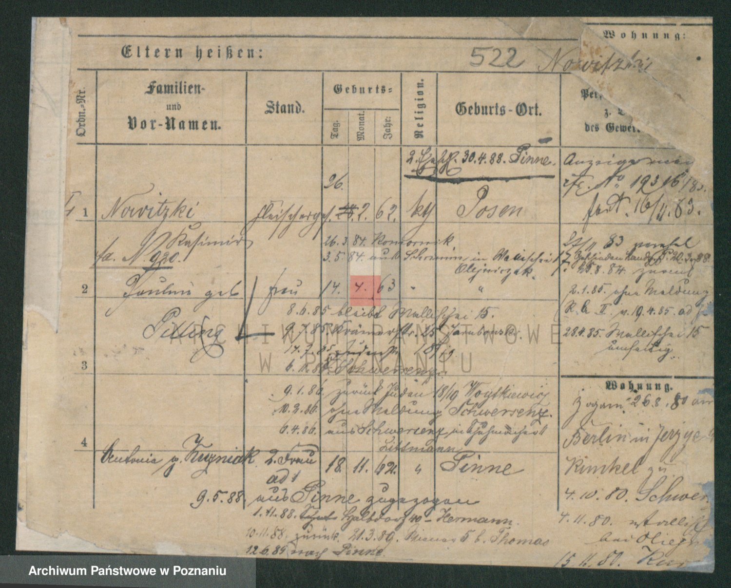 Podgląd karty osobowej dostępny jest po kliknięciu na nazwisko lub ikonkę karty. Można dokonywać powiększenia (ikony na górze) lub przechodzić między kolejnymi skanami (strzałki po bokach).