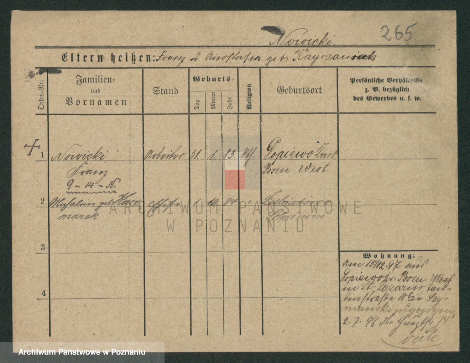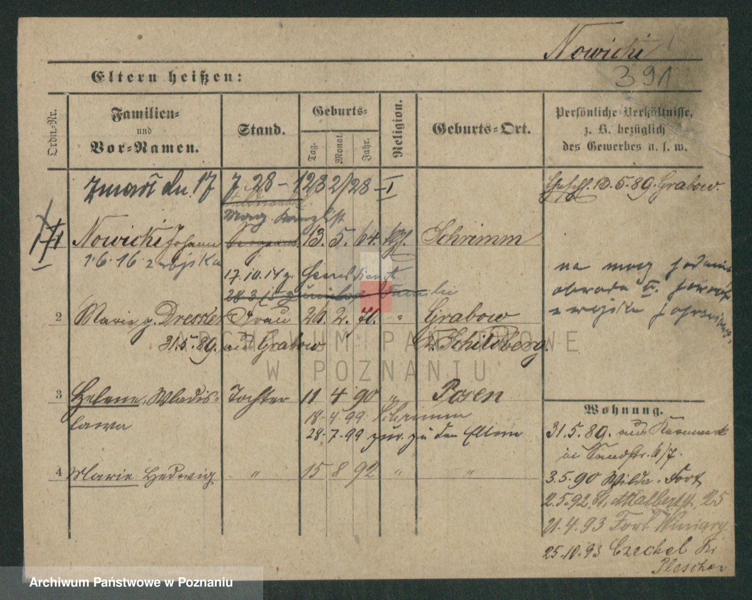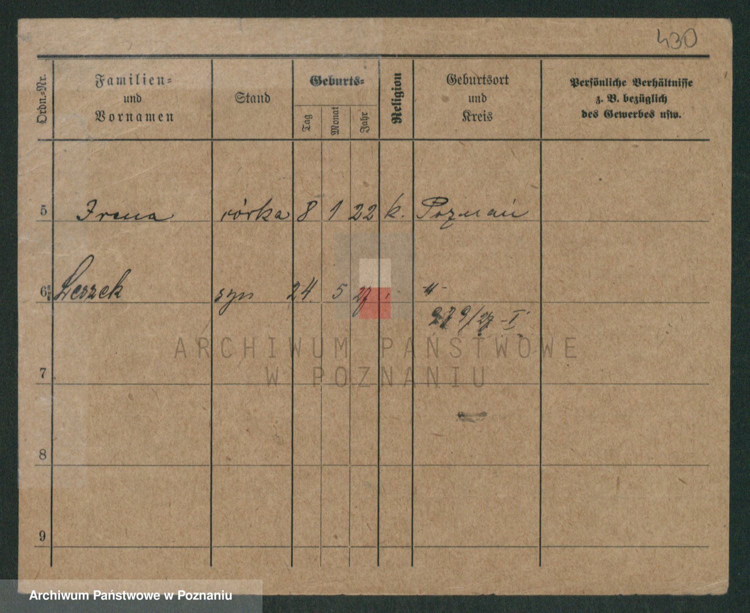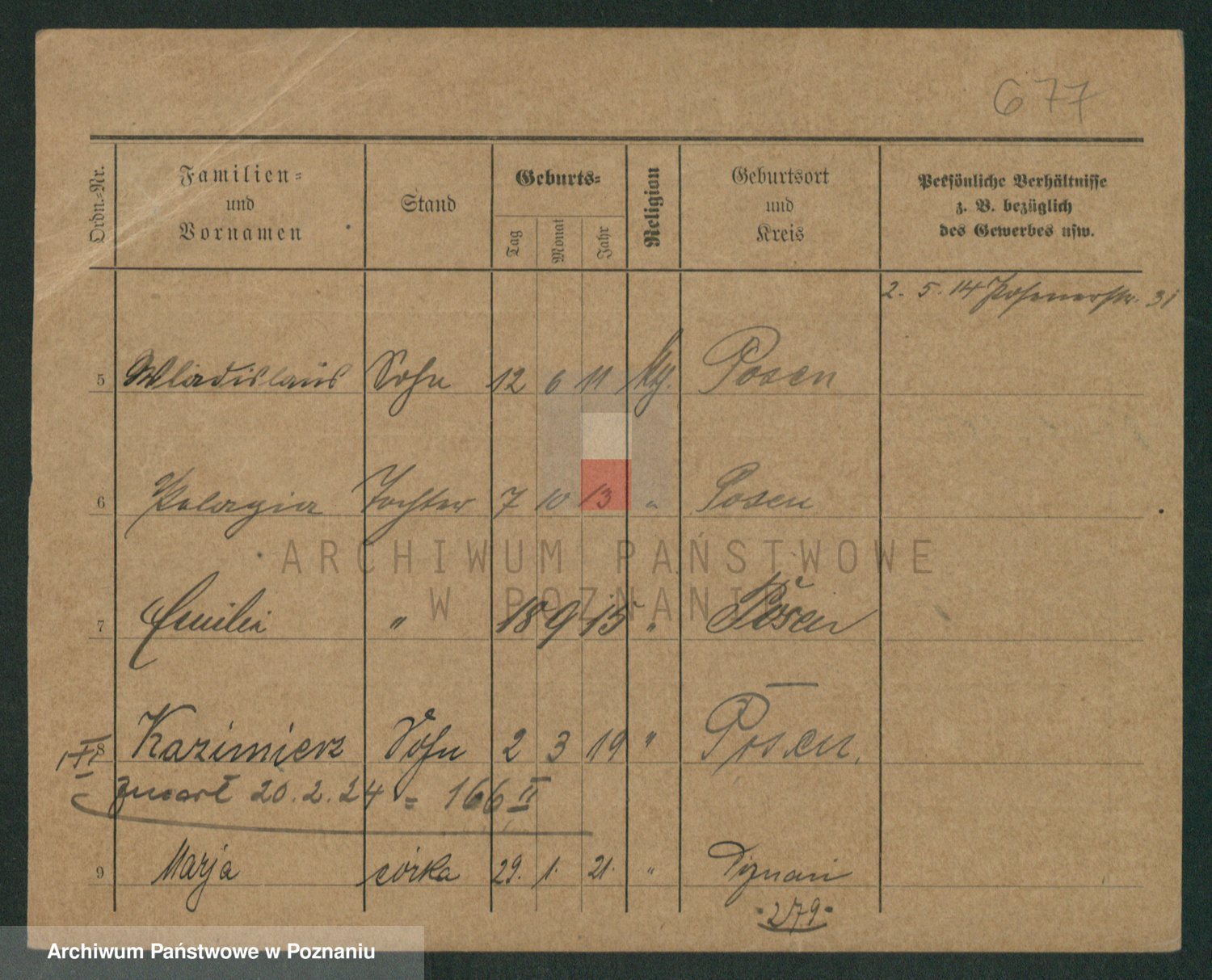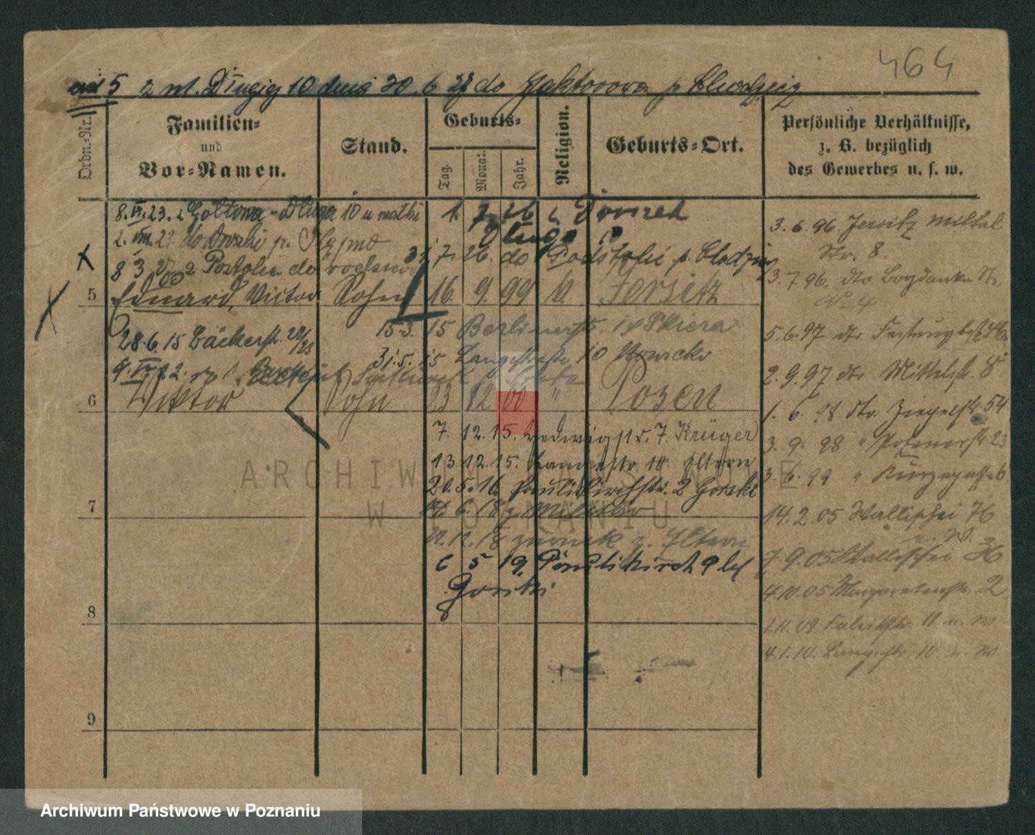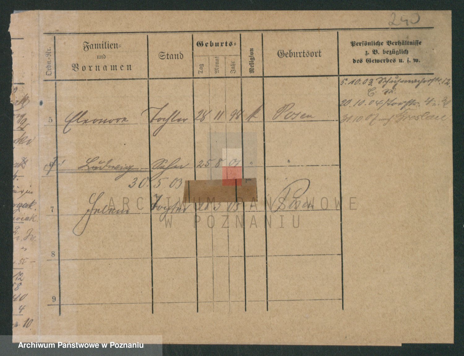 Podgląd karty osobowej dostępny jest po kliknięciu na nazwisko lub ikonkę karty. Można dokonywać powiększenia (ikony na górze) lub przechodzić między kolejnymi skanami (strzałki po bokach).