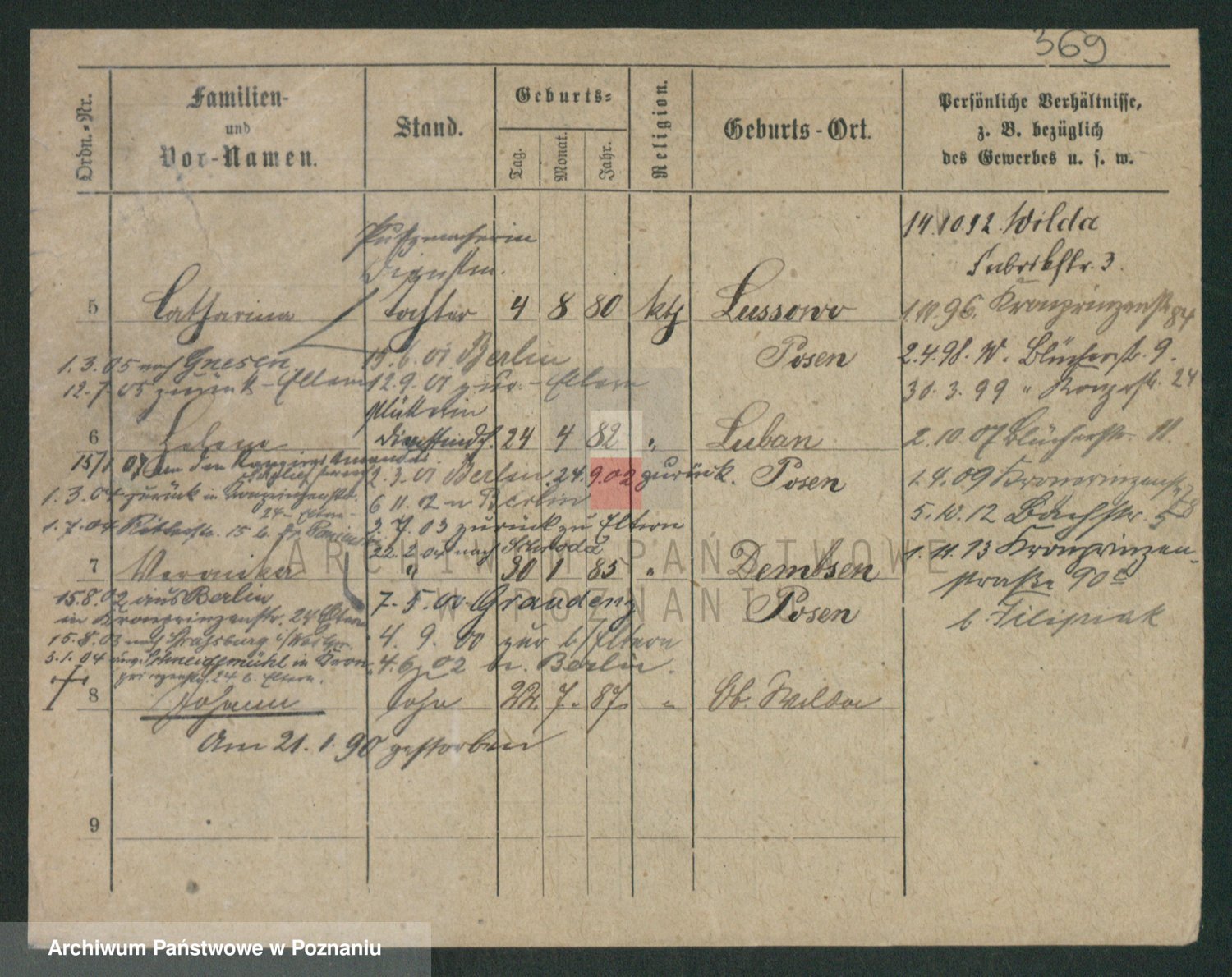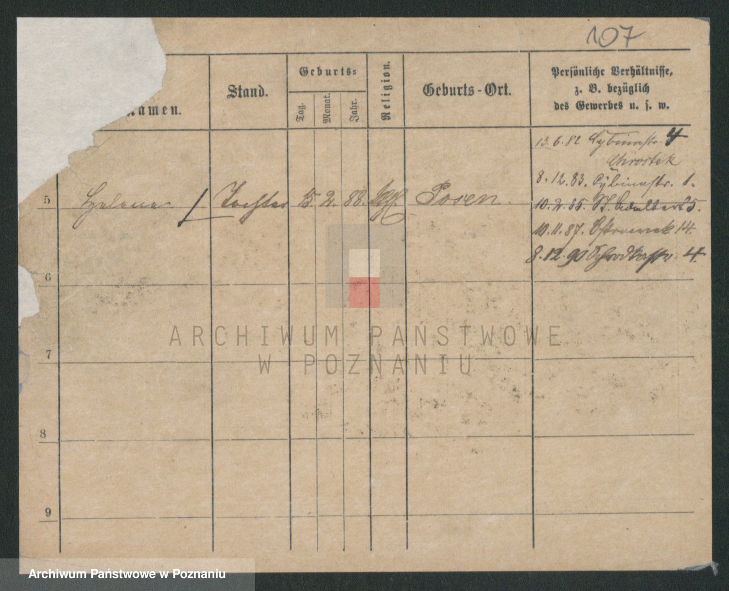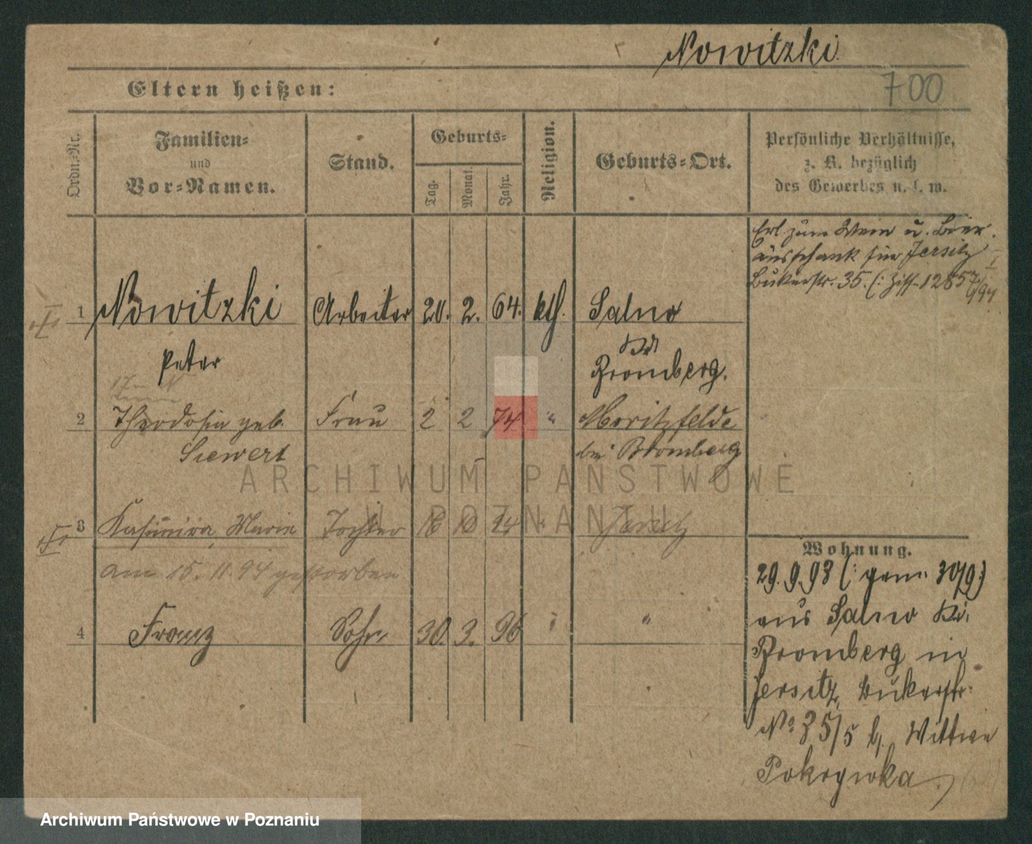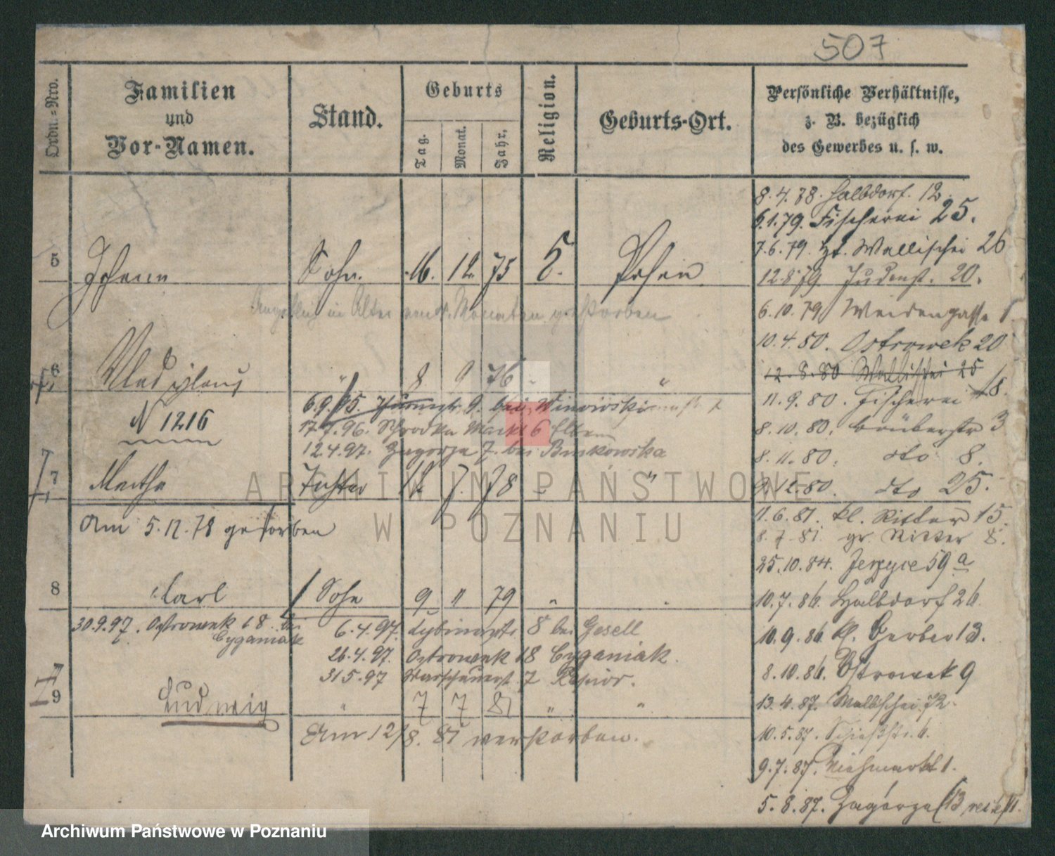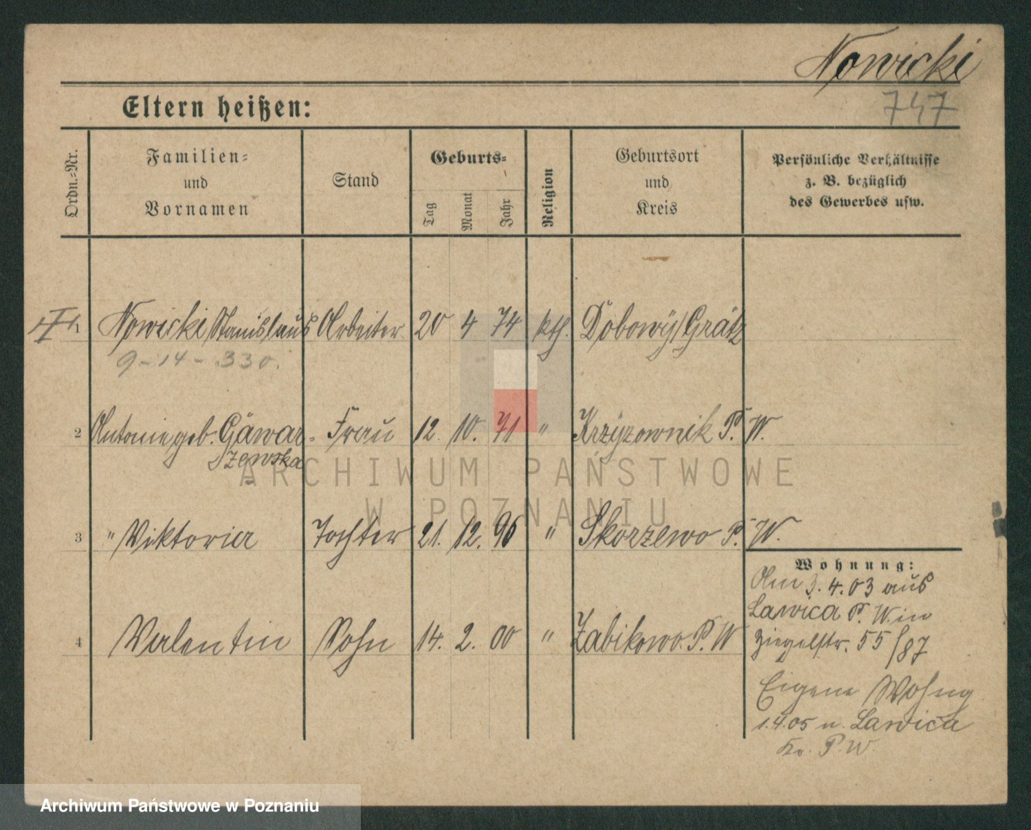 Podgląd karty osobowej dostępny jest po kliknięciu na nazwisko lub ikonkę karty. Można dokonywać powiększenia (ikony na górze) lub przechodzić między kolejnymi skanami (strzałki po bokach).