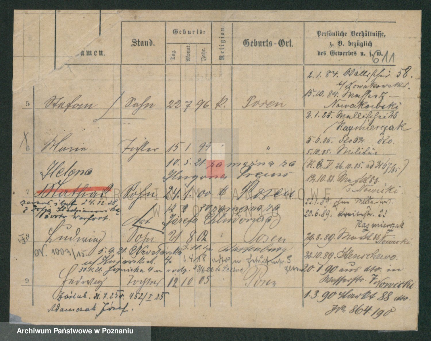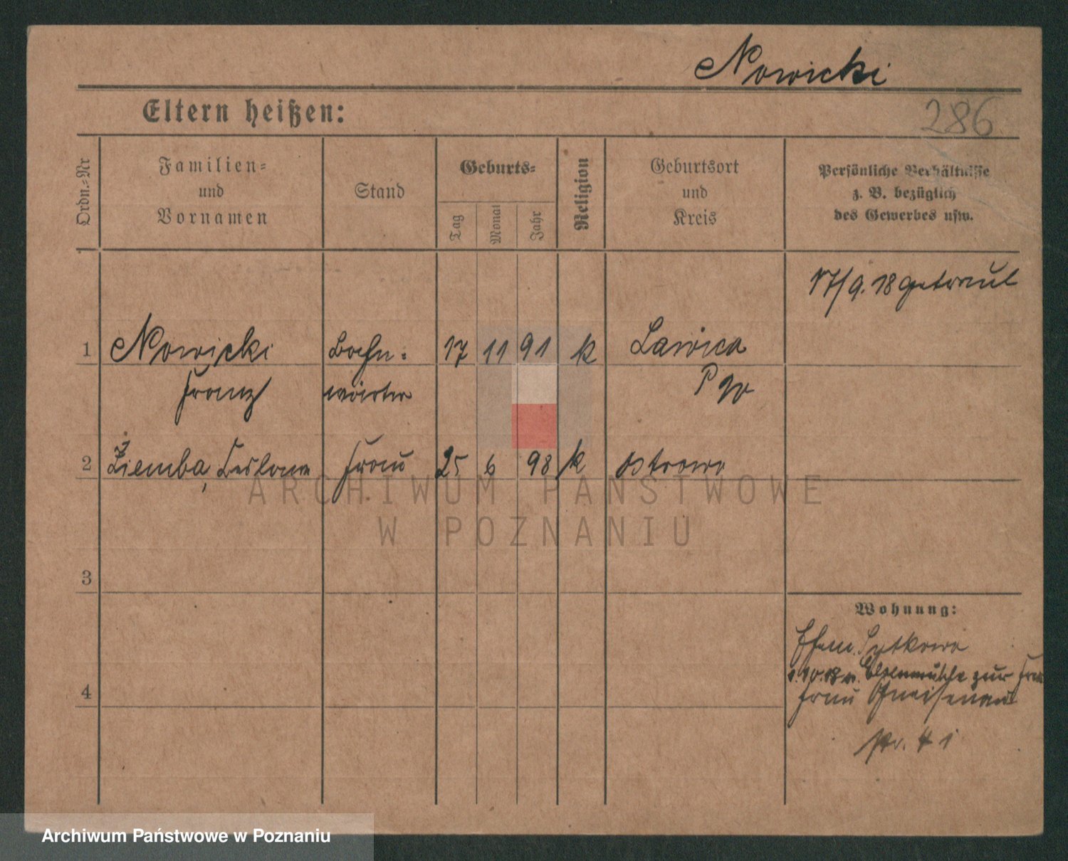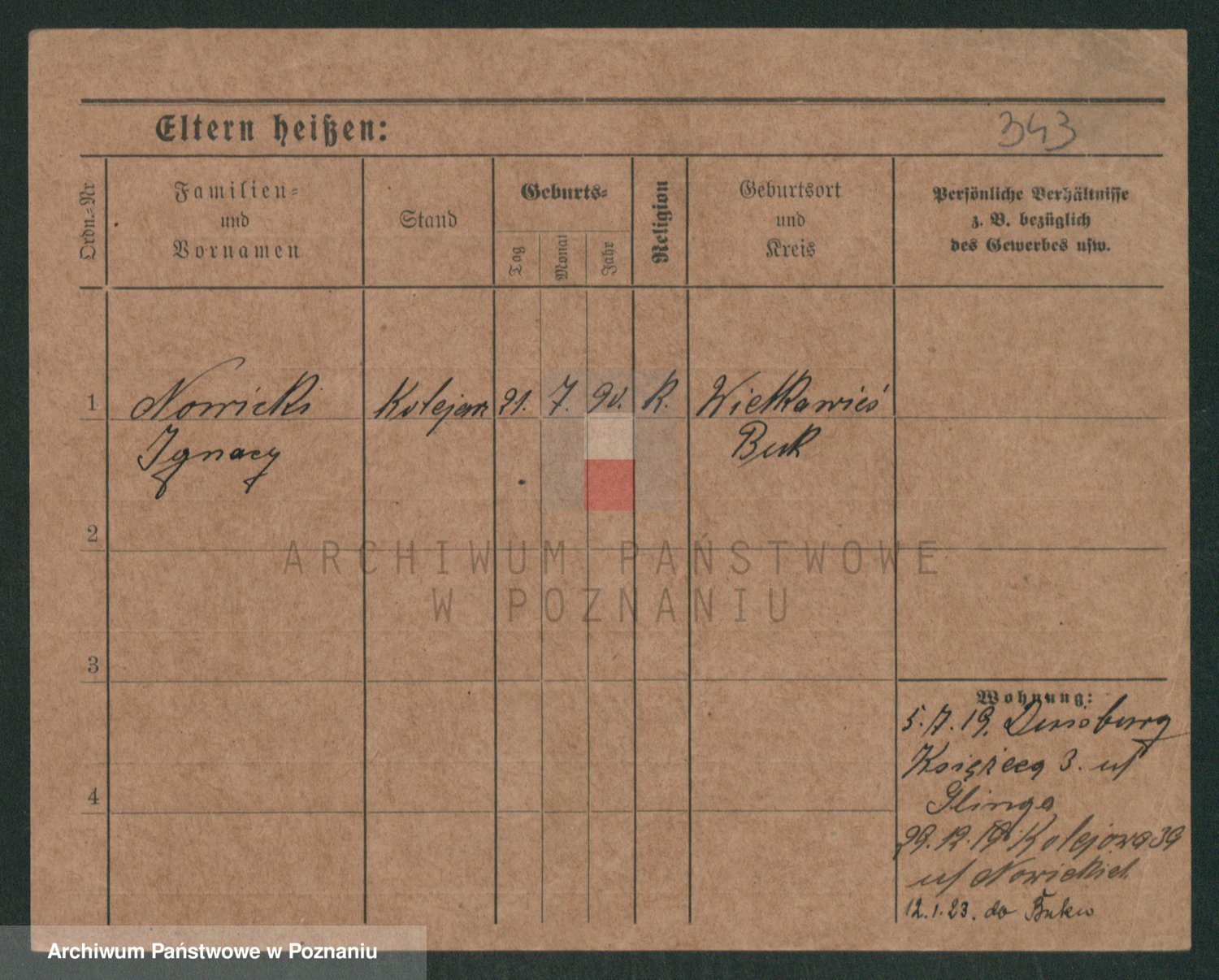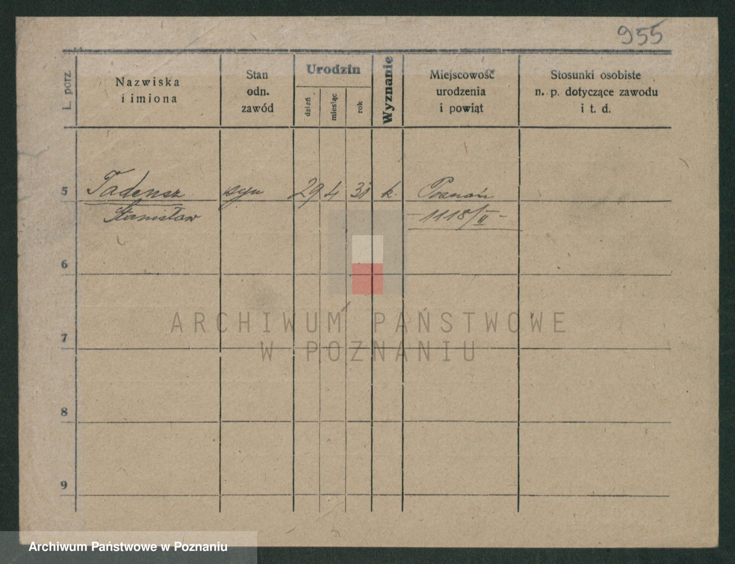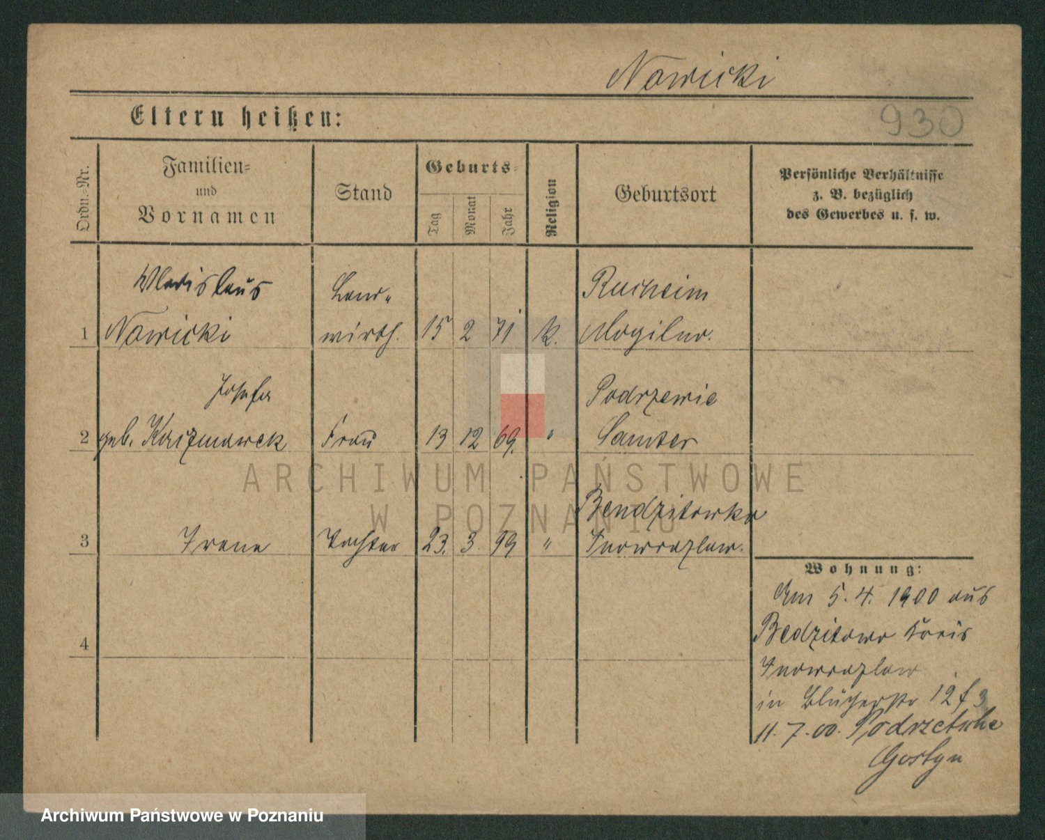 Podgląd karty osobowej dostępny jest po kliknięciu na nazwisko lub ikonkę karty. Można dokonywać powiększenia (ikony na górze) lub przechodzić między kolejnymi skanami (strzałki po bokach).