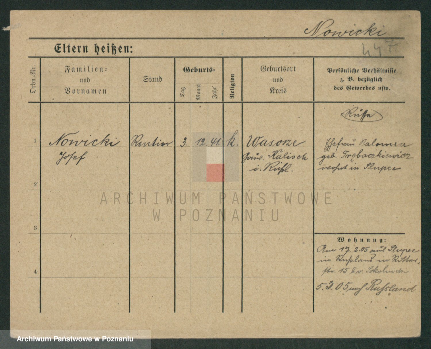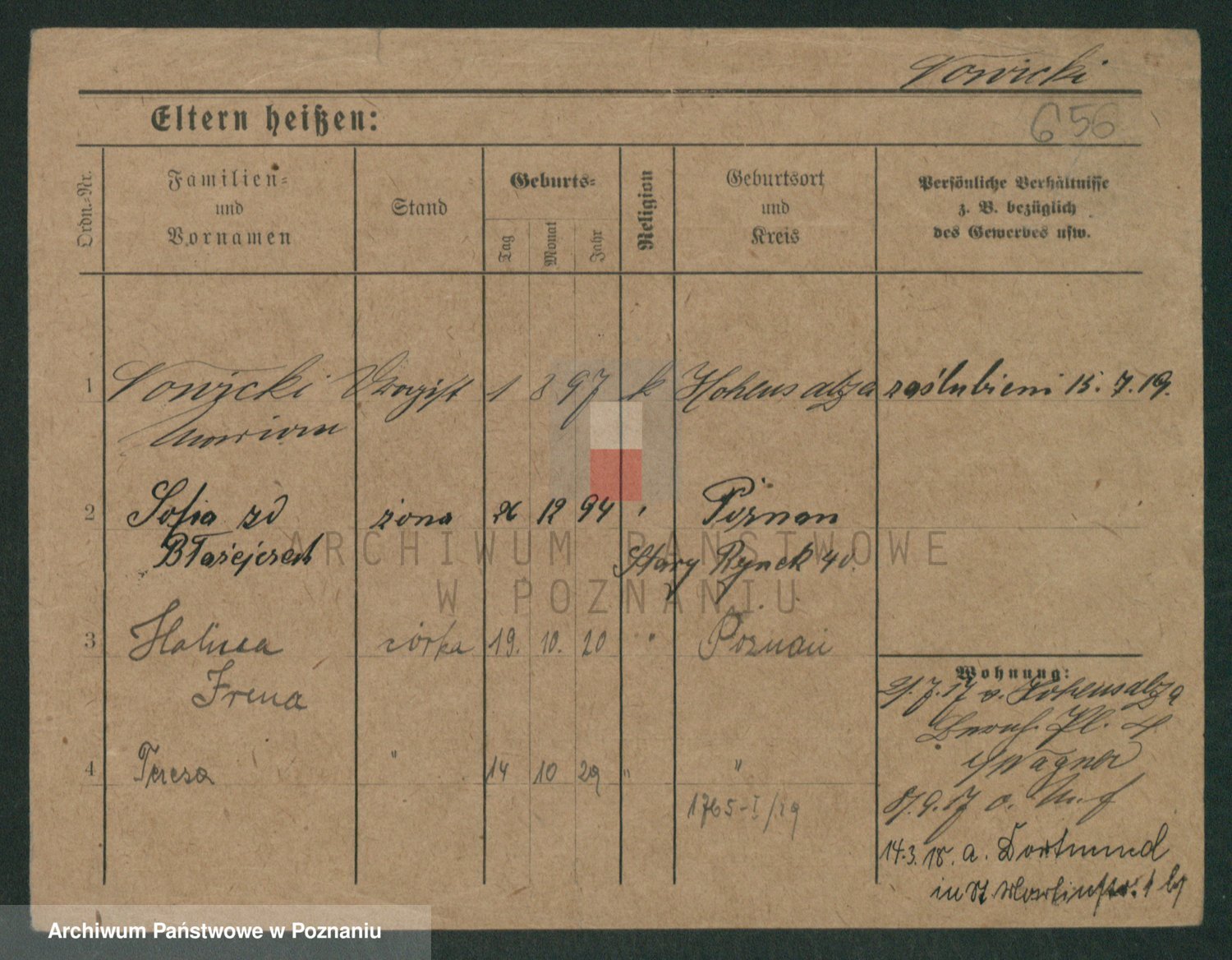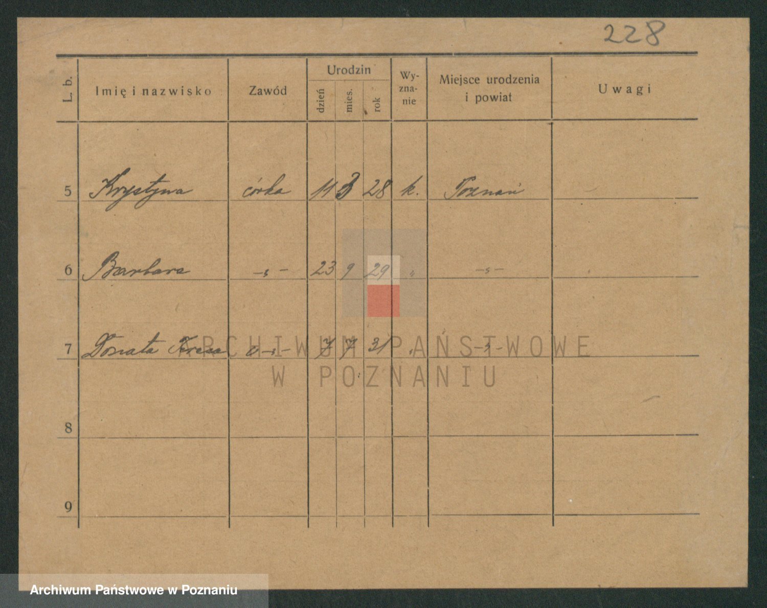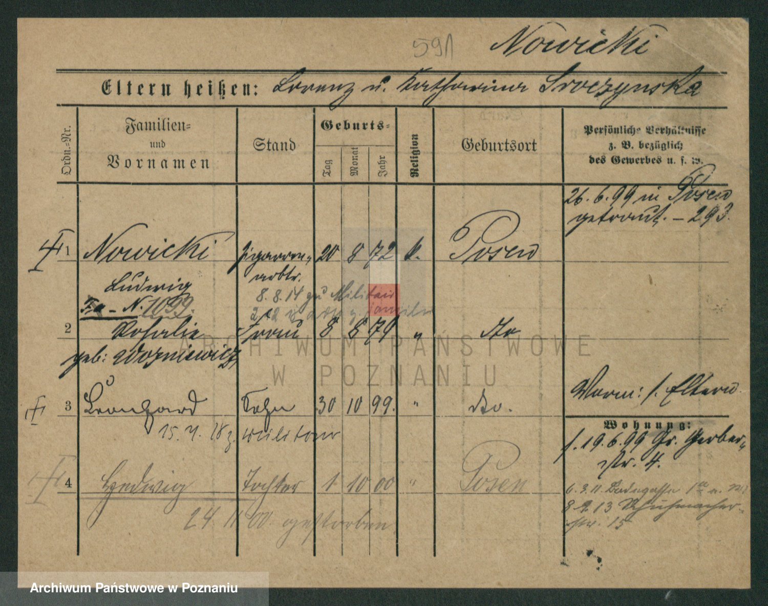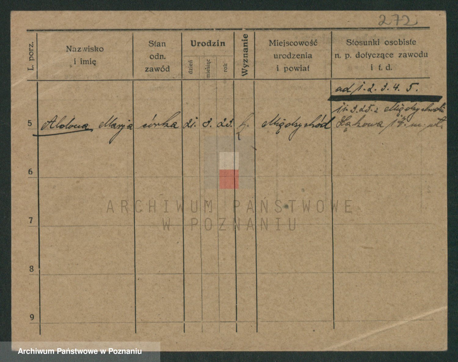 Podgląd karty osobowej dostępny jest po kliknięciu na nazwisko lub ikonkę karty. Można dokonywać powiększenia (ikony na górze) lub przechodzić między kolejnymi skanami (strzałki po bokach).