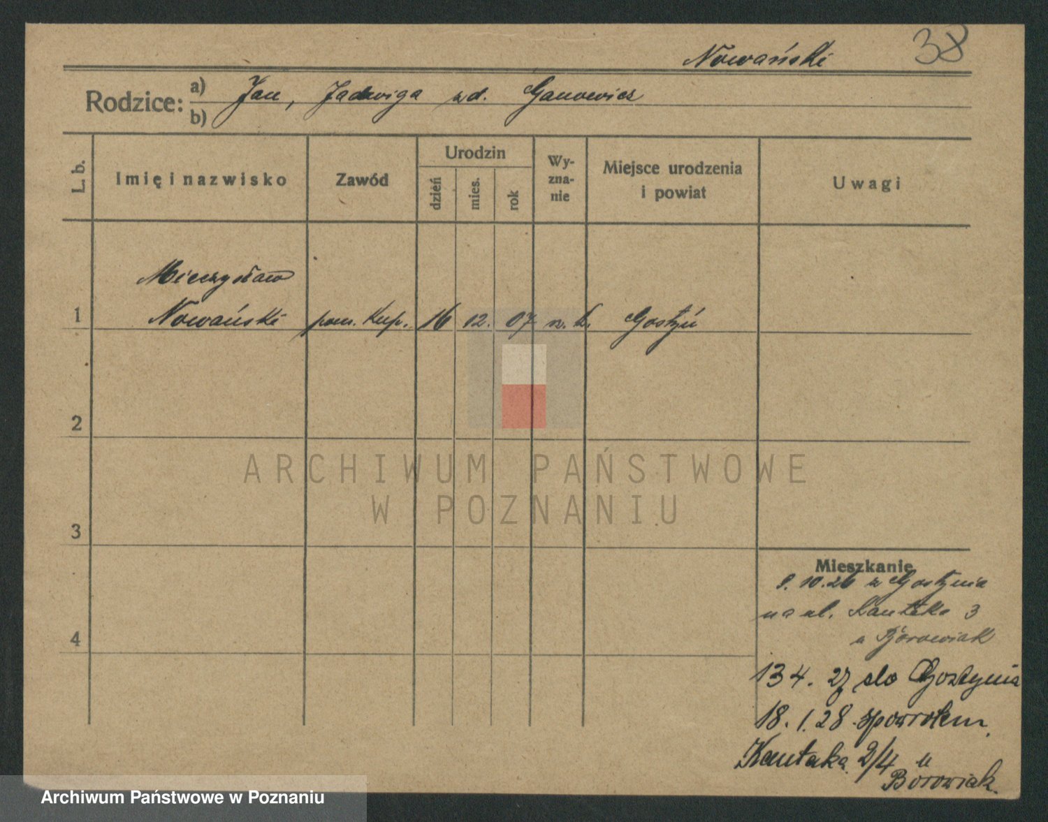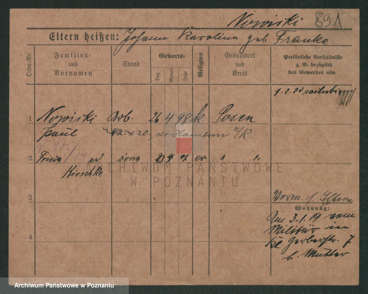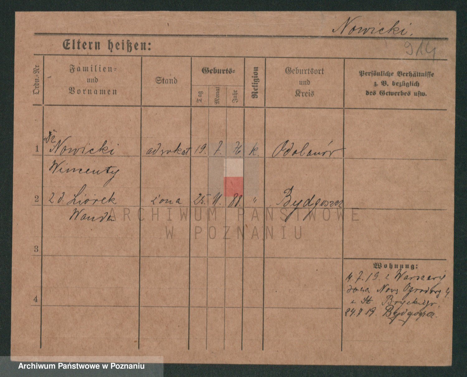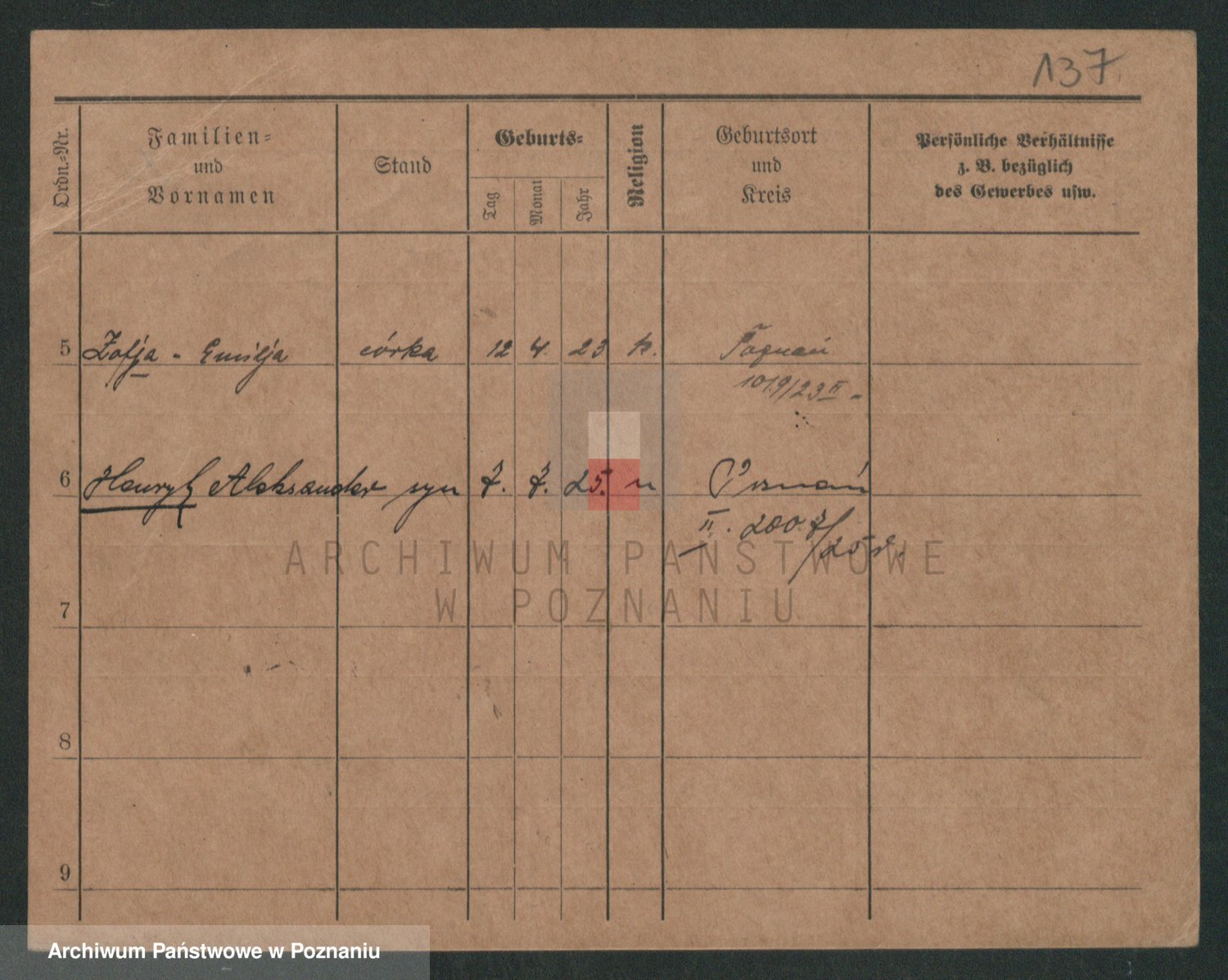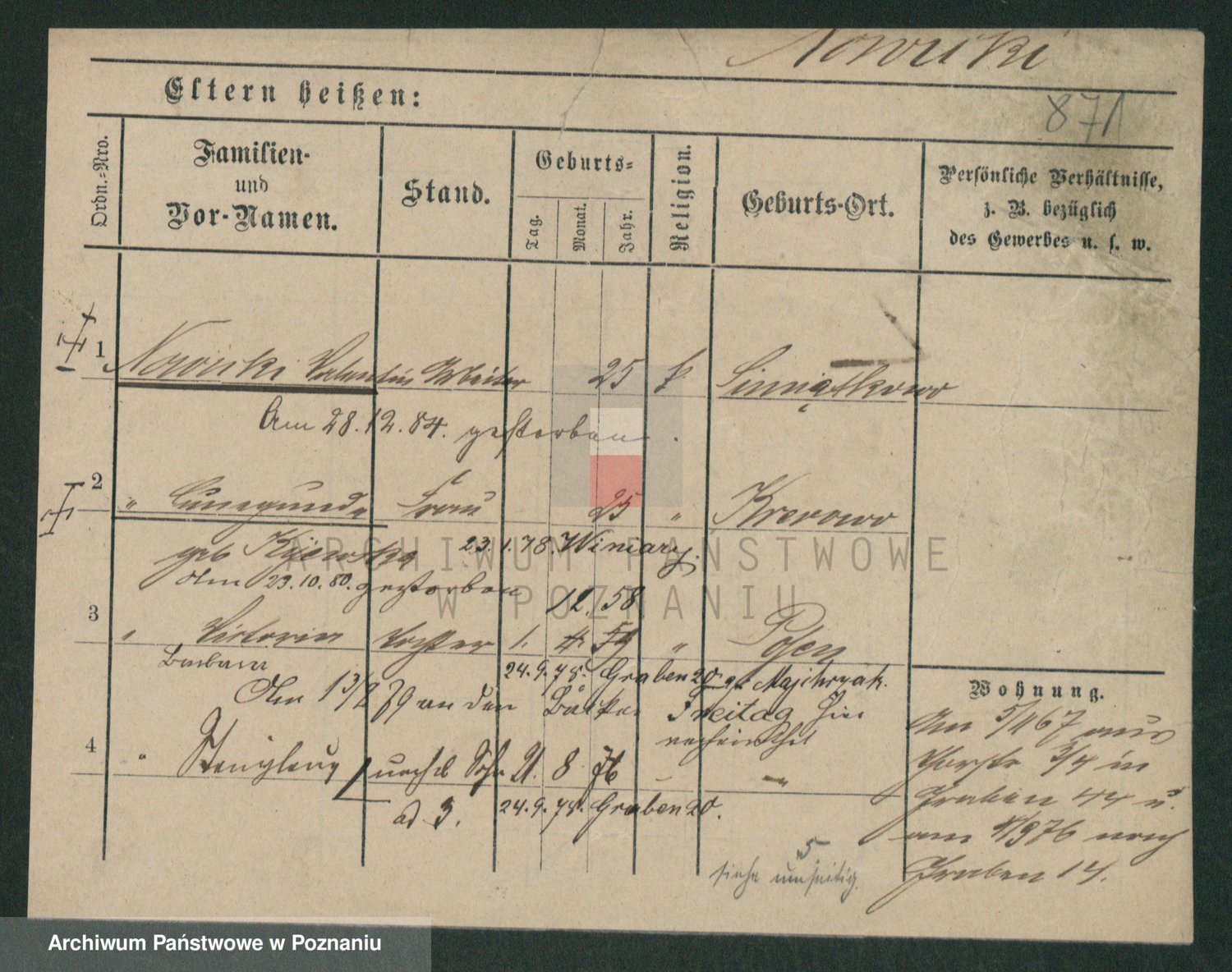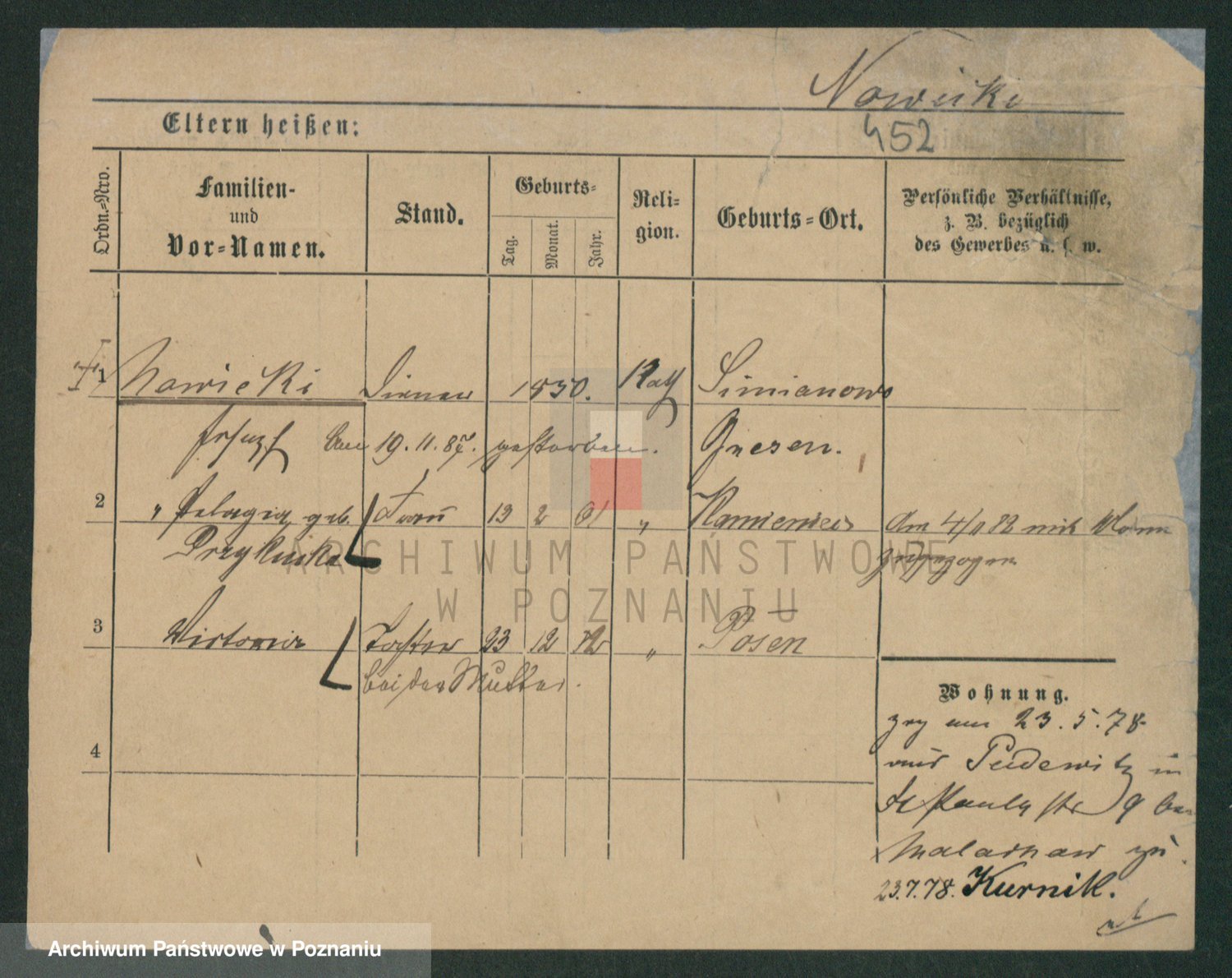 Podgląd karty osobowej dostępny jest po kliknięciu na nazwisko lub ikonkę karty. Można dokonywać powiększenia (ikony na górze) lub przechodzić między kolejnymi skanami (strzałki po bokach).