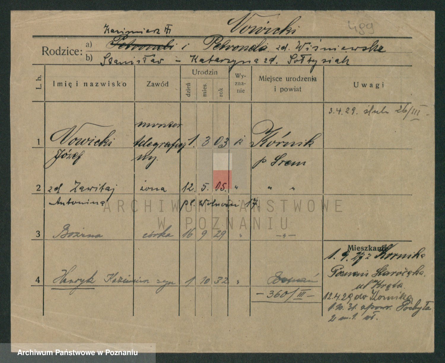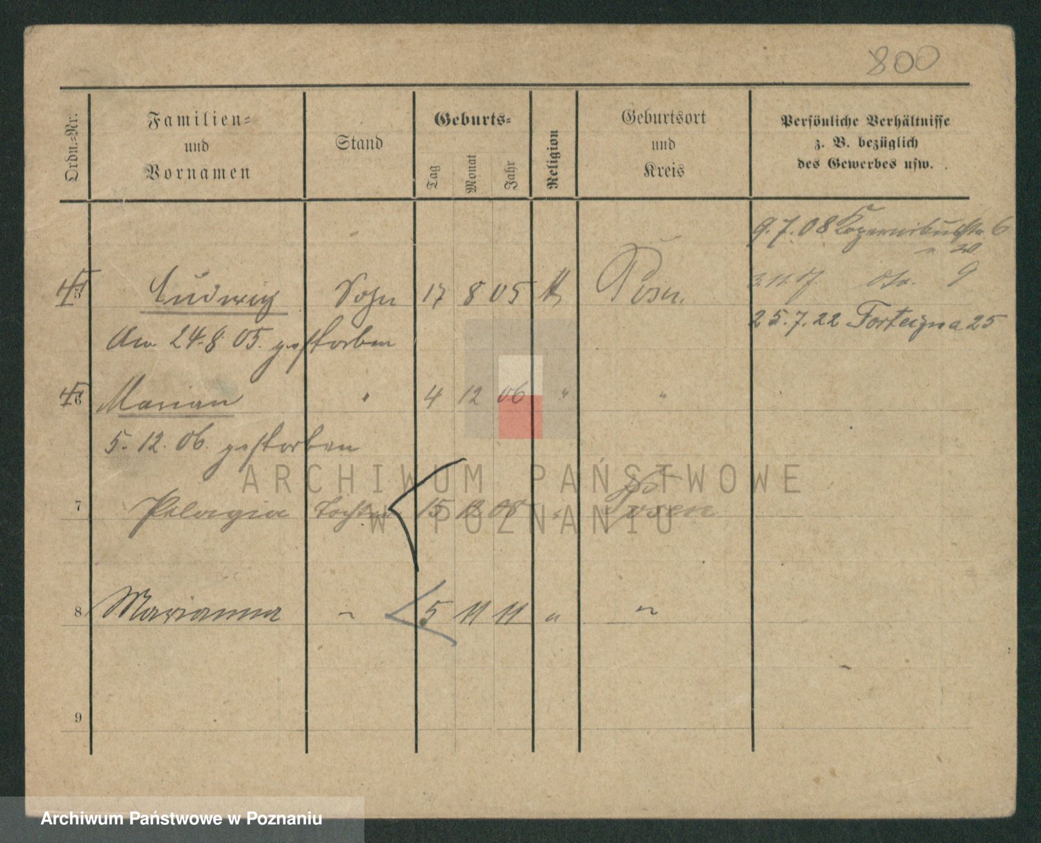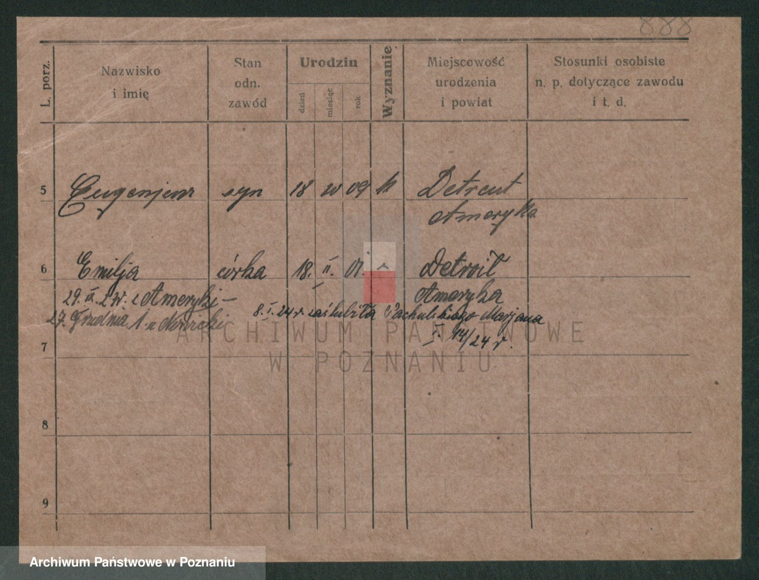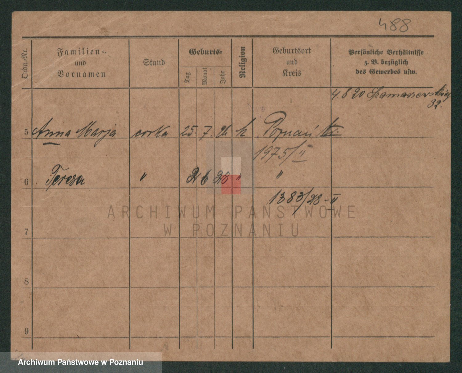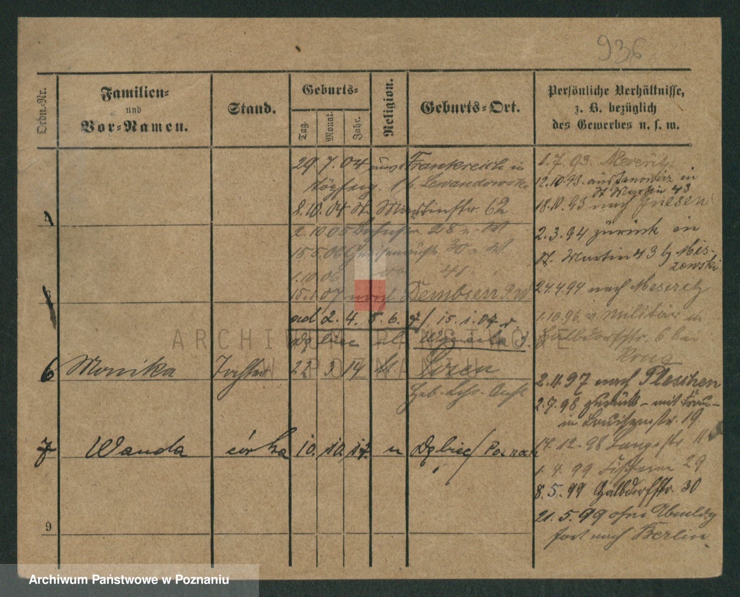 Podgląd karty osobowej dostępny jest po kliknięciu na nazwisko lub ikonkę karty. Można dokonywać powiększenia (ikony na górze) lub przechodzić między kolejnymi skanami (strzałki po bokach).