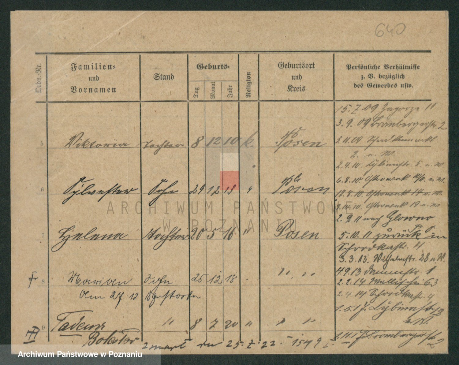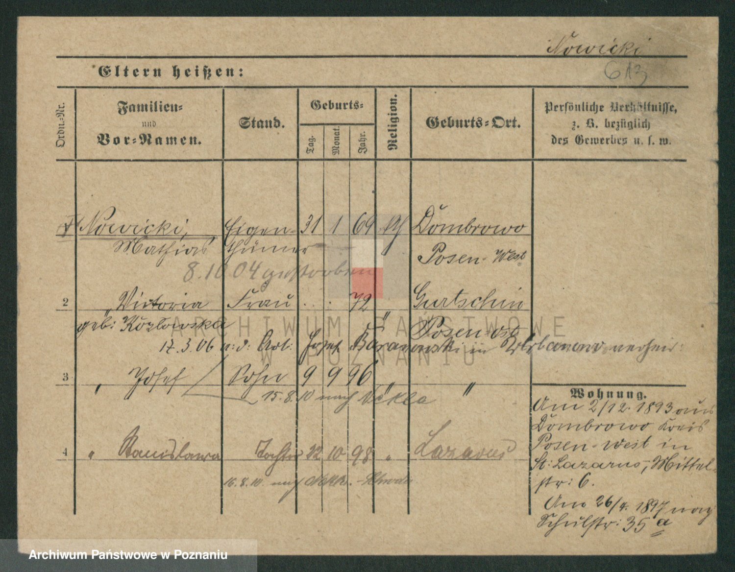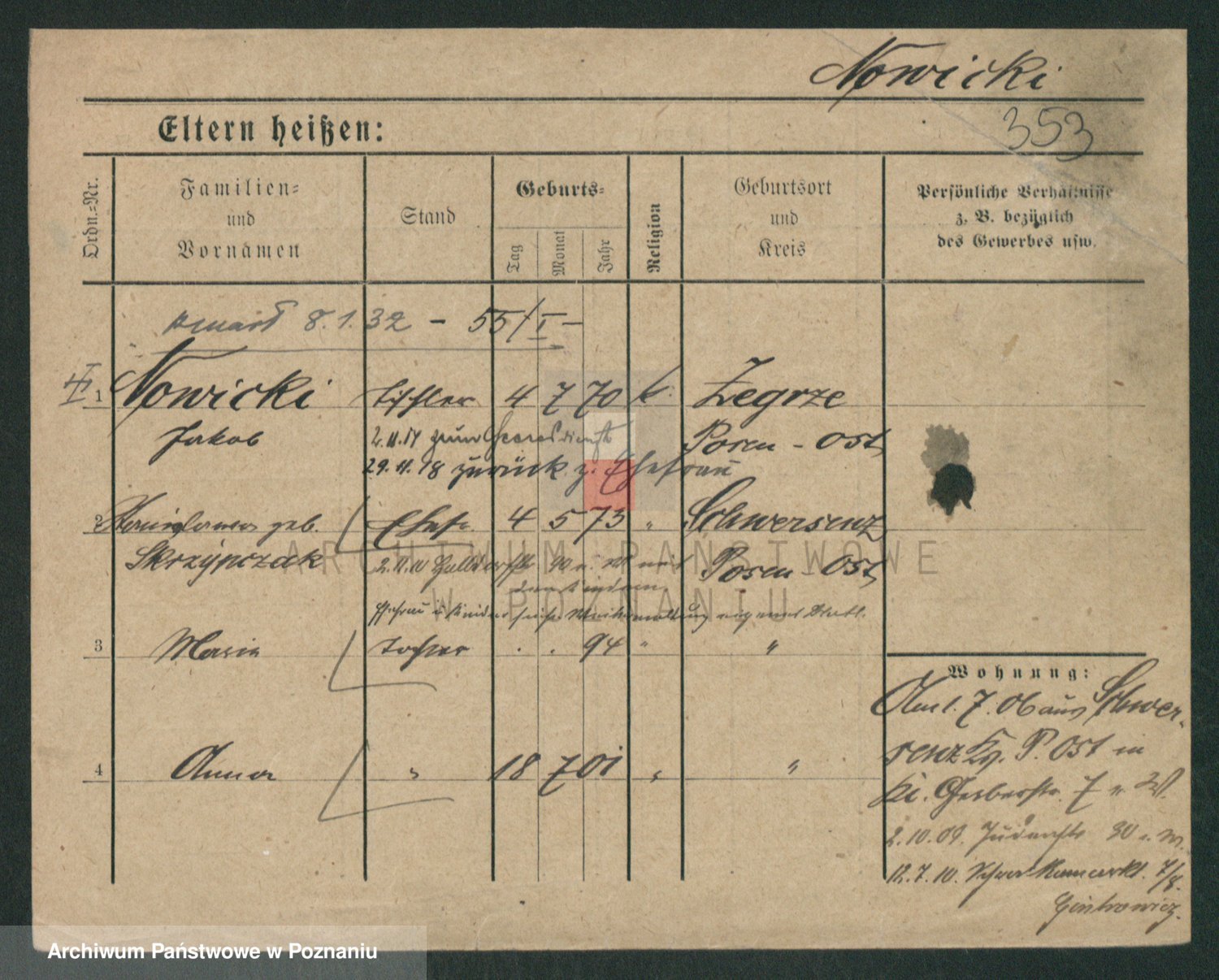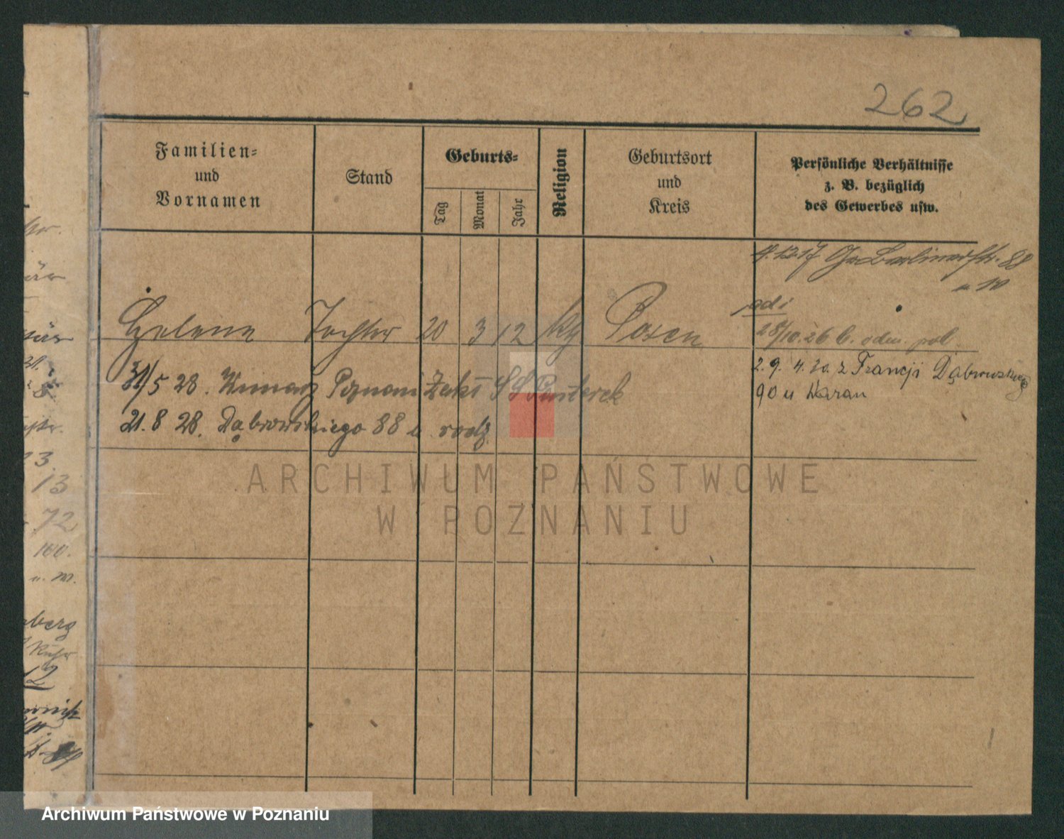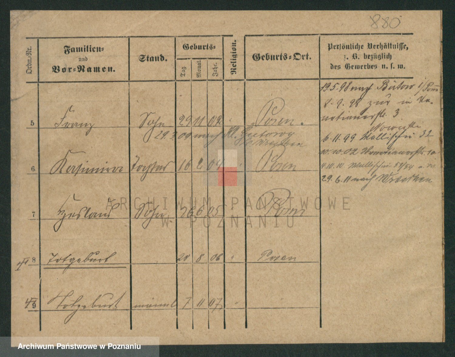 Podgląd karty osobowej dostępny jest po kliknięciu na nazwisko lub ikonkę karty. Można dokonywać powiększenia (ikony na górze) lub przechodzić między kolejnymi skanami (strzałki po bokach).