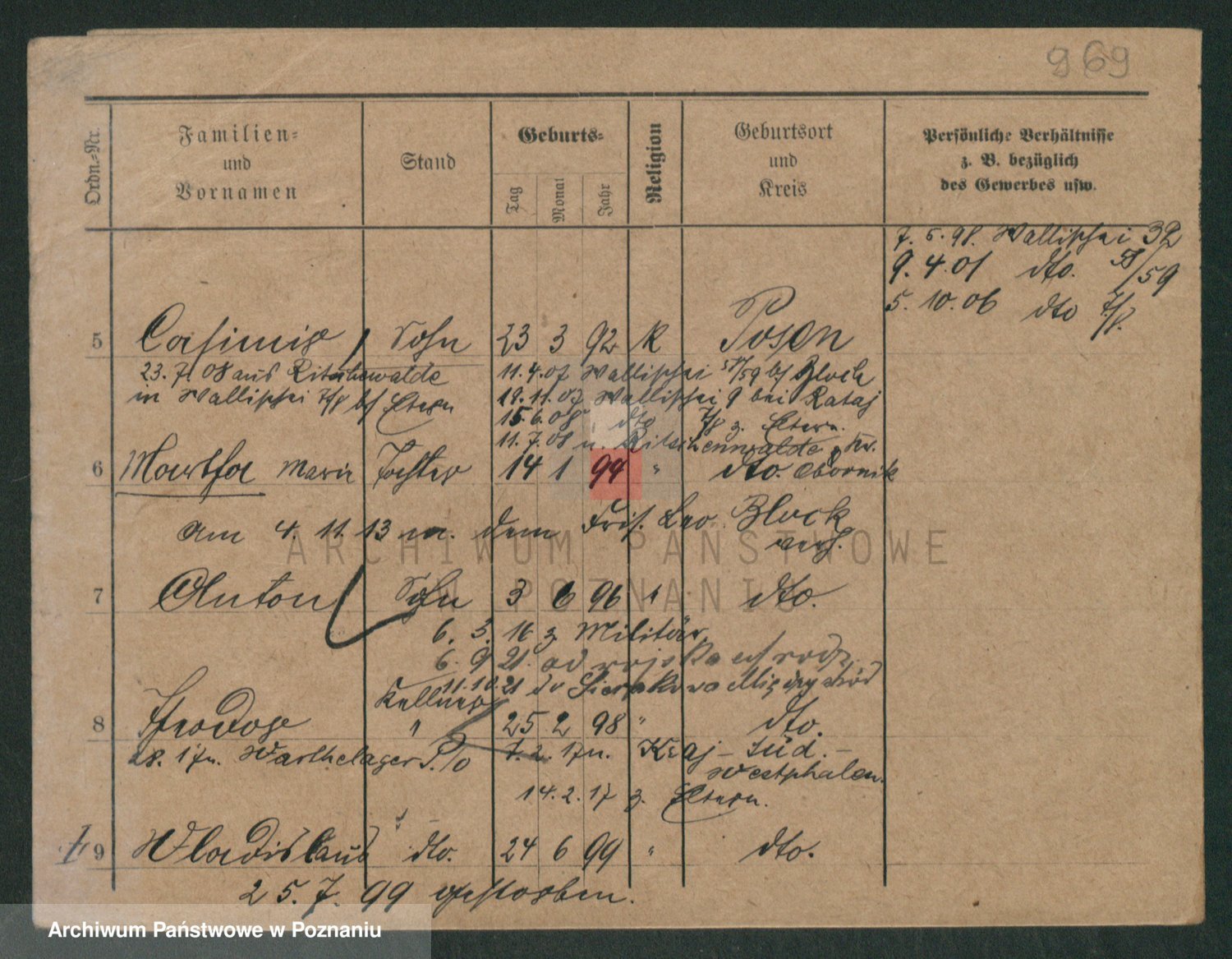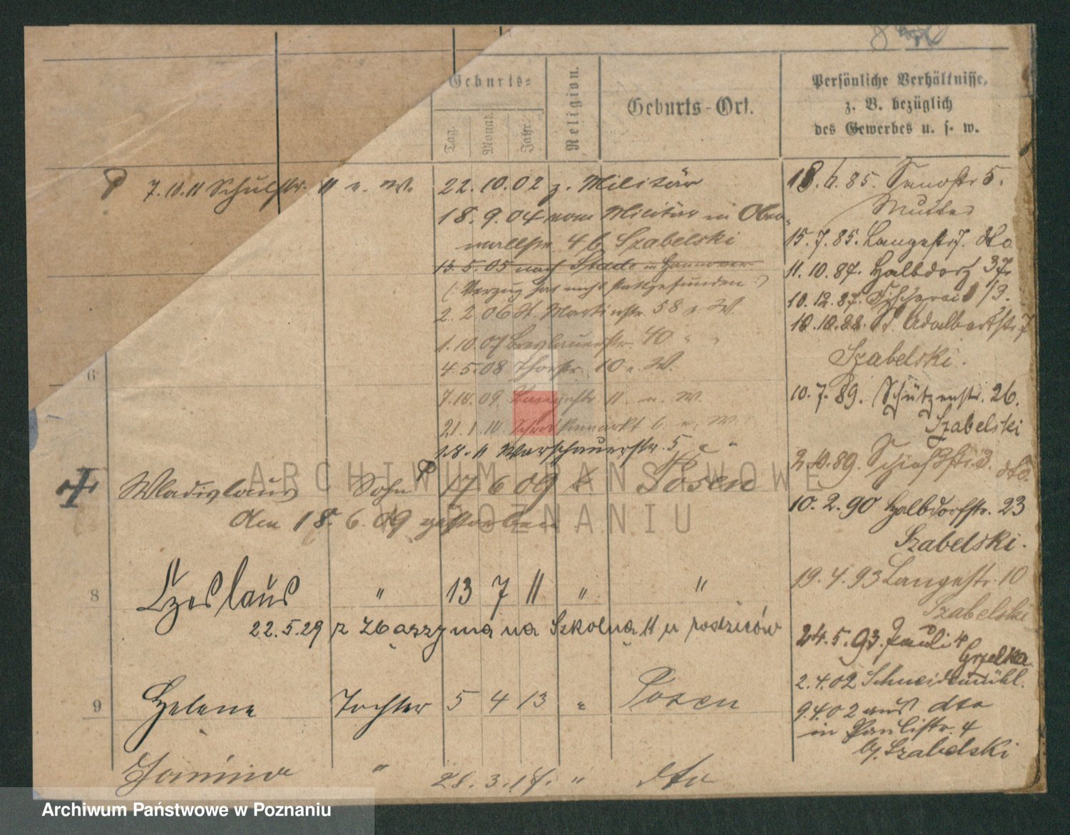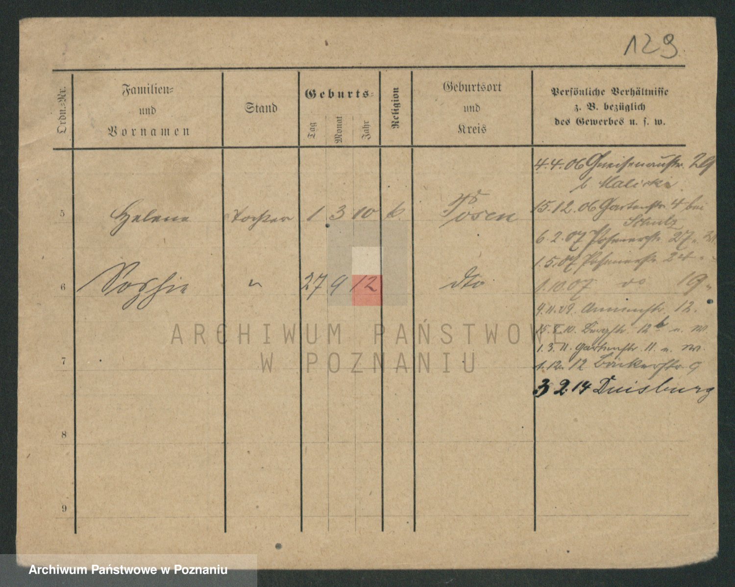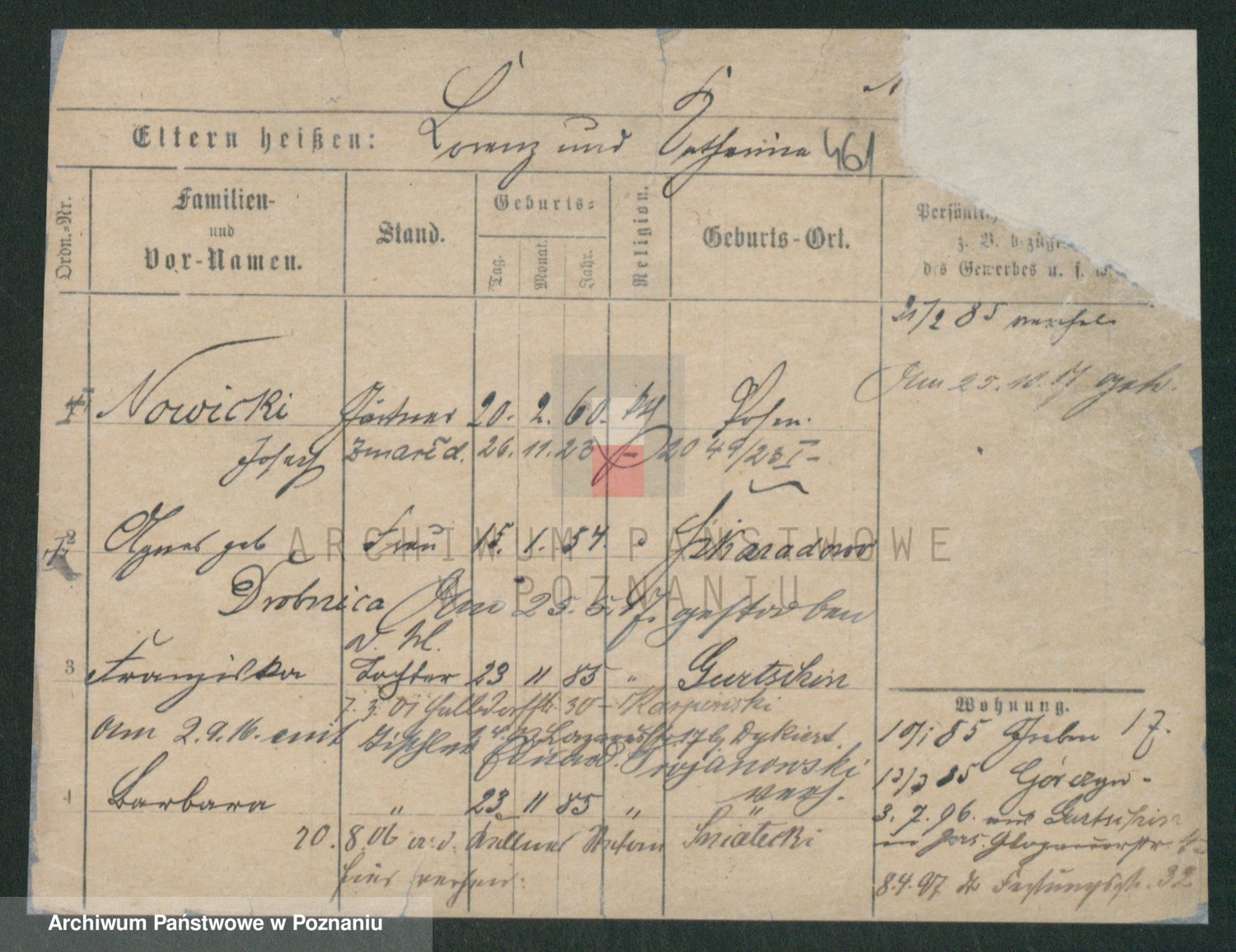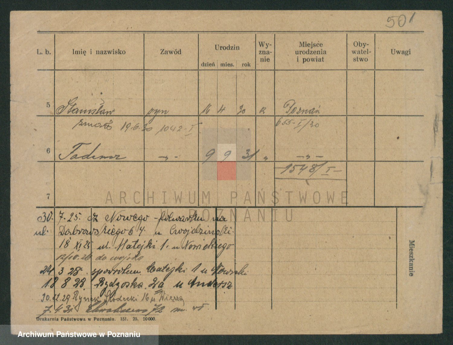 Podgląd karty osobowej dostępny jest po kliknięciu na nazwisko lub ikonkę karty. Można dokonywać powiększenia (ikony na górze) lub przechodzić między kolejnymi skanami (strzałki po bokach).