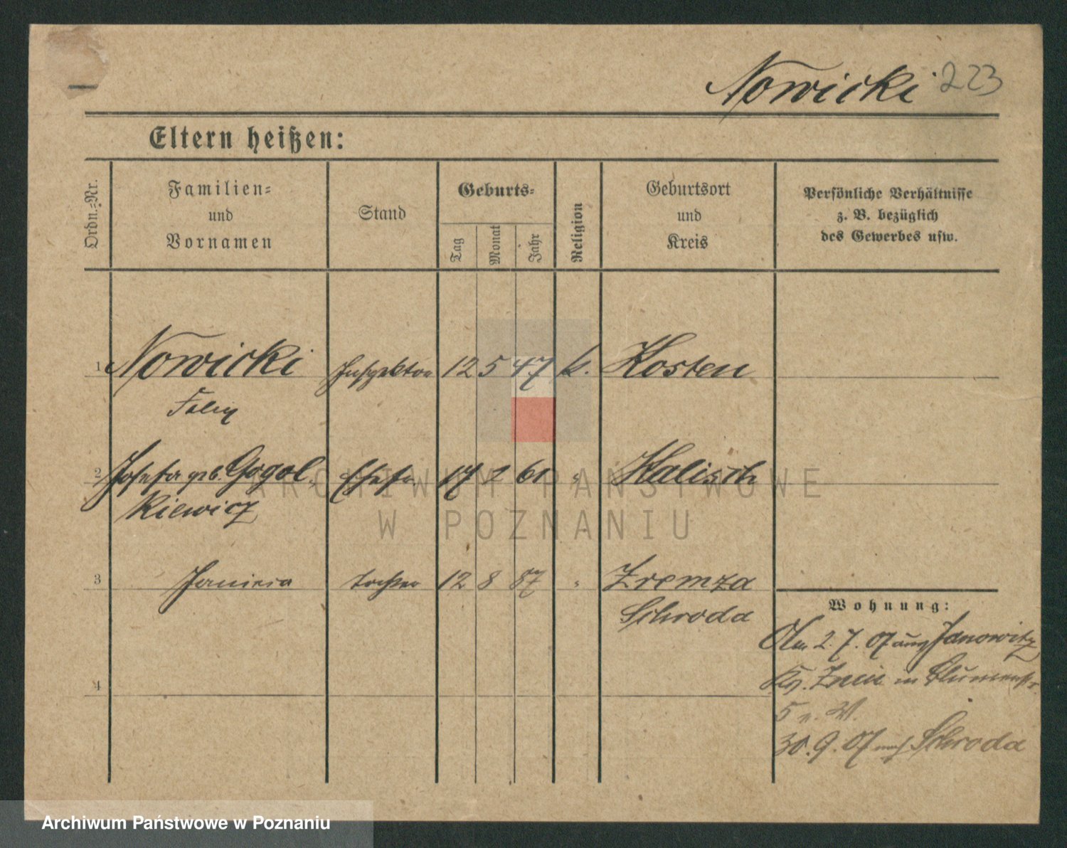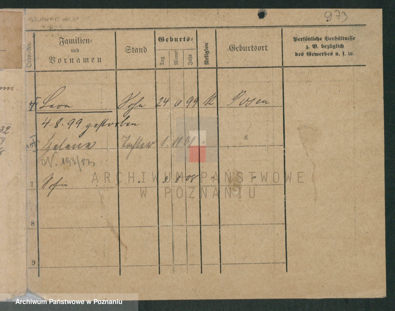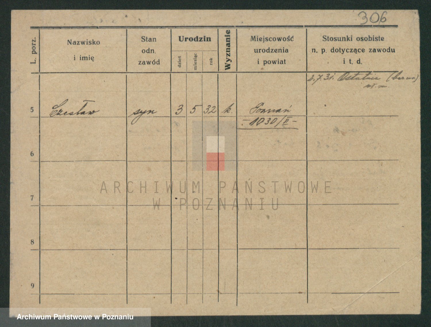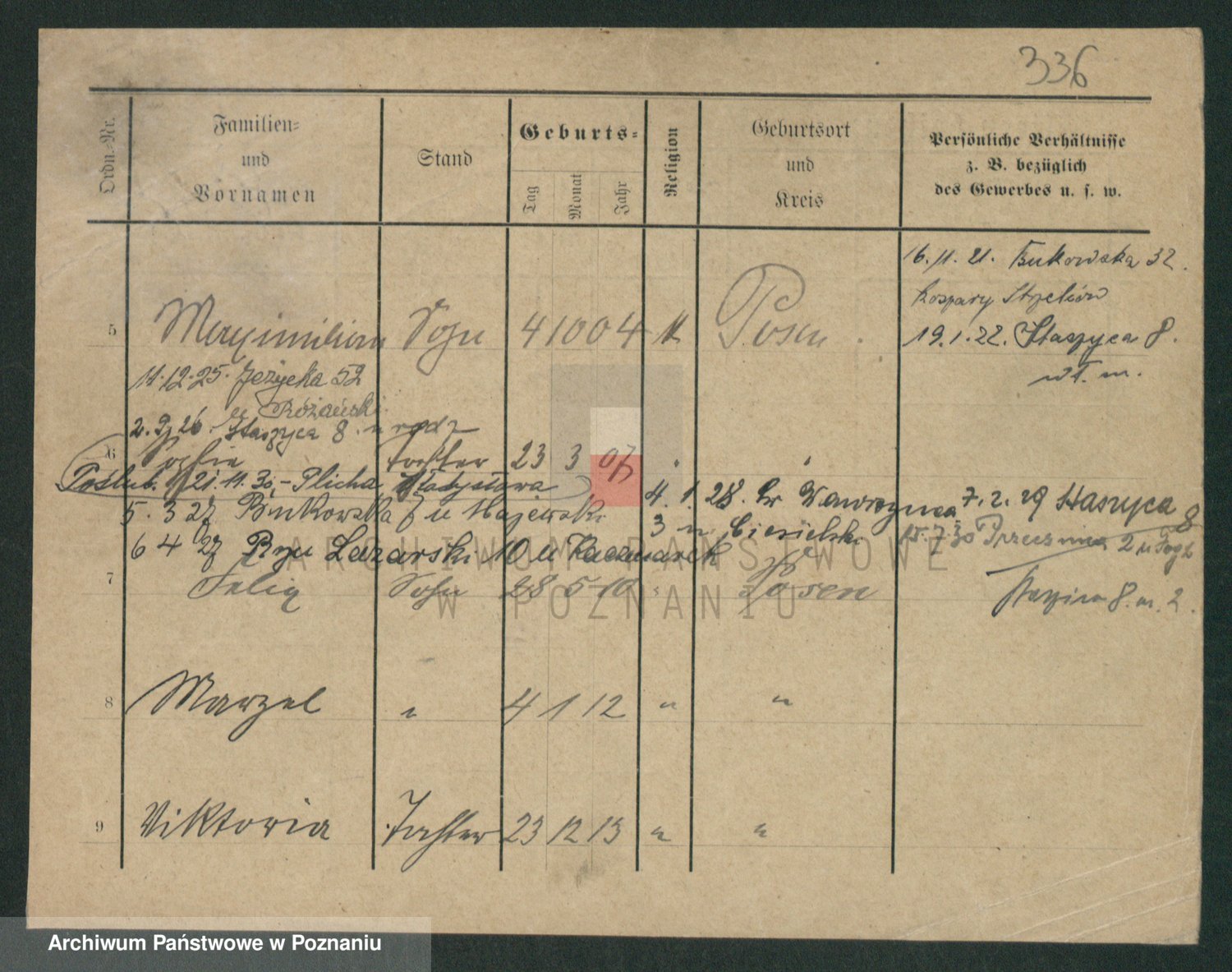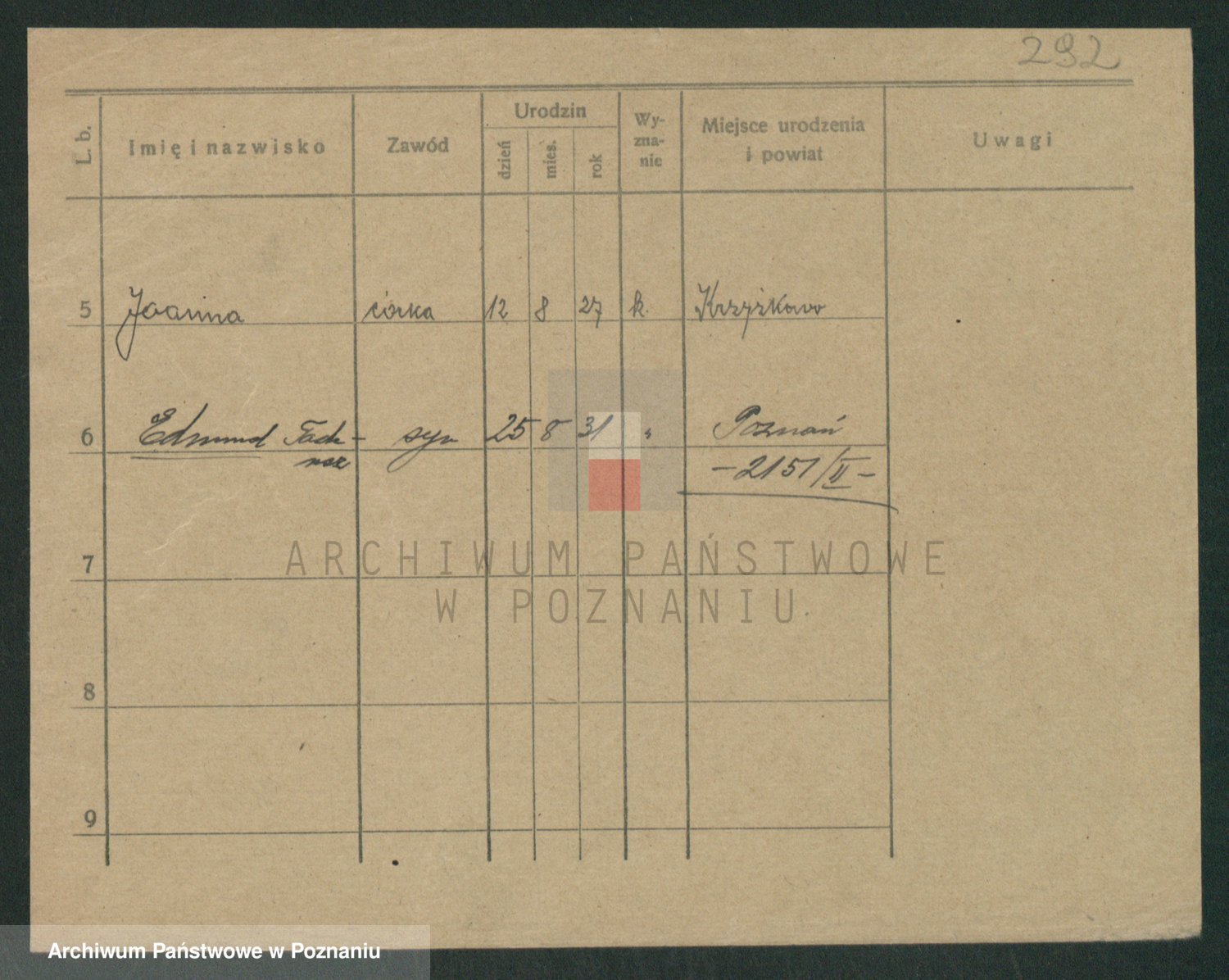 Podgląd karty osobowej dostępny jest po kliknięciu na nazwisko lub ikonkę karty. Można dokonywać powiększenia (ikony na górze) lub przechodzić między kolejnymi skanami (strzałki po bokach).