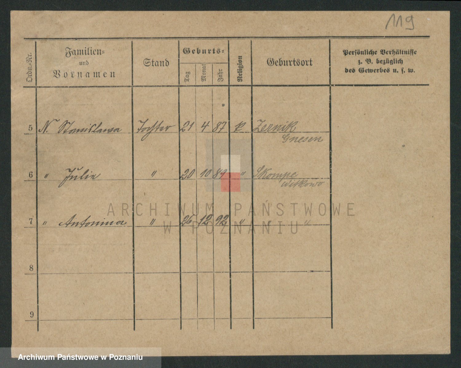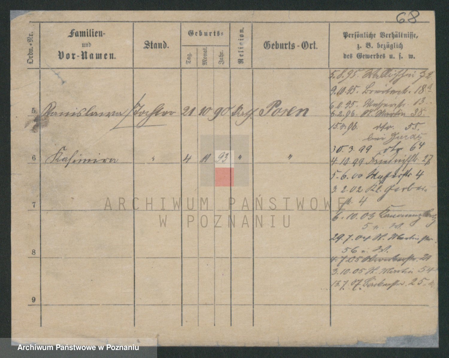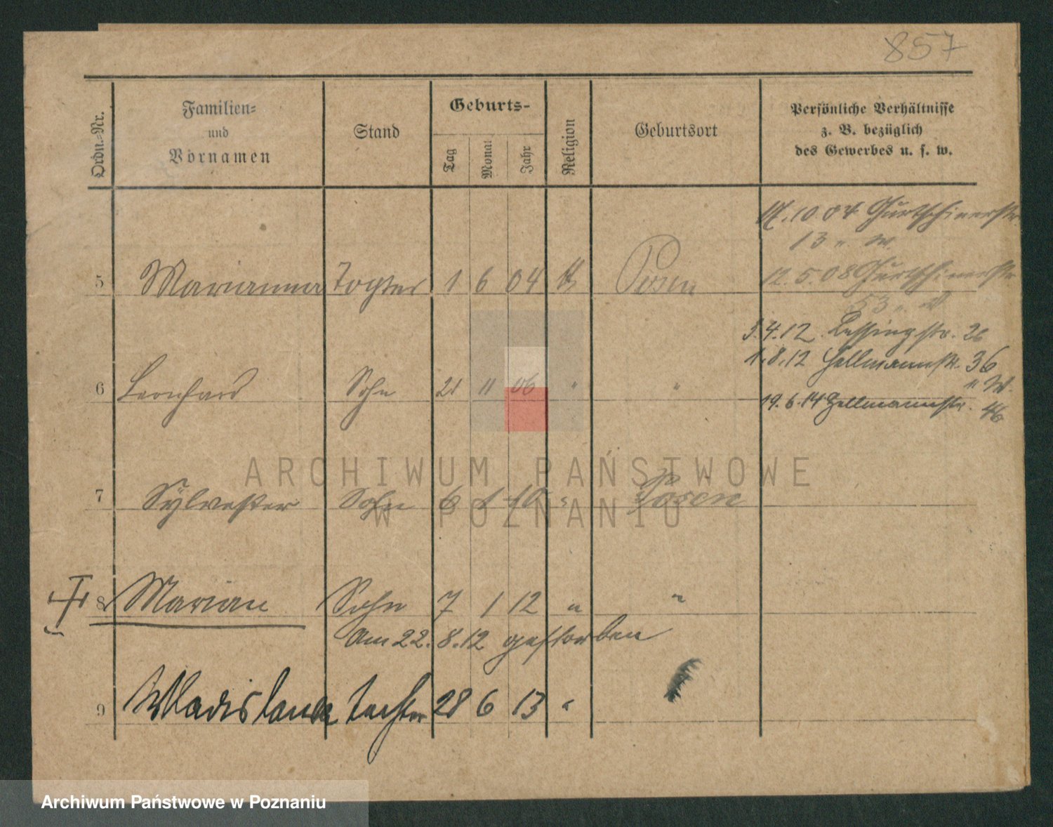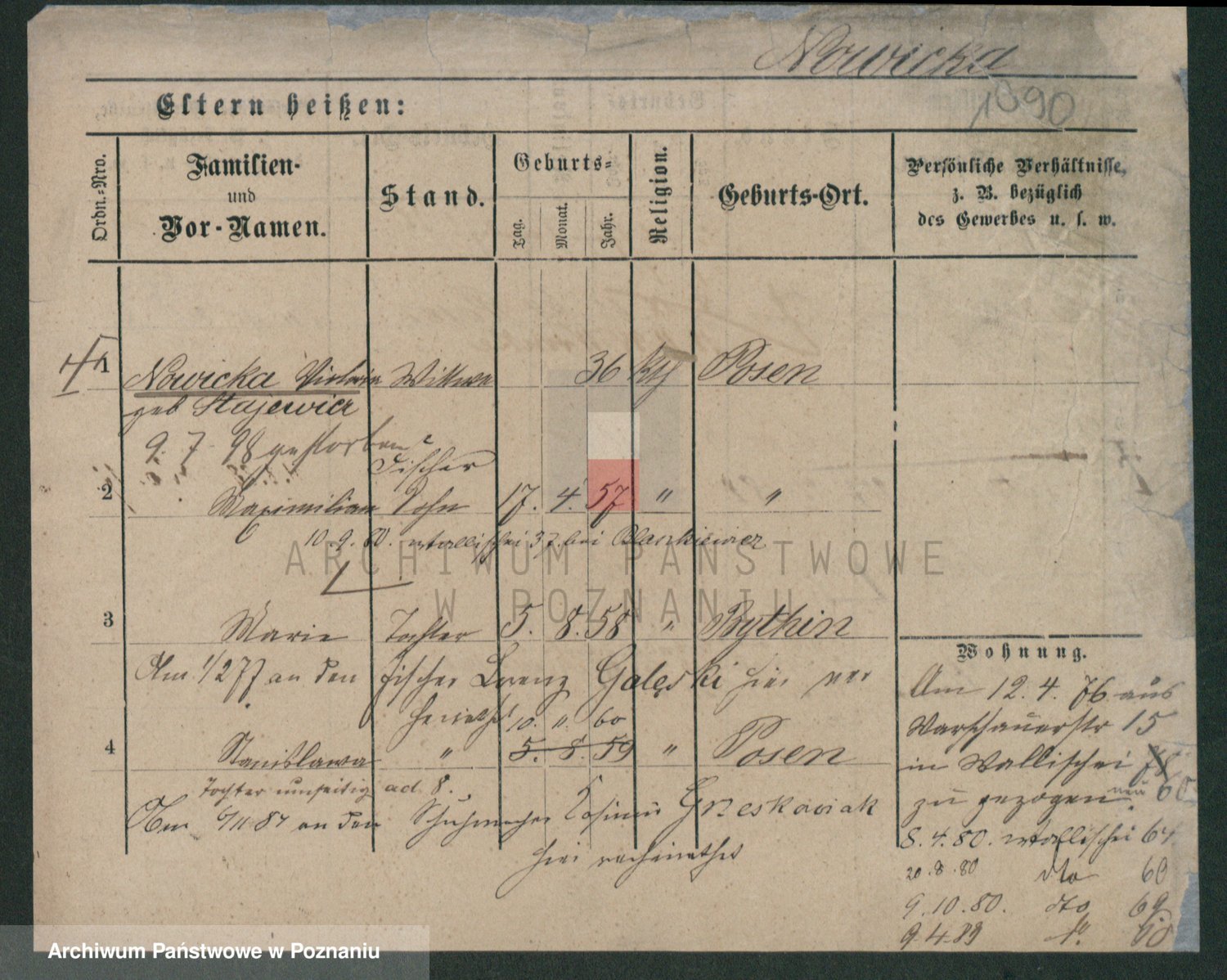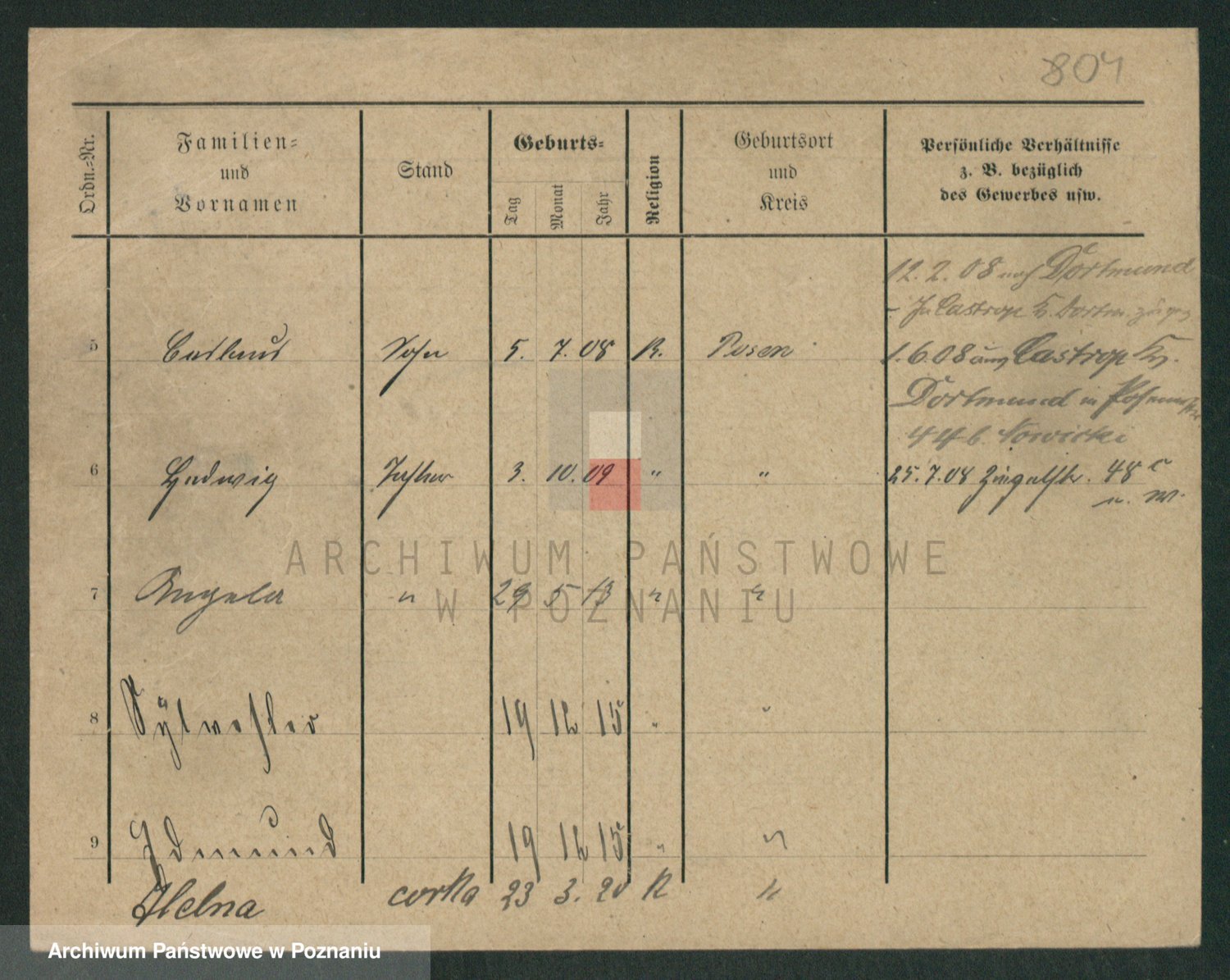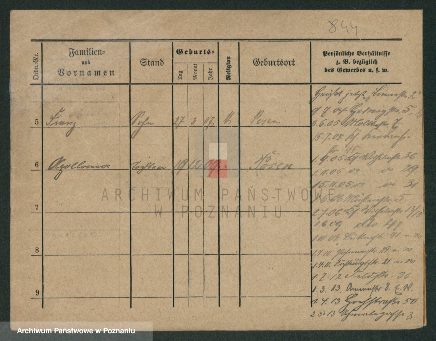 Podgląd karty osobowej dostępny jest po kliknięciu na nazwisko lub ikonkę karty. Można dokonywać powiększenia (ikony na górze) lub przechodzić między kolejnymi skanami (strzałki po bokach).